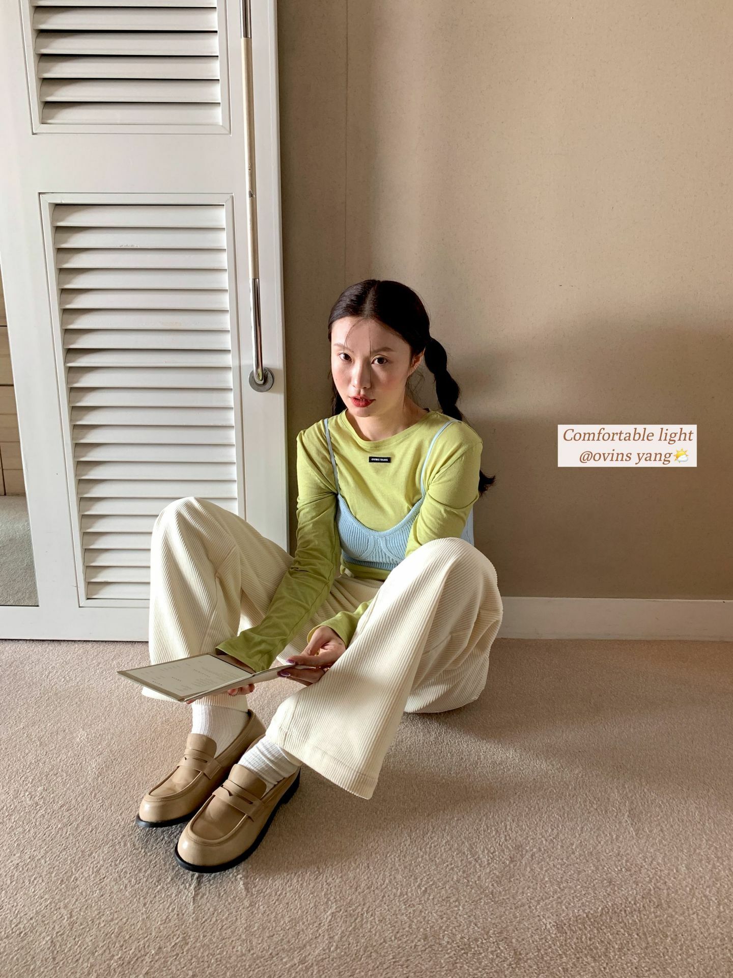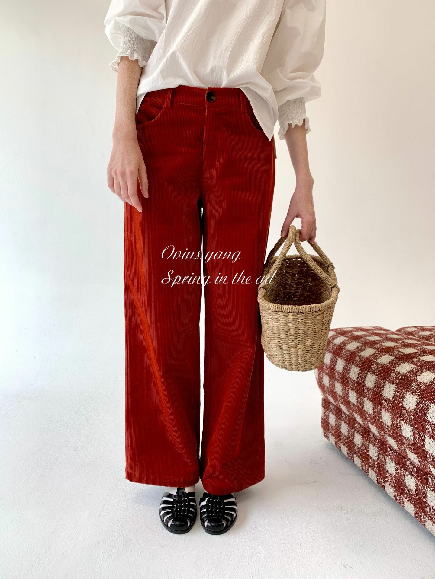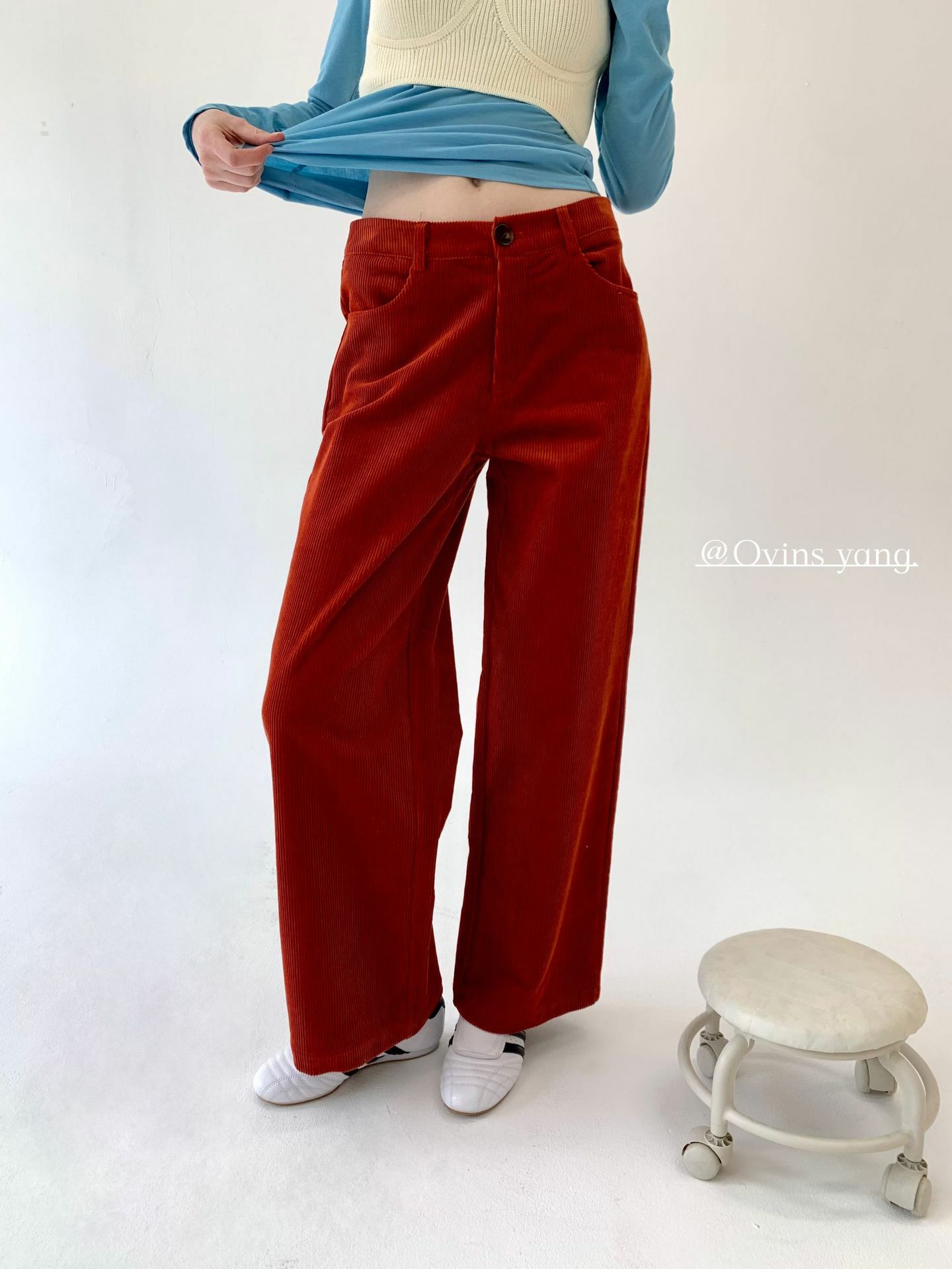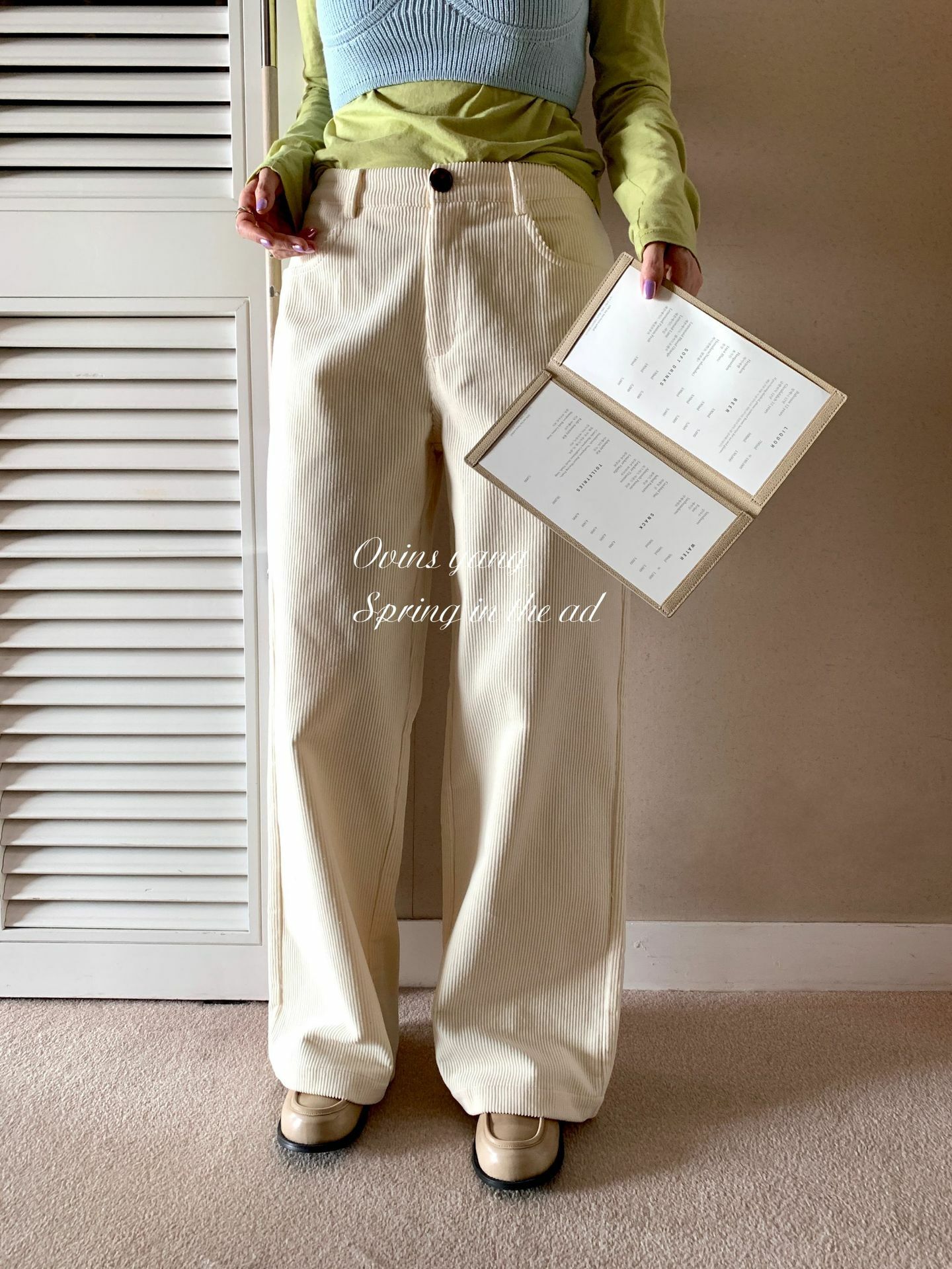 *o-ha-you*【FOY100636】燈芯絨休閒褲子女款春秋新款寬鬆慵懶風直筒闊腿褲長褲-3色-如有需要請先諮詢