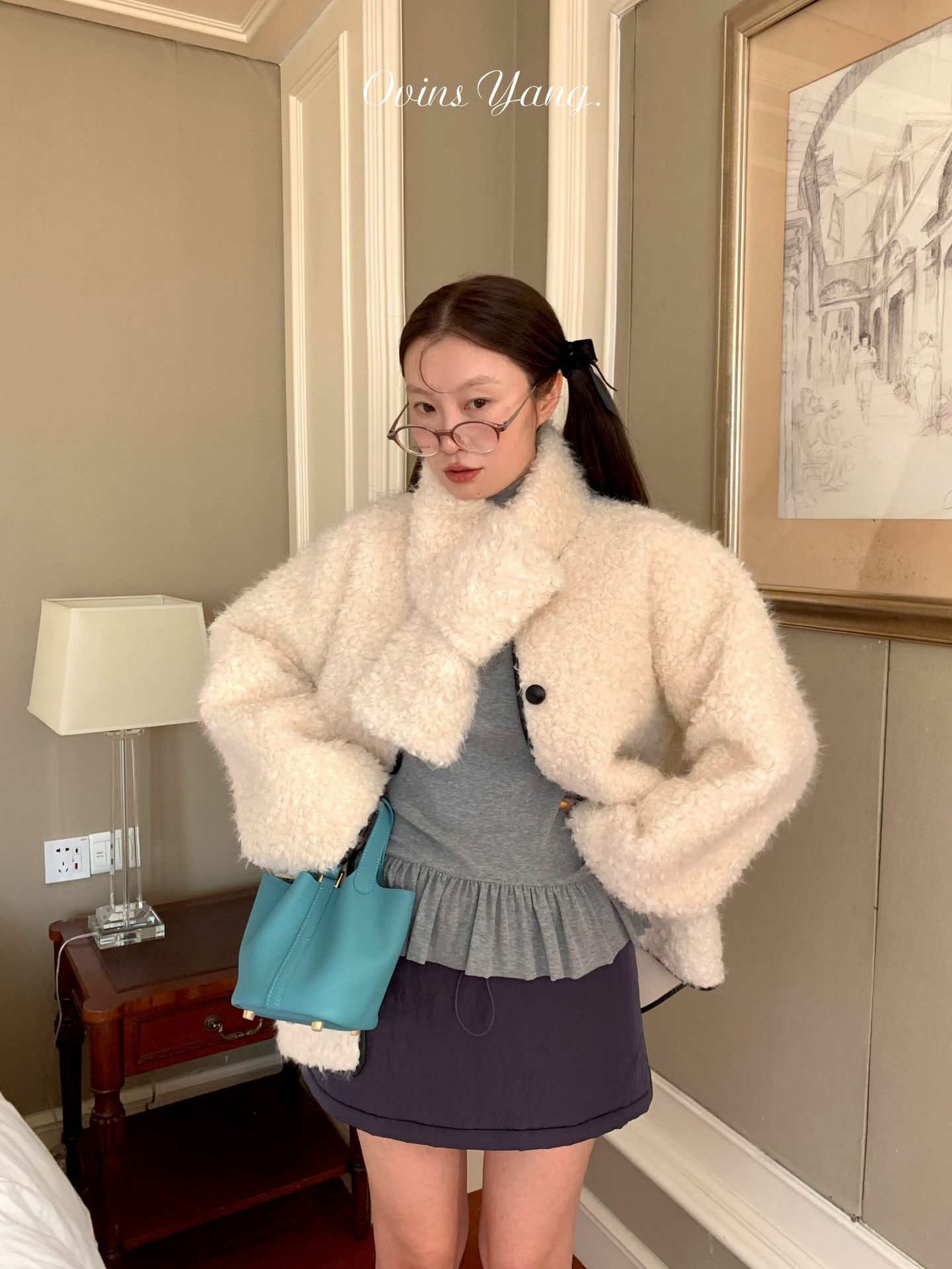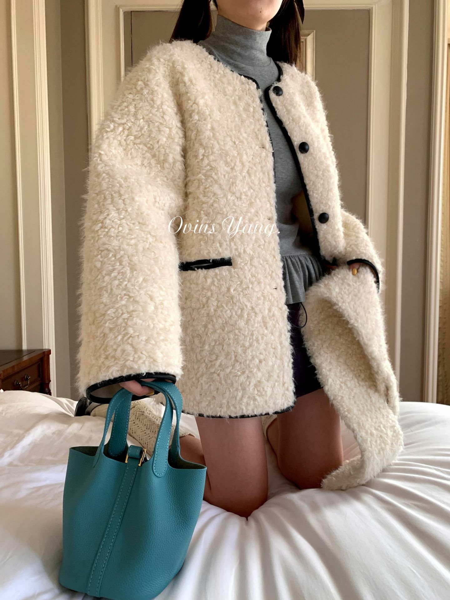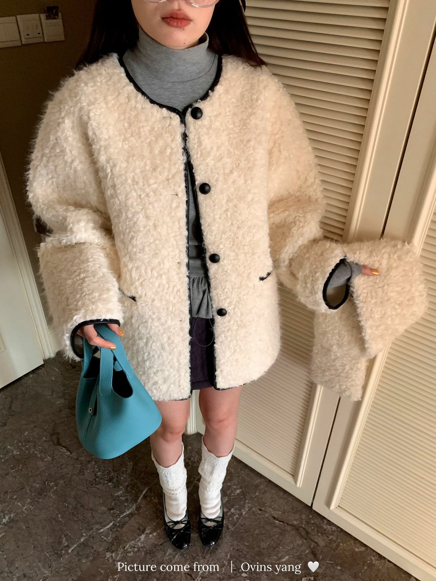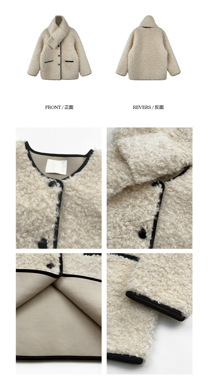 *o-ha-you*【FOY100638】圍巾領羊羔毛皮毛一體外套2024新款設計感小眾皮草-2色