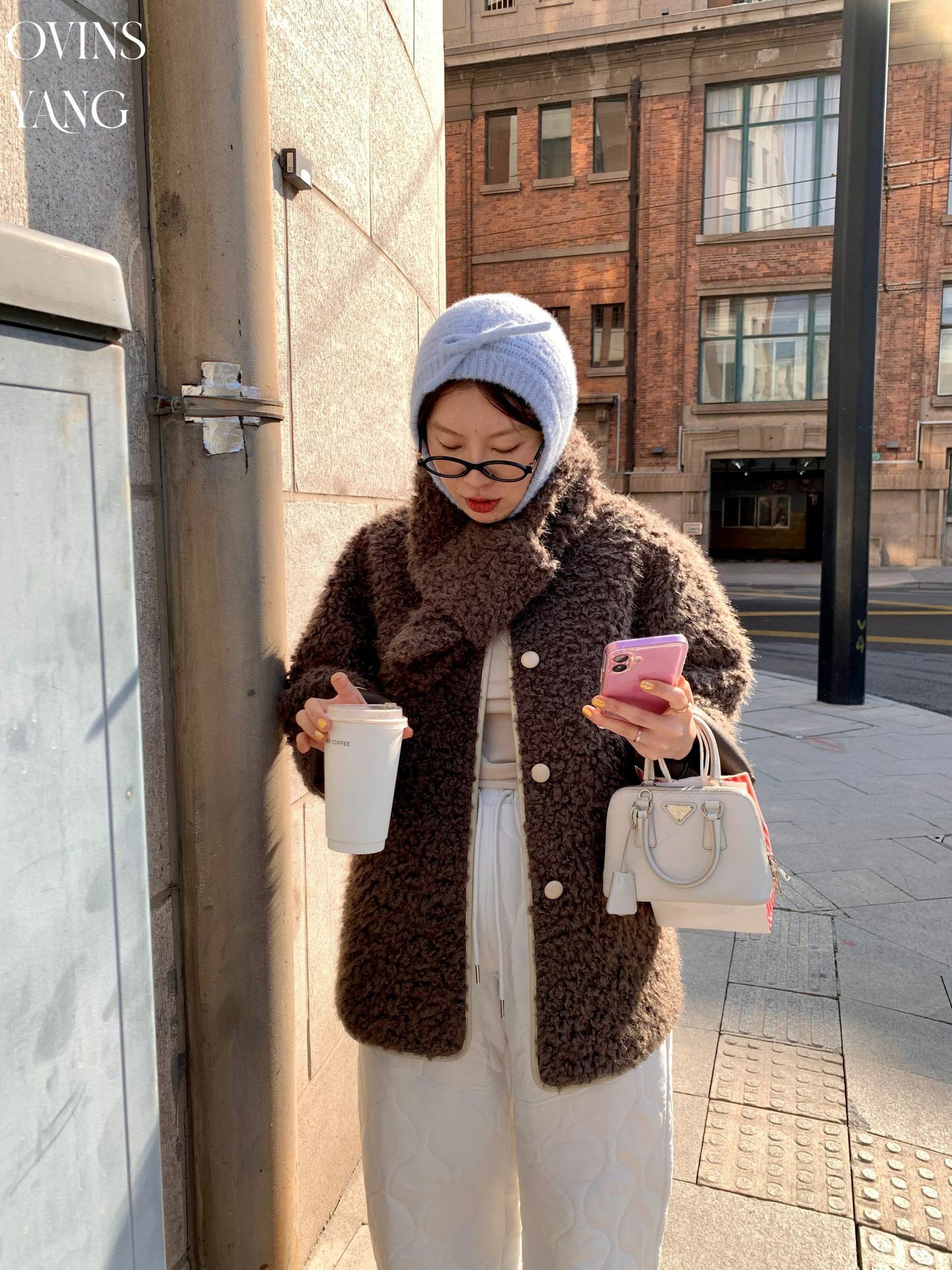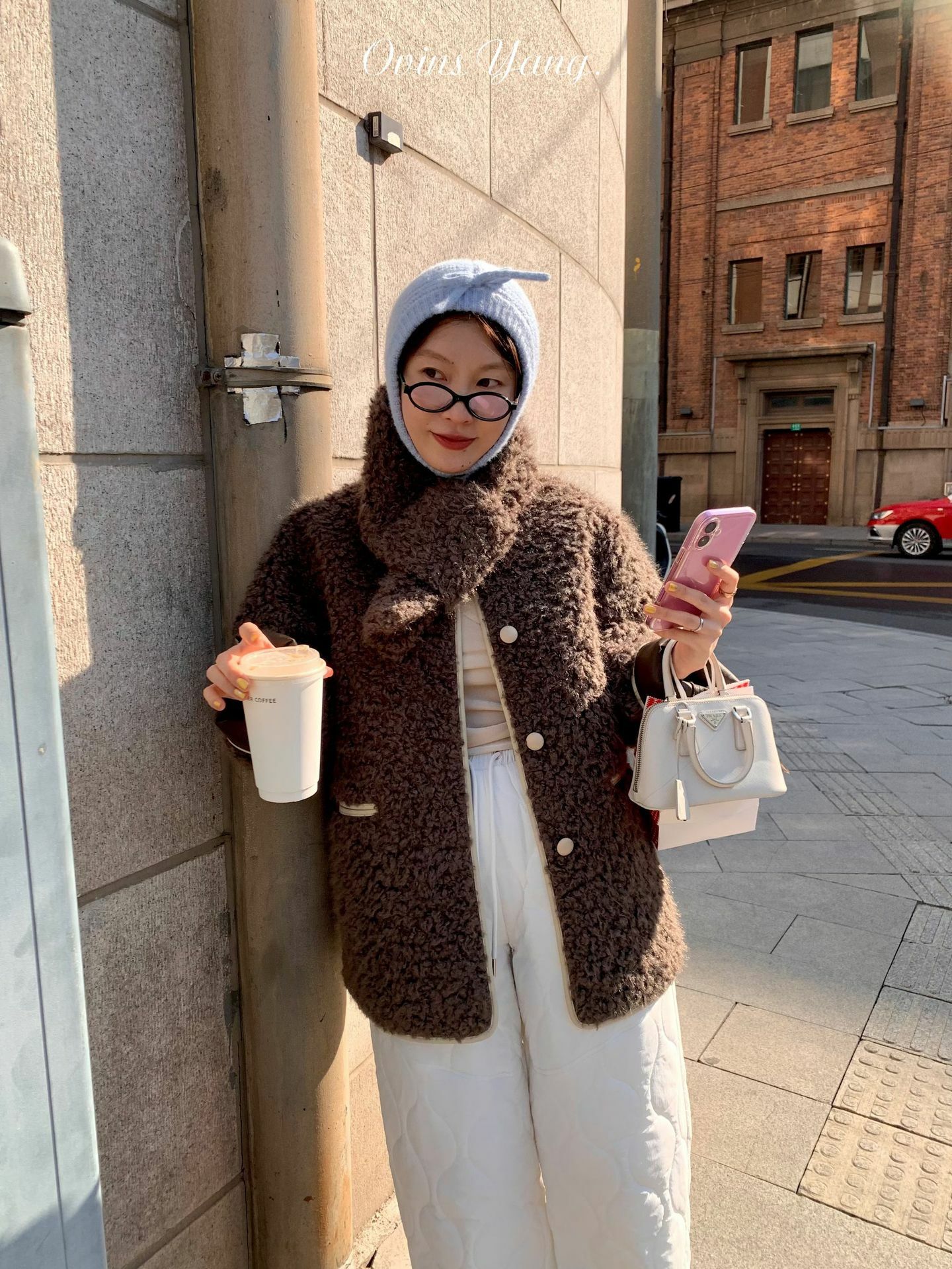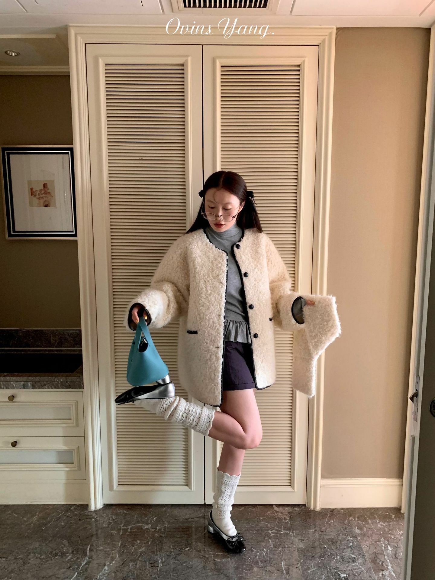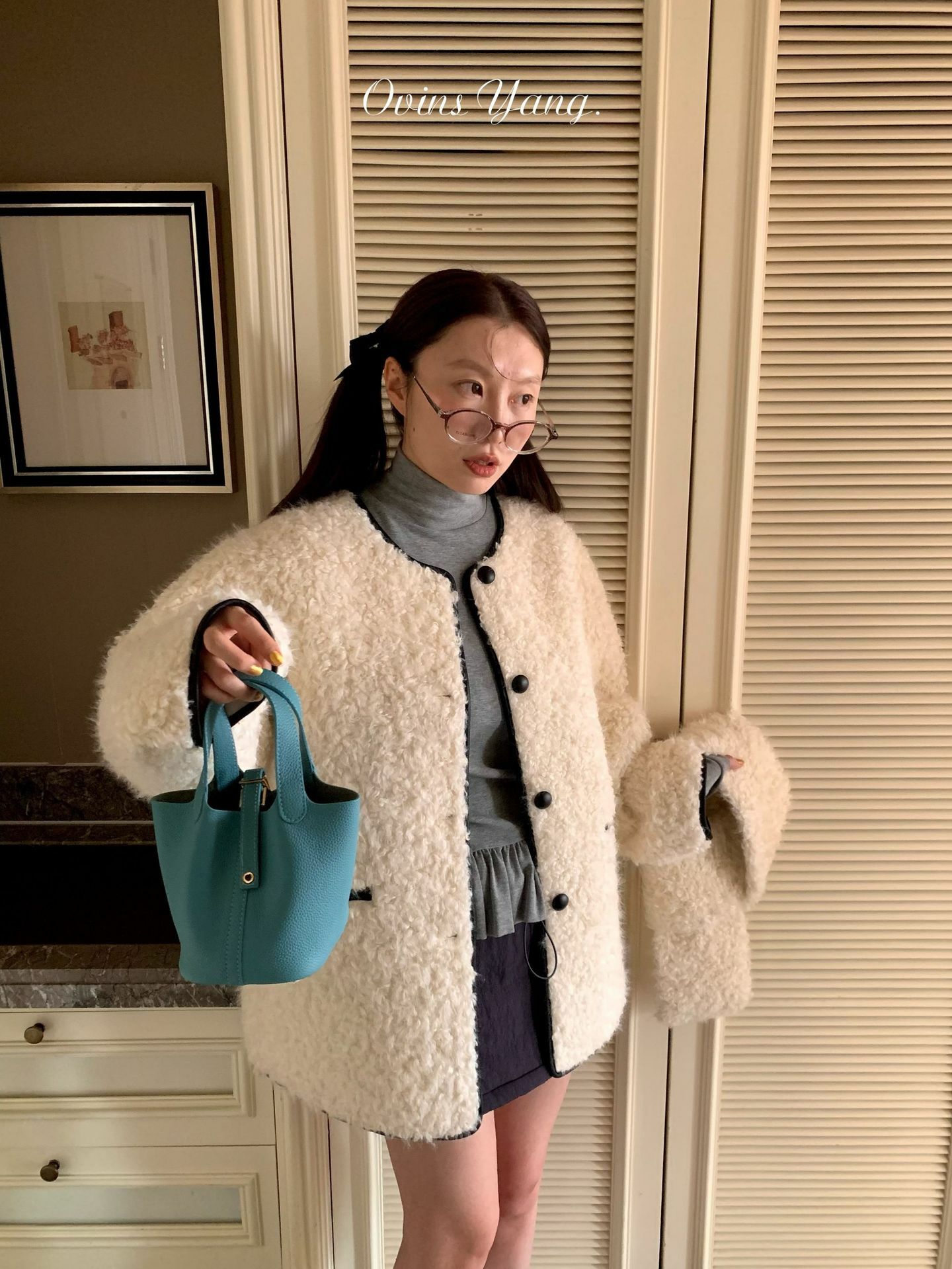 *o-ha-you*【FOY100638】圍巾領羊羔毛皮毛一體外套2024新款設計感小眾皮草-2色