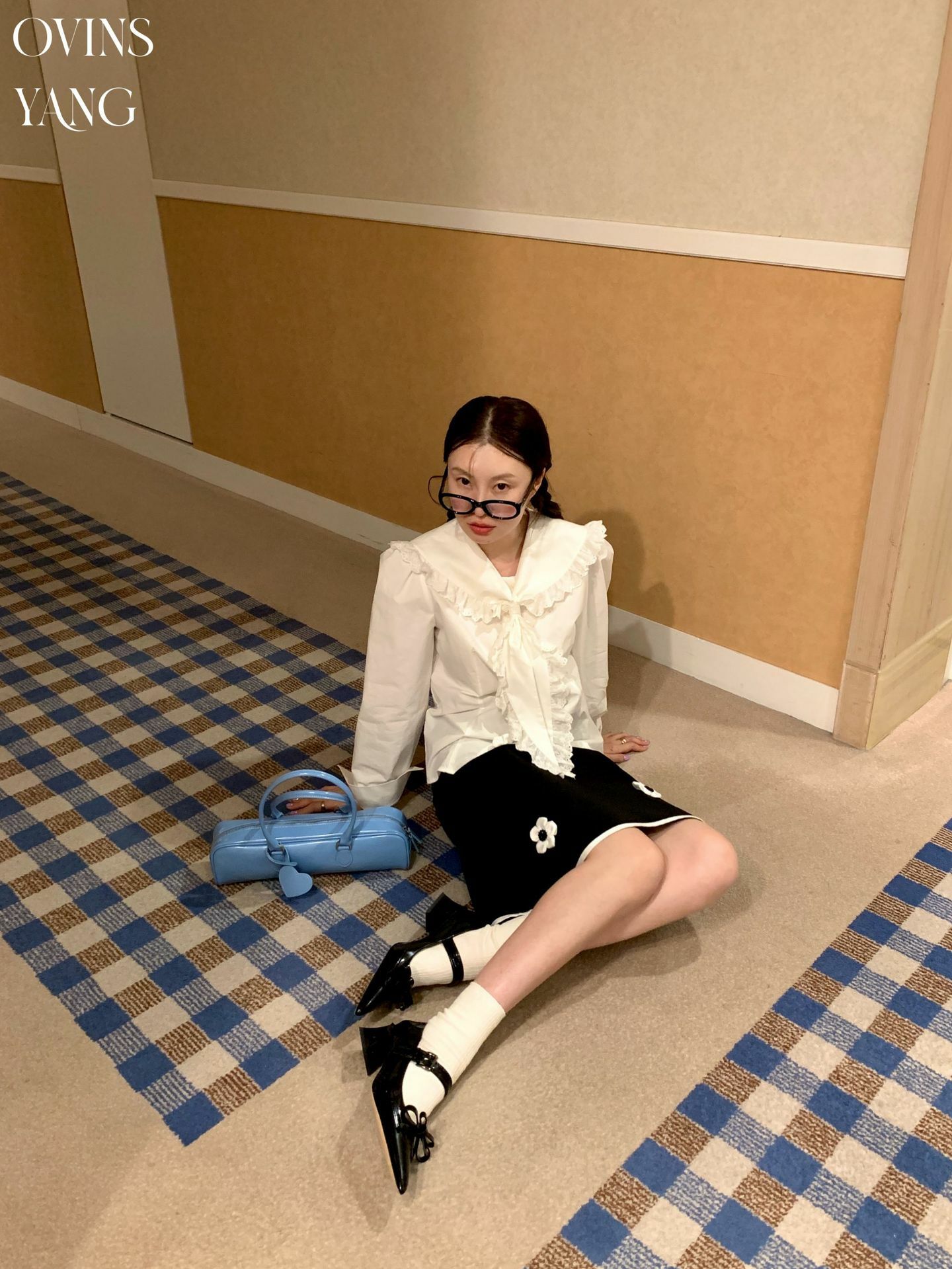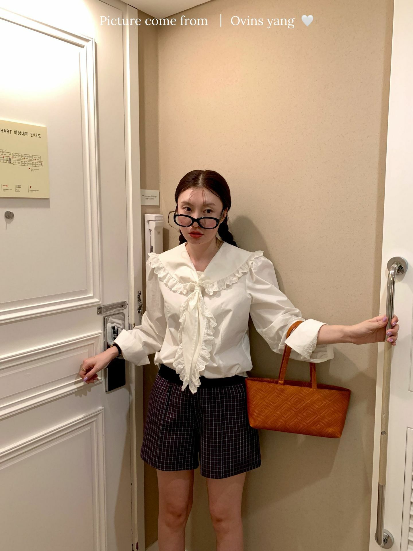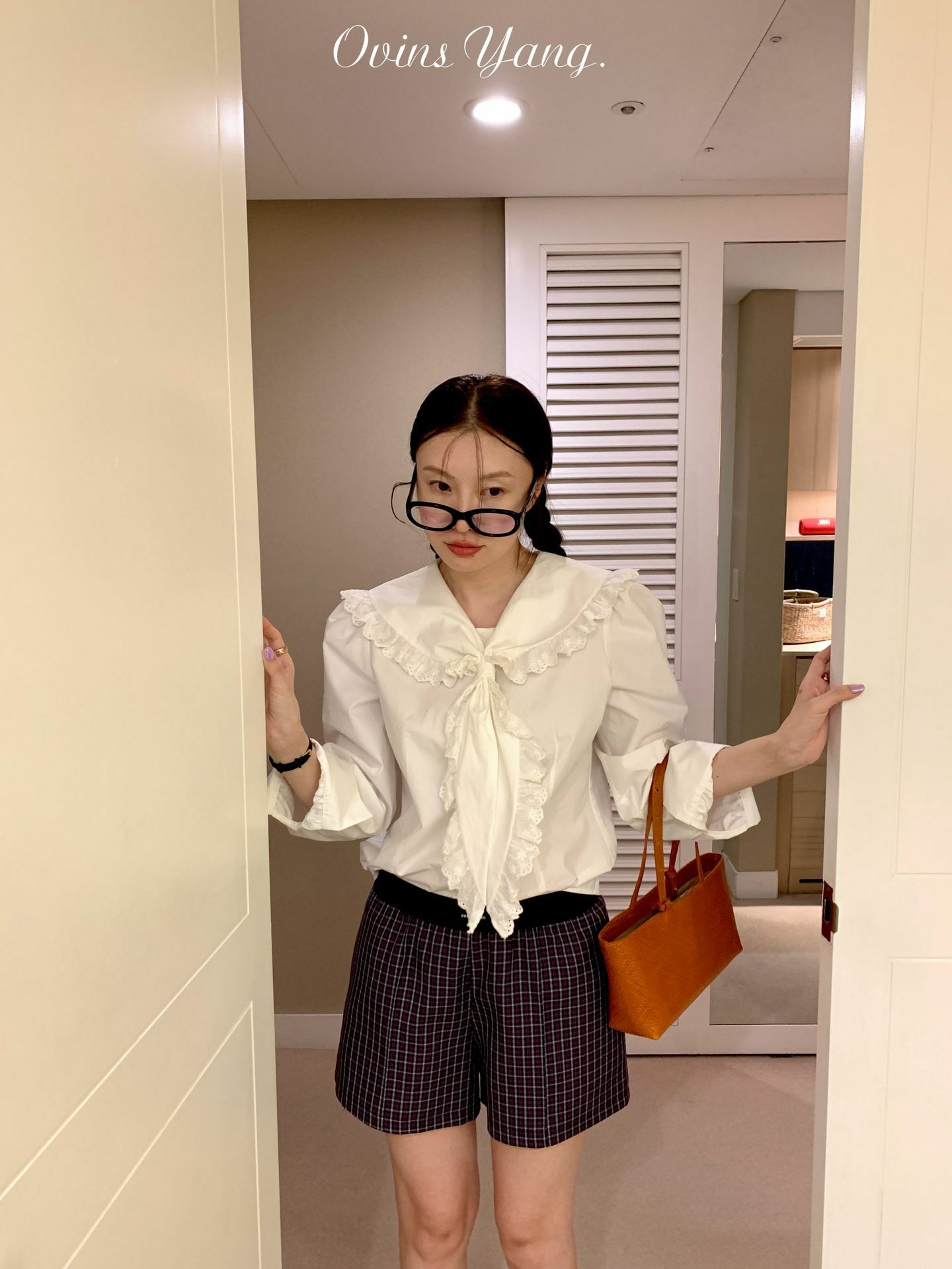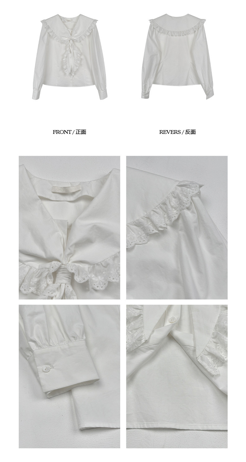 *o-ha-you*【FOY100657】花邊領海軍風白襯衫長袖設計感小眾少女感減齡上衣-如有需要請先諮詢