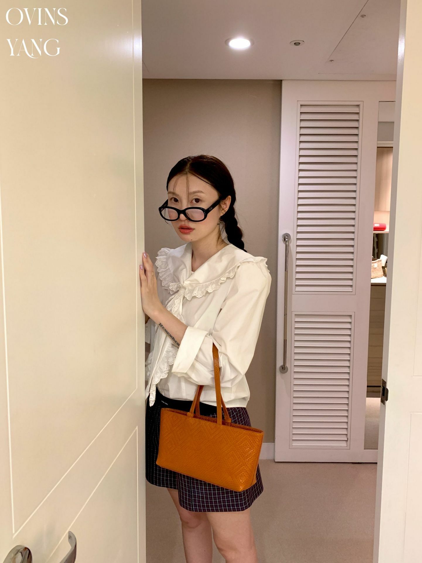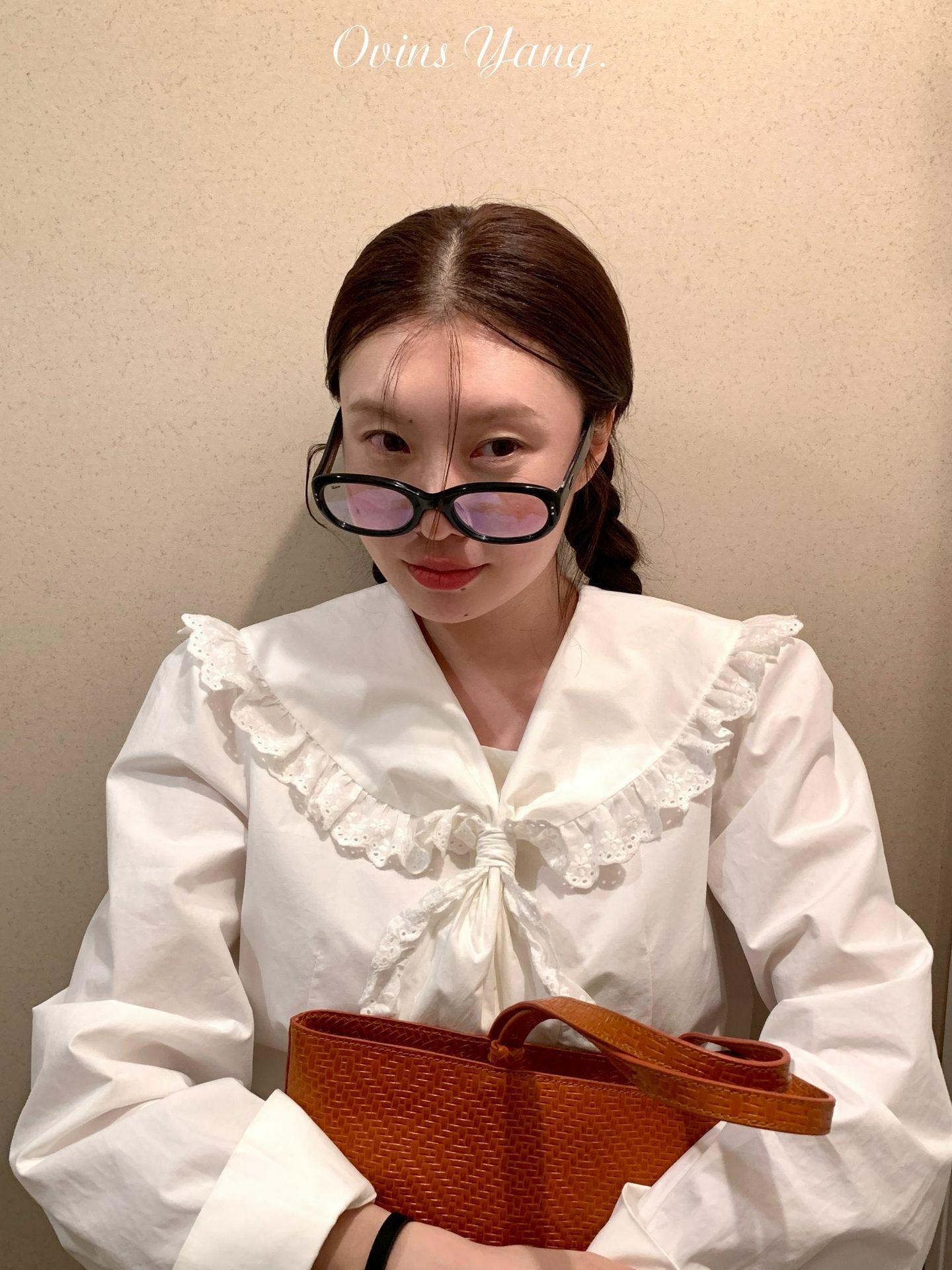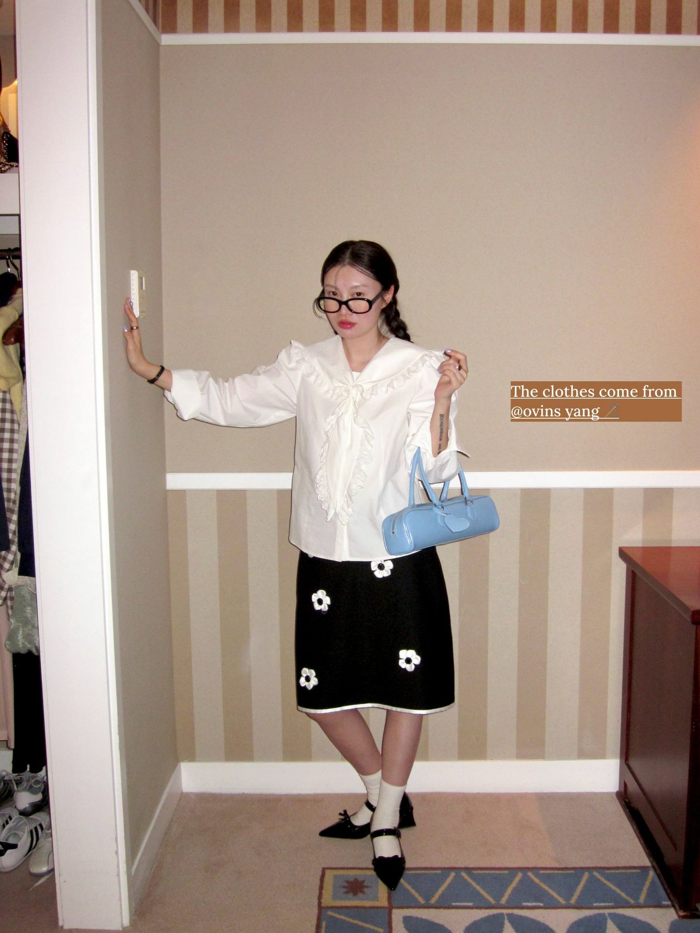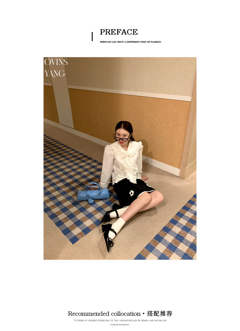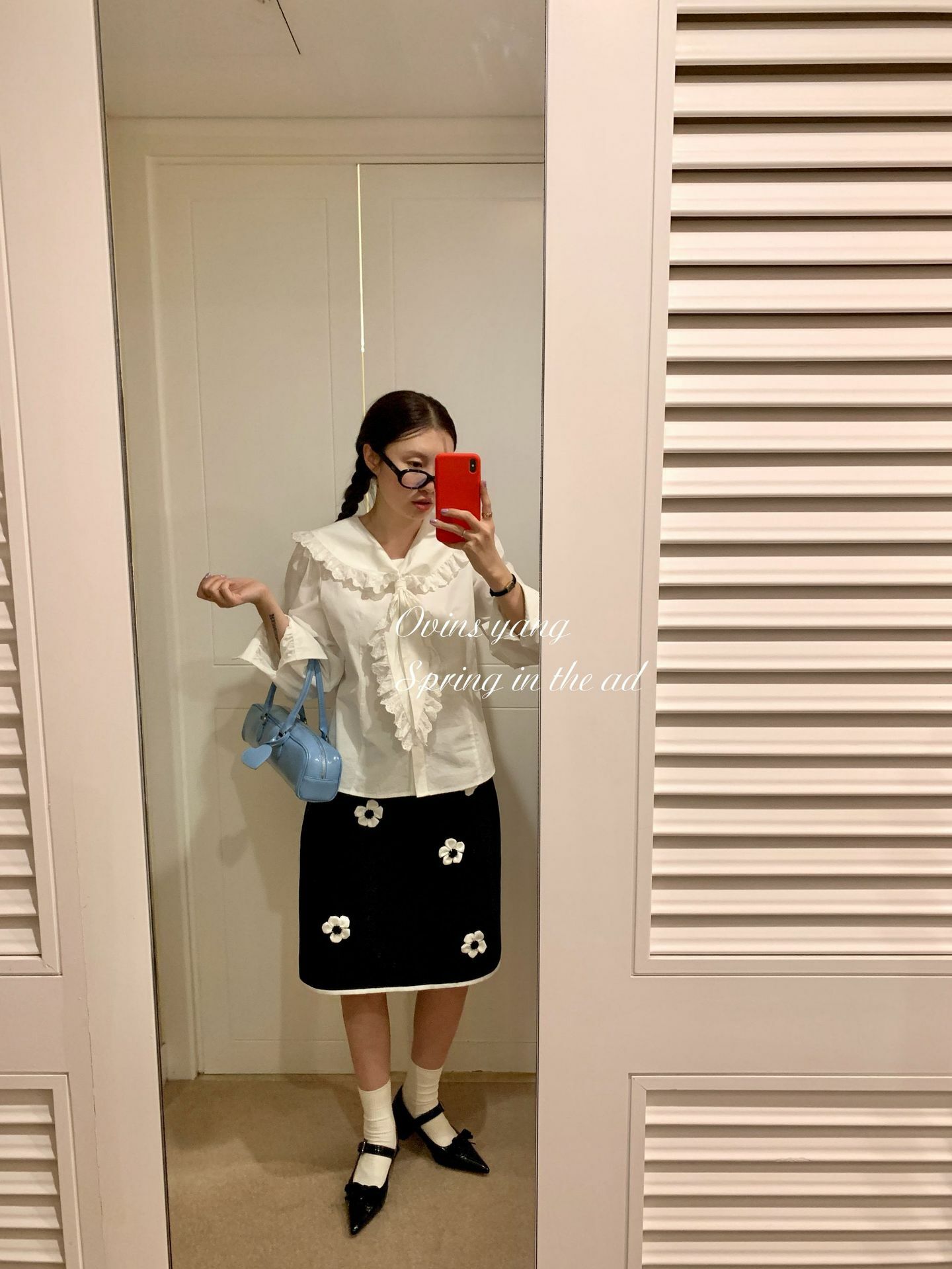 *o-ha-you*【FOY100657】花邊領海軍風白襯衫長袖設計感小眾少女感減齡上衣-如有需要請先諮詢