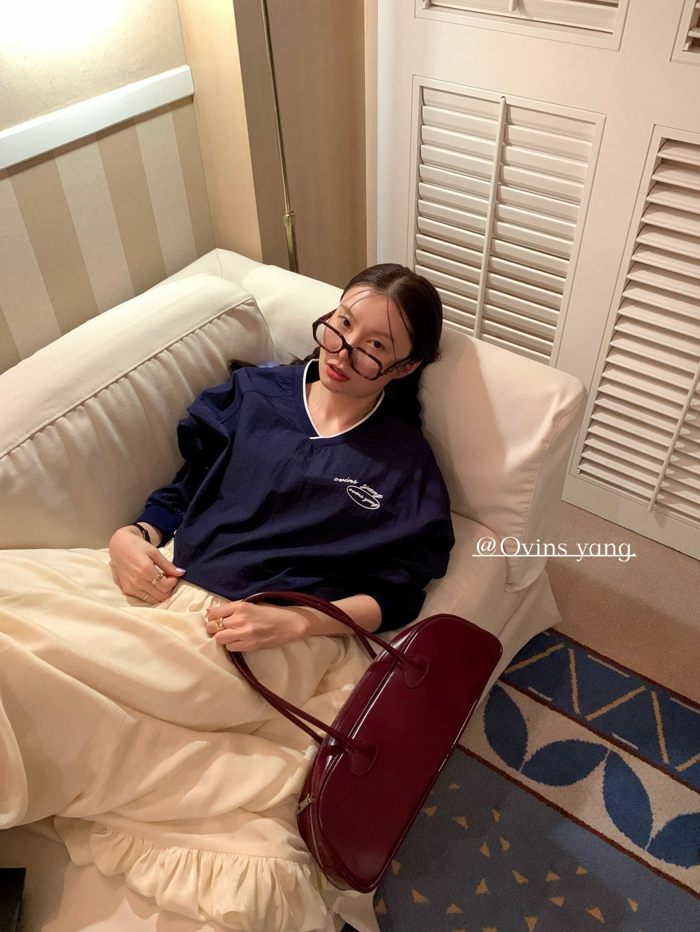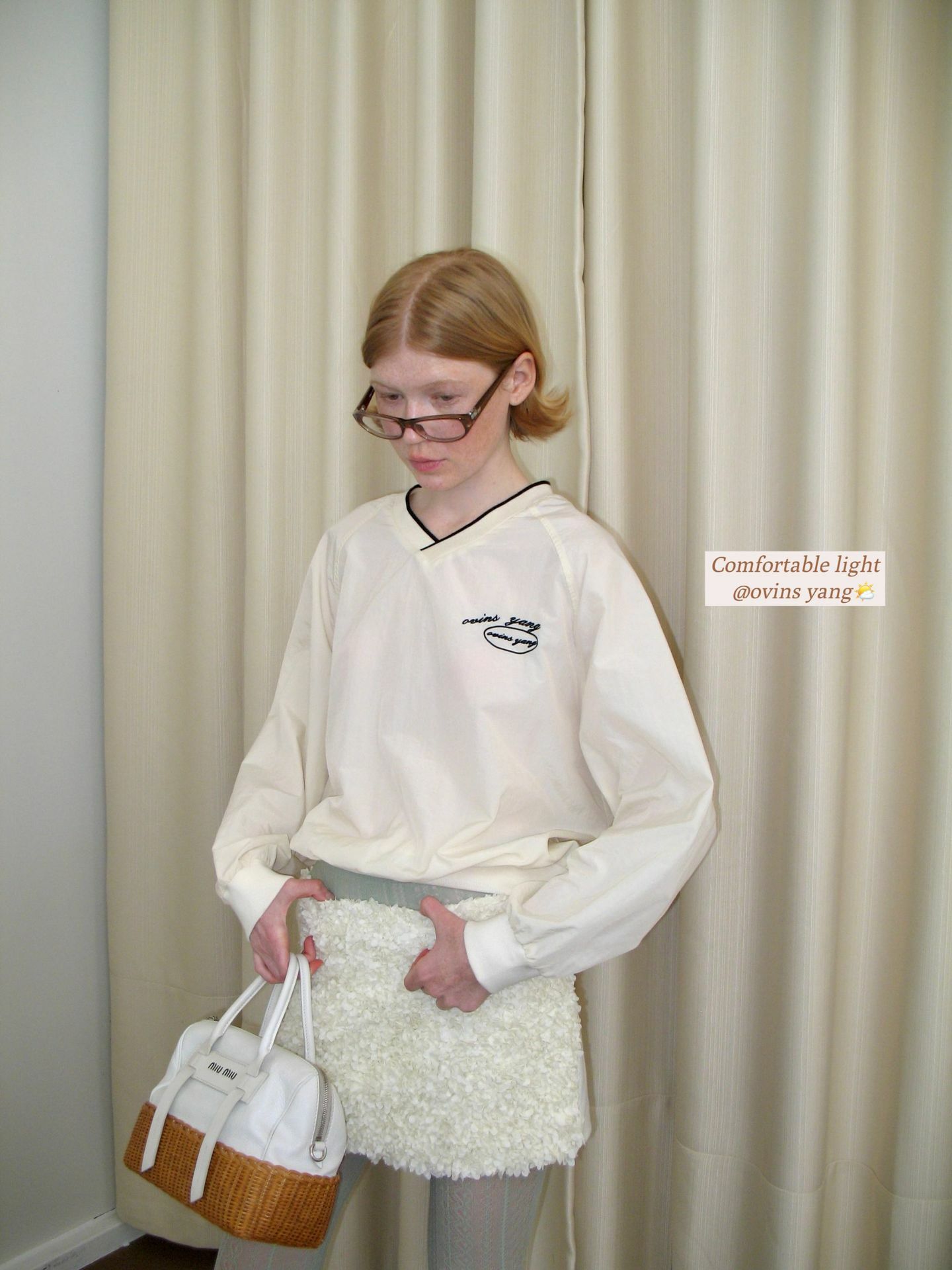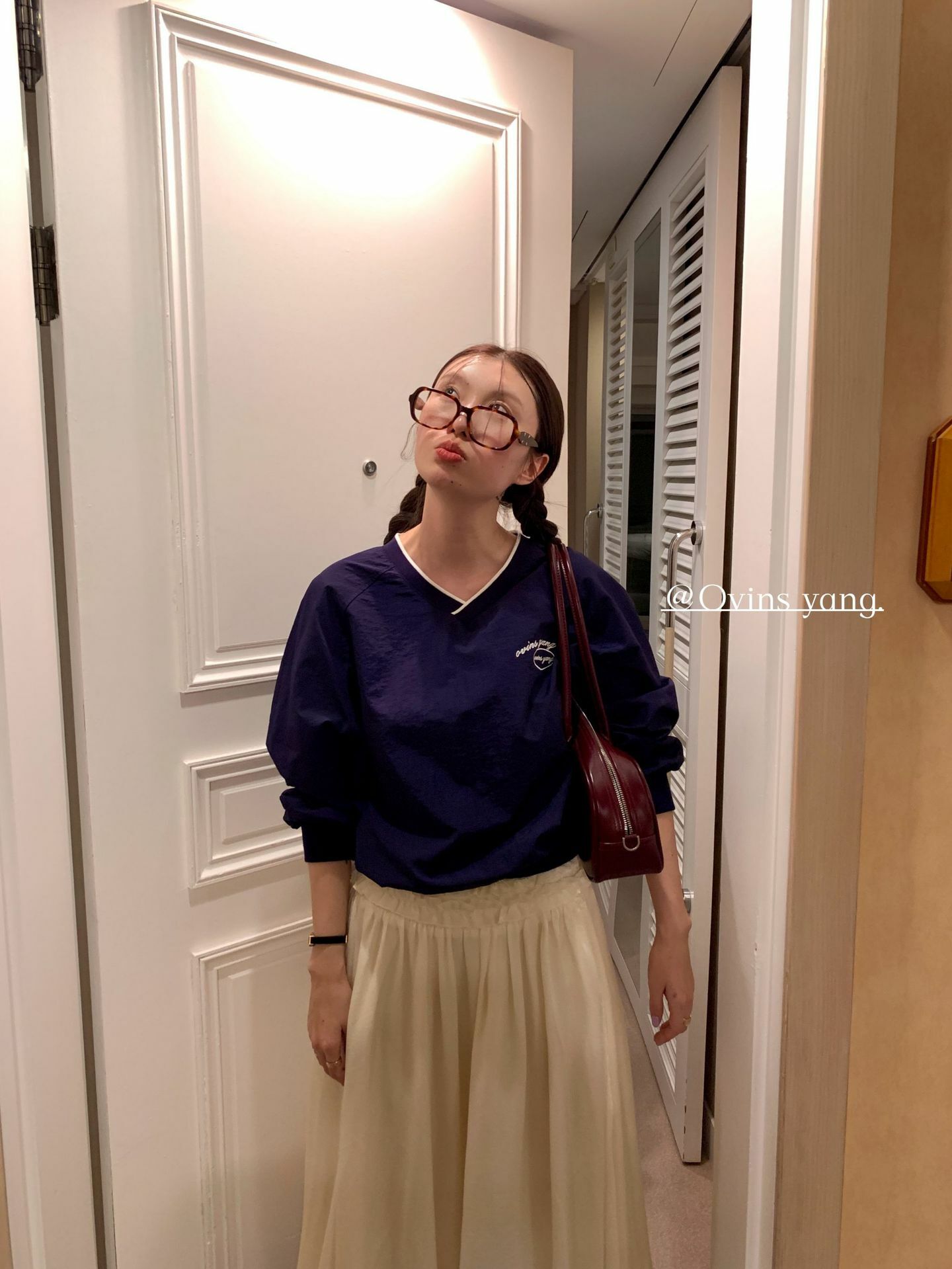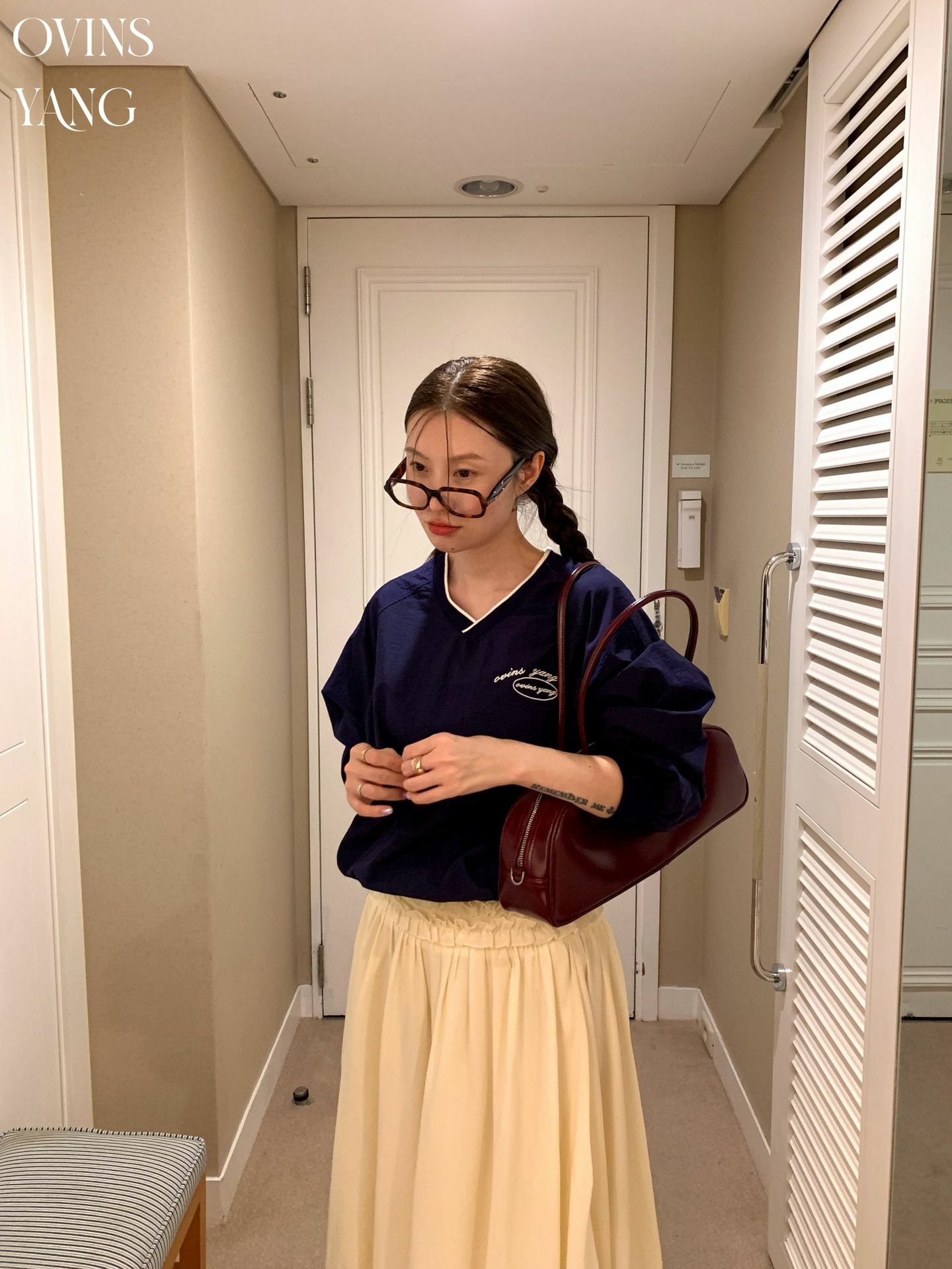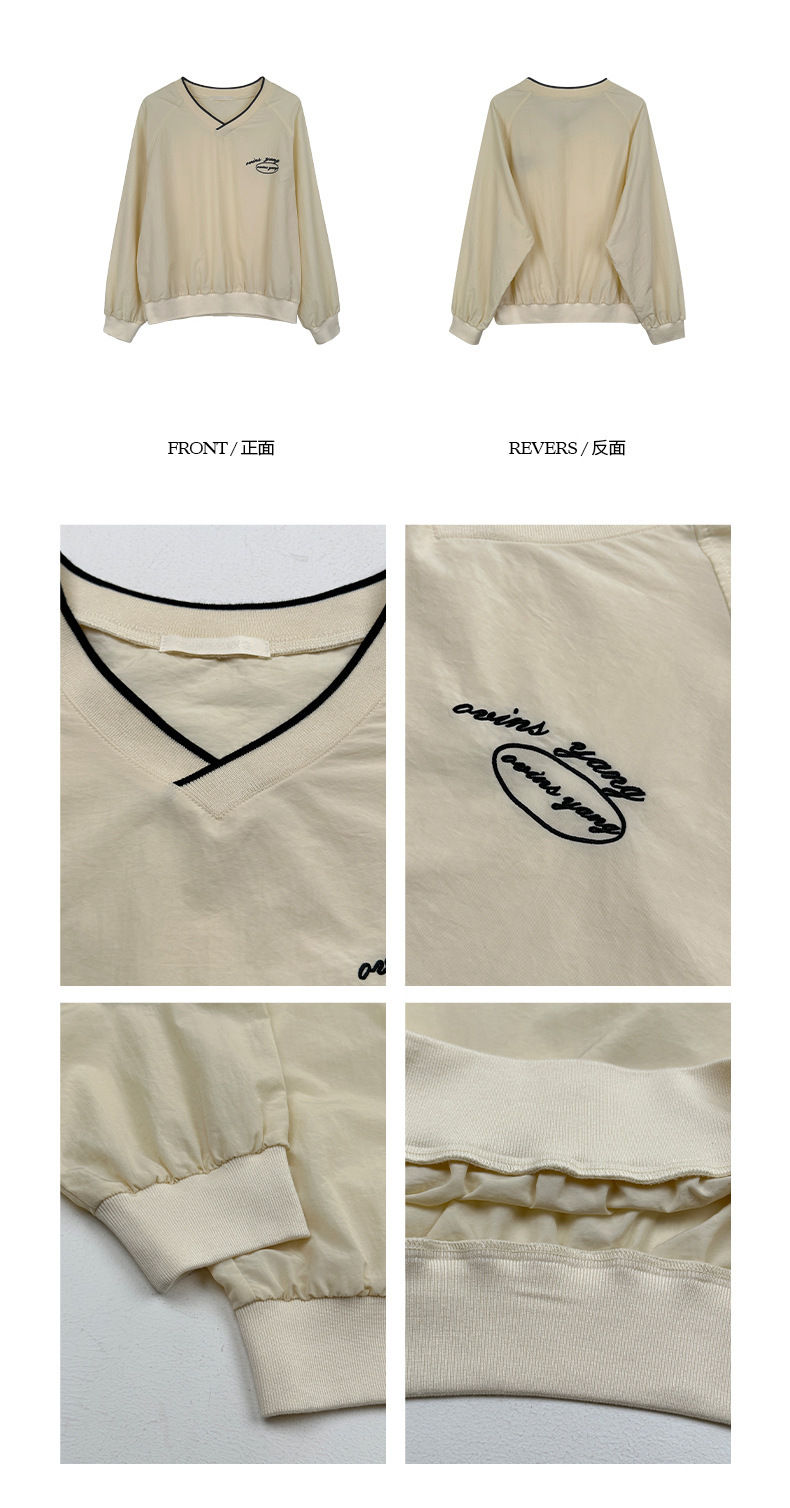 *o-ha-you*【FOY100666】字母刺繡V領衛衣女款2025新款春秋薄款寬鬆慵懶風上衣-2色-如有需要請先諮詢