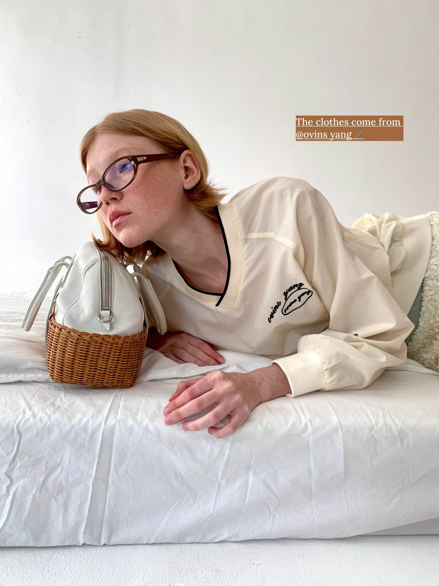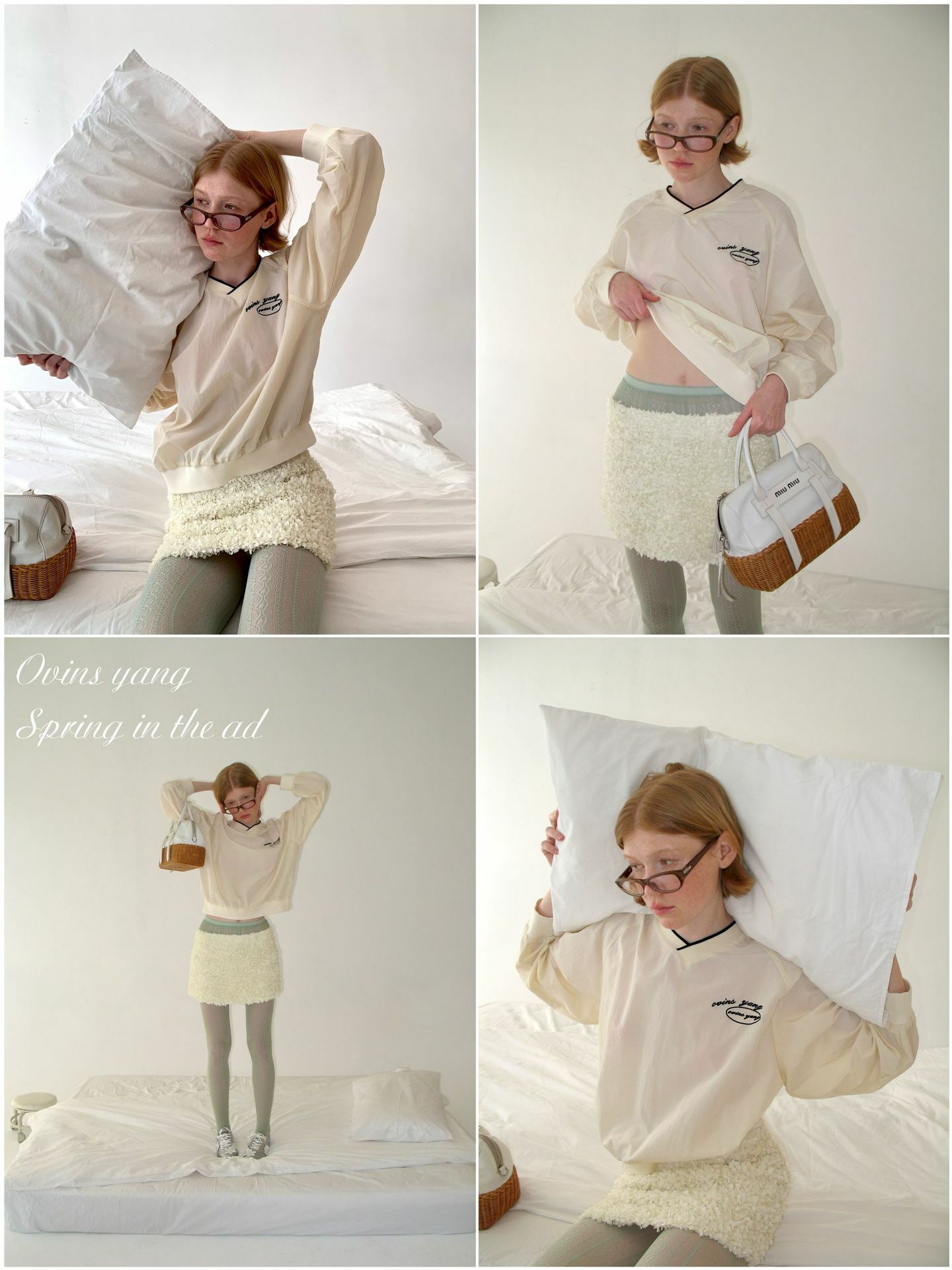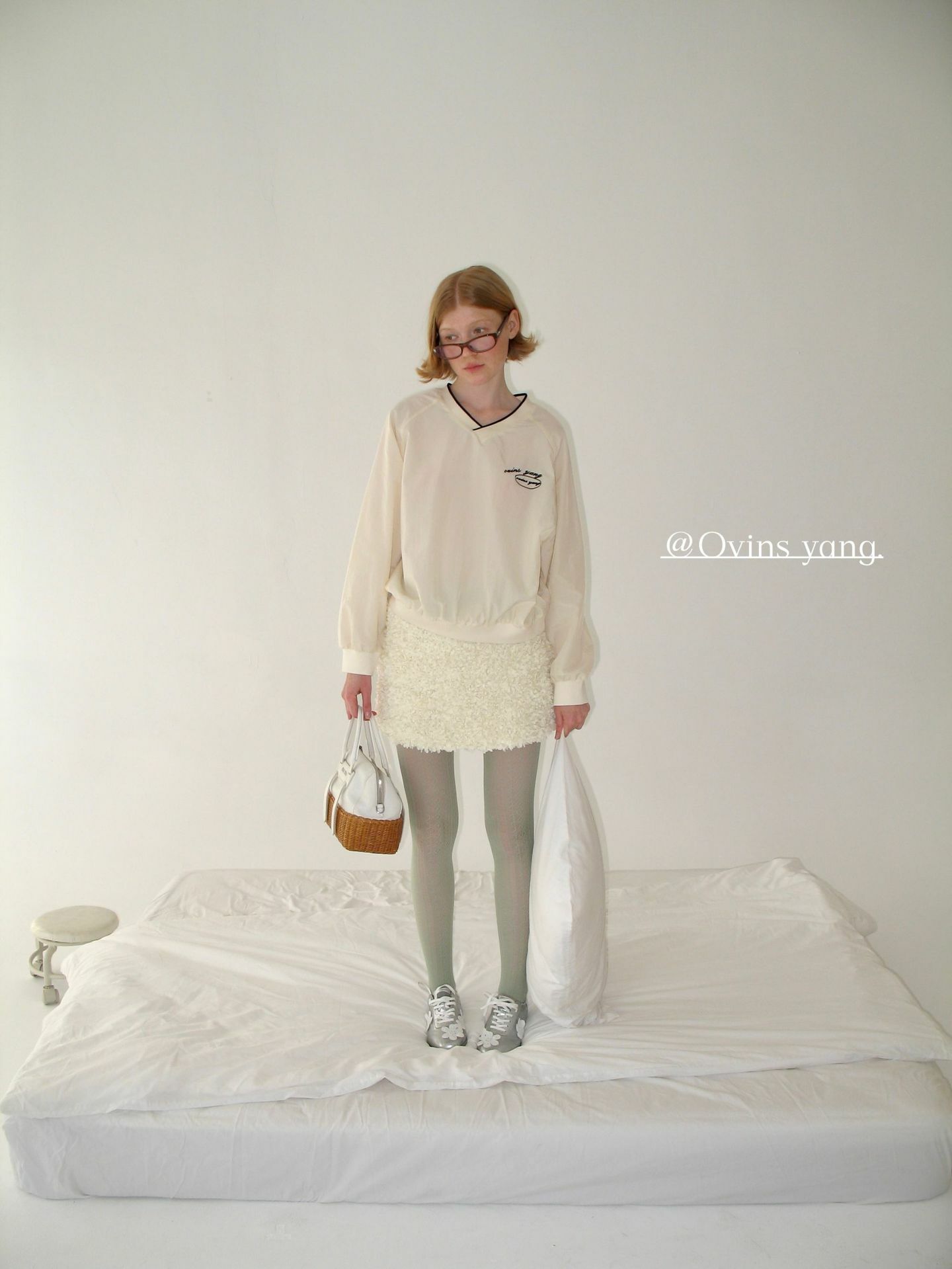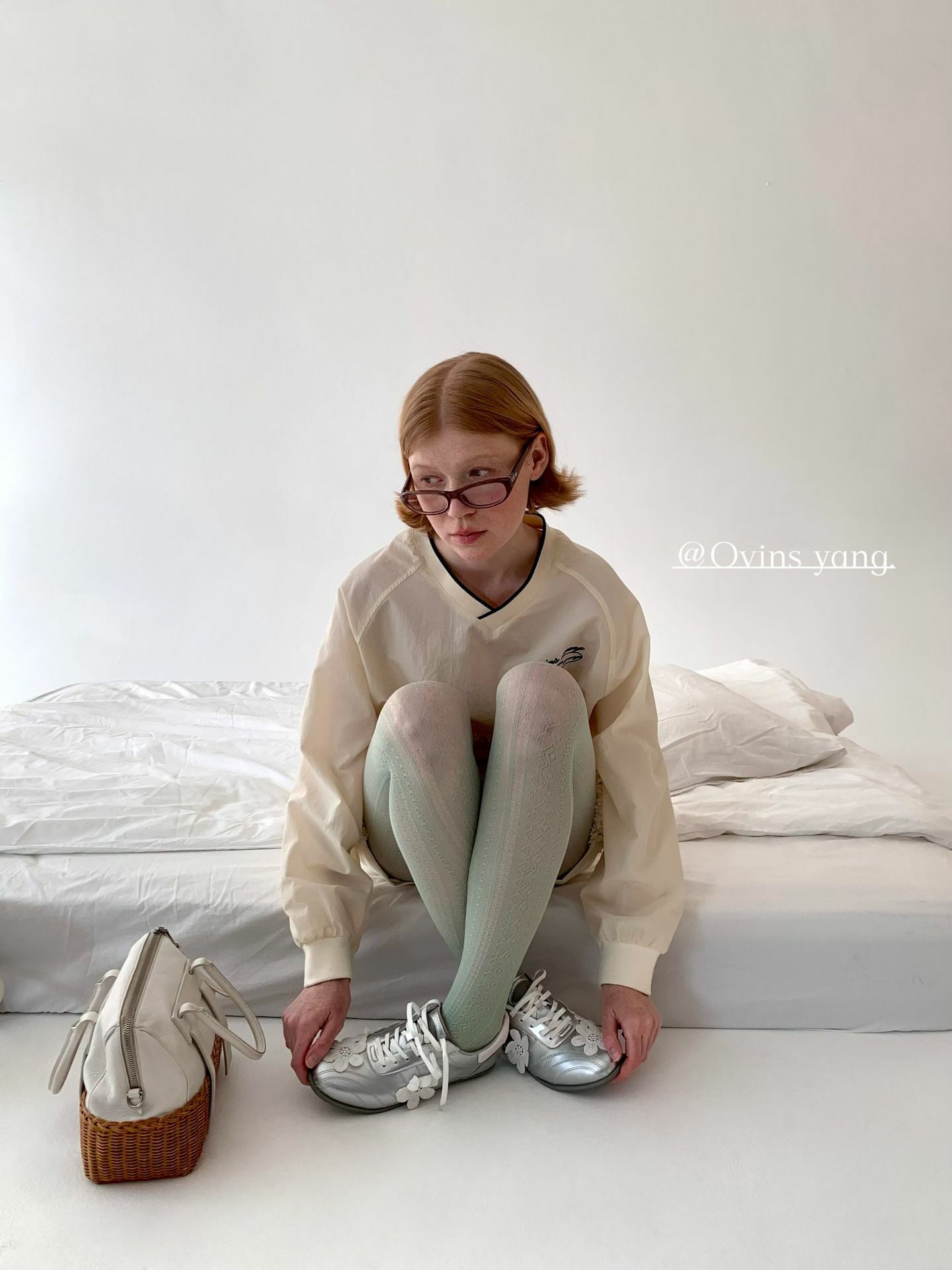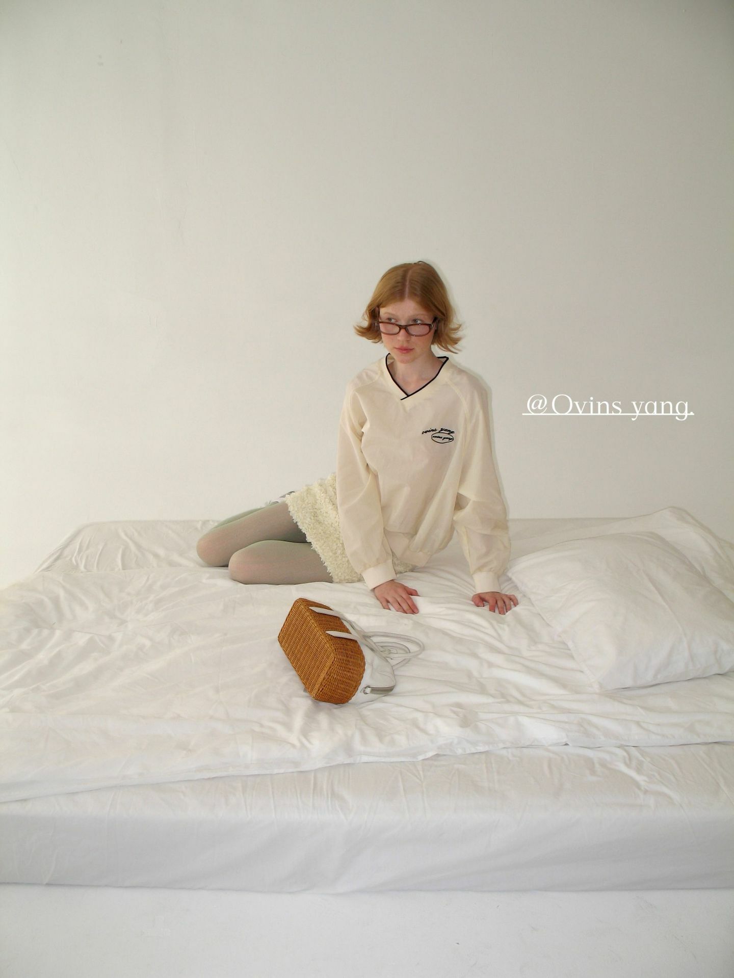 *o-ha-you*【FOY100666】字母刺繡V領衛衣女款2025新款春秋薄款寬鬆慵懶風上衣-2色-如有需要請先諮詢