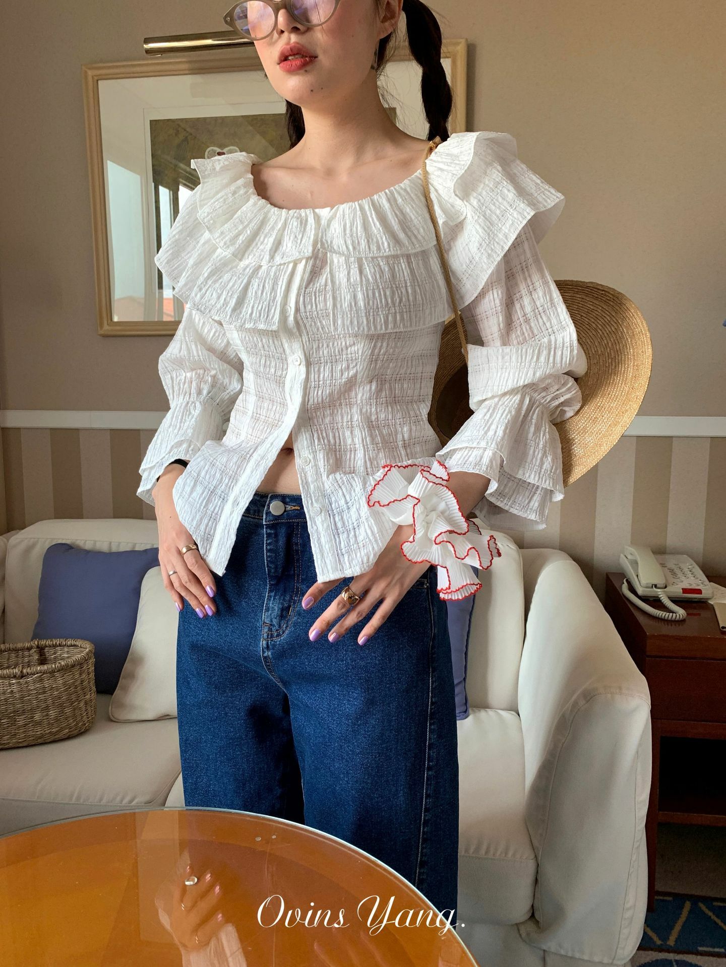 *o-ha-you*【FOY100675】法式收腰襯衫女長袖設計感小眾獨特絕美小上衣重工襯衣-2色-如有需要請先諮詢