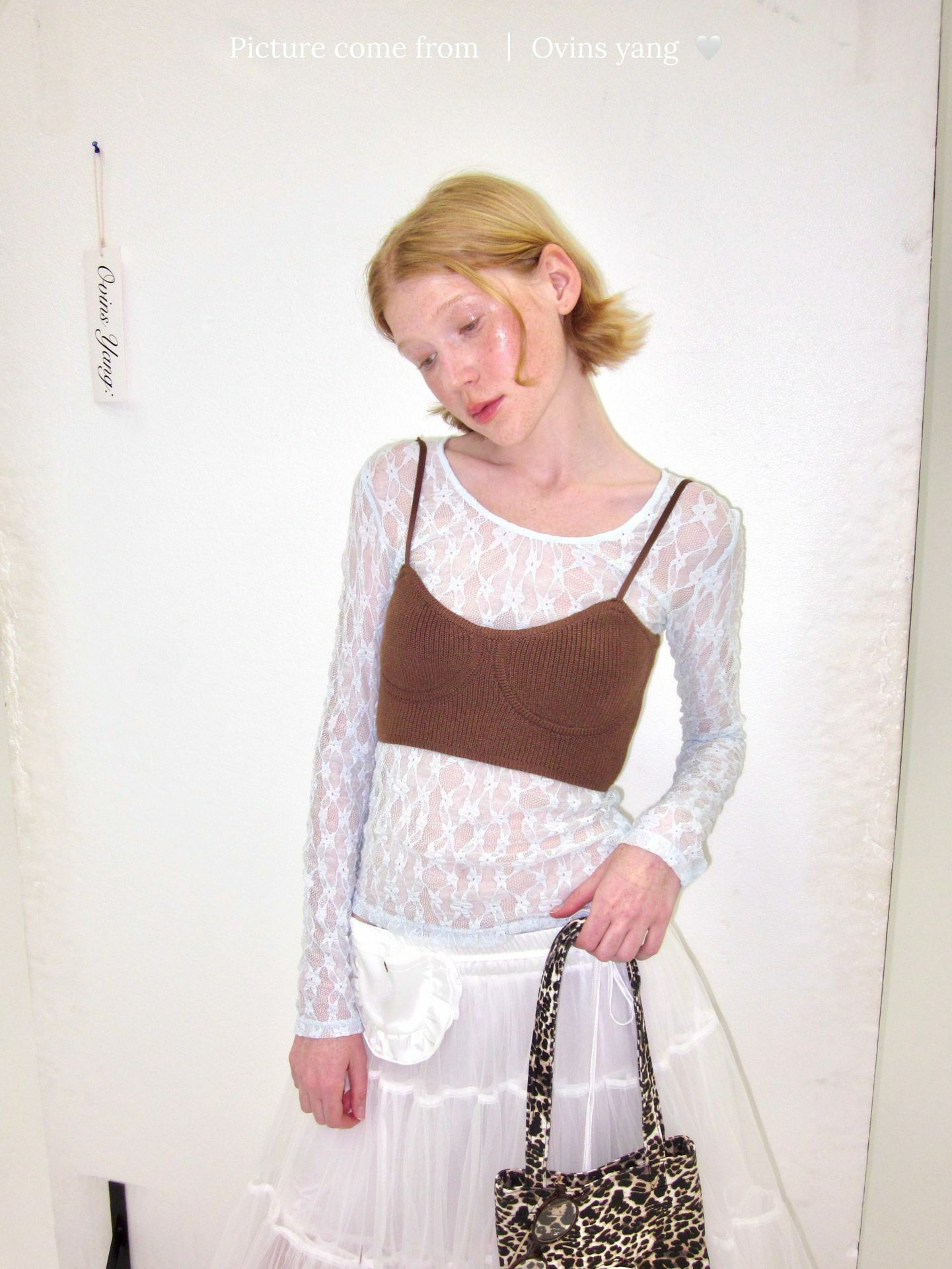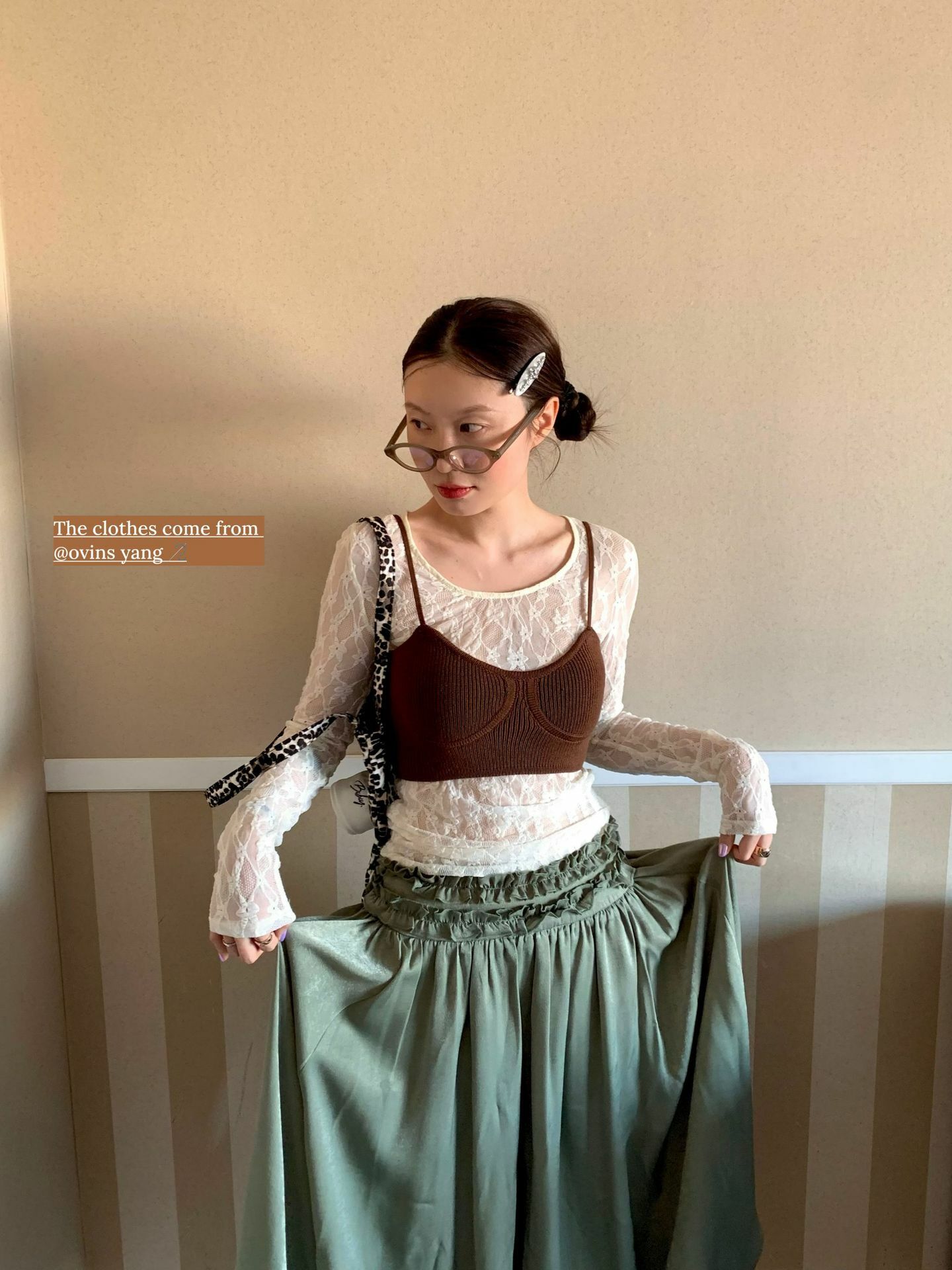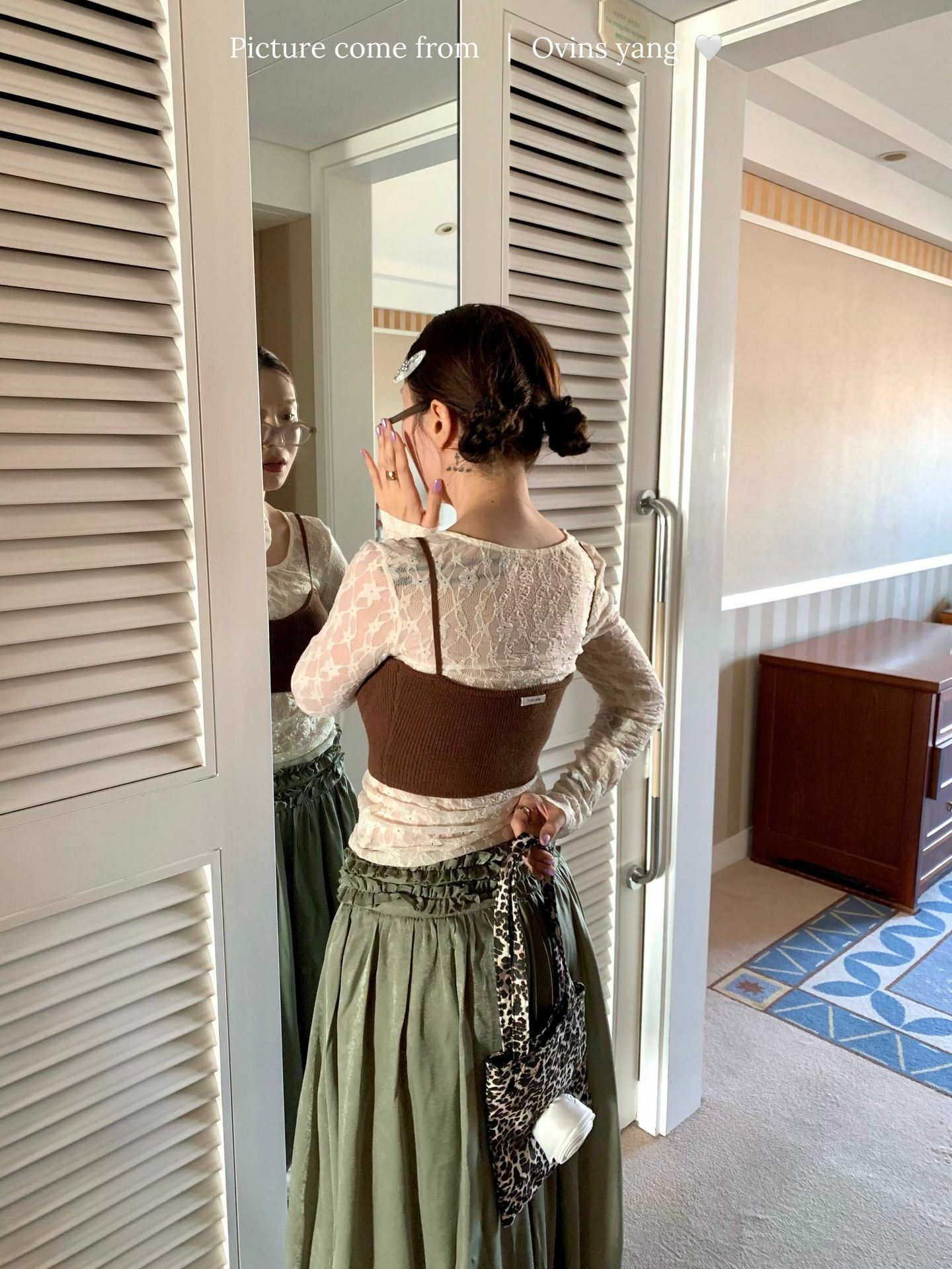 *o-ha-you*【FOY100680】蕾絲打底衫內搭薄款疊穿性感純欲長袖上衣鏤空小衫-3色-如有需要請先諮詢