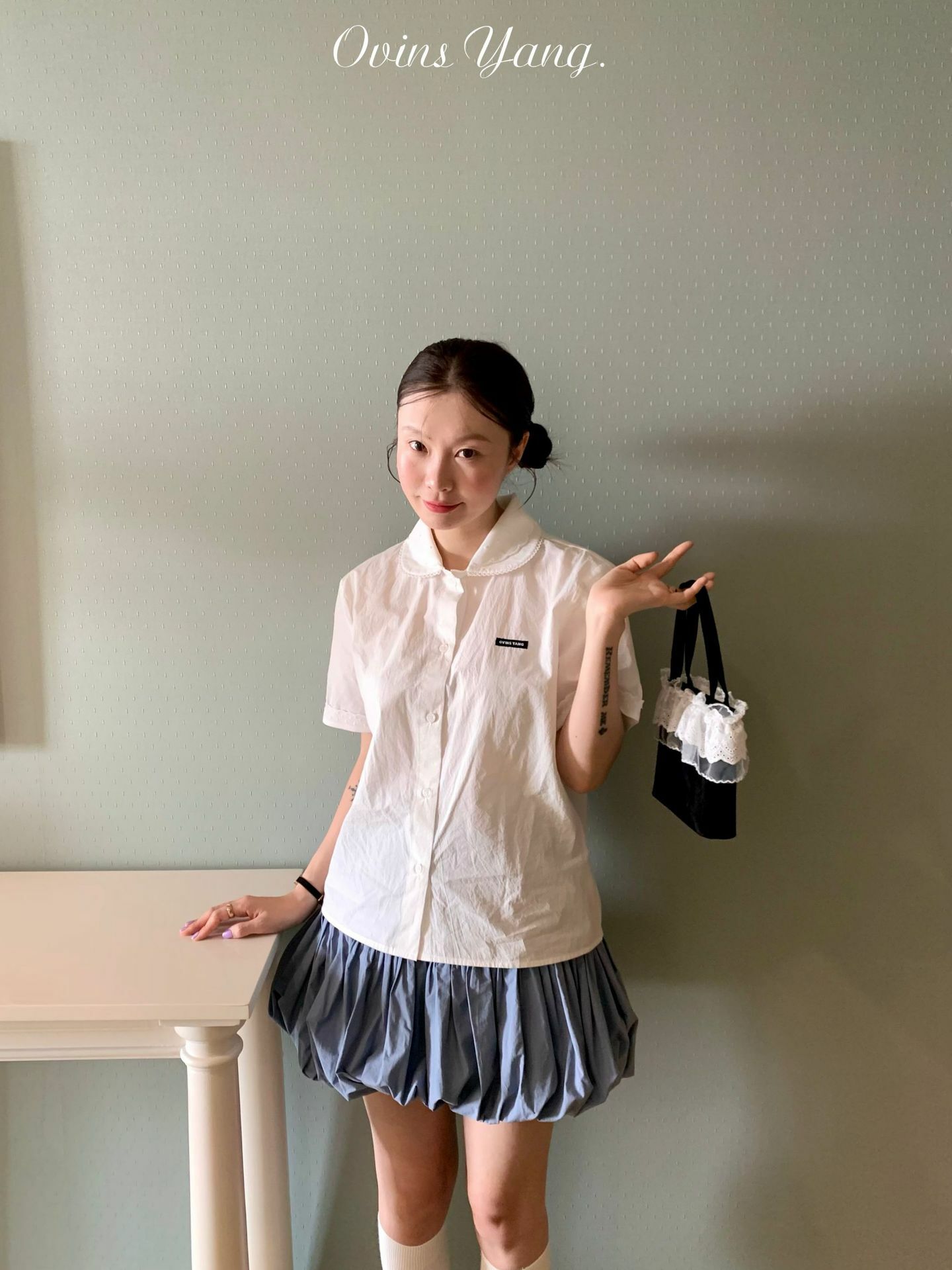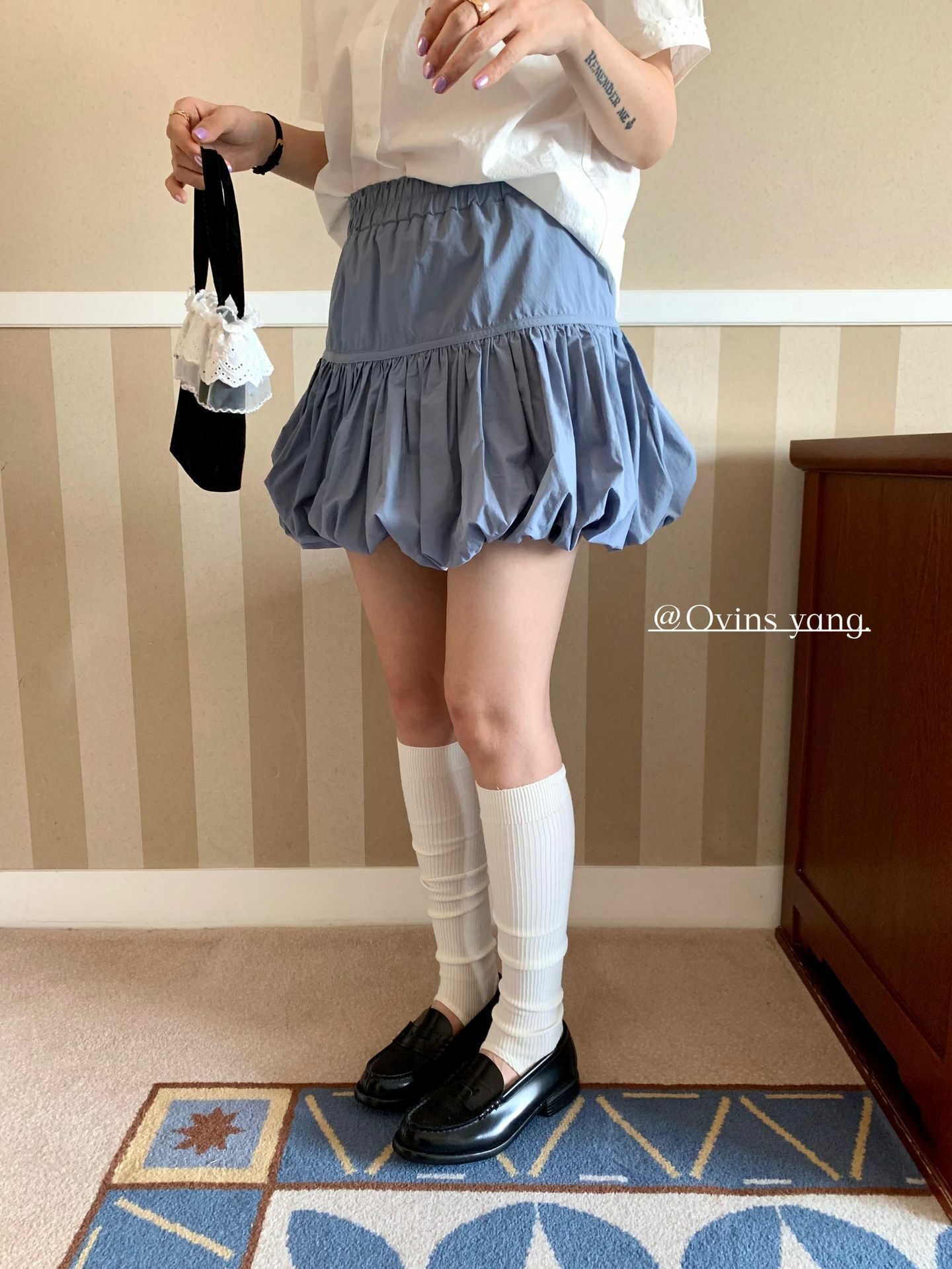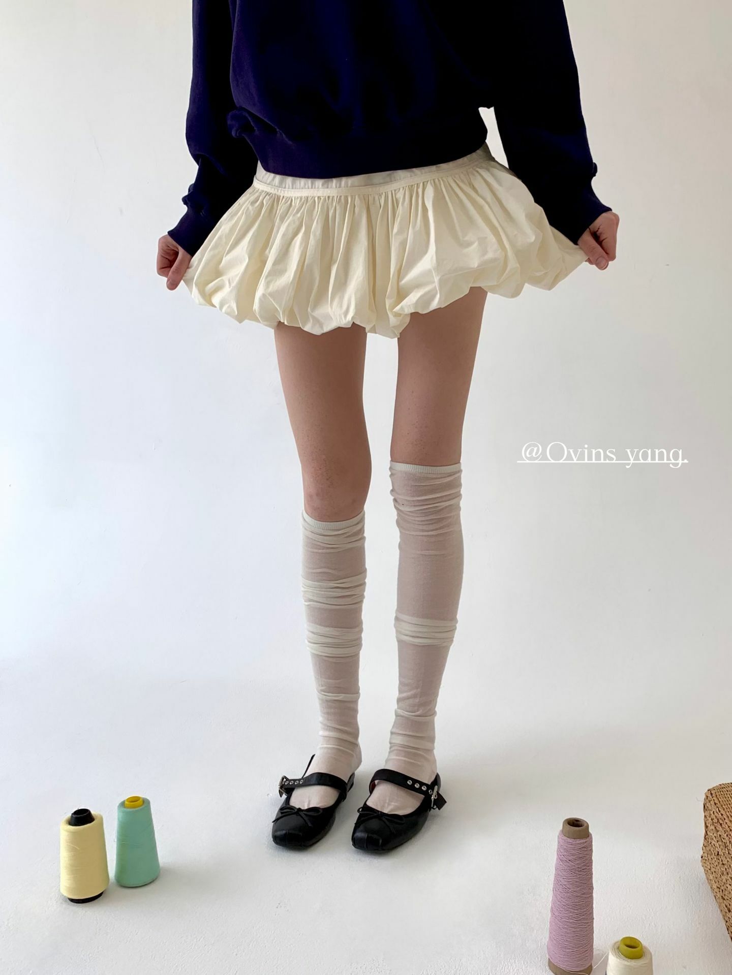 *o-ha-you*【FOY100689】A字花苞裙半身裙春秋設計感小眾甜美少女感百褶短裙-2色-如有需要請先諮詢