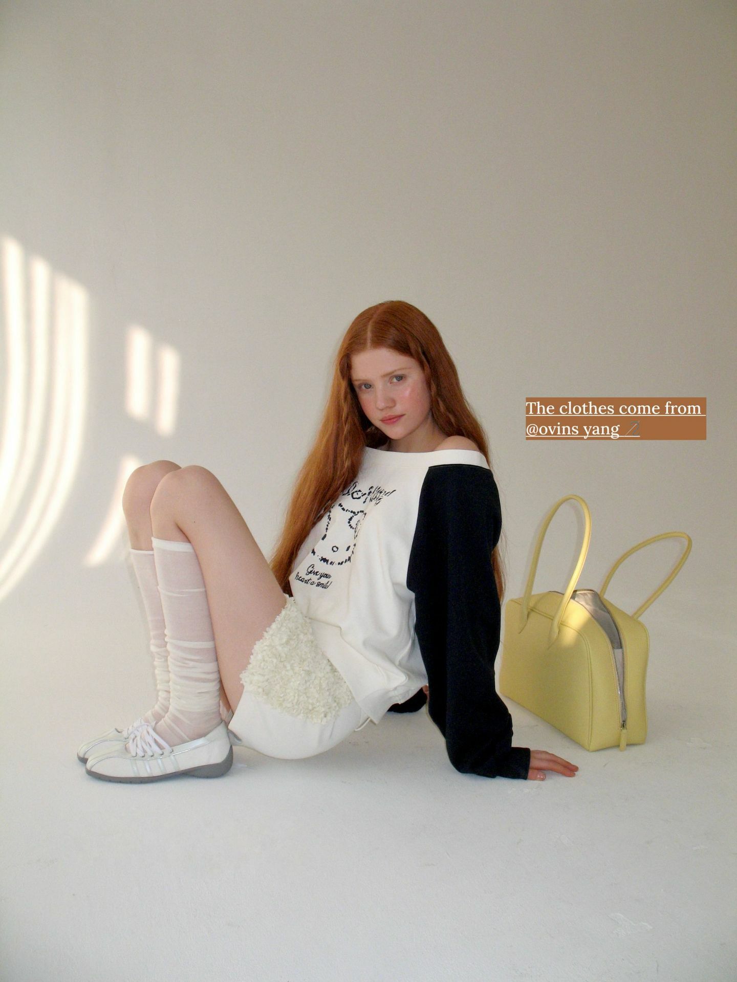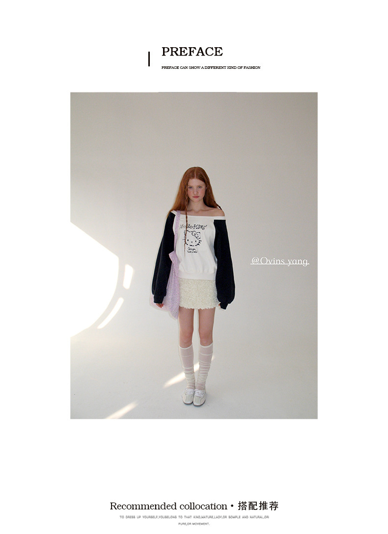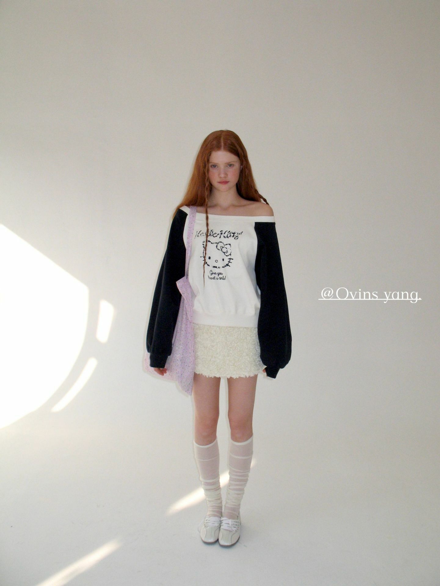 *o-ha-you*【FOY100703】KT貓無帽圓領衛衣女款2025新款春秋韓系慵懶風露肩上衣-如有需要請先諮詢