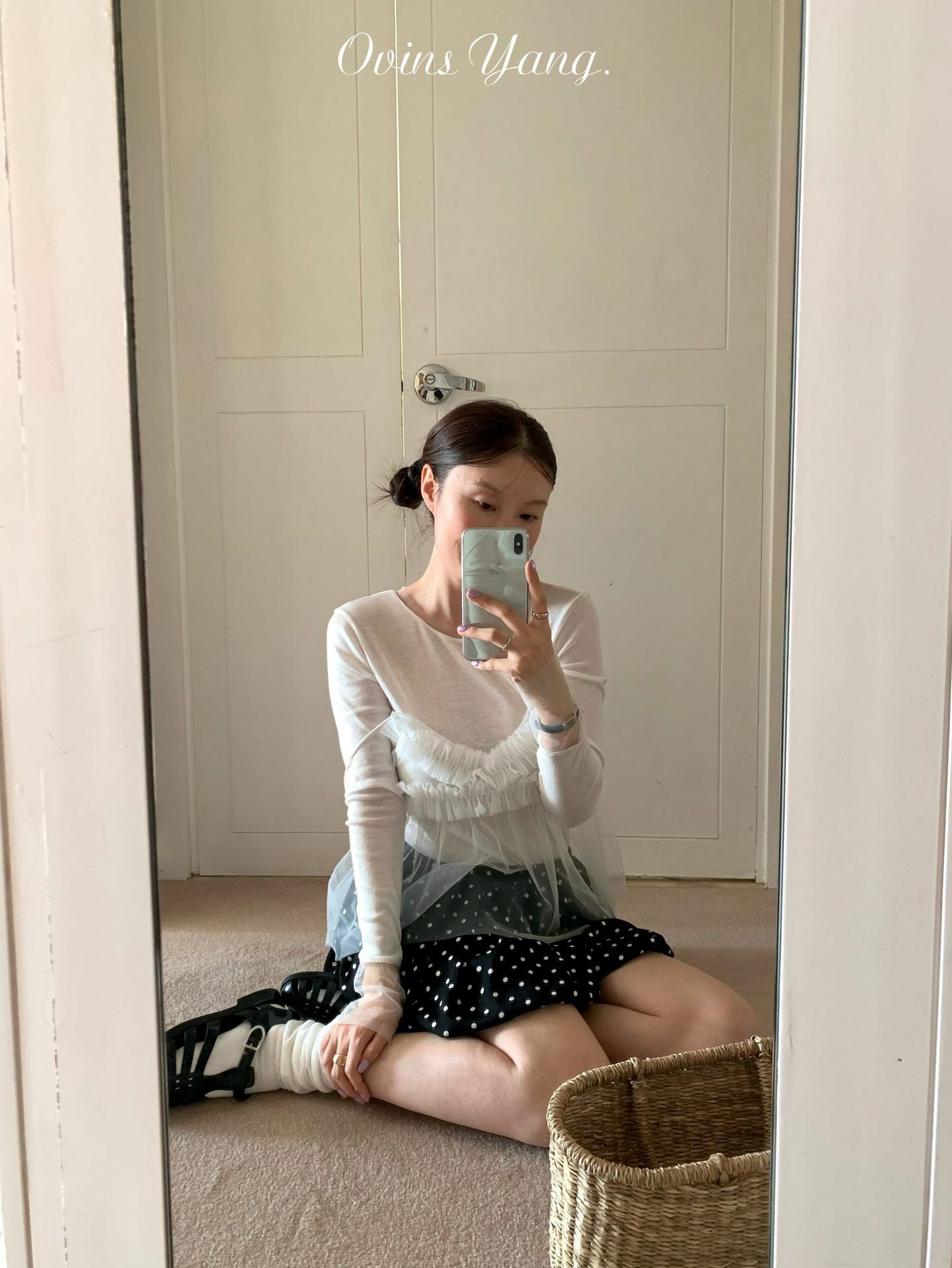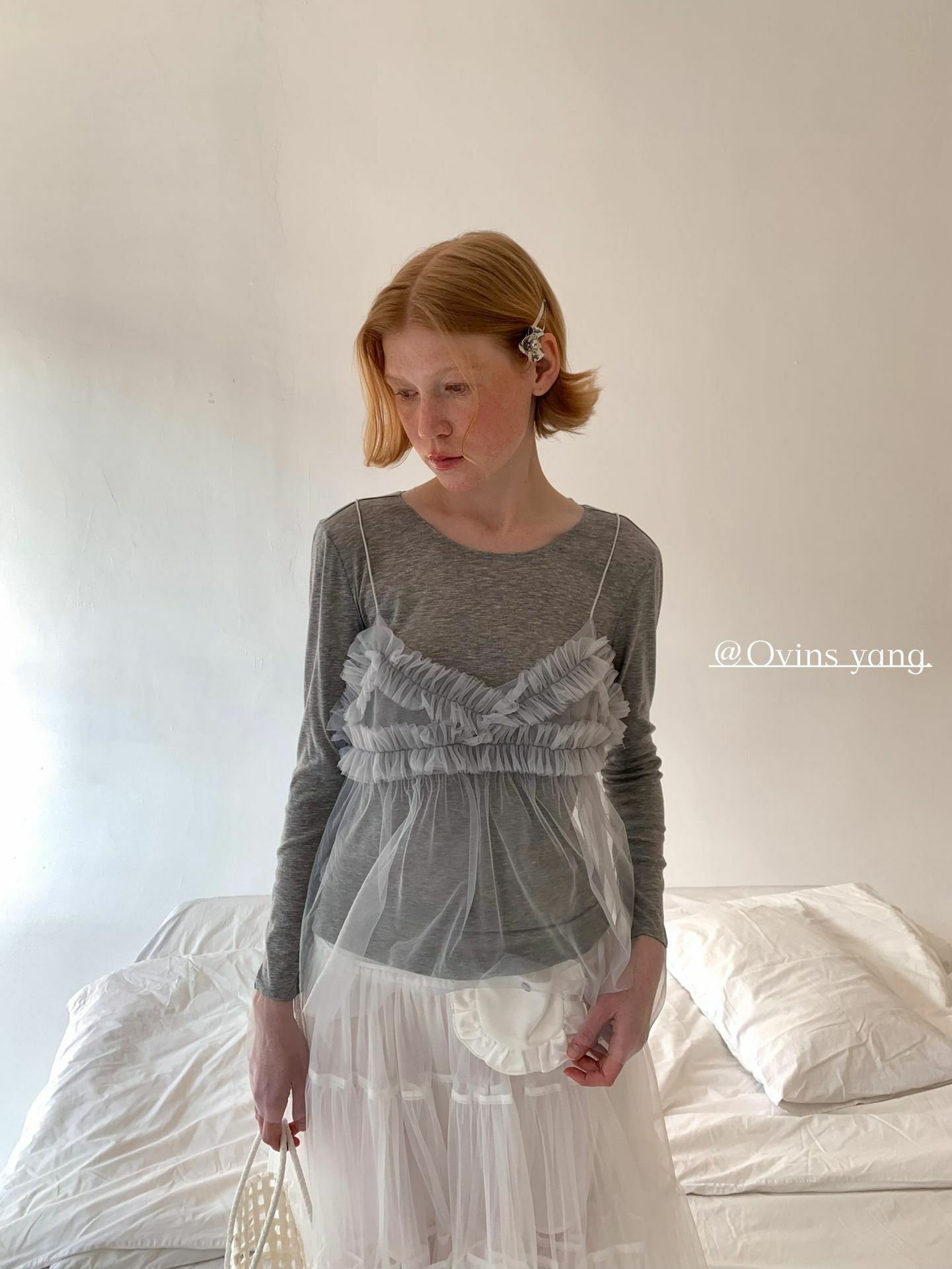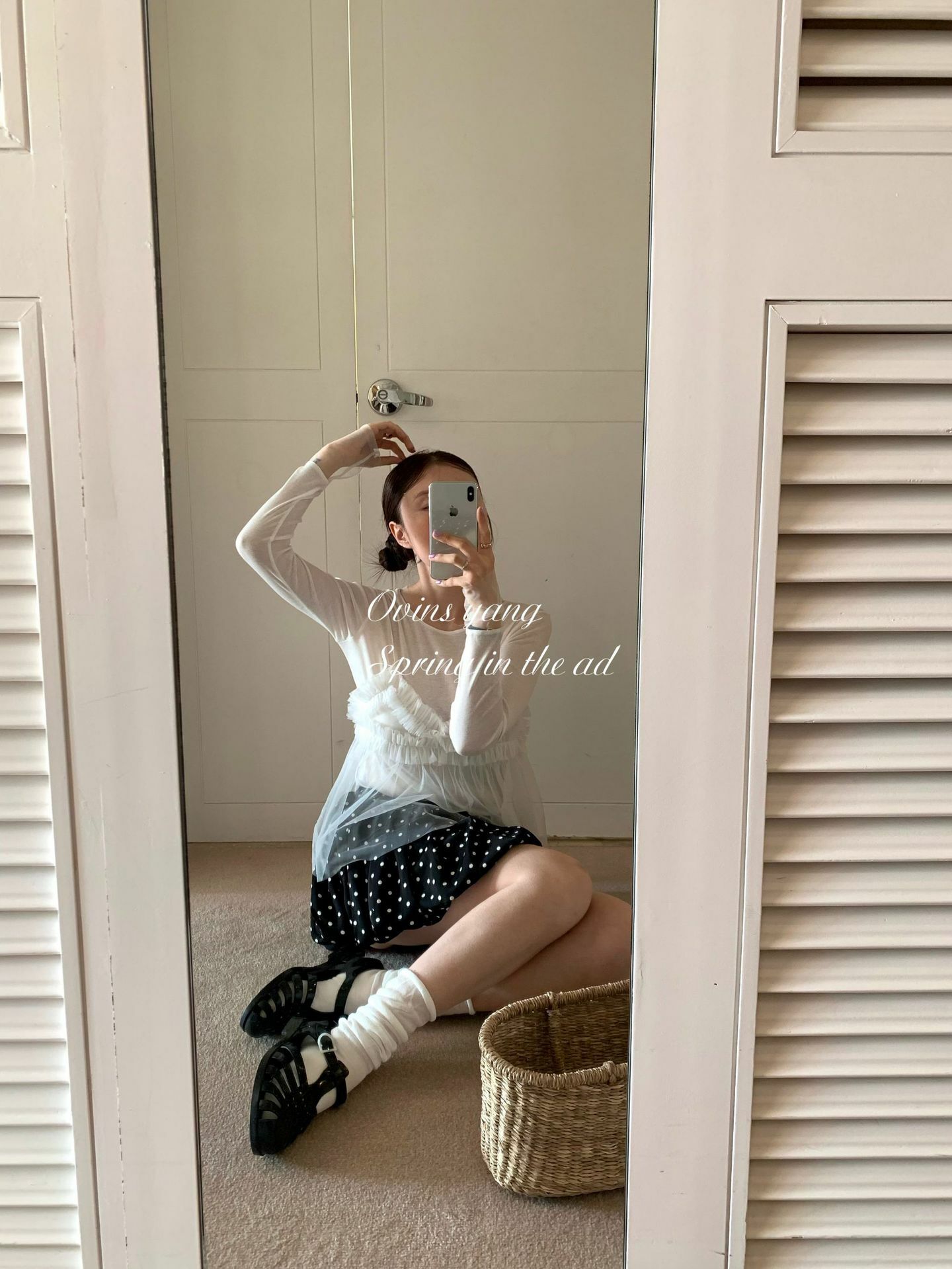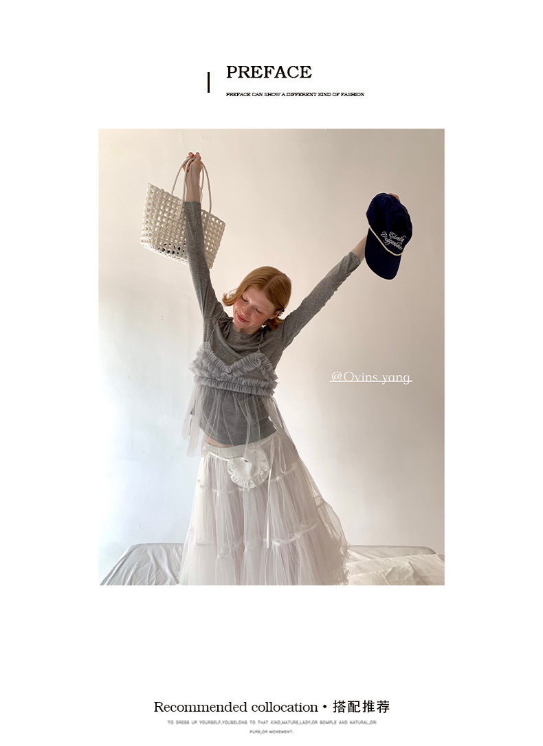 *o-ha-you*【FOY100707】可拆式拼接網紗內搭打底衫設計感小眾修身長袖T恤上衣-4色-如有需要請先諮詢