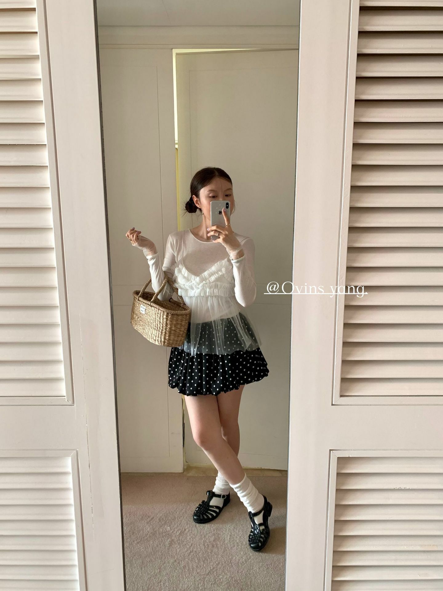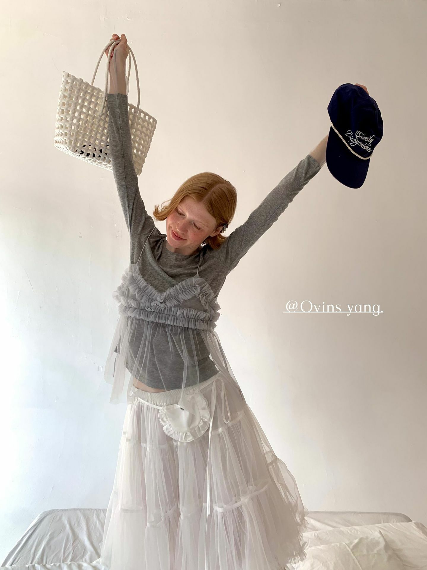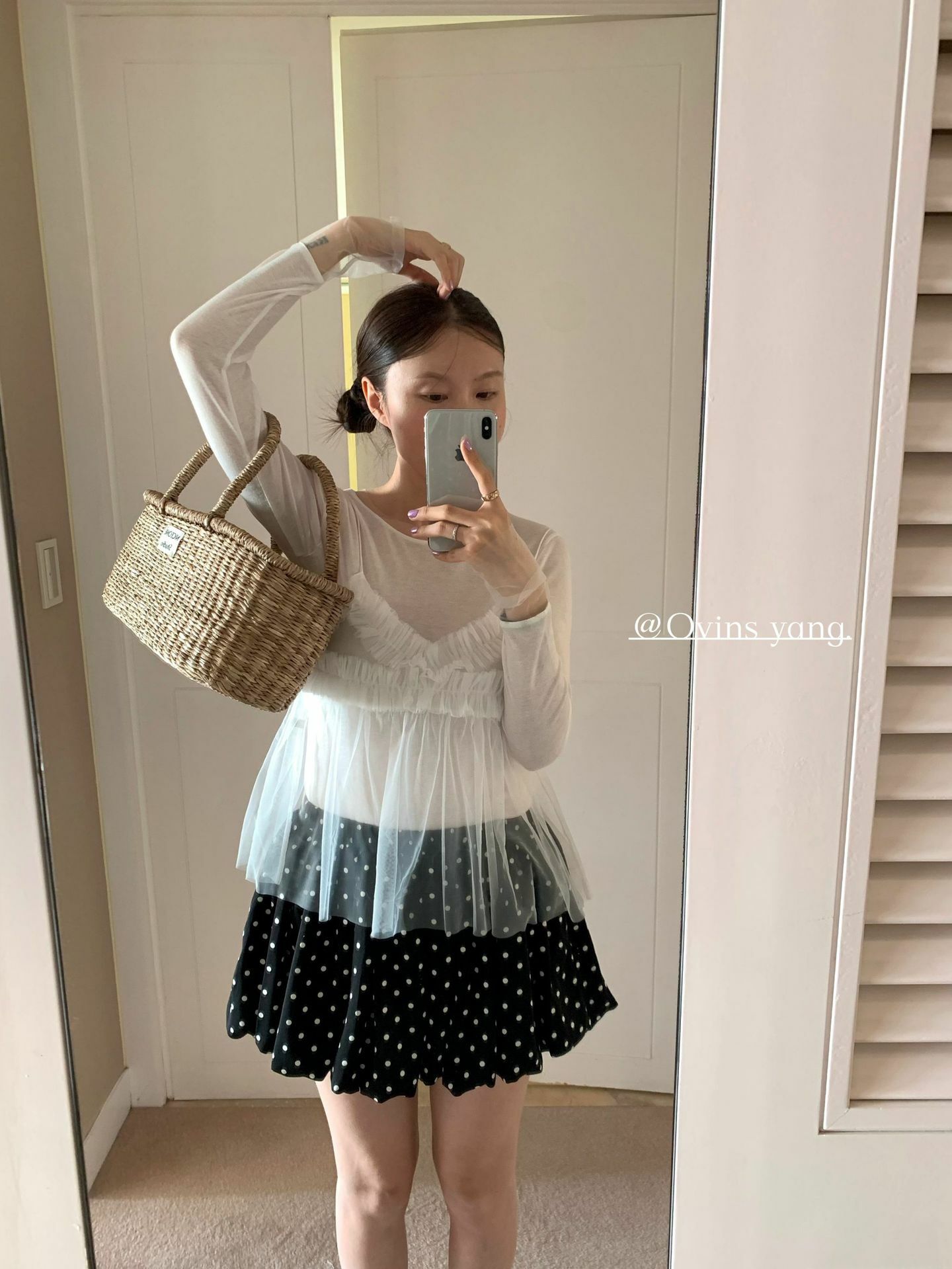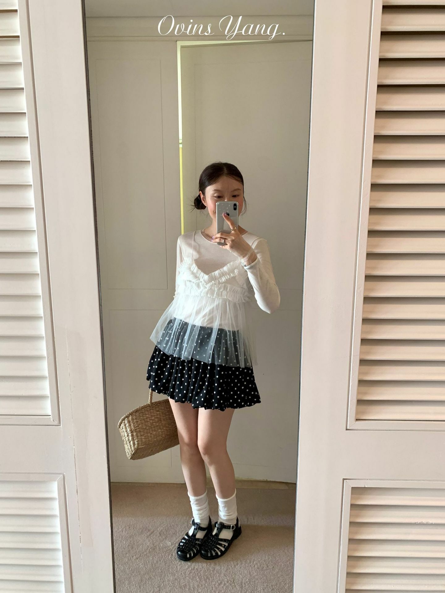 *o-ha-you*【FOY100707】可拆式拼接網紗內搭打底衫設計感小眾修身長袖T恤上衣-4色-如有需要請先諮詢