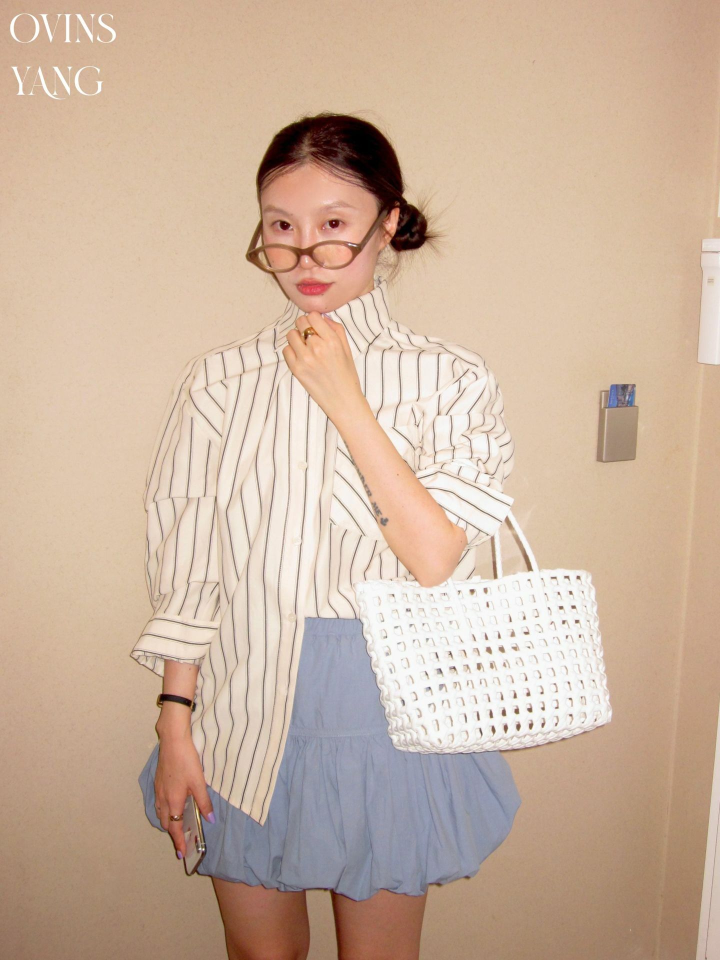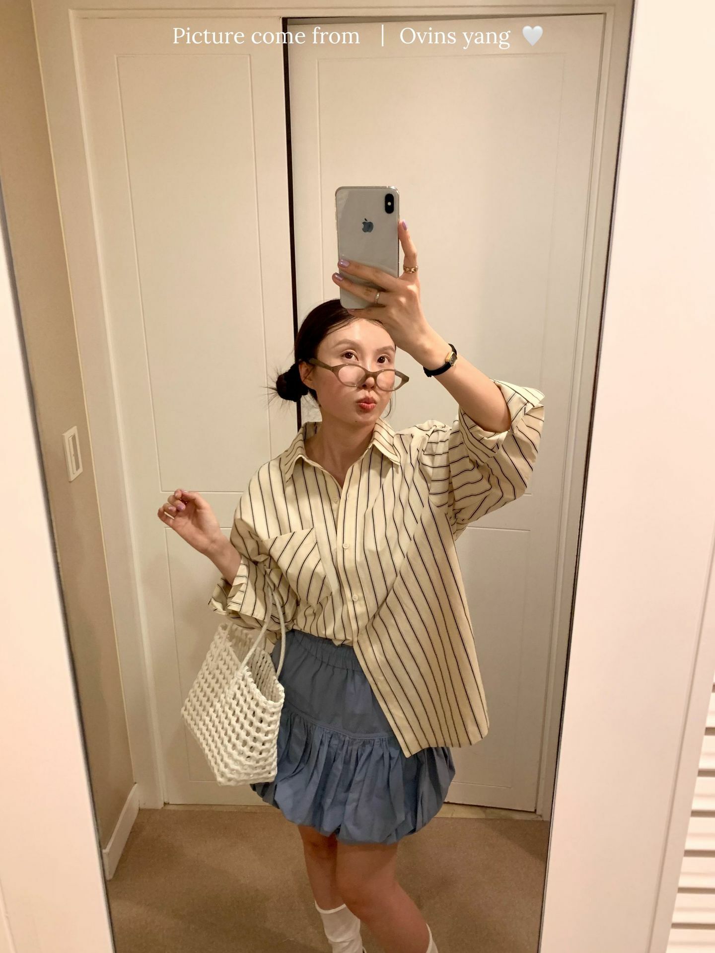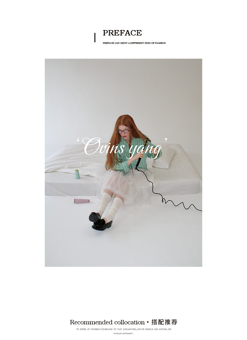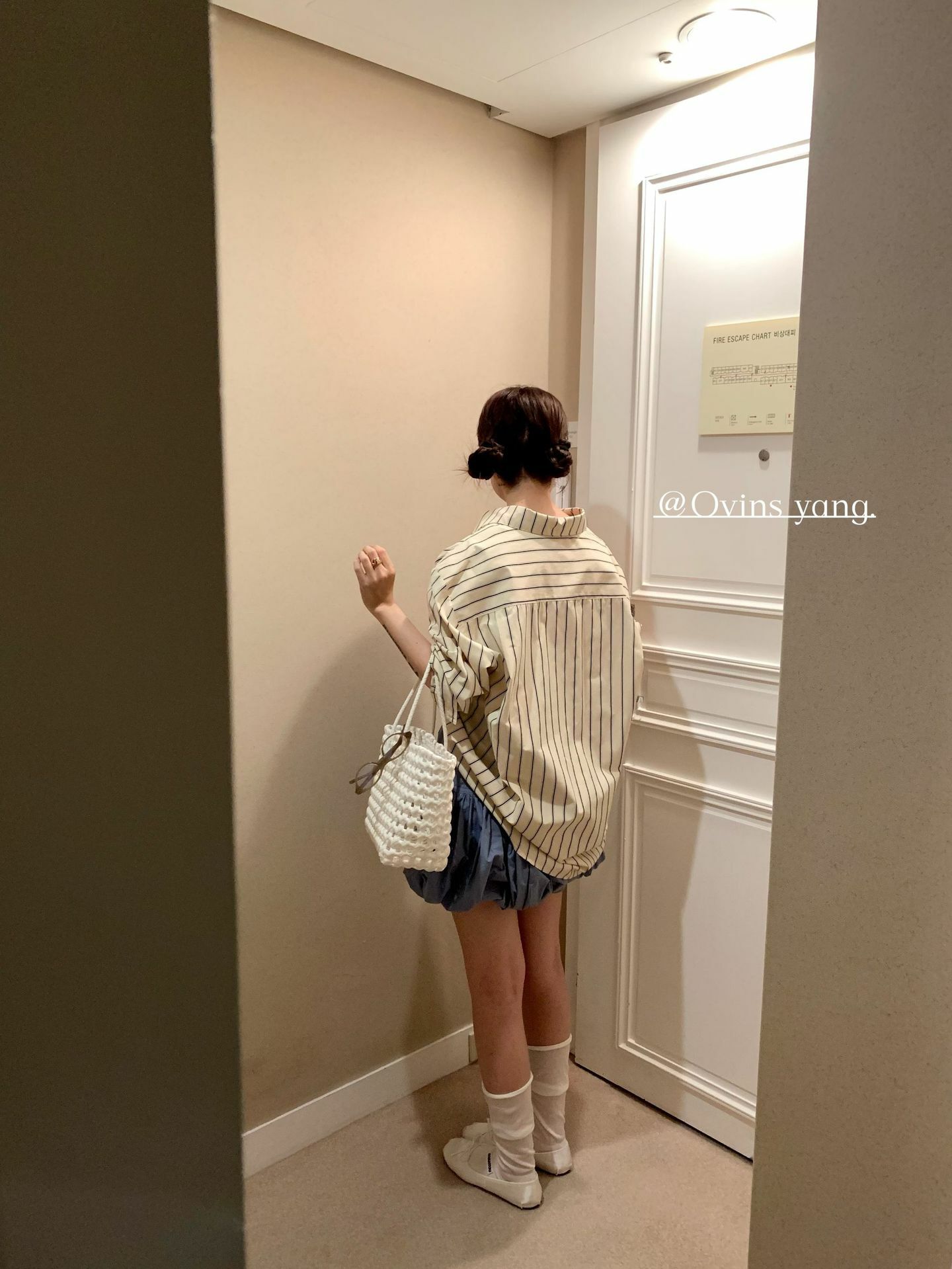 *o-ha-you*【FOY100756】綠色直條紋襯衫長袖設計感高級感輕奢學院風甜美上衣-2色-如有需要請先諮詢