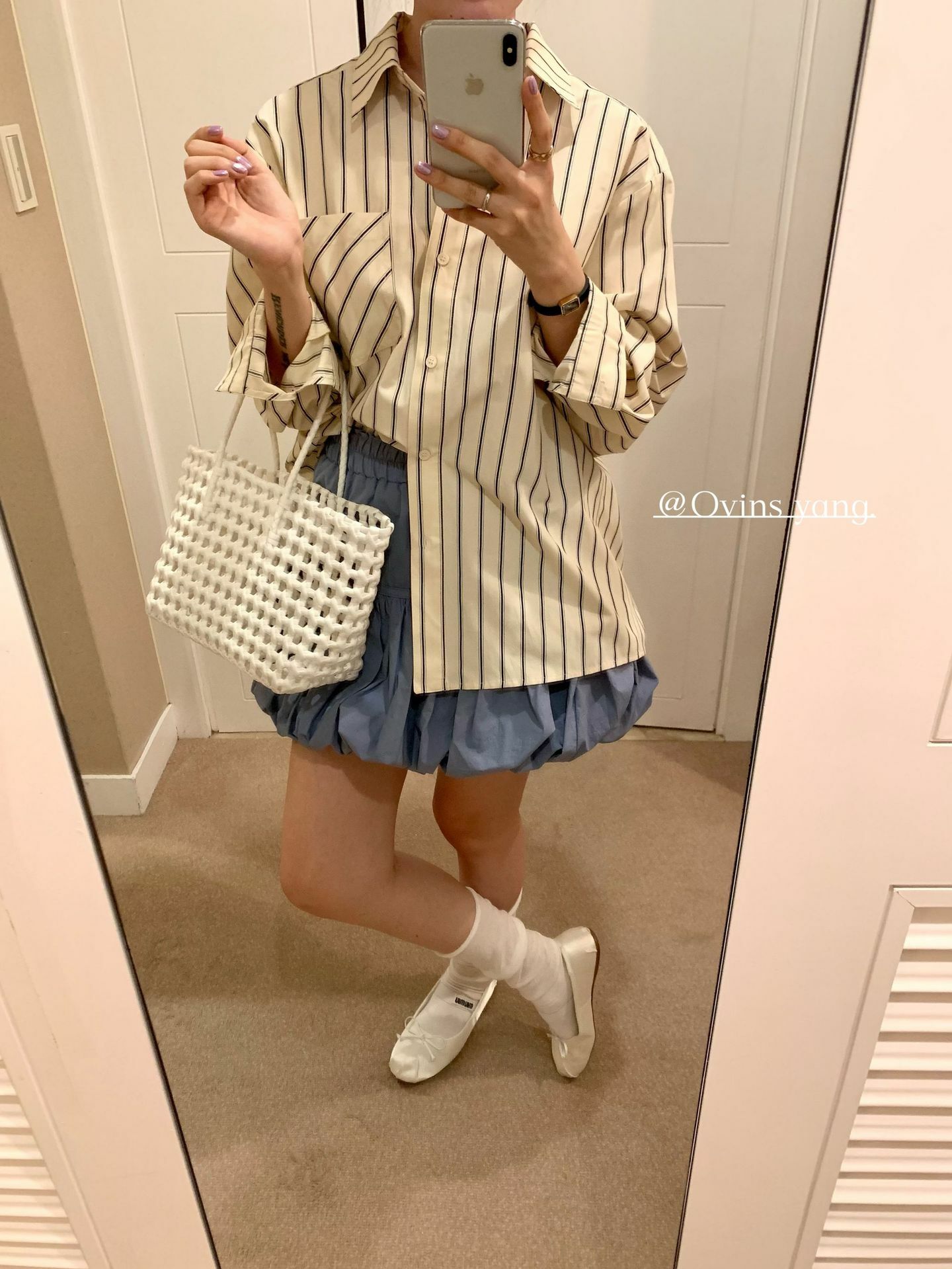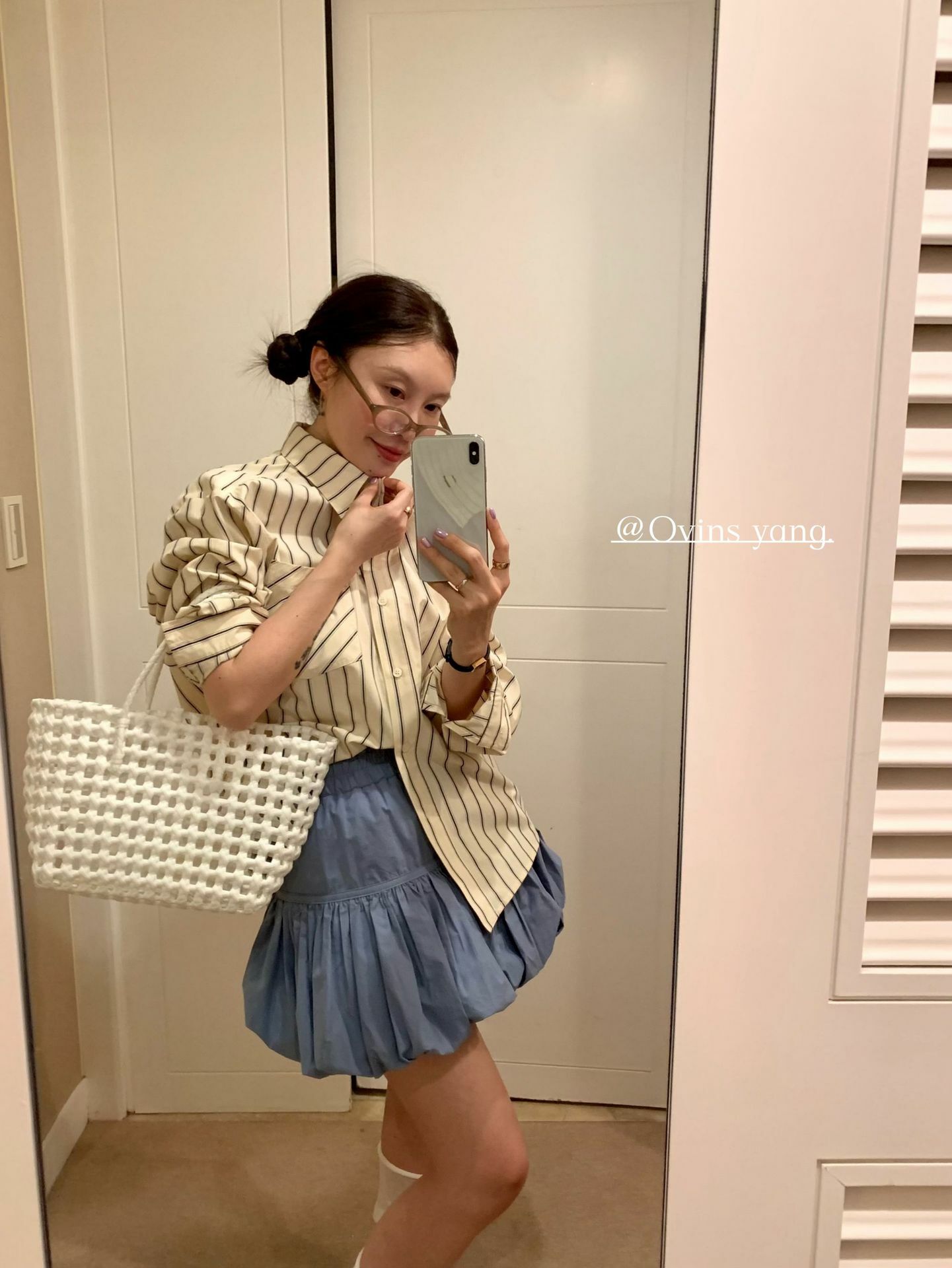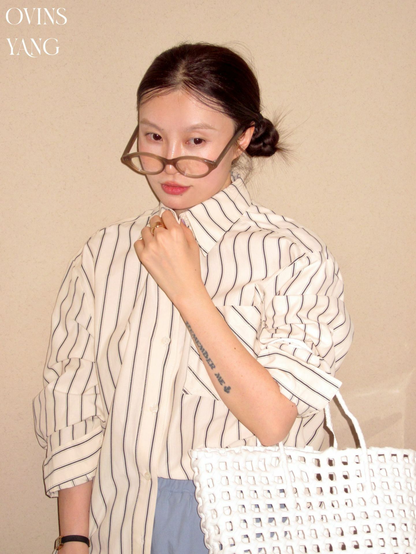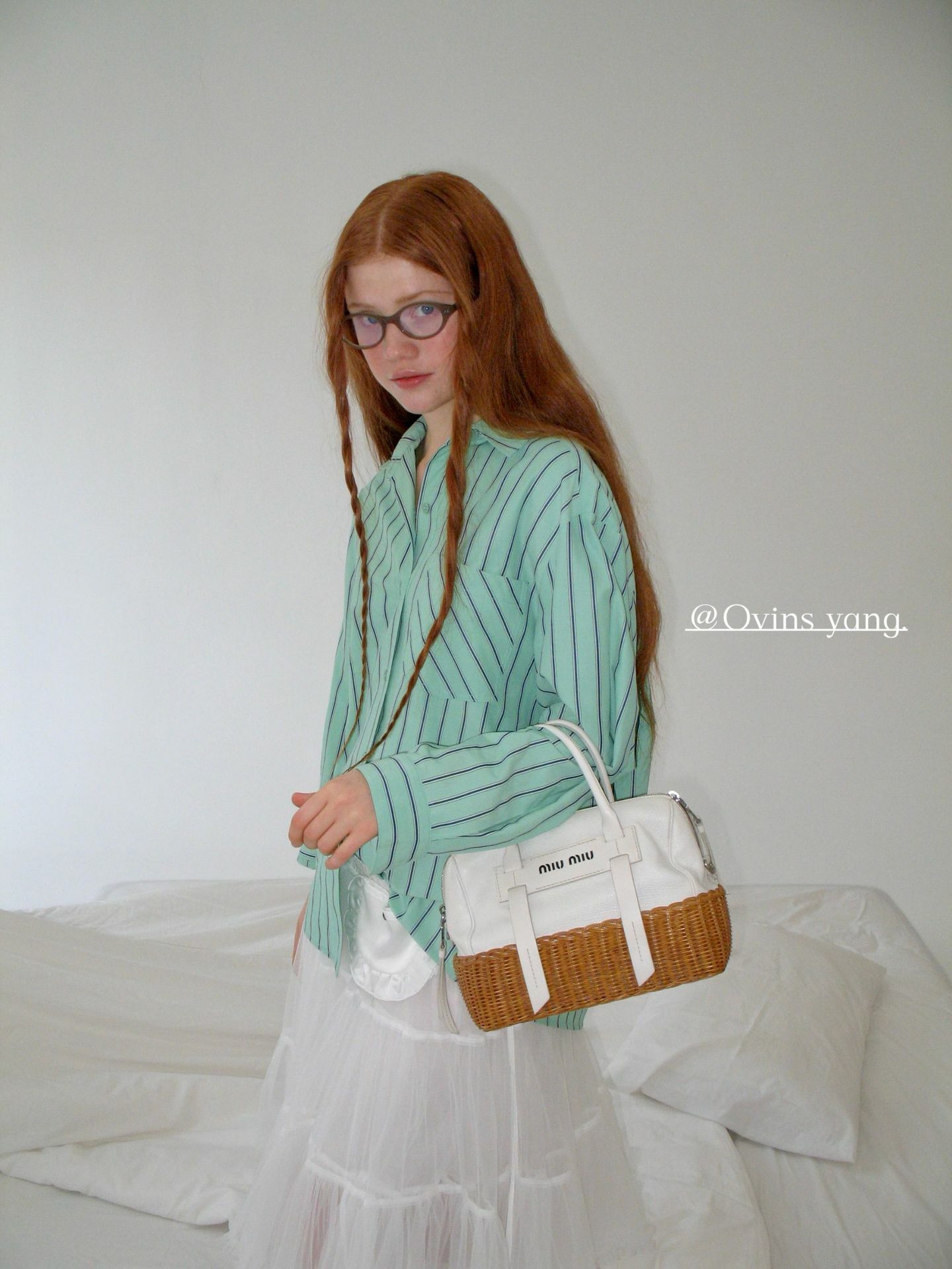 *o-ha-you*【FOY100756】綠色直條紋襯衫長袖設計感高級感輕奢學院風甜美上衣-2色-如有需要請先諮詢