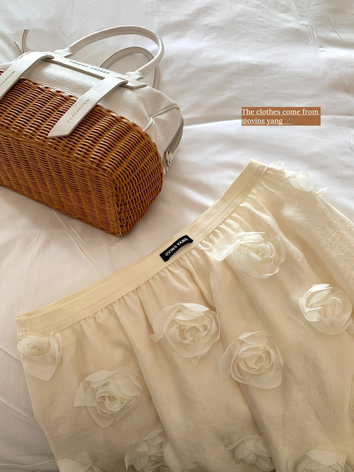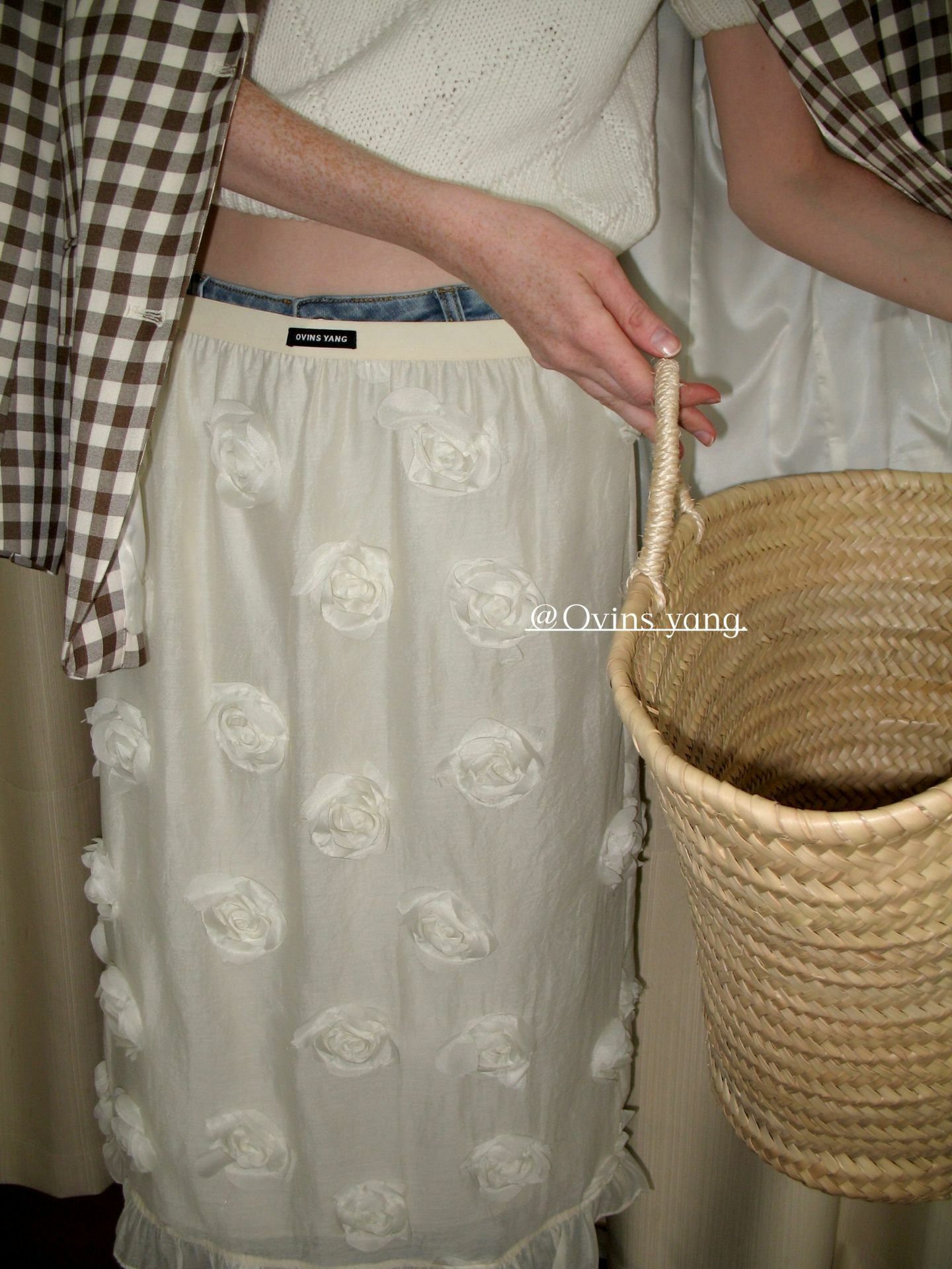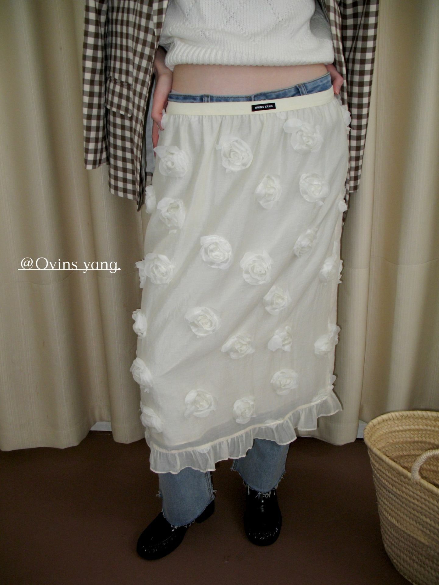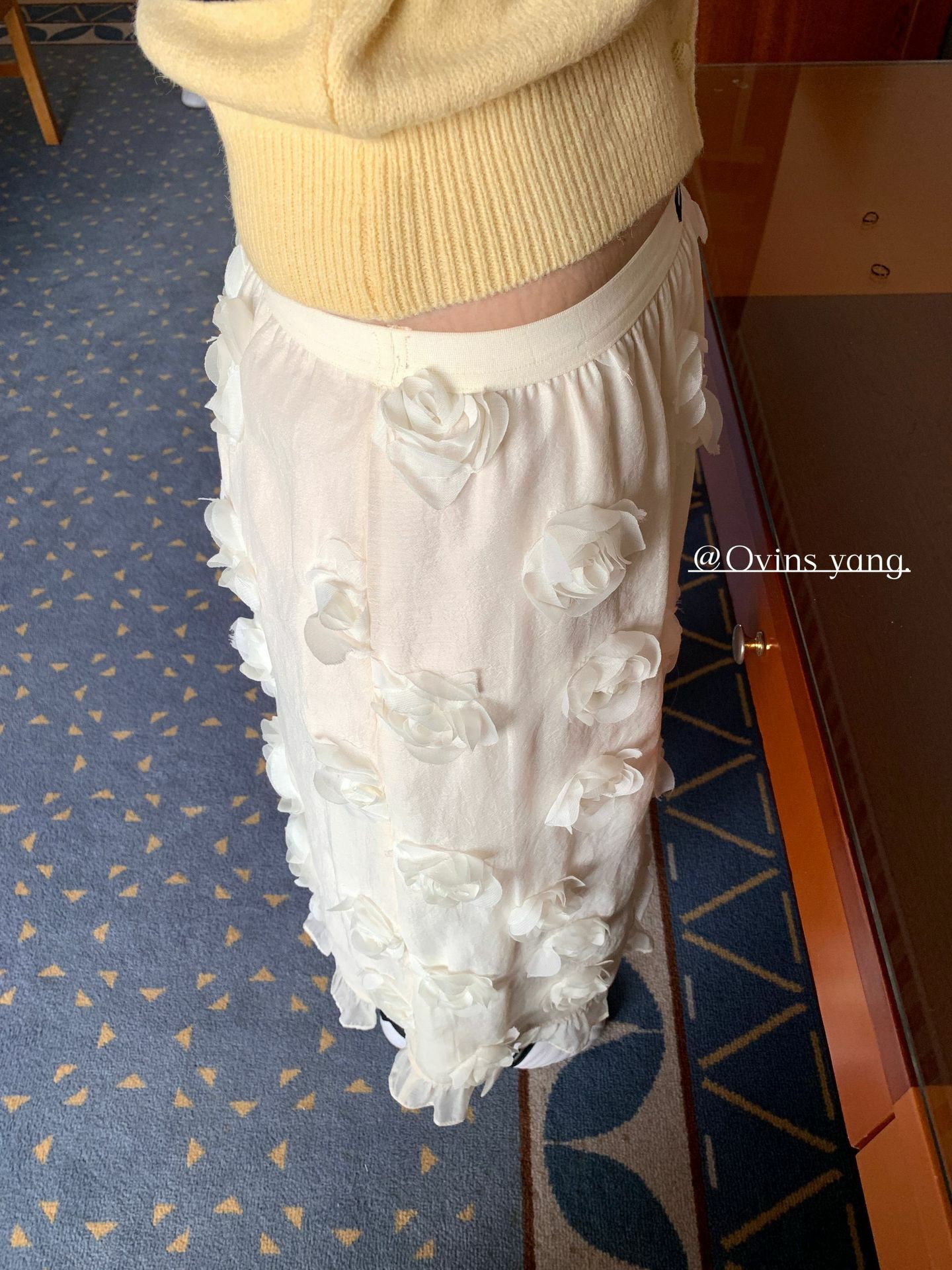 *o-ha-you*【FOY100758】花朵半身裙春秋設計感小眾高級感氣質甜美A字裙一步裙-2色-如有需要請先諮詢