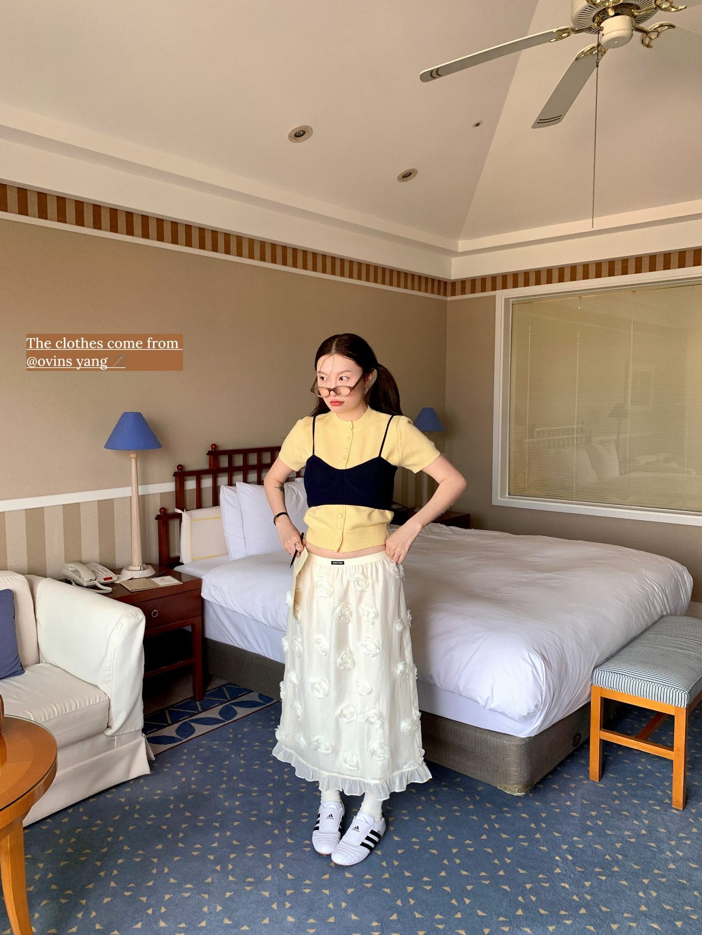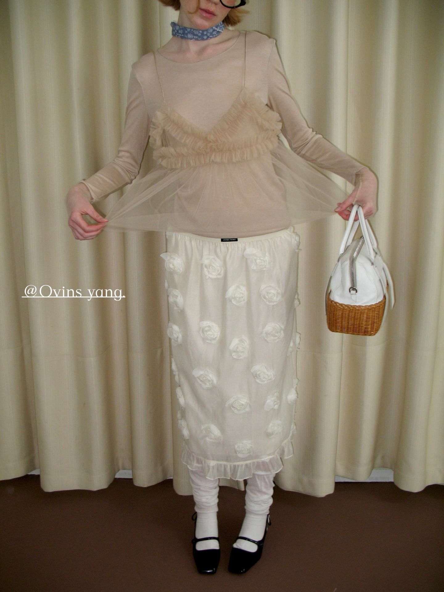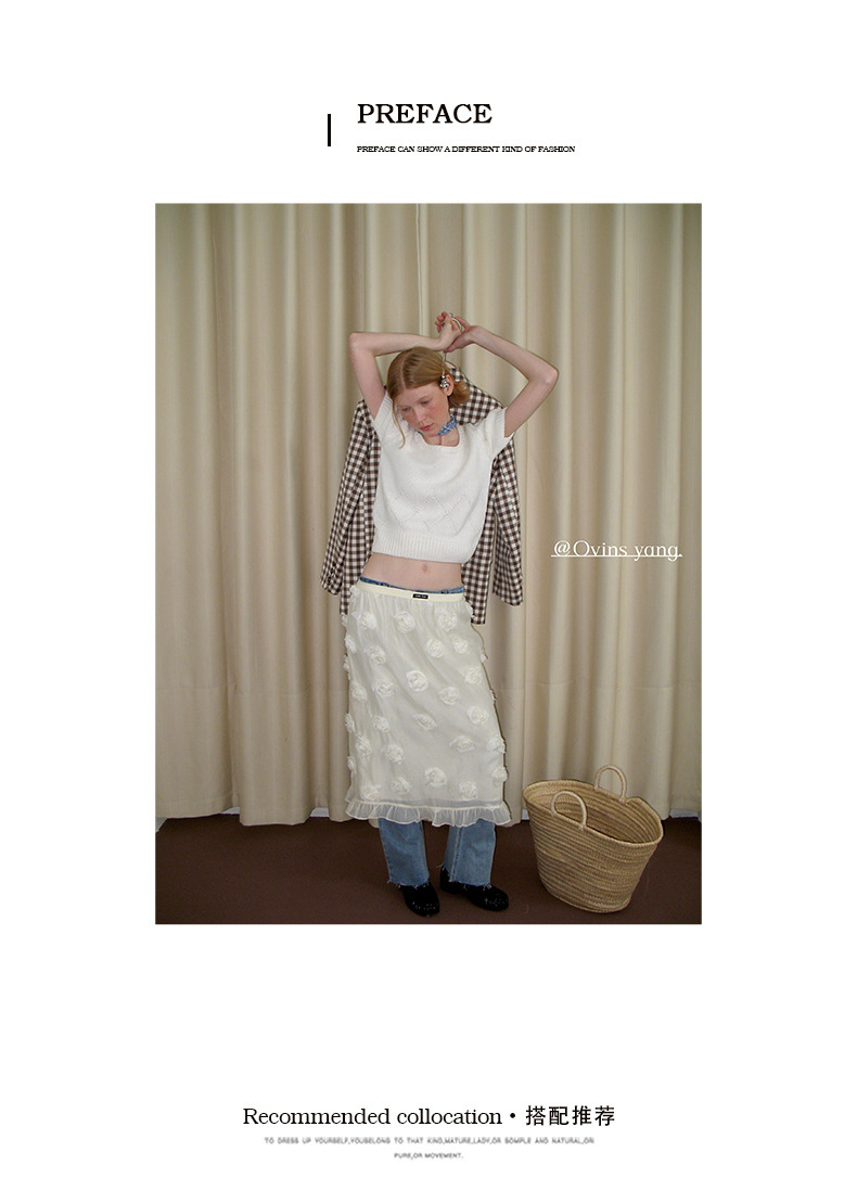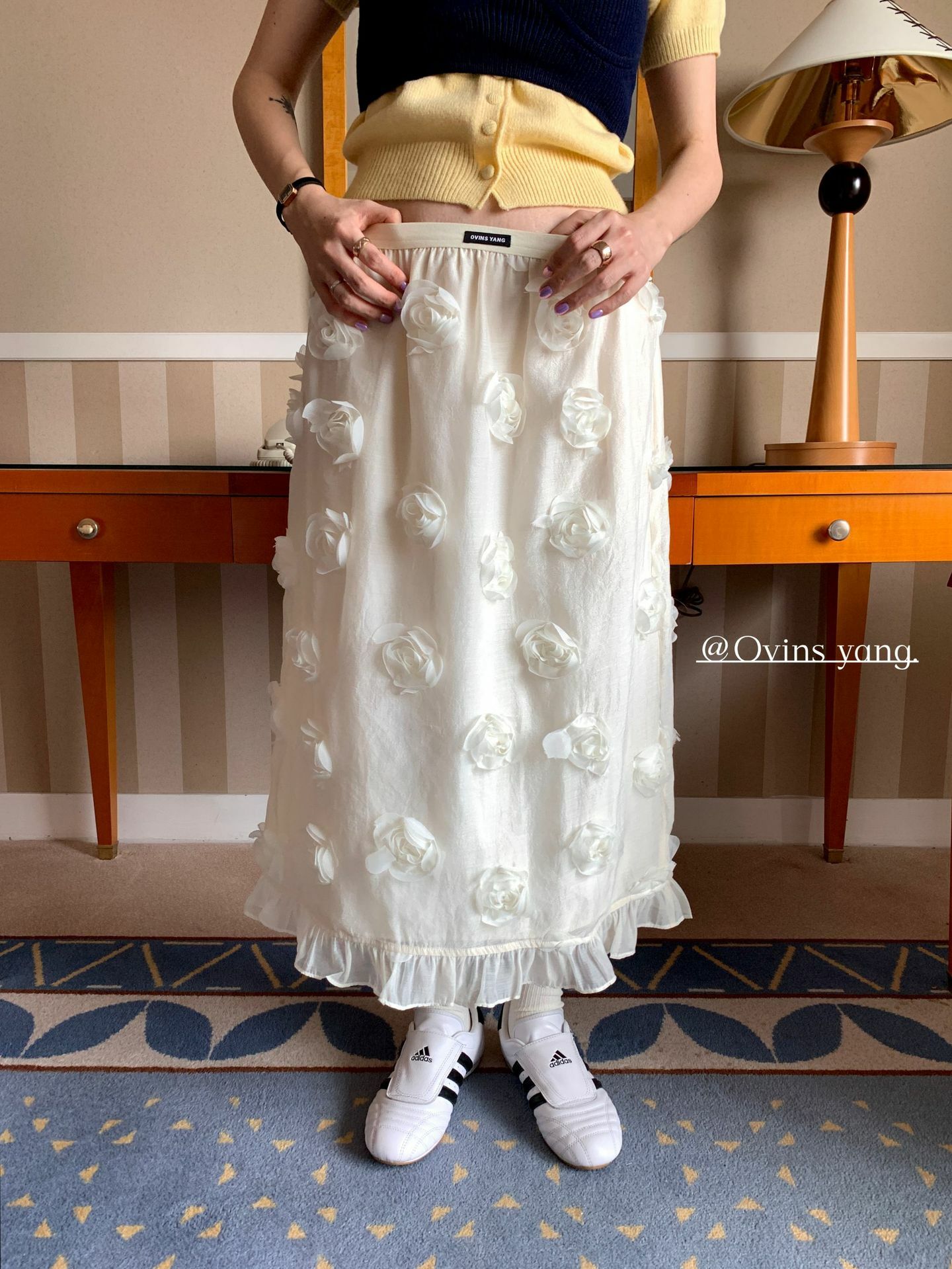 *o-ha-you*【FOY100758】花朵半身裙春秋設計感小眾高級感氣質甜美A字裙一步裙-2色-如有需要請先諮詢