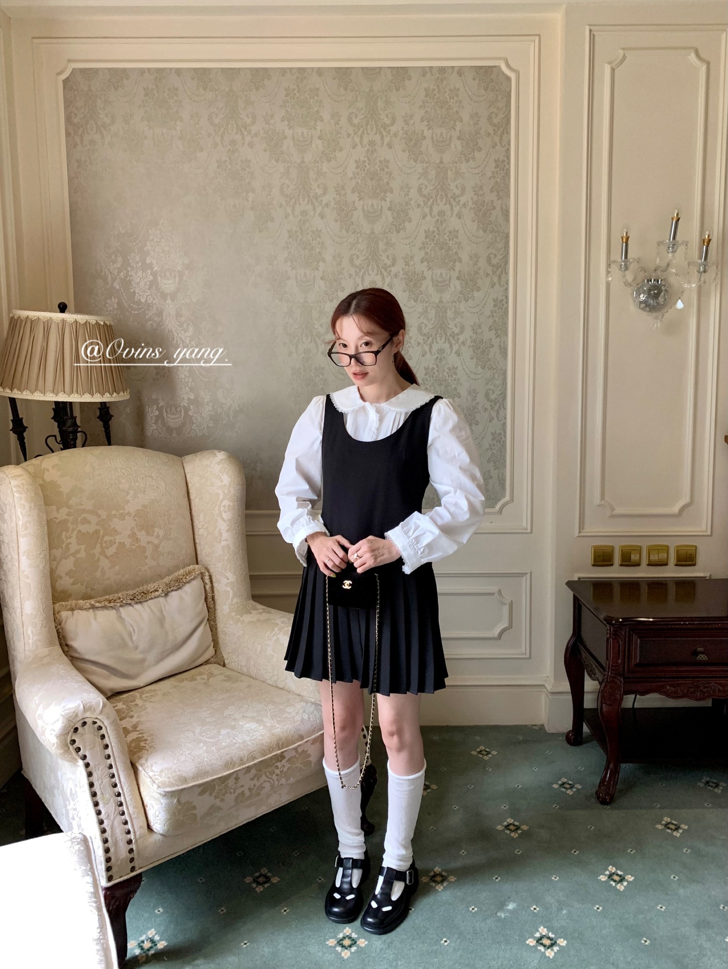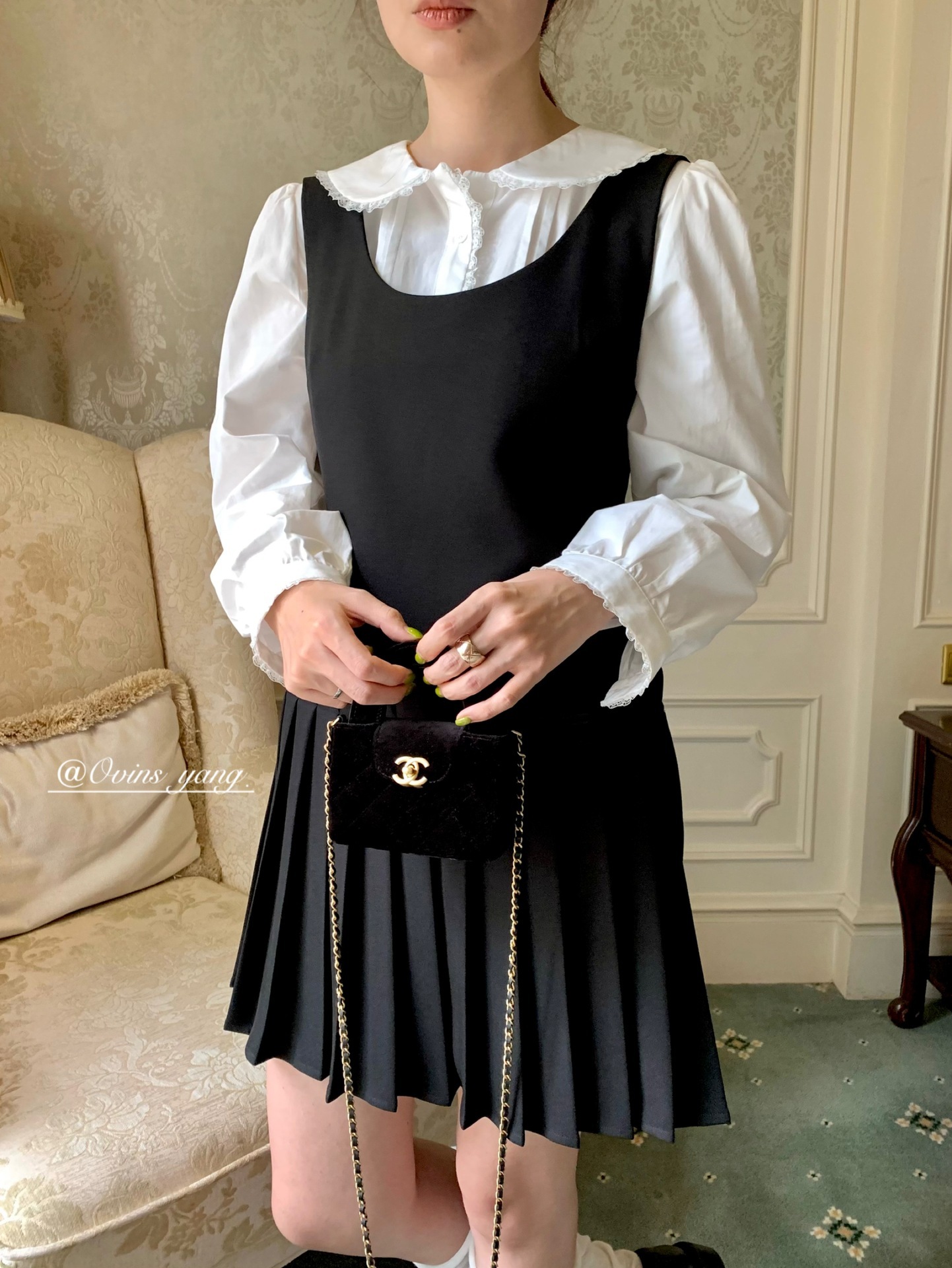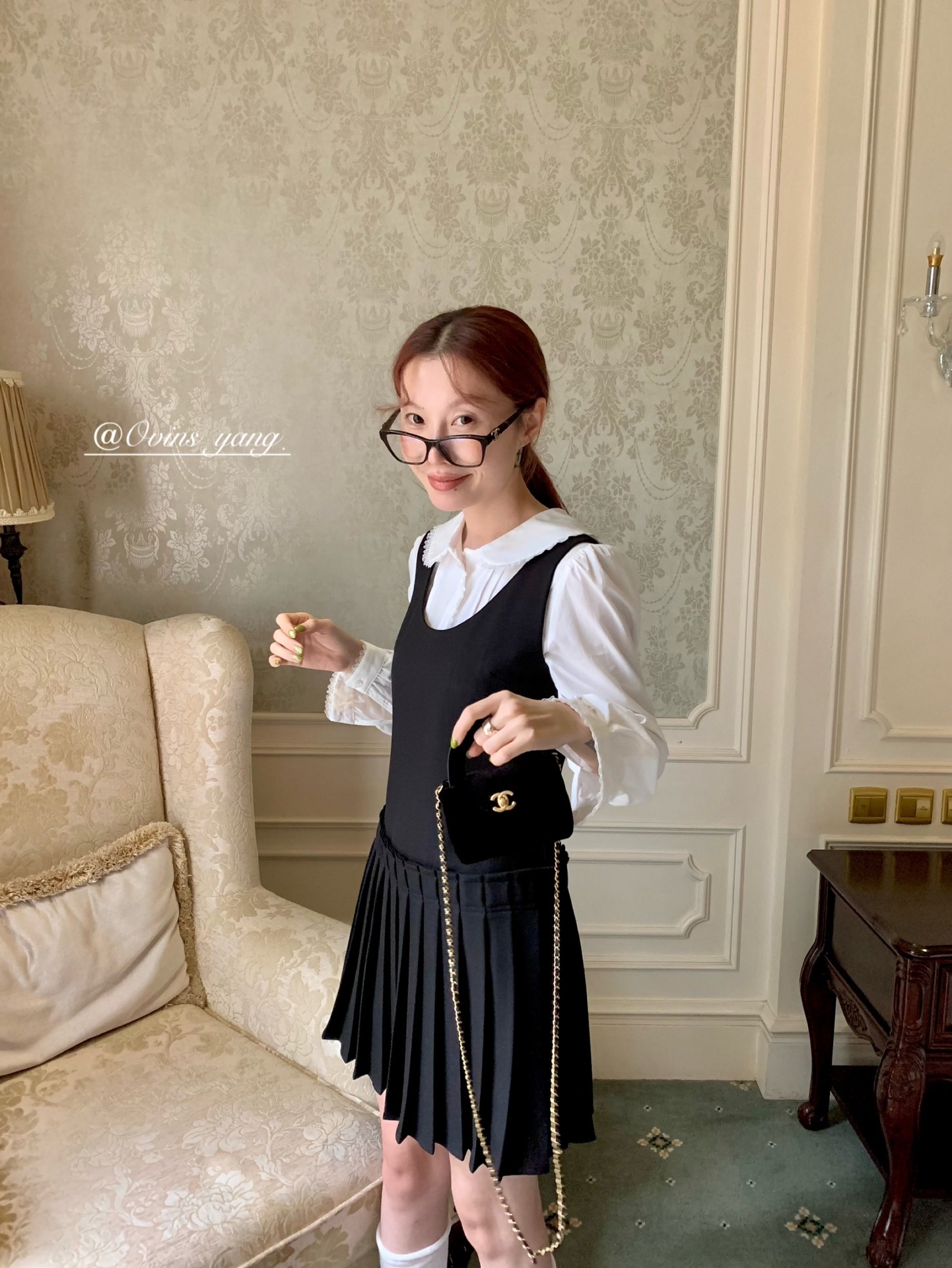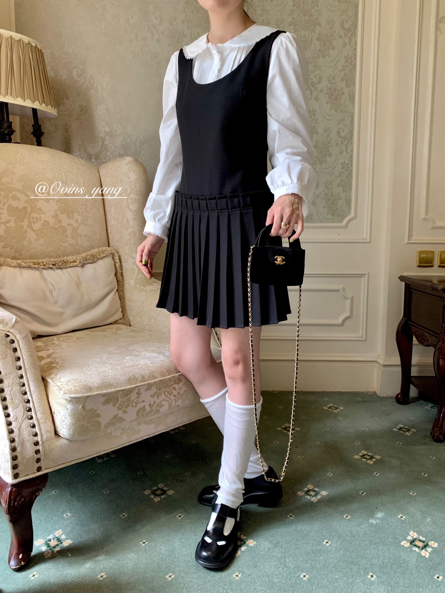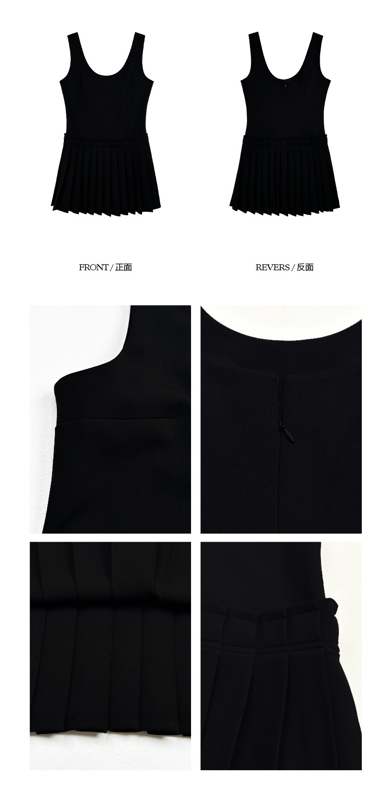 *o-ha-you*【FOY100772】黑色U領百褶連衣裙2025新學院風甜美無袖背心裙洋裝