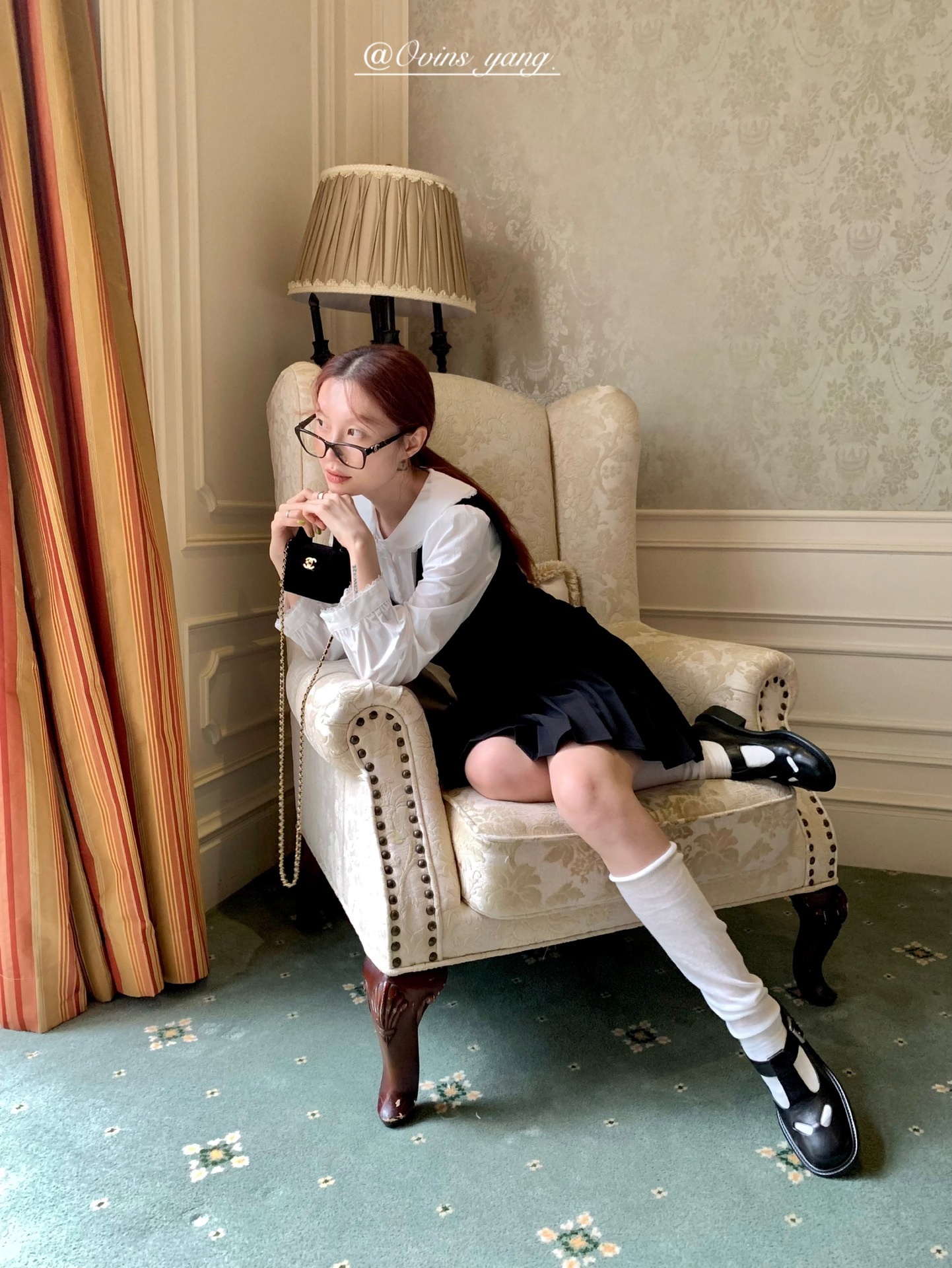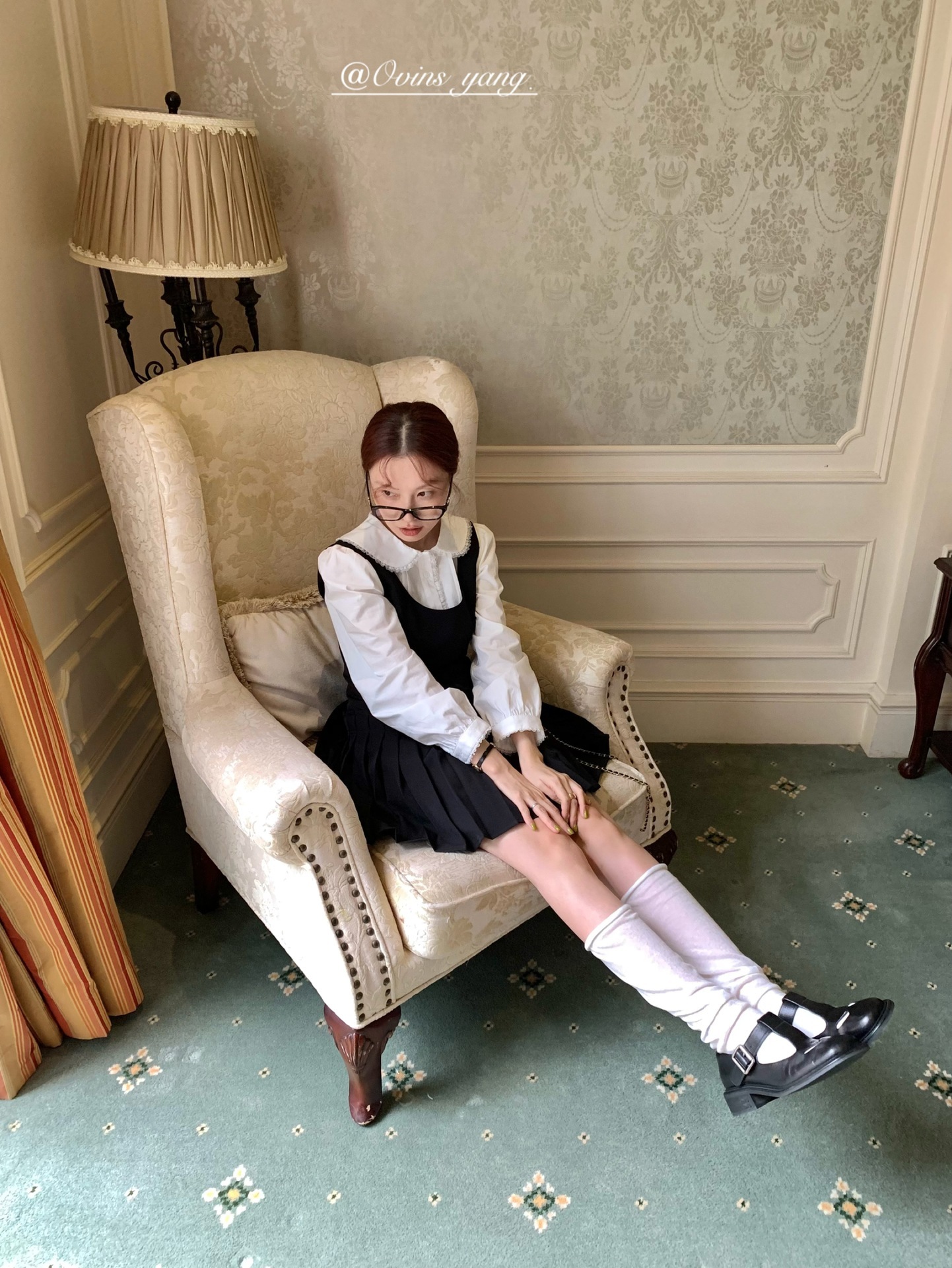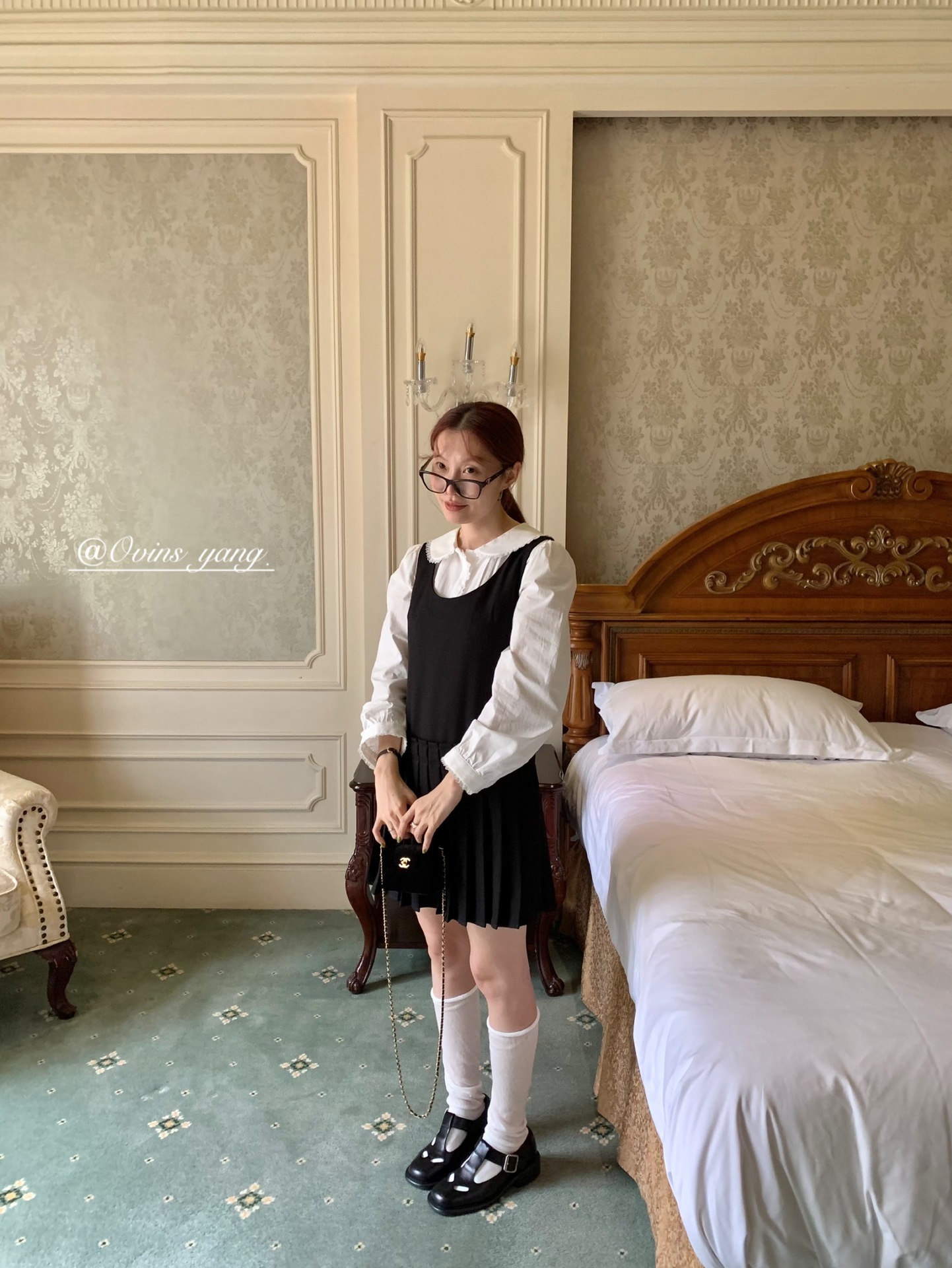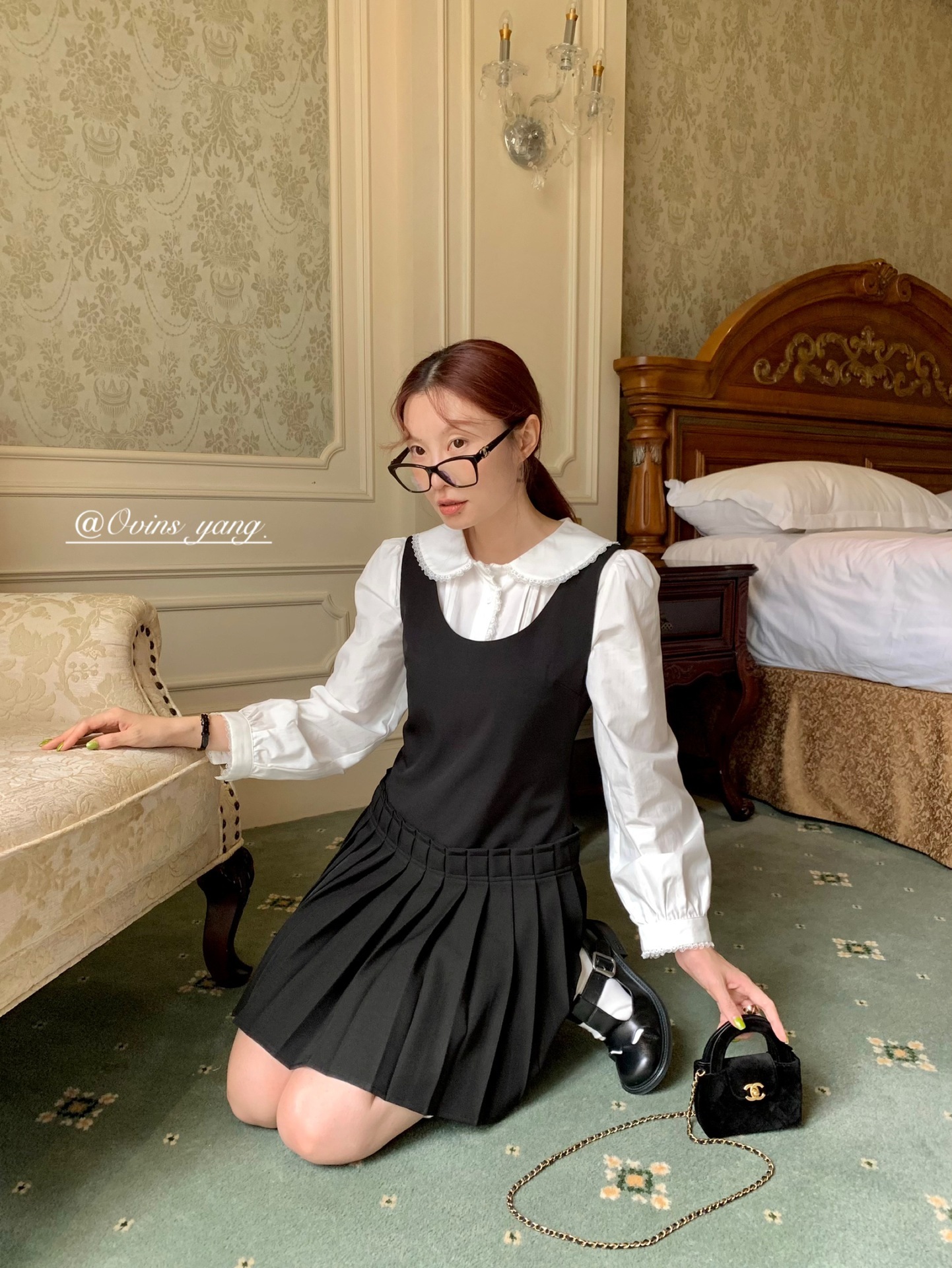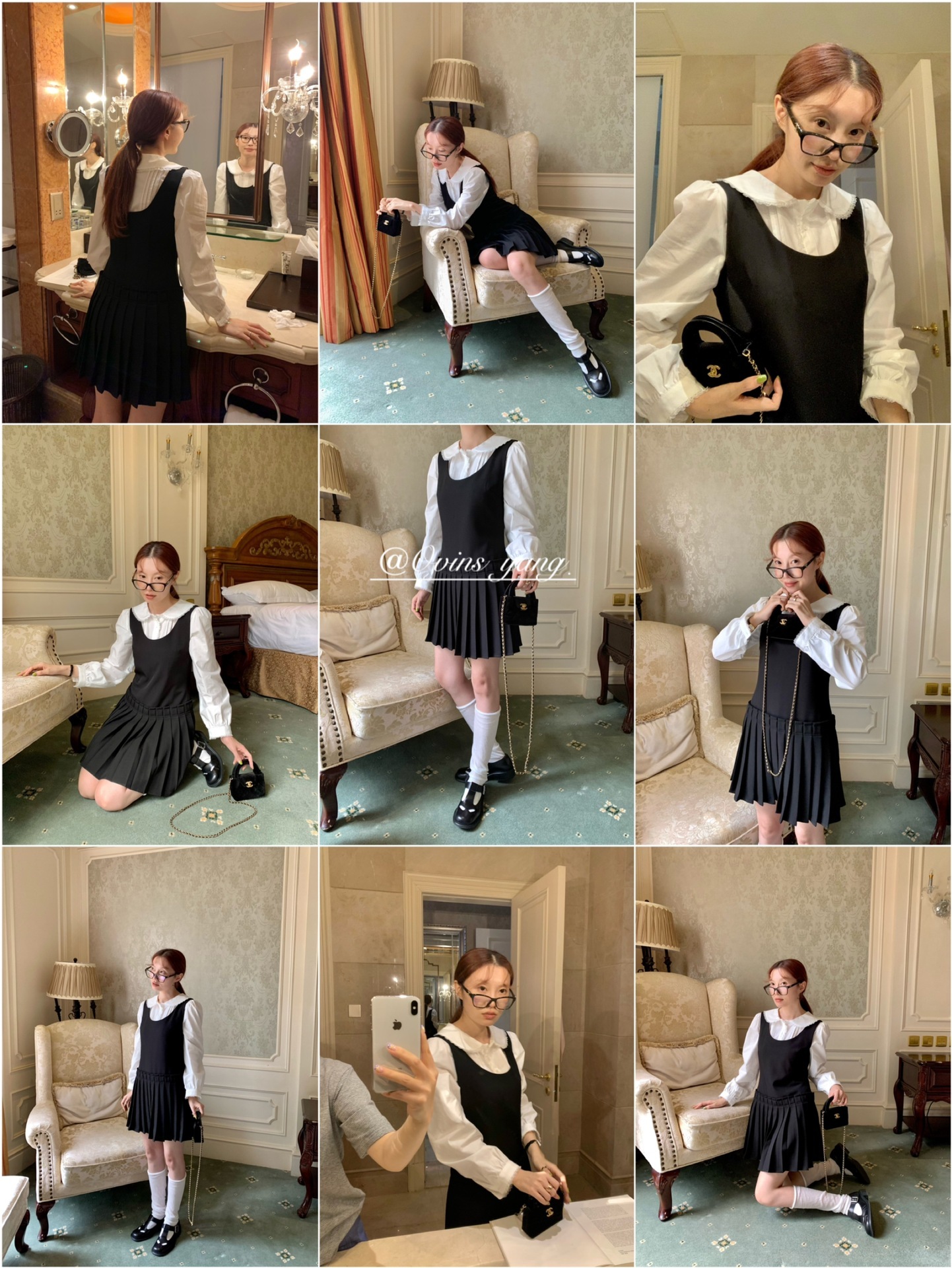 *o-ha-you*【FOY100772】黑色U領百褶連衣裙2025新學院風甜美無袖背心裙洋裝