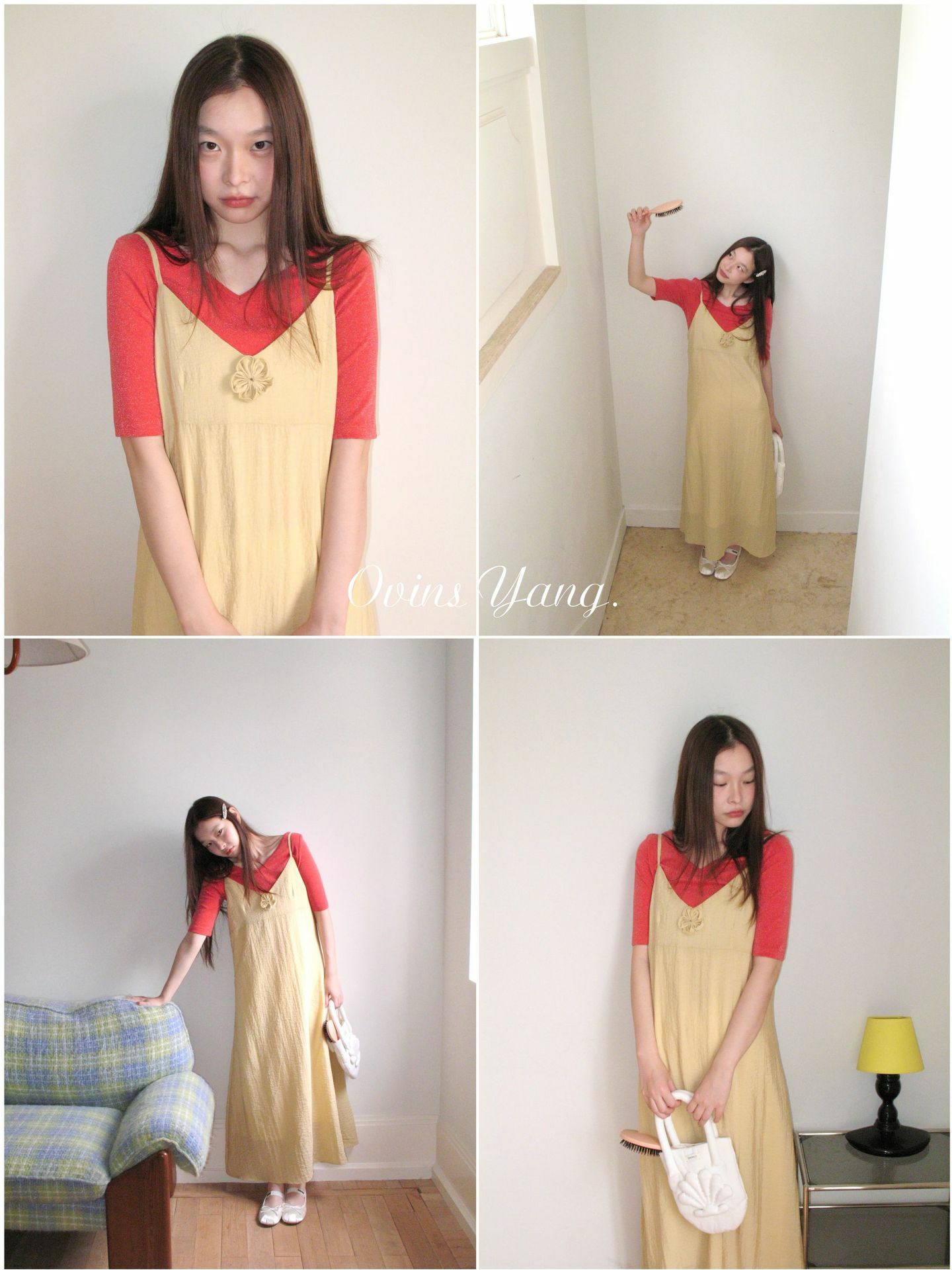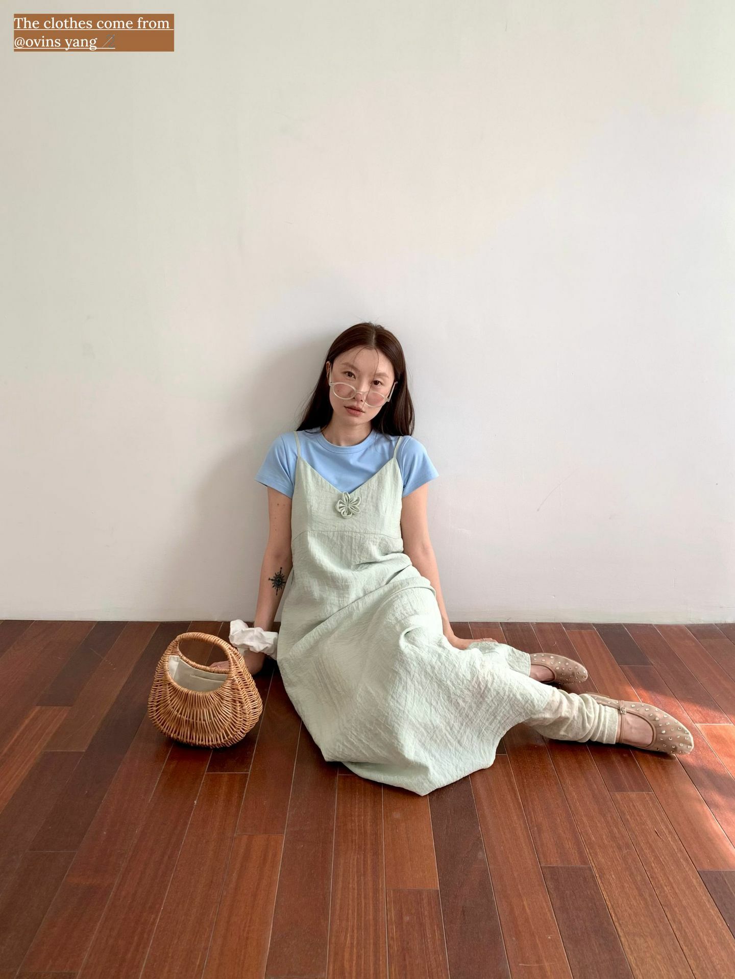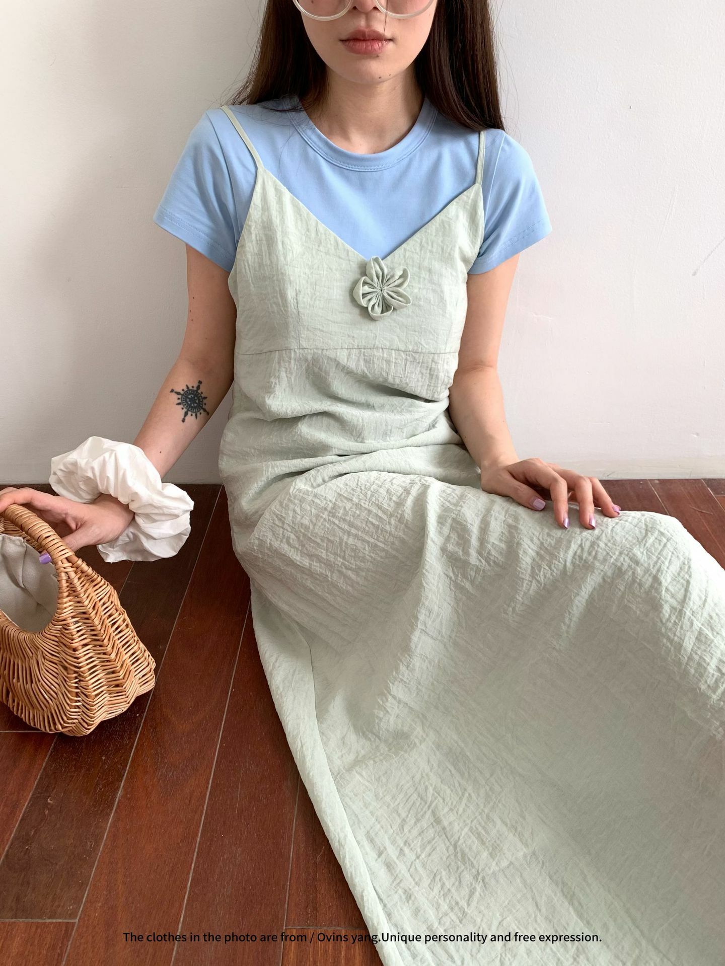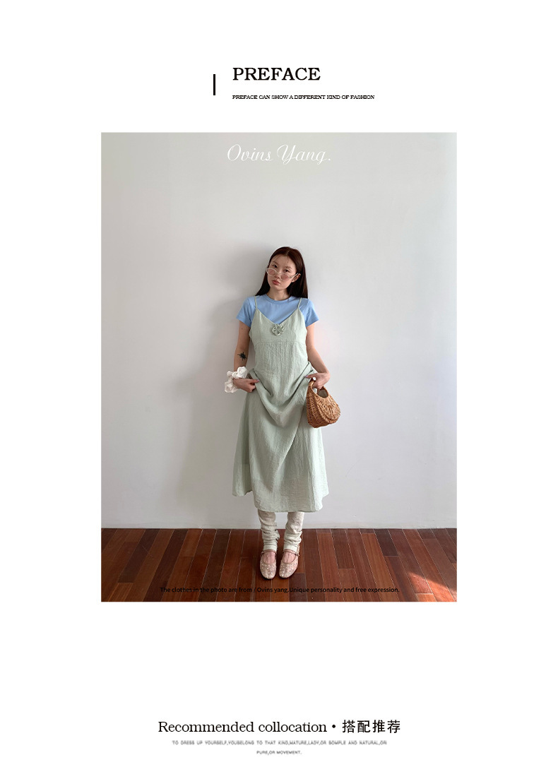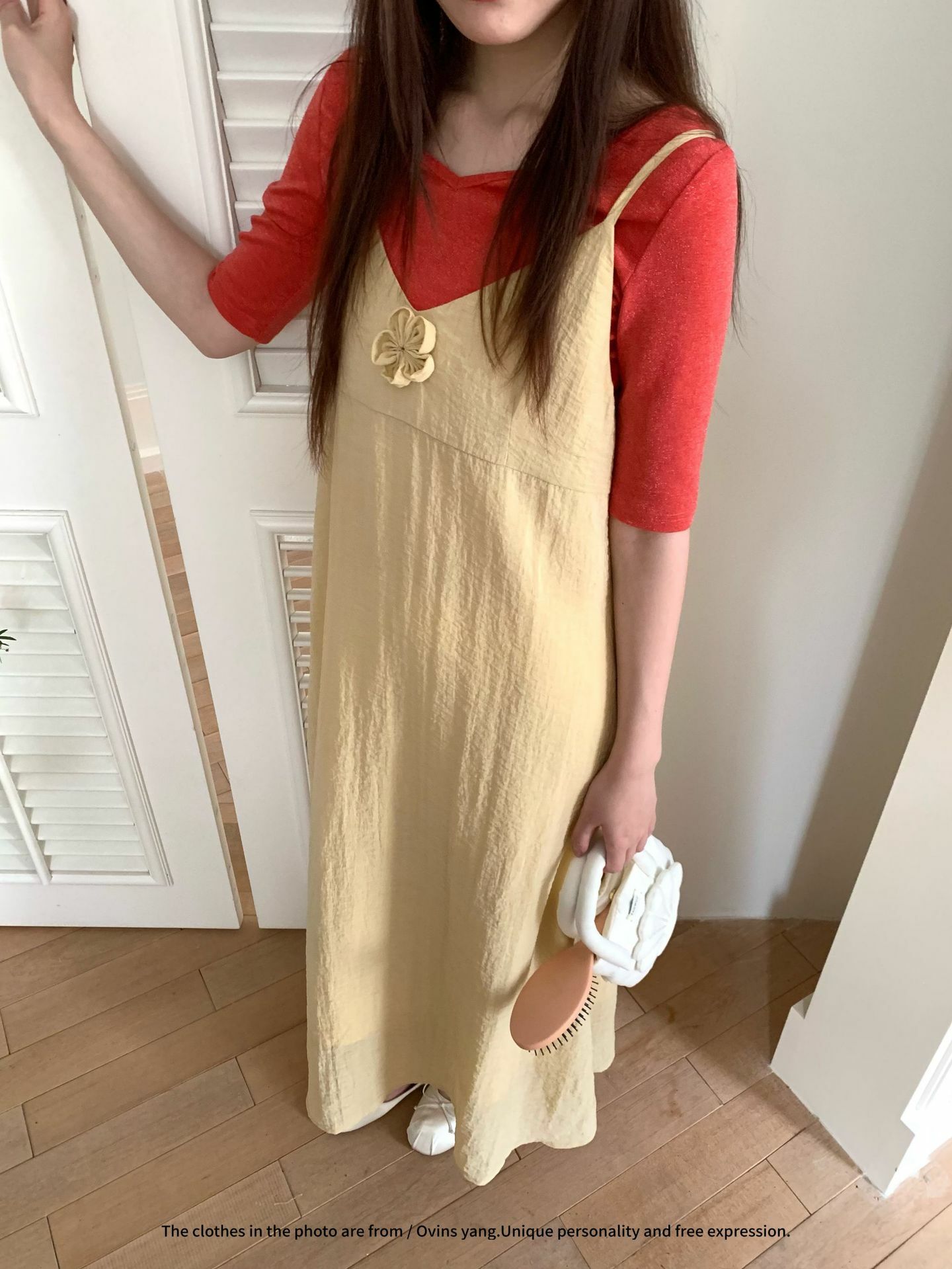 *o-ha-you*【FOY100785】花朵V領吊帶裙連衣裙夏季穿搭外穿薄款漂亮中長裙洋裝-3色