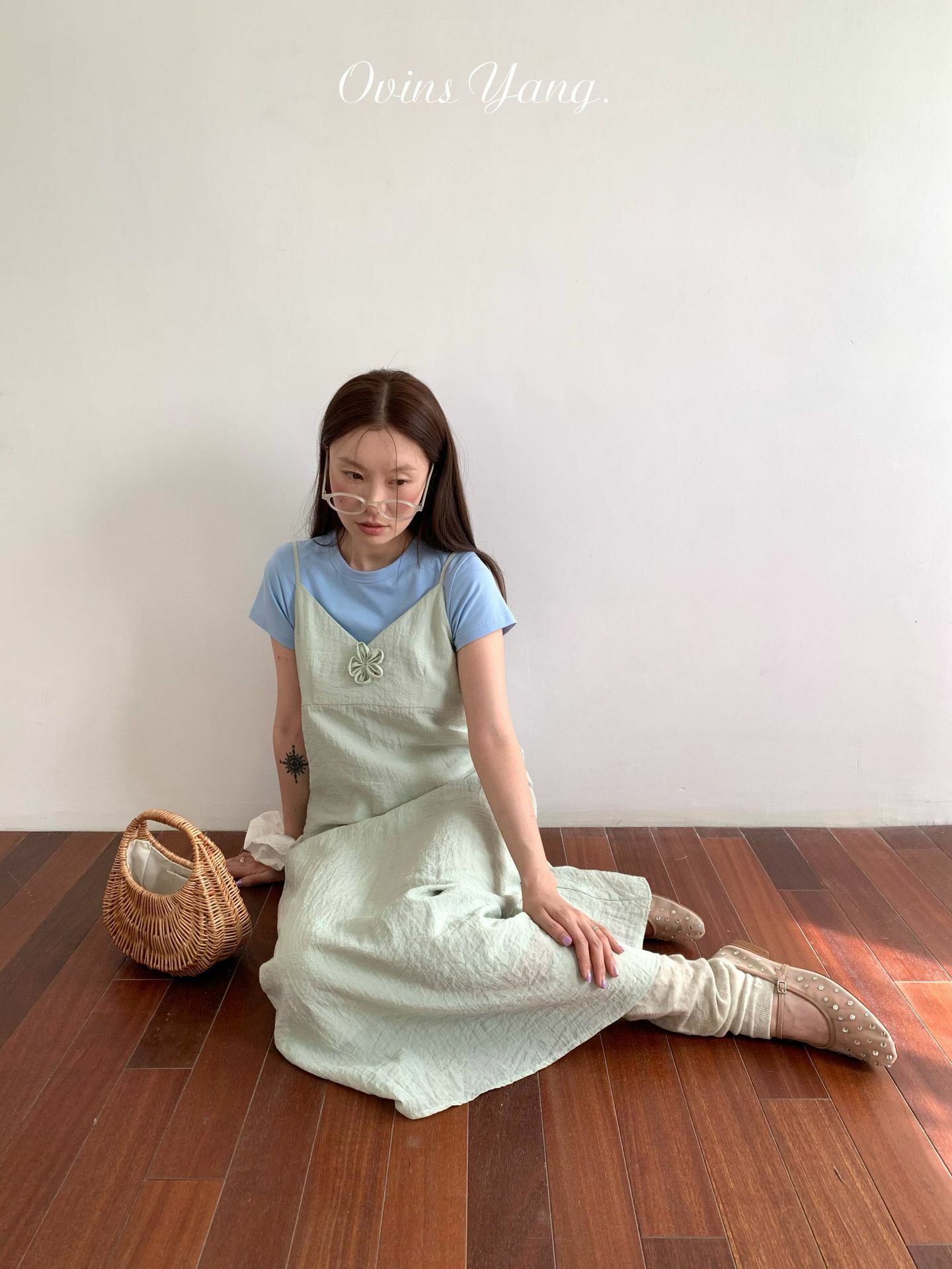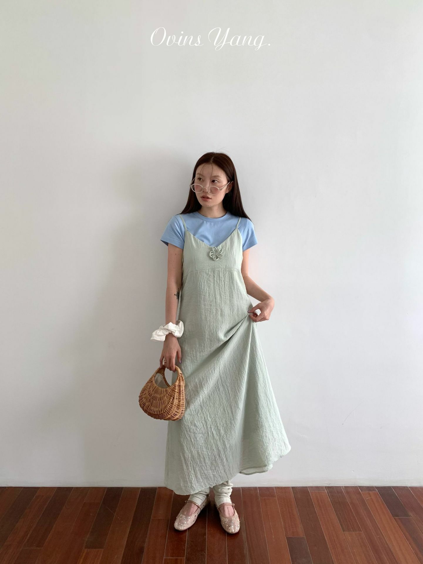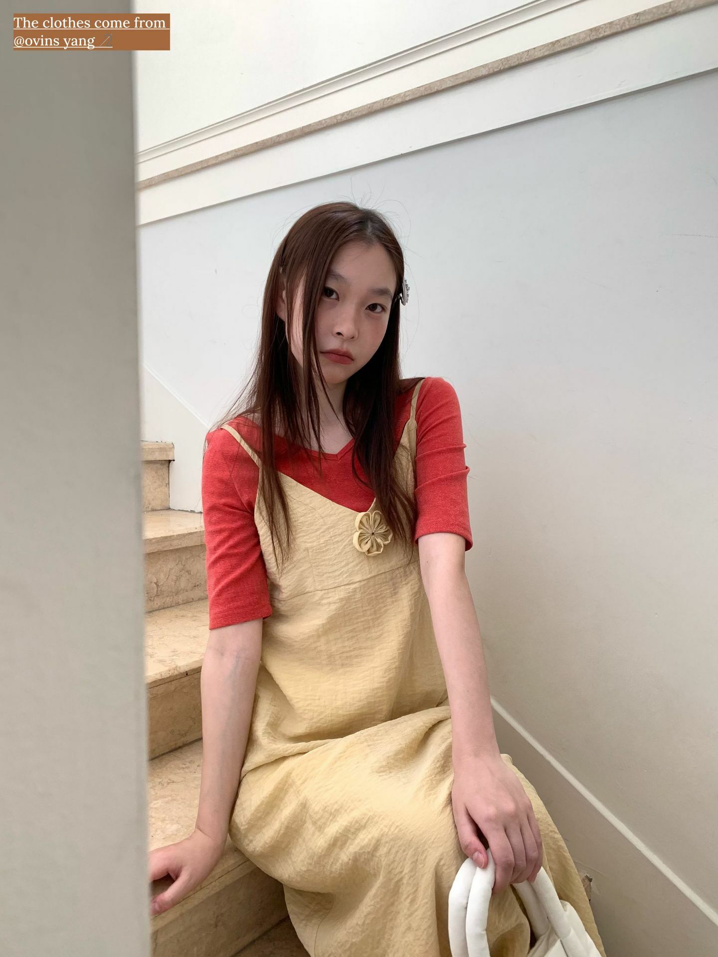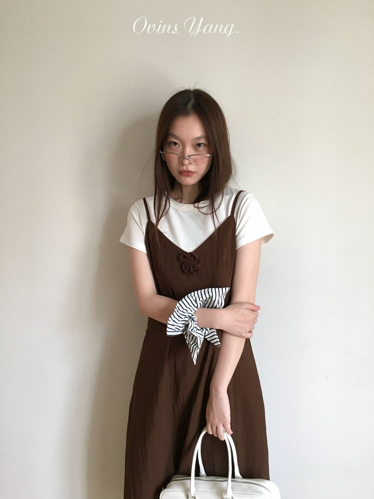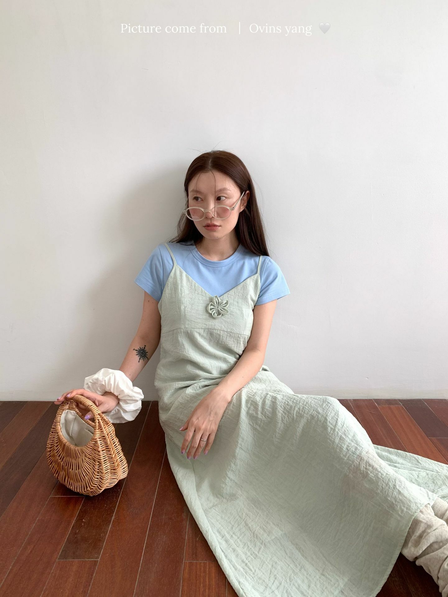 *o-ha-you*【FOY100785】花朵V領吊帶裙連衣裙夏季穿搭外穿薄款漂亮中長裙洋裝-3色