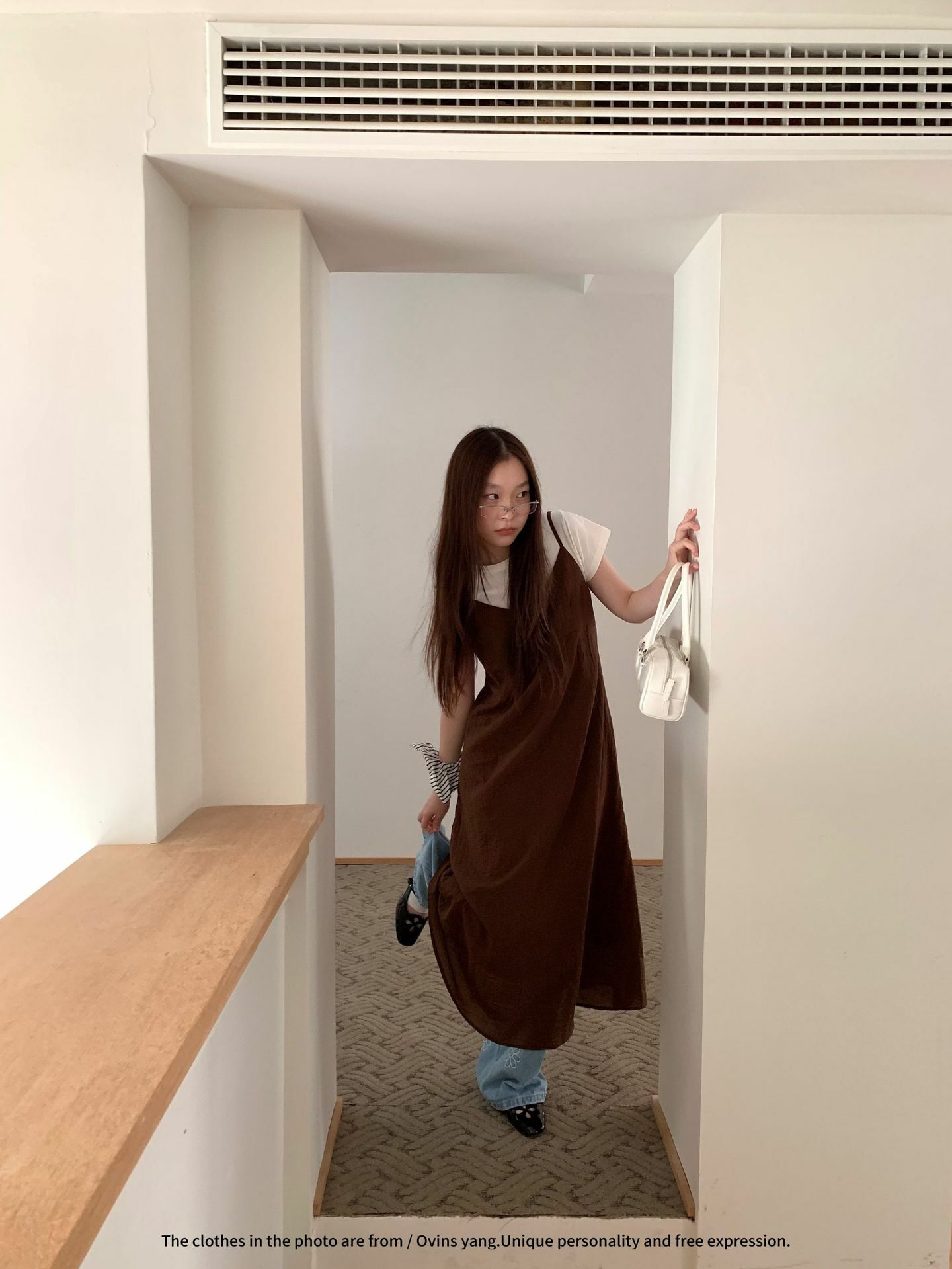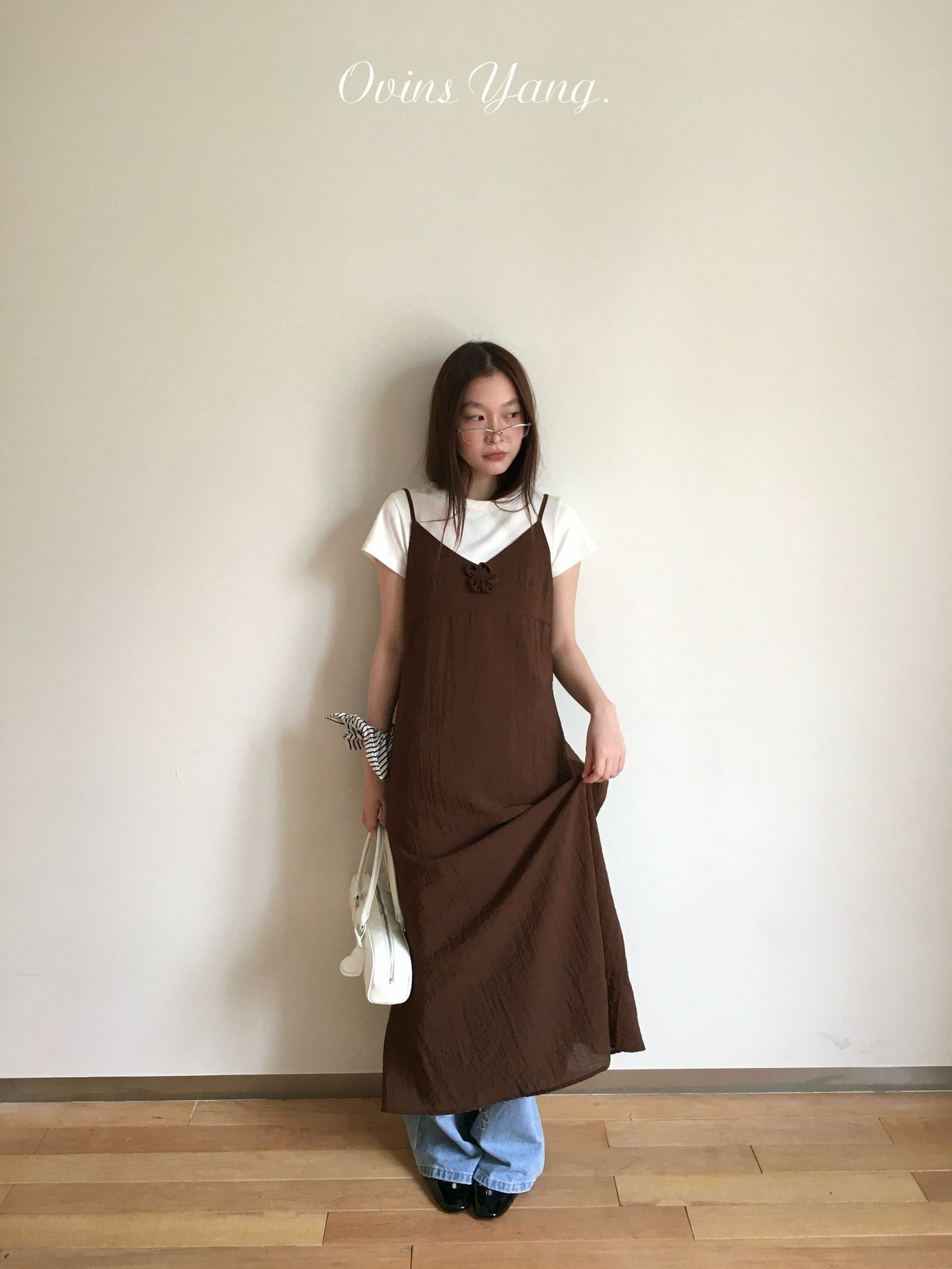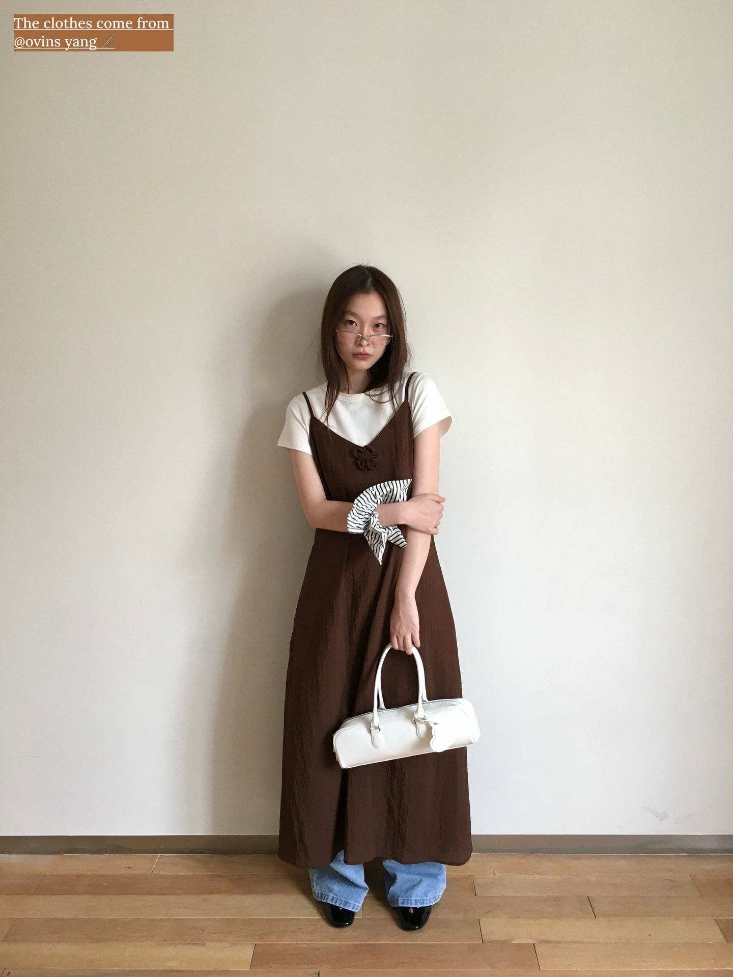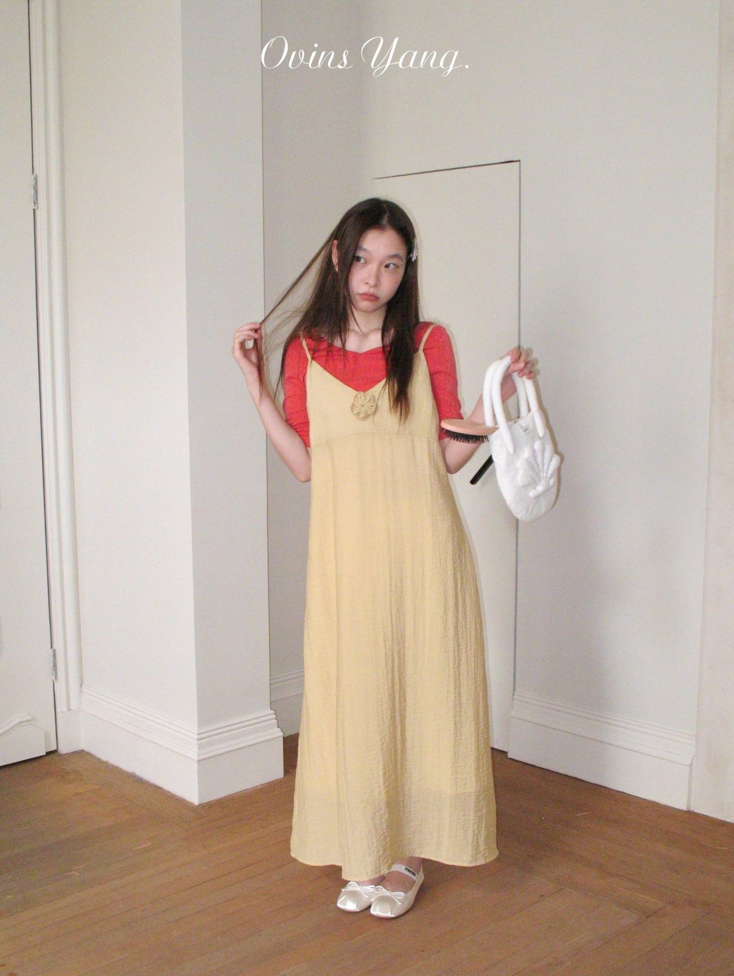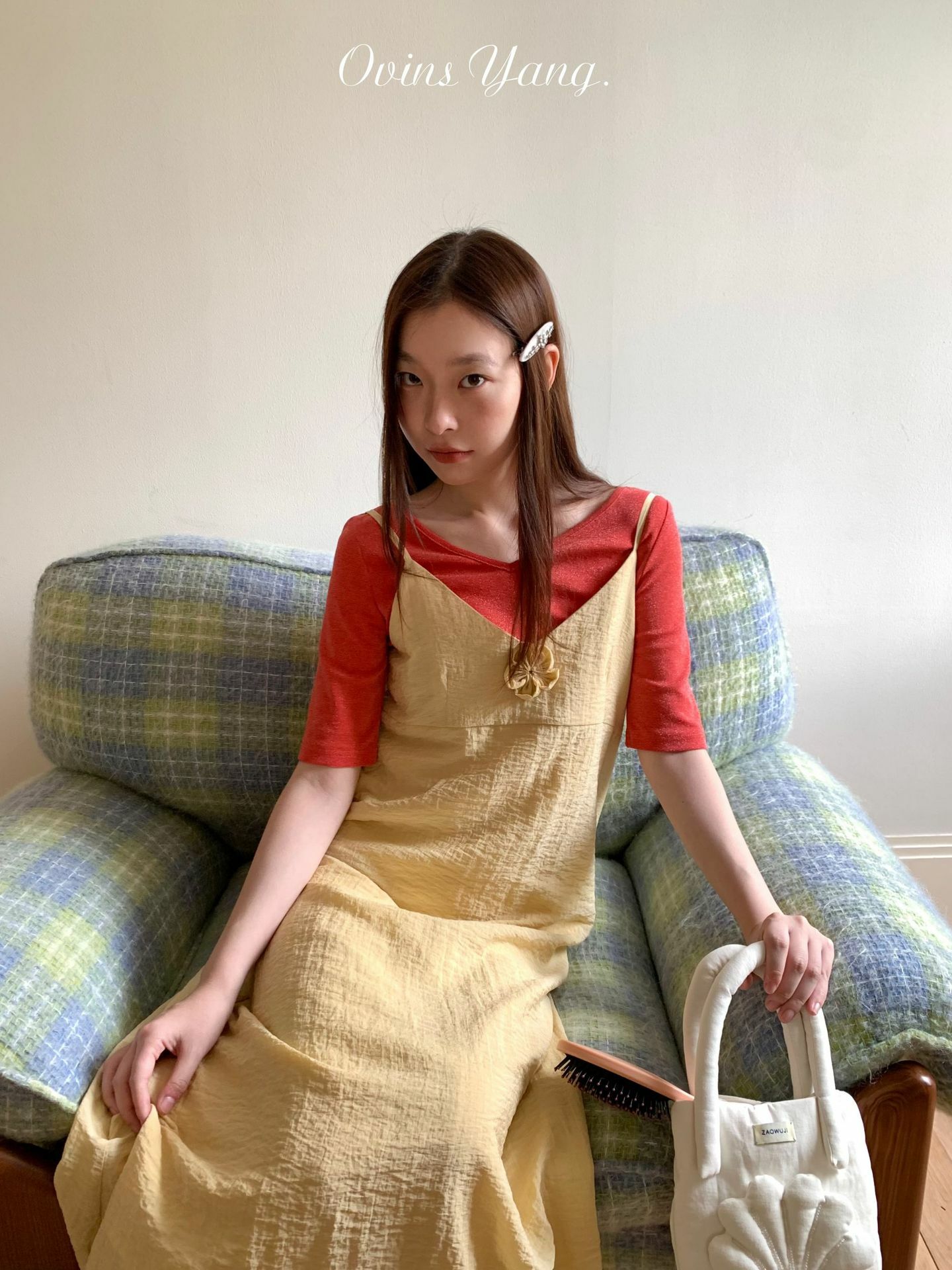 *o-ha-you*【FOY100785】花朵V領吊帶裙連衣裙夏季穿搭外穿薄款漂亮中長裙洋裝-3色