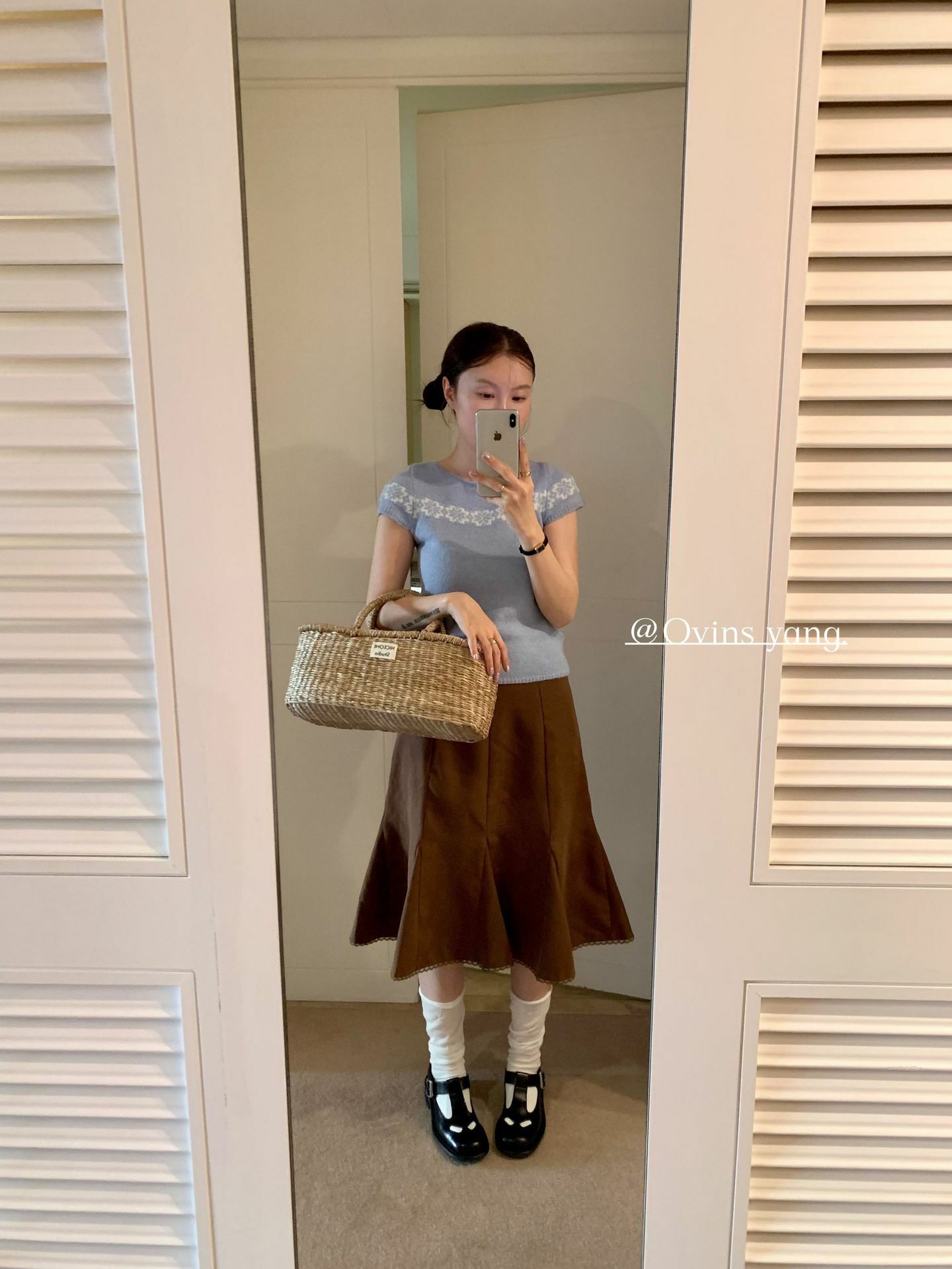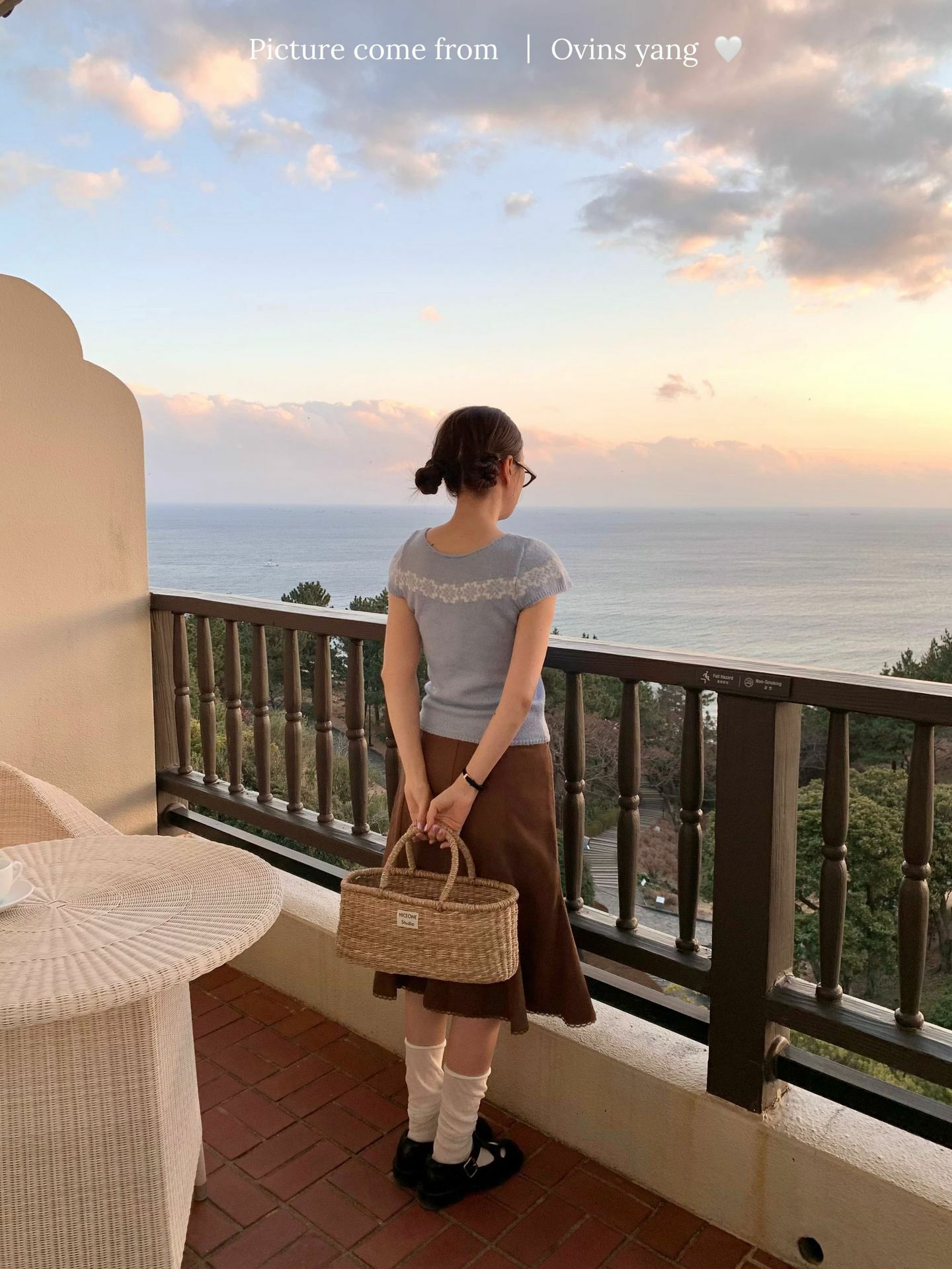 *o-ha-you*【FOY100790】短袖針織衫上衣修身甜美韓系氛圍感春季穿搭打底衫-2色-如有需要請先諮詢