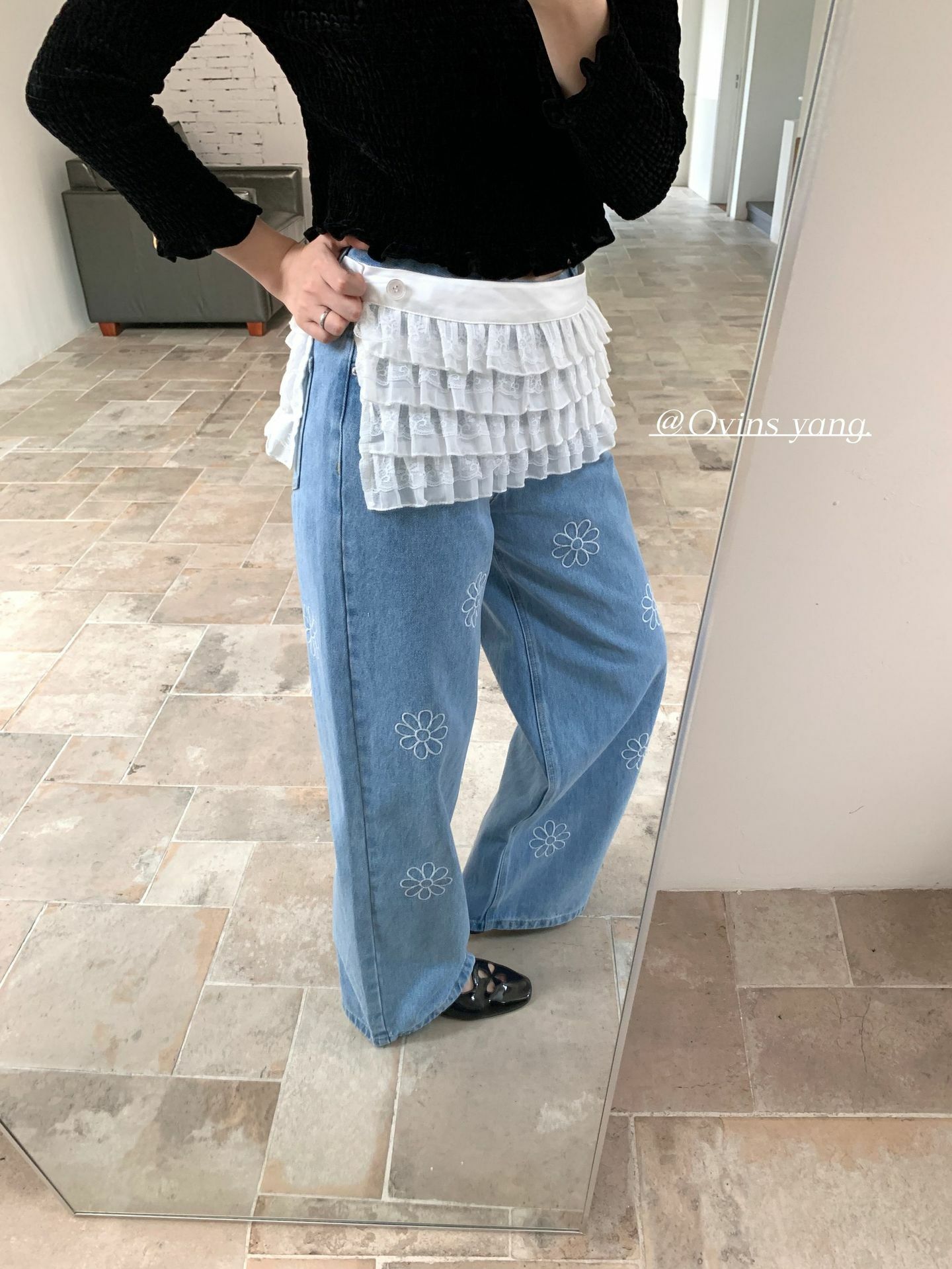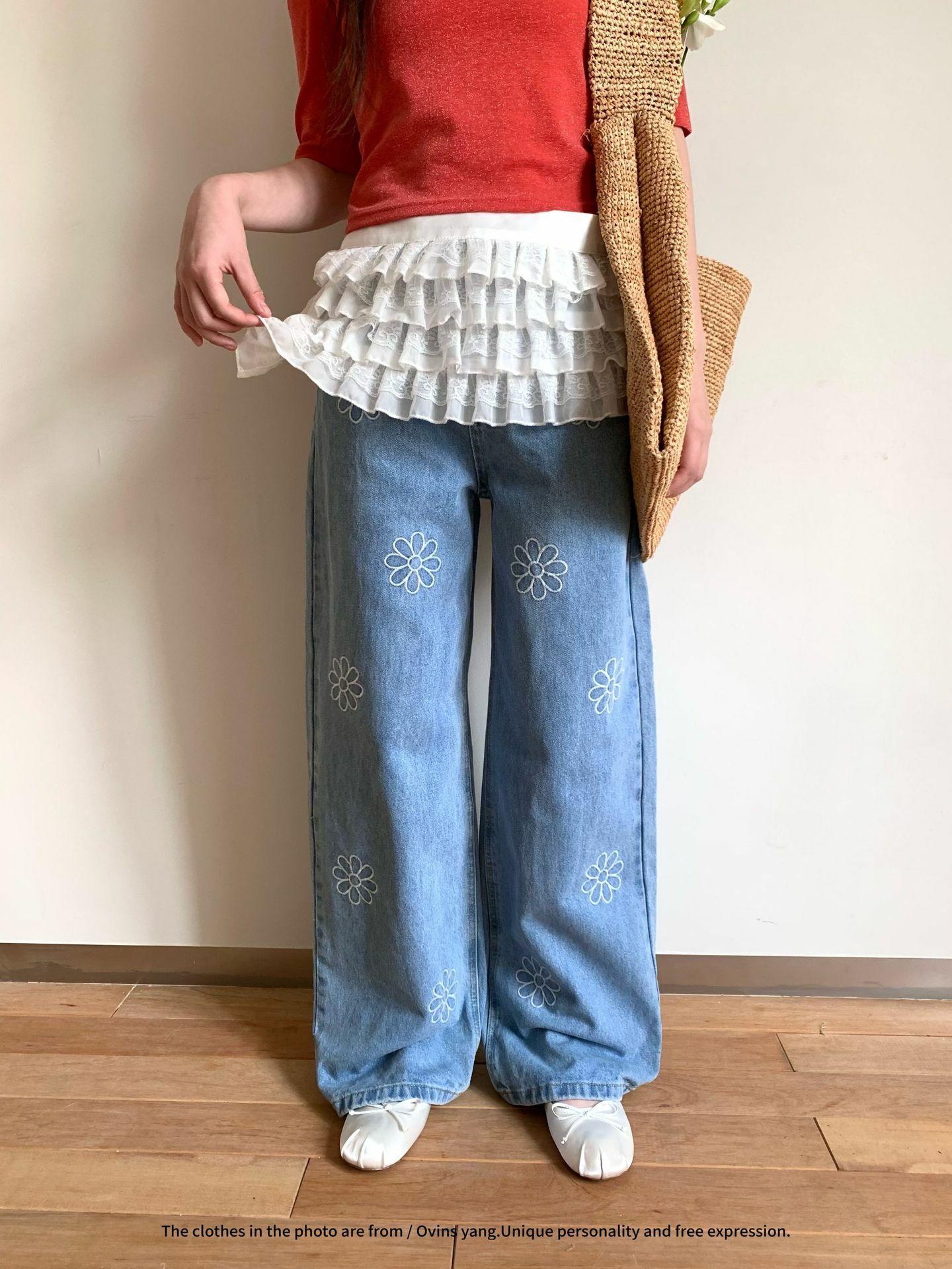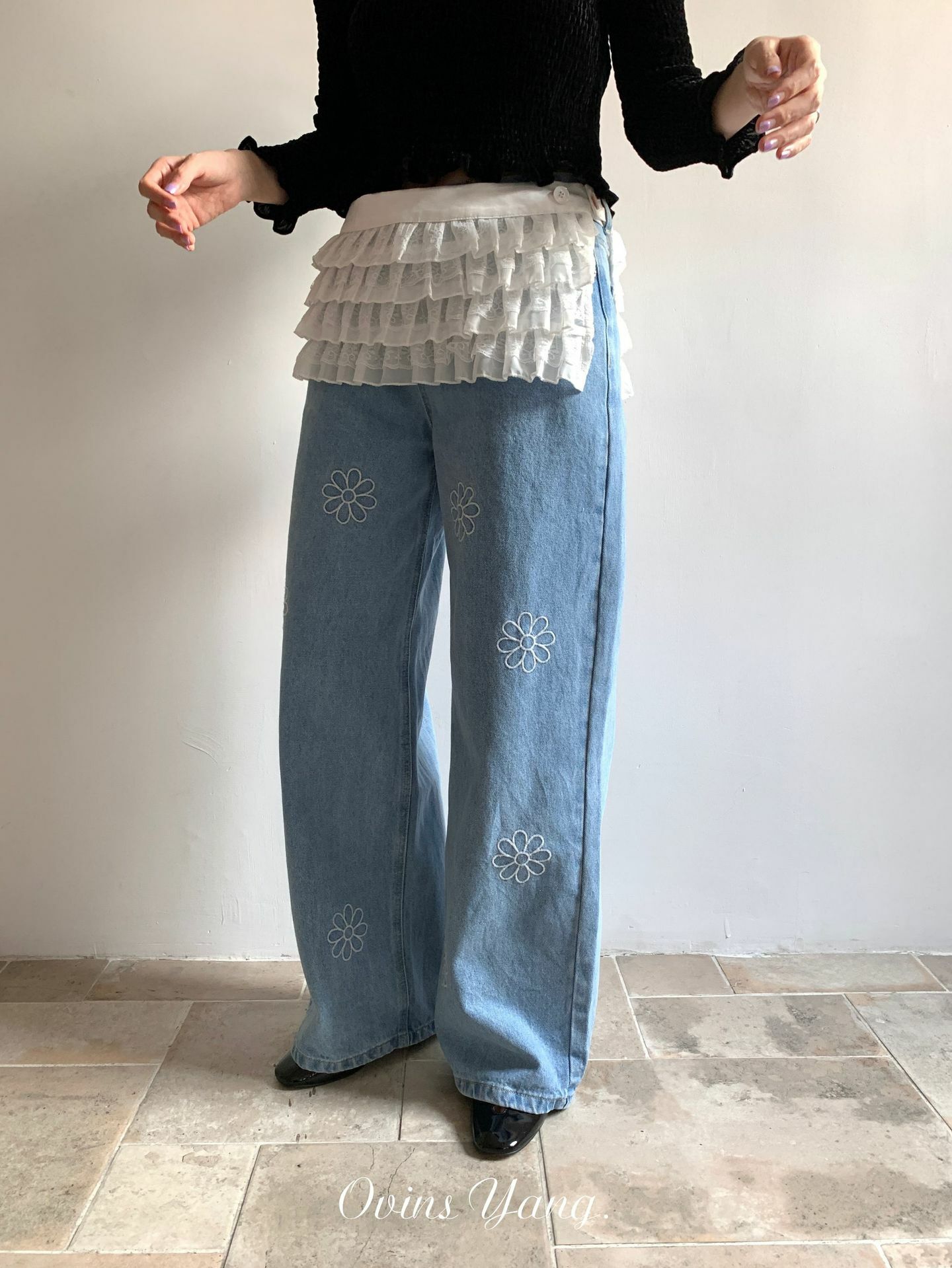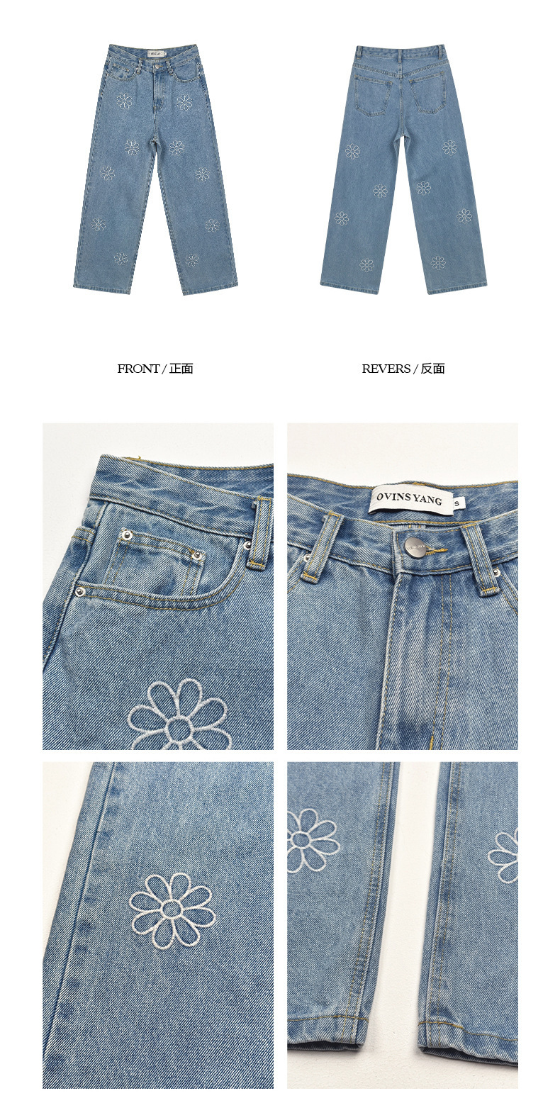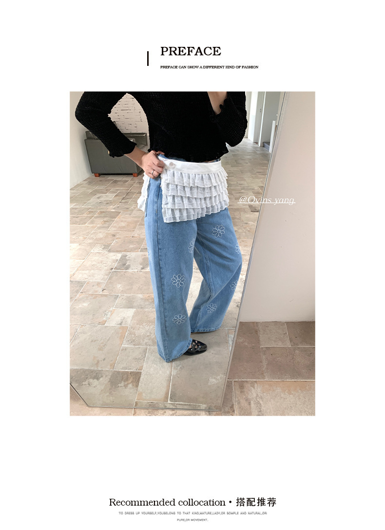 *o-ha-you*【FOY100792】刺繡淺藍色牛仔褲2025新款設計感寬鬆闊腿直筒褲子-如有需要請先諮詢