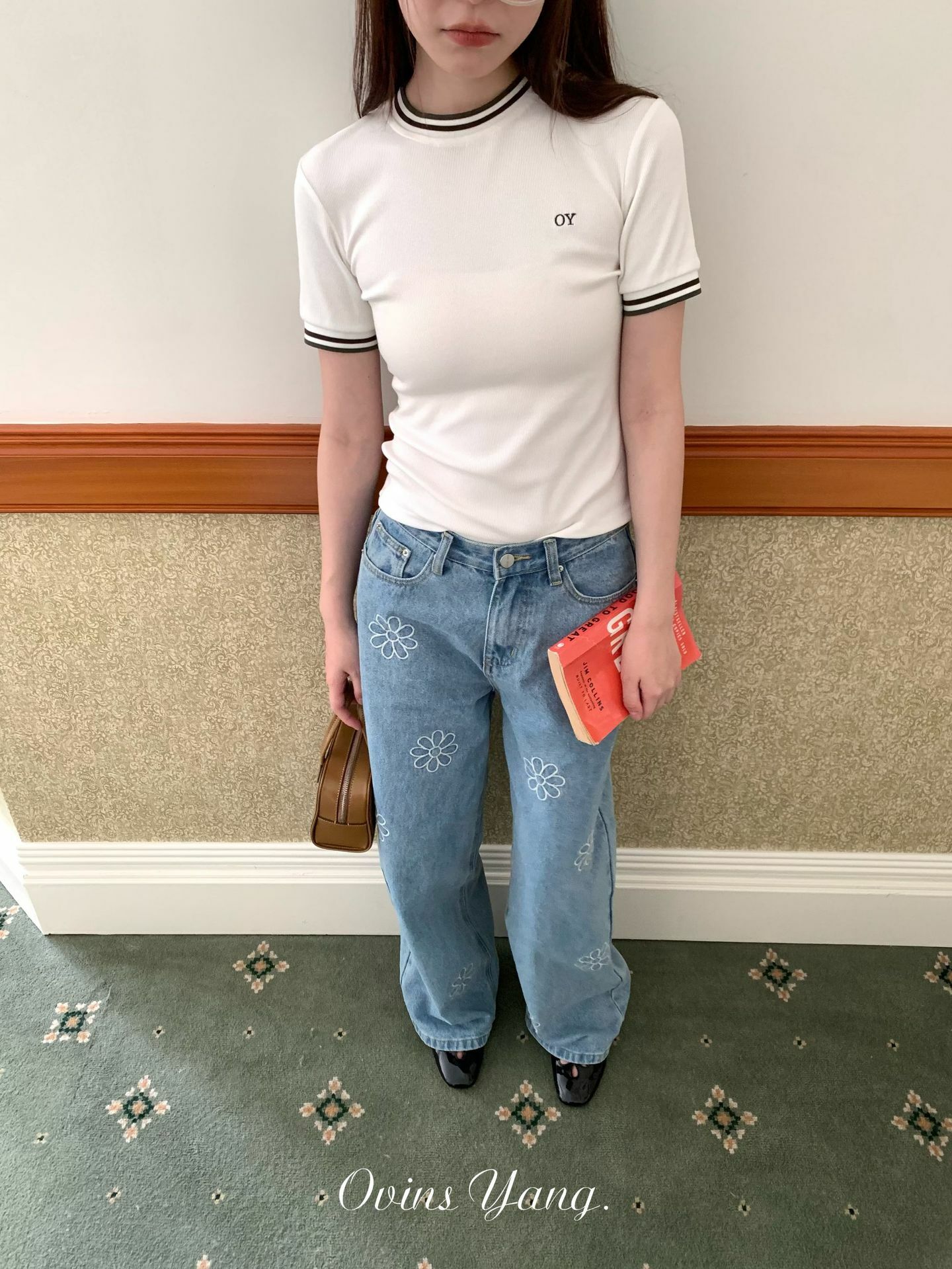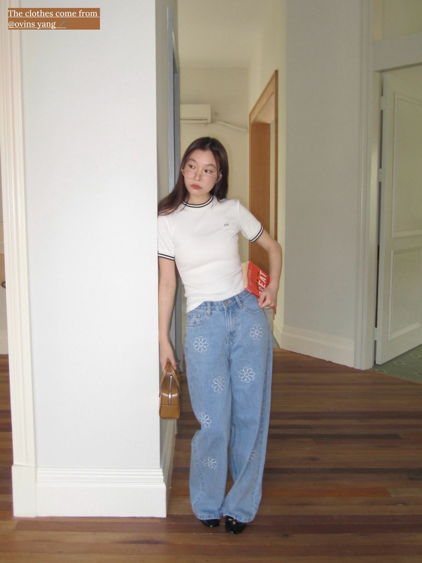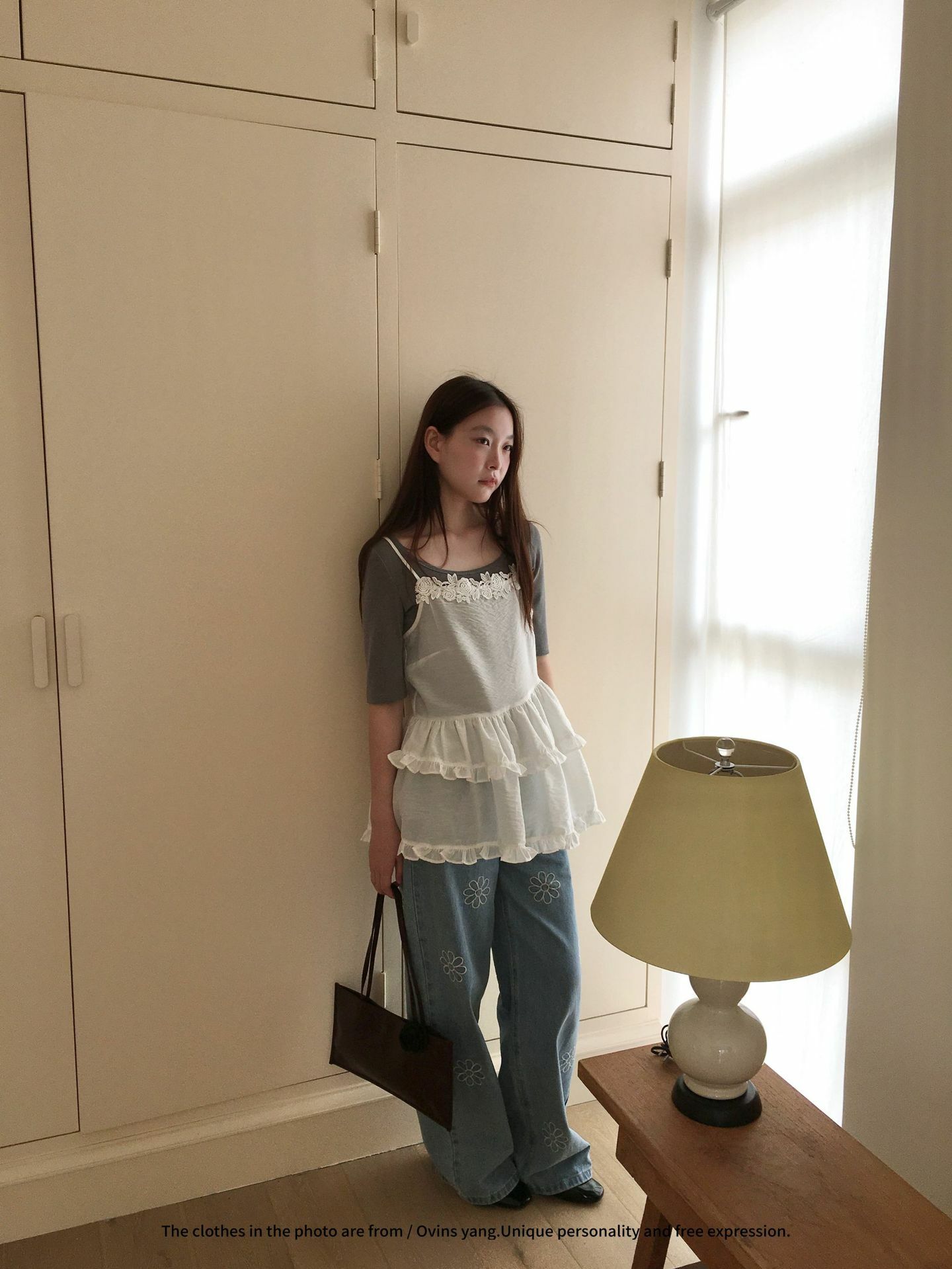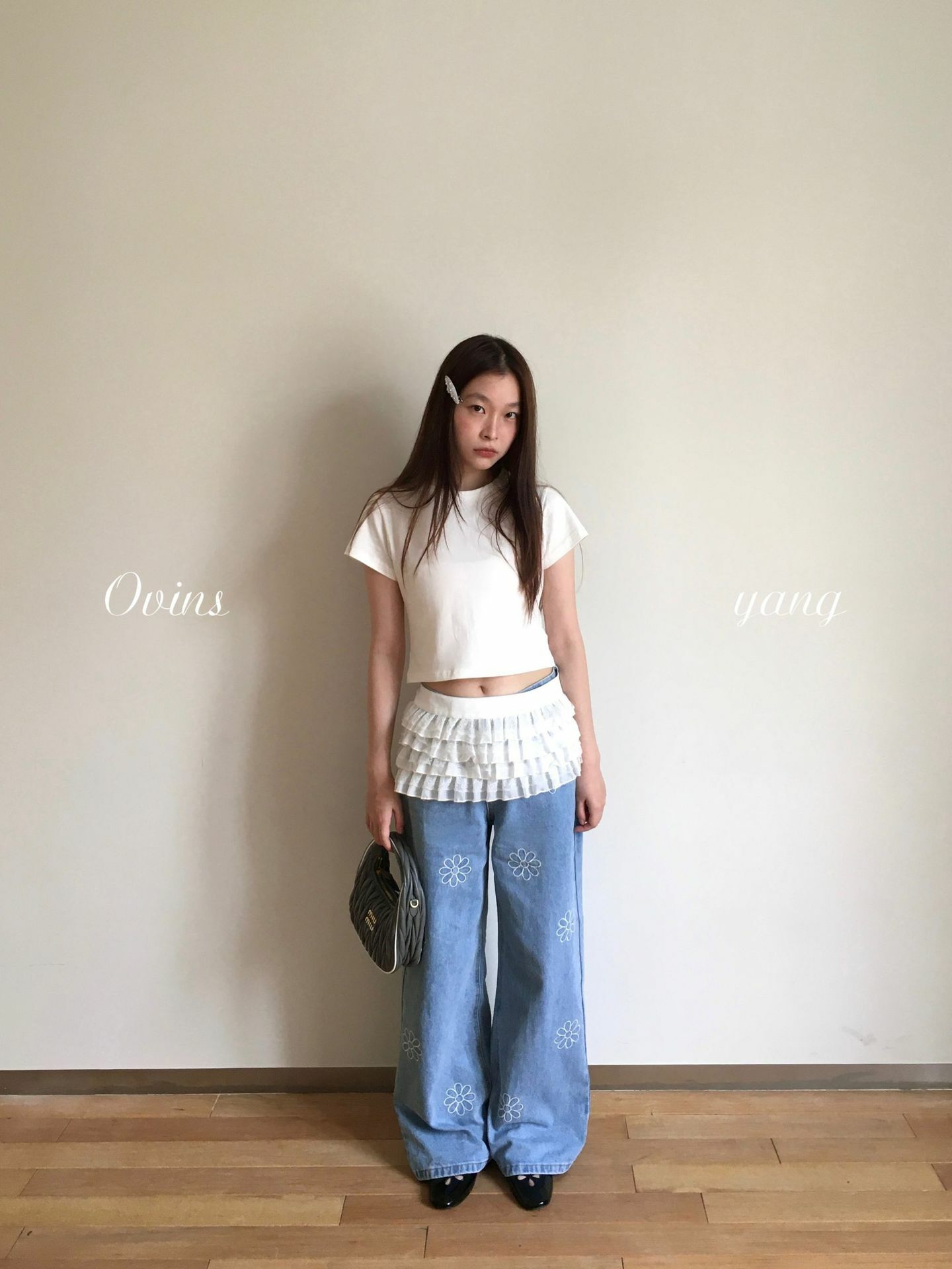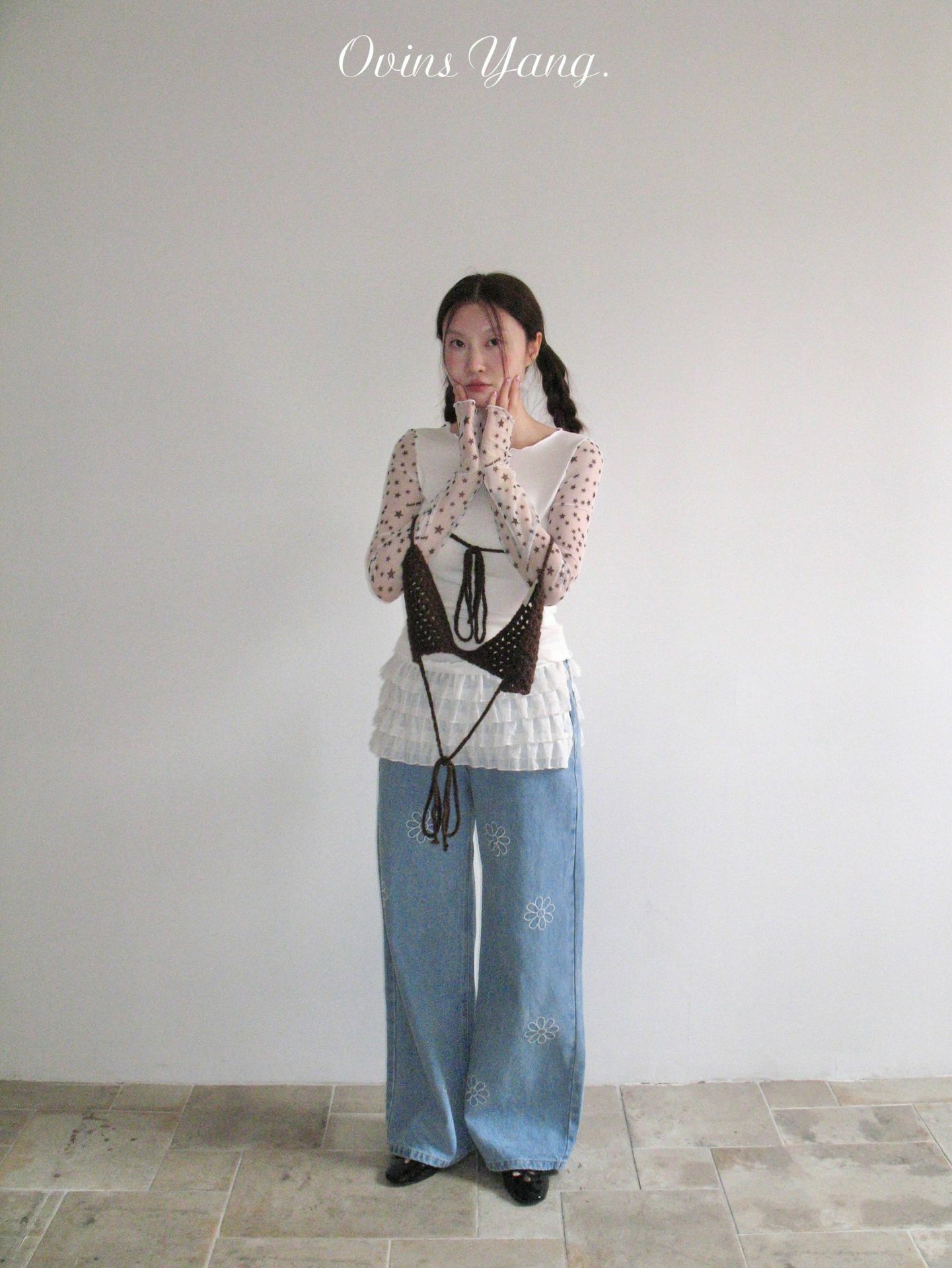 *o-ha-you*【FOY100792】刺繡淺藍色牛仔褲2025新款設計感寬鬆闊腿直筒褲子-如有需要請先諮詢
