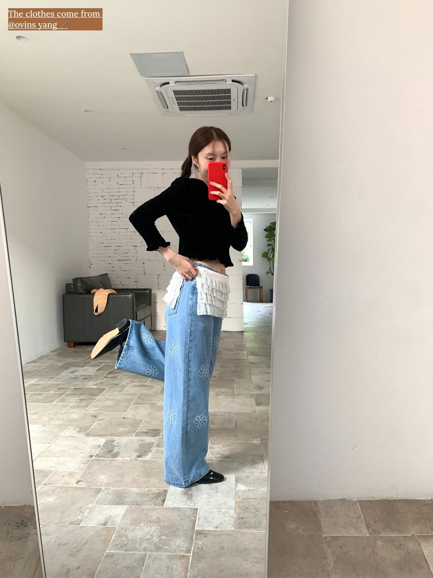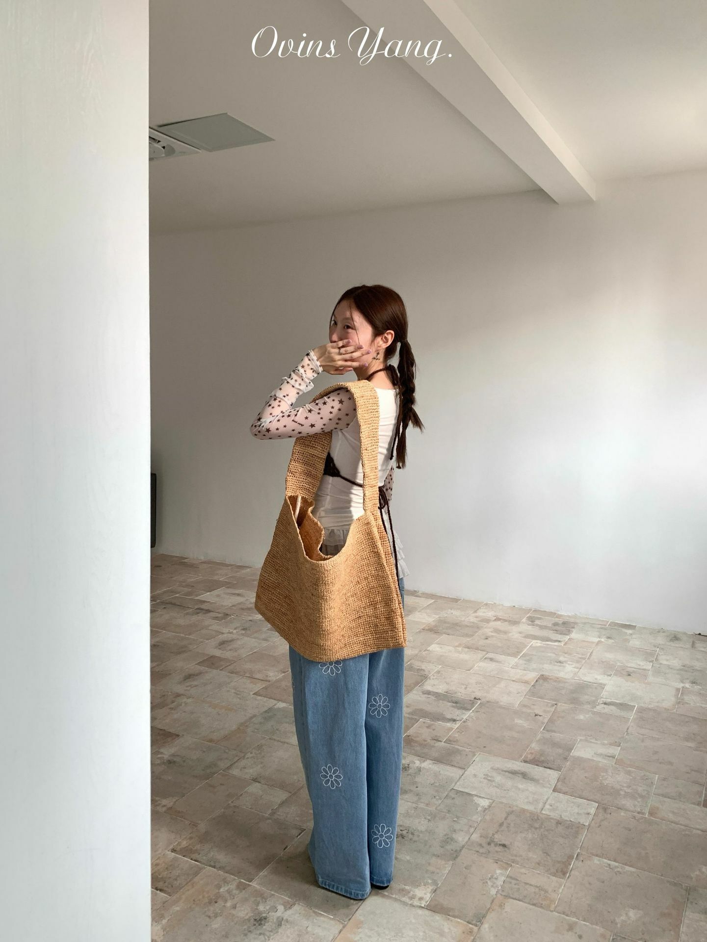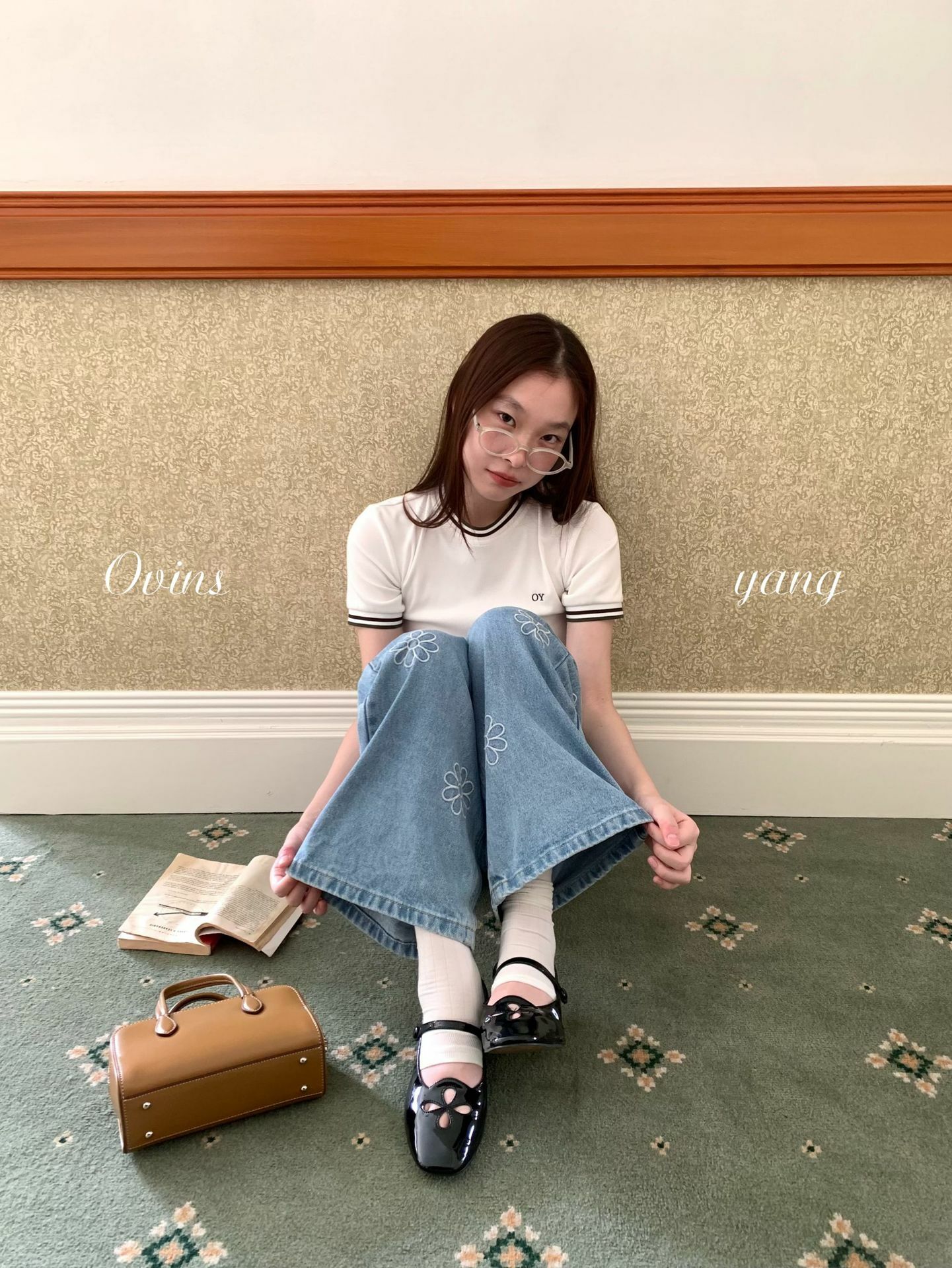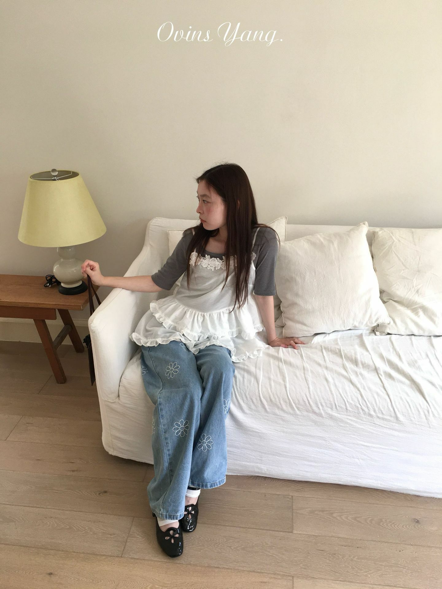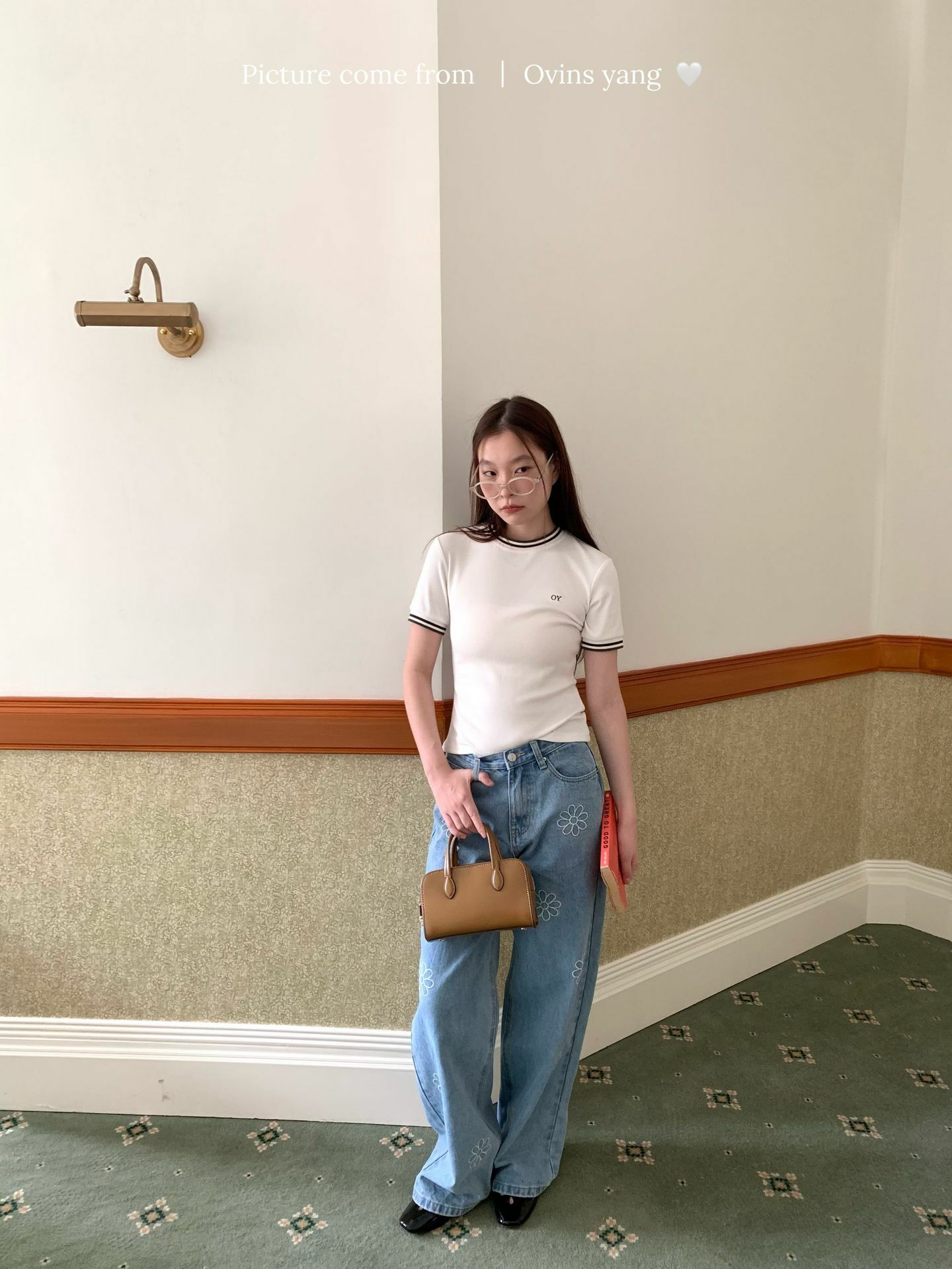 *o-ha-you*【FOY100792】刺繡淺藍色牛仔褲2025新款設計感寬鬆闊腿直筒褲子-如有需要請先諮詢