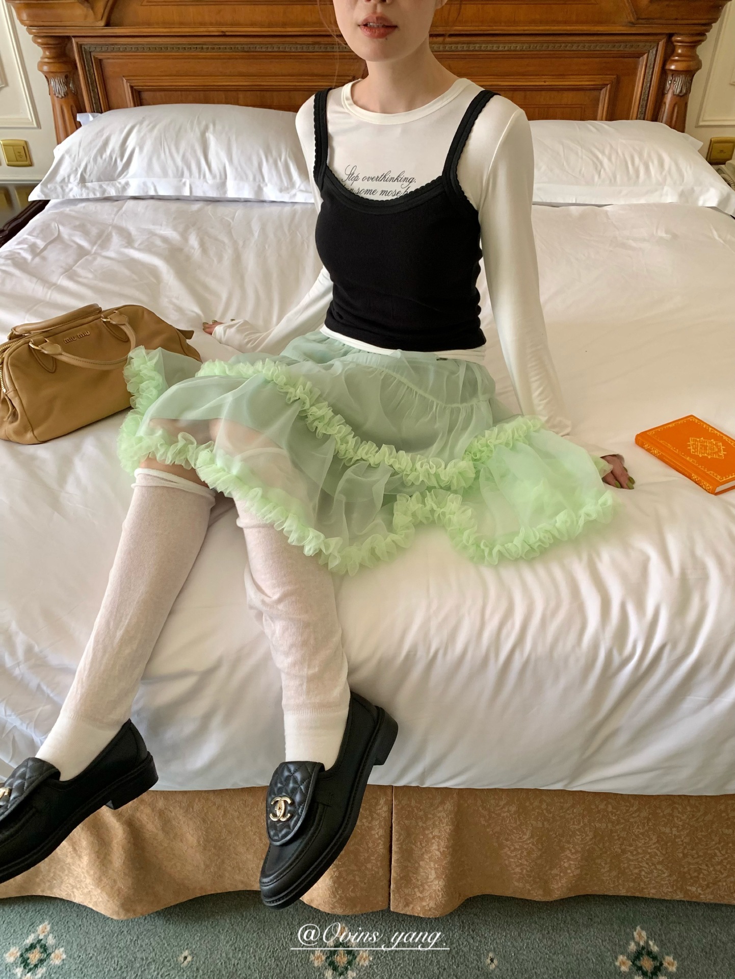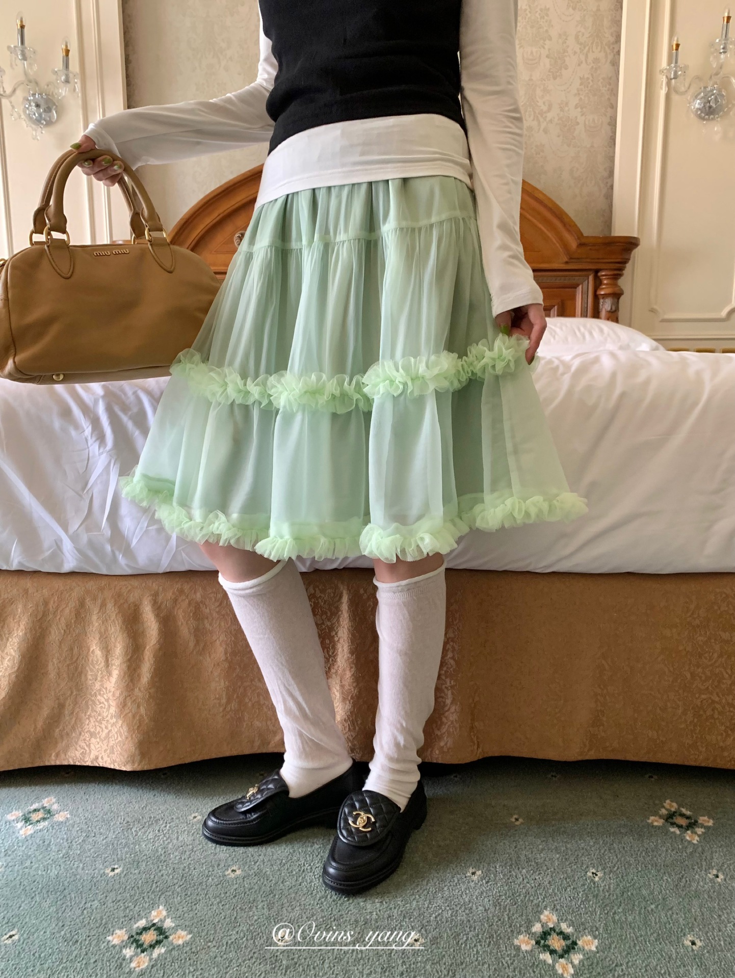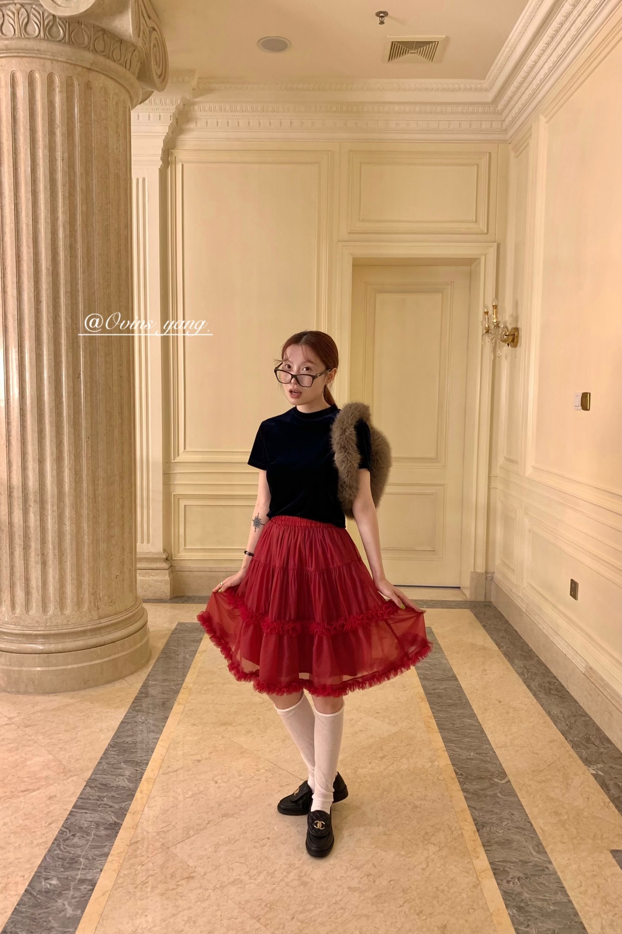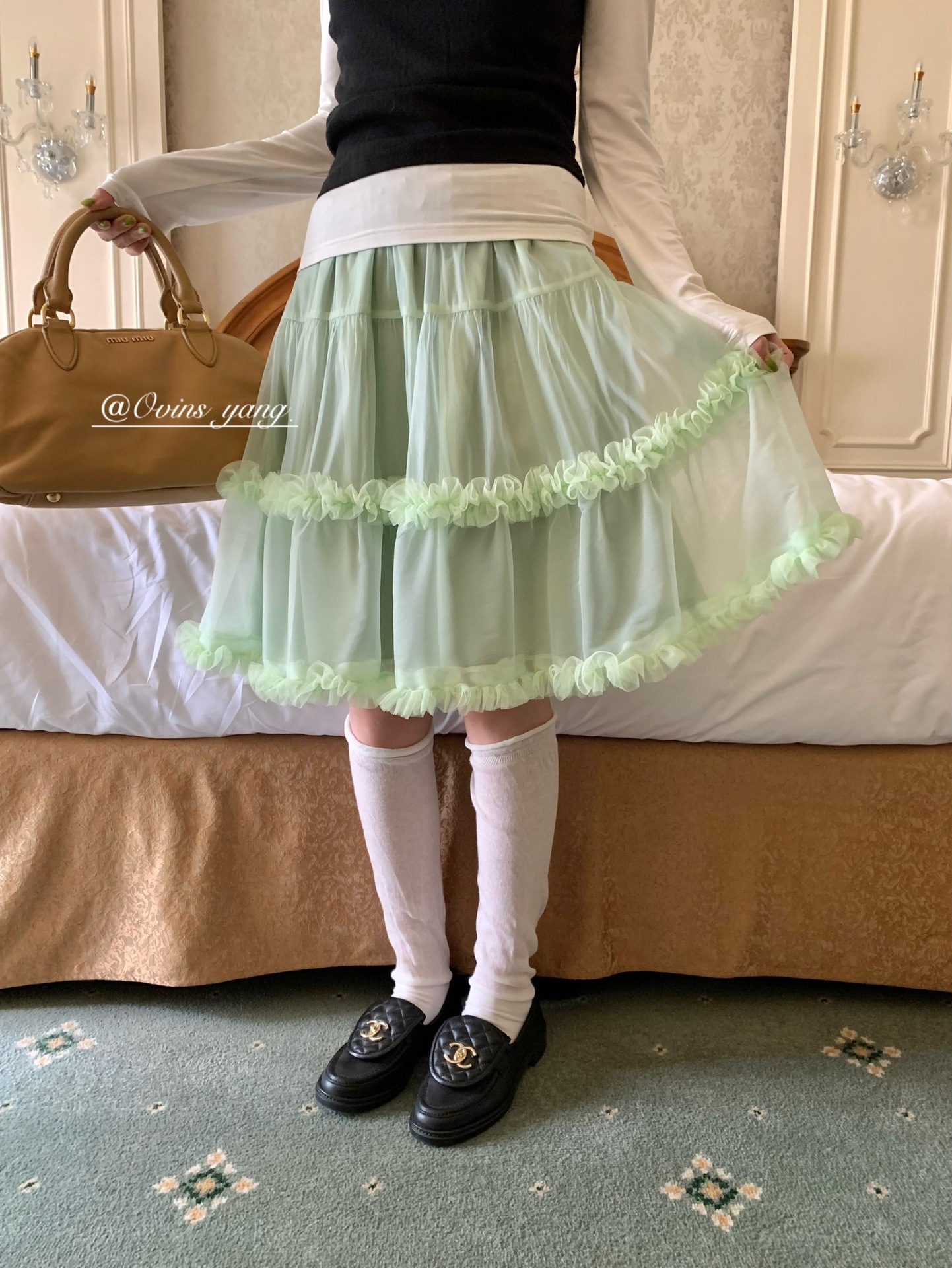 *o-ha-you*【FOY100805】網紗鬆緊腰半身裙小眾甜美少女感減齡A字蓬蓬百褶裙-3色