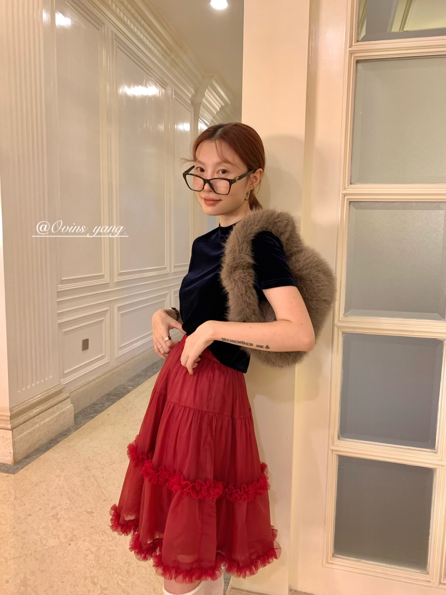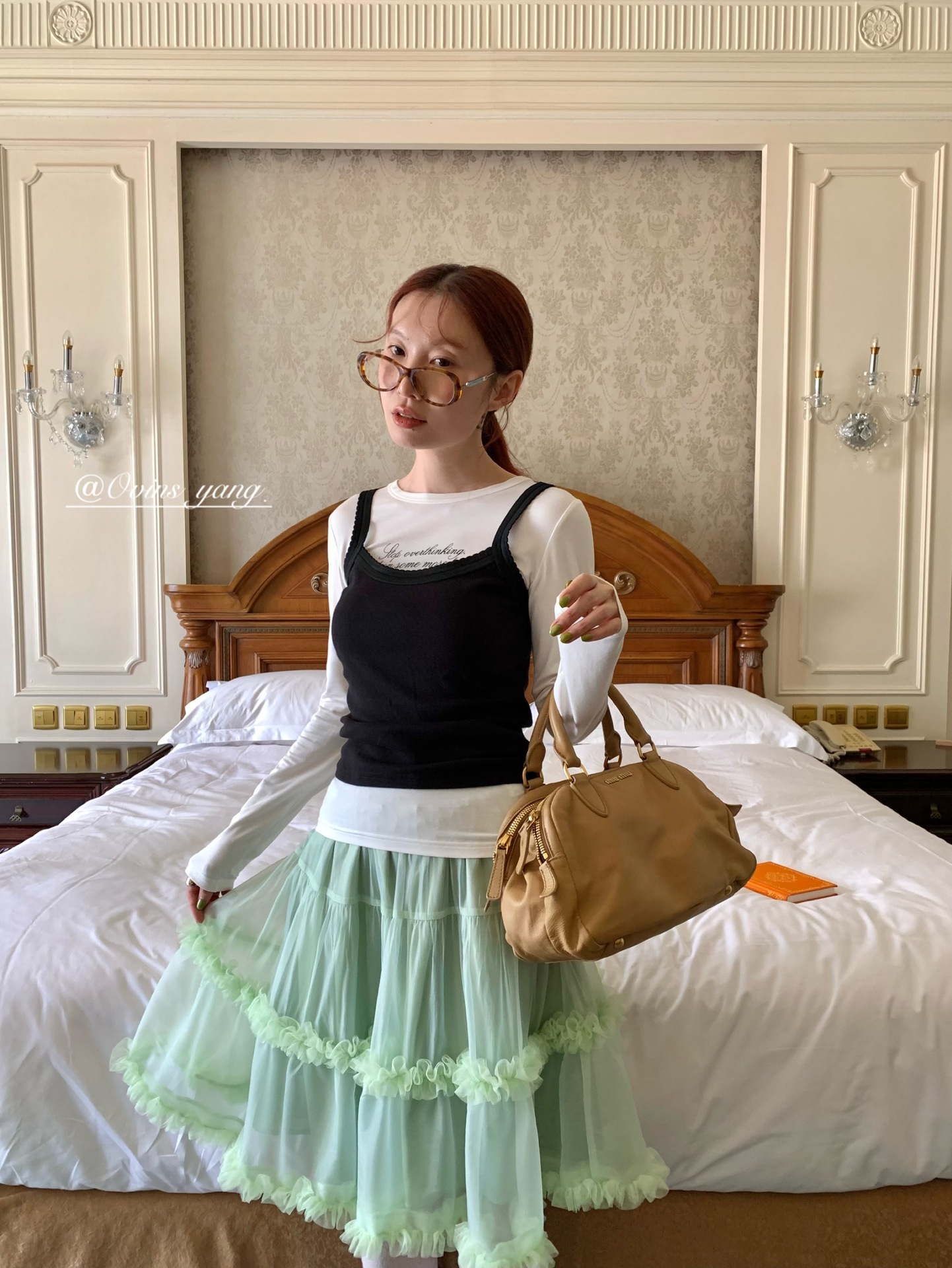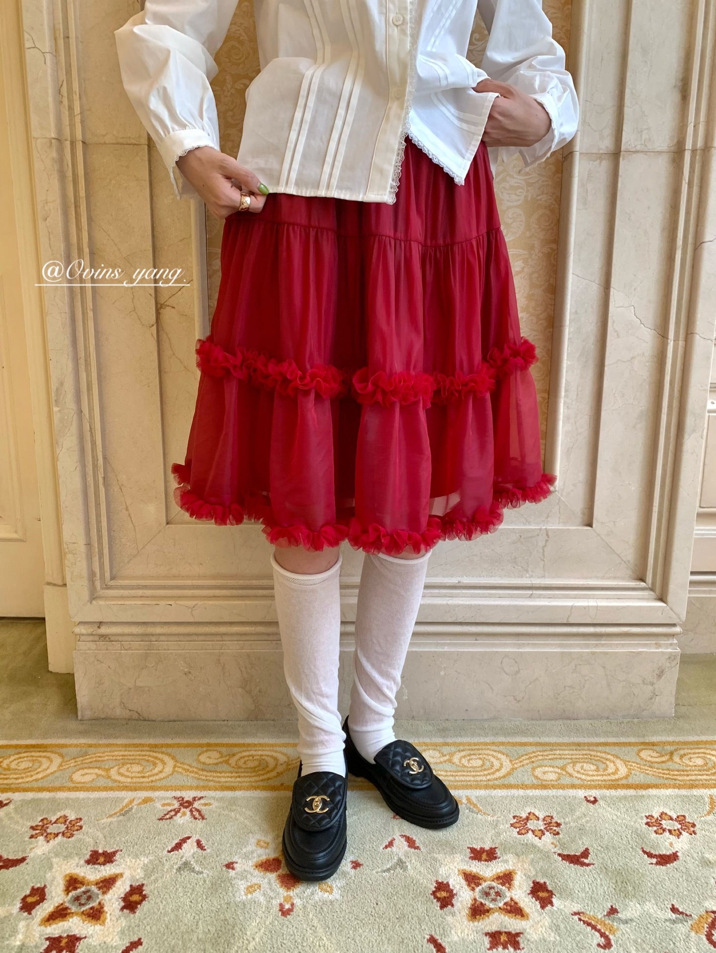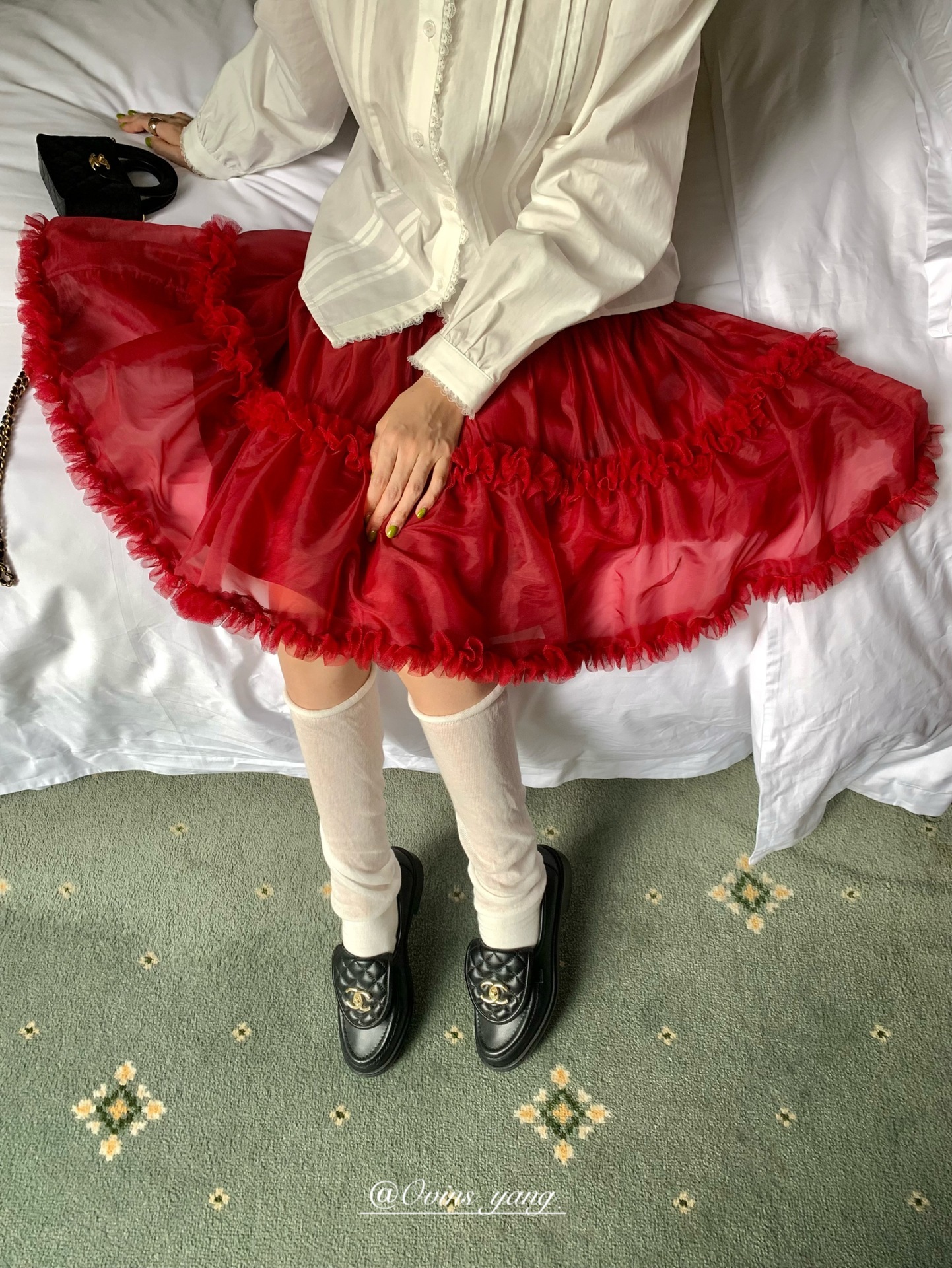 *o-ha-you*【FOY100805】網紗鬆緊腰半身裙小眾甜美少女感減齡A字蓬蓬百褶裙-3色
