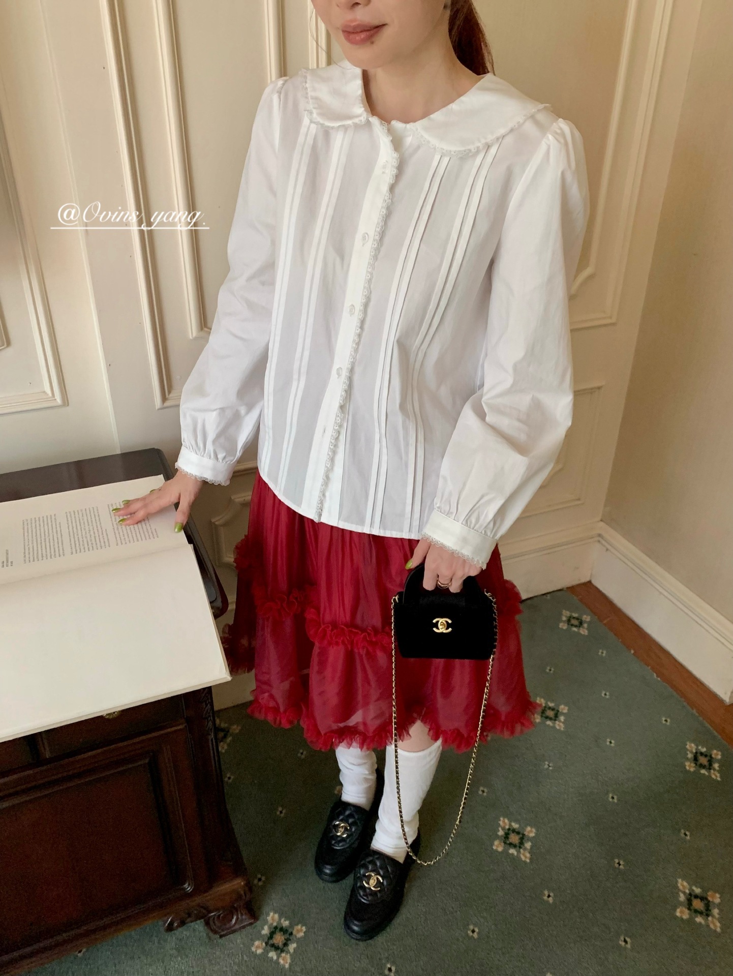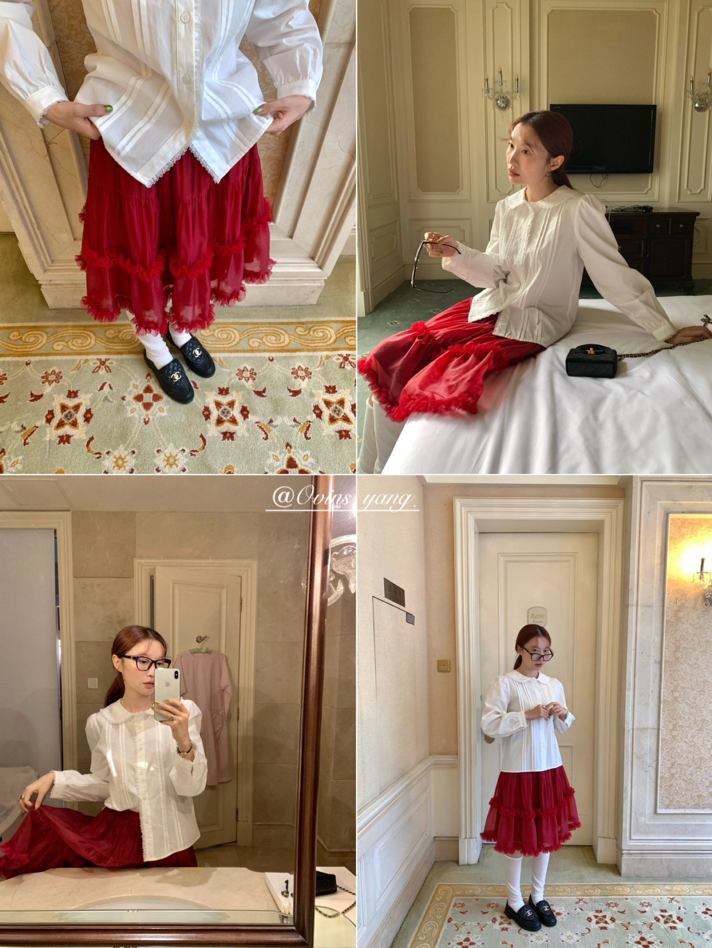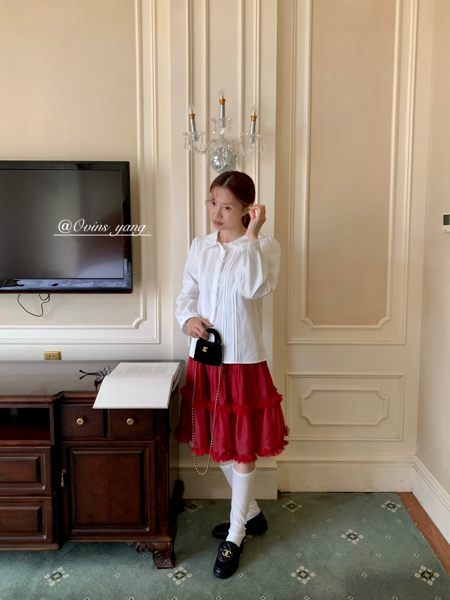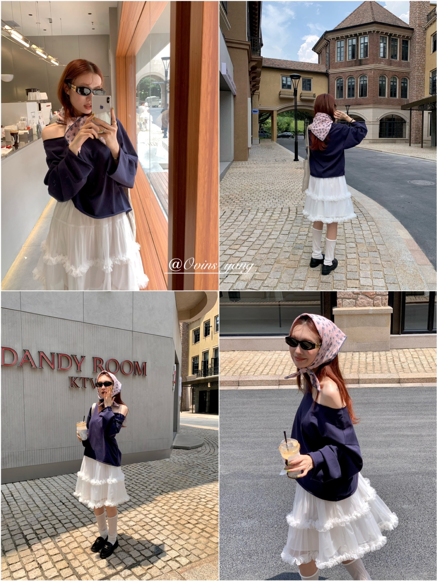 *o-ha-you*【FOY100805】網紗鬆緊腰半身裙小眾甜美少女感減齡A字蓬蓬百褶裙-3色