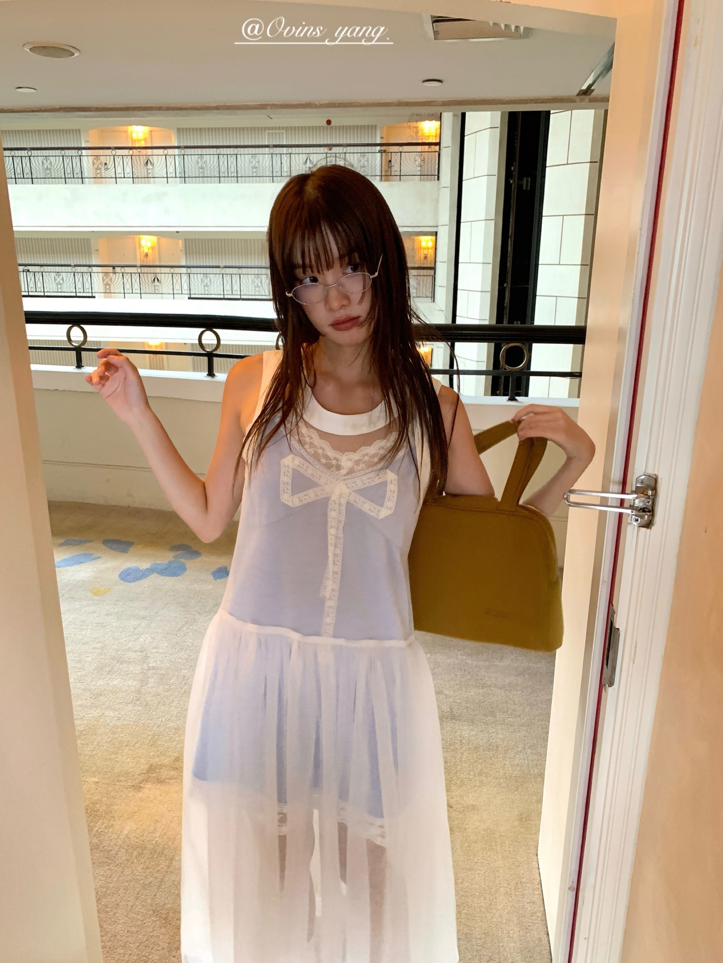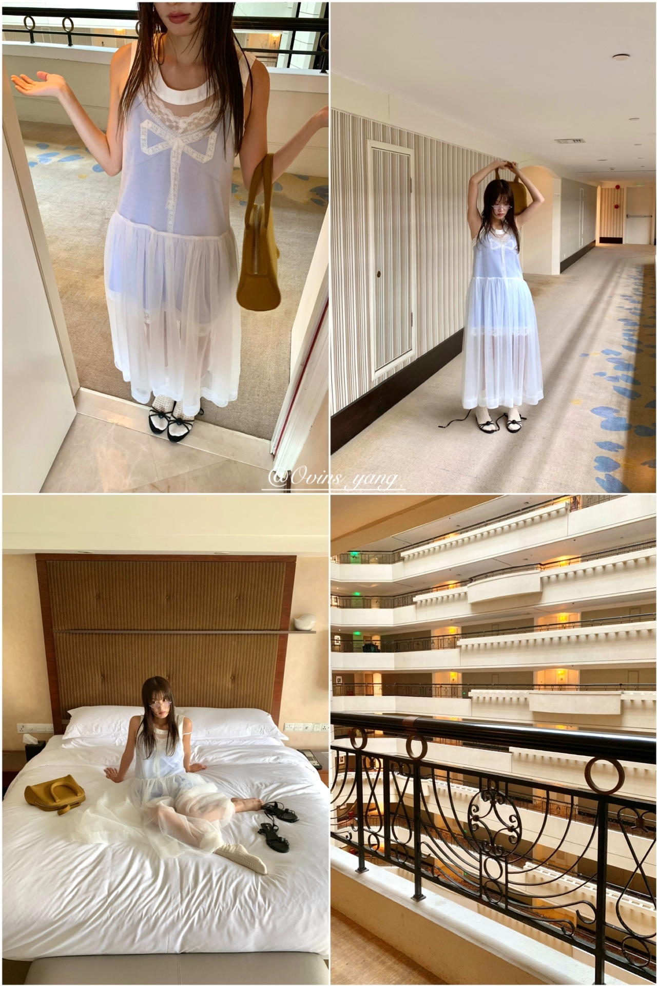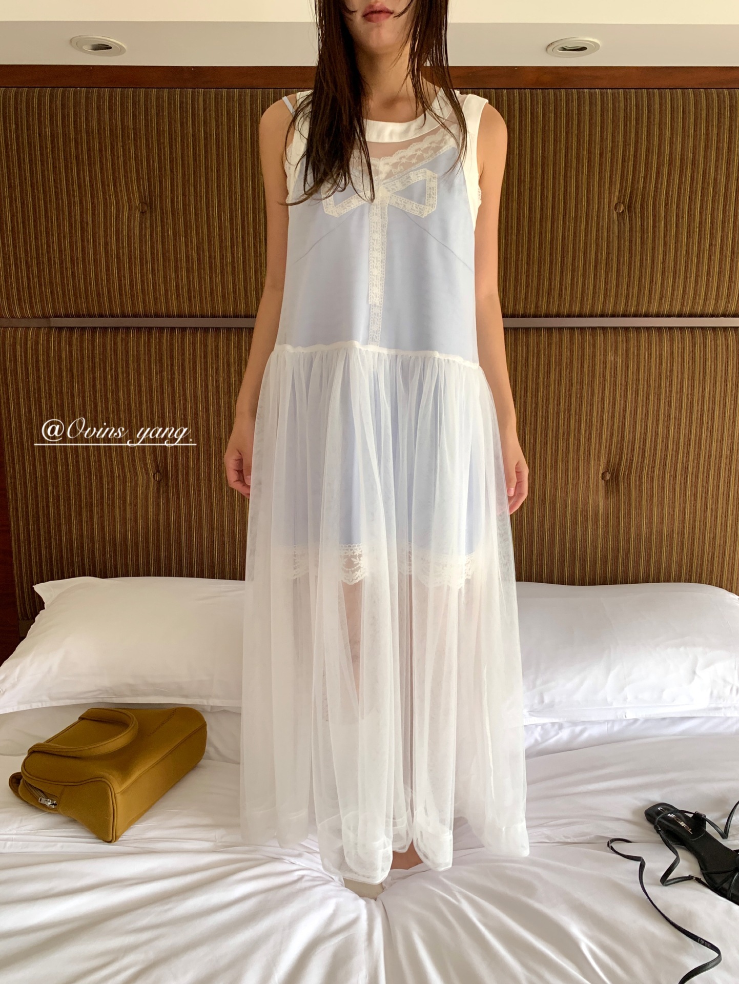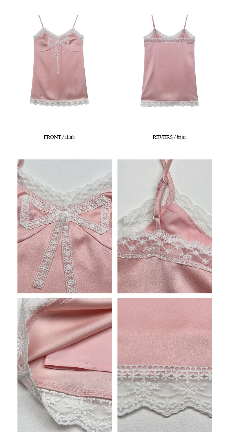 *o-ha-you*【FOY100811】蕾絲拼接蝴蝶結連衣裙2025新款氣質甜美穿搭吊帶裙洋裝-2色