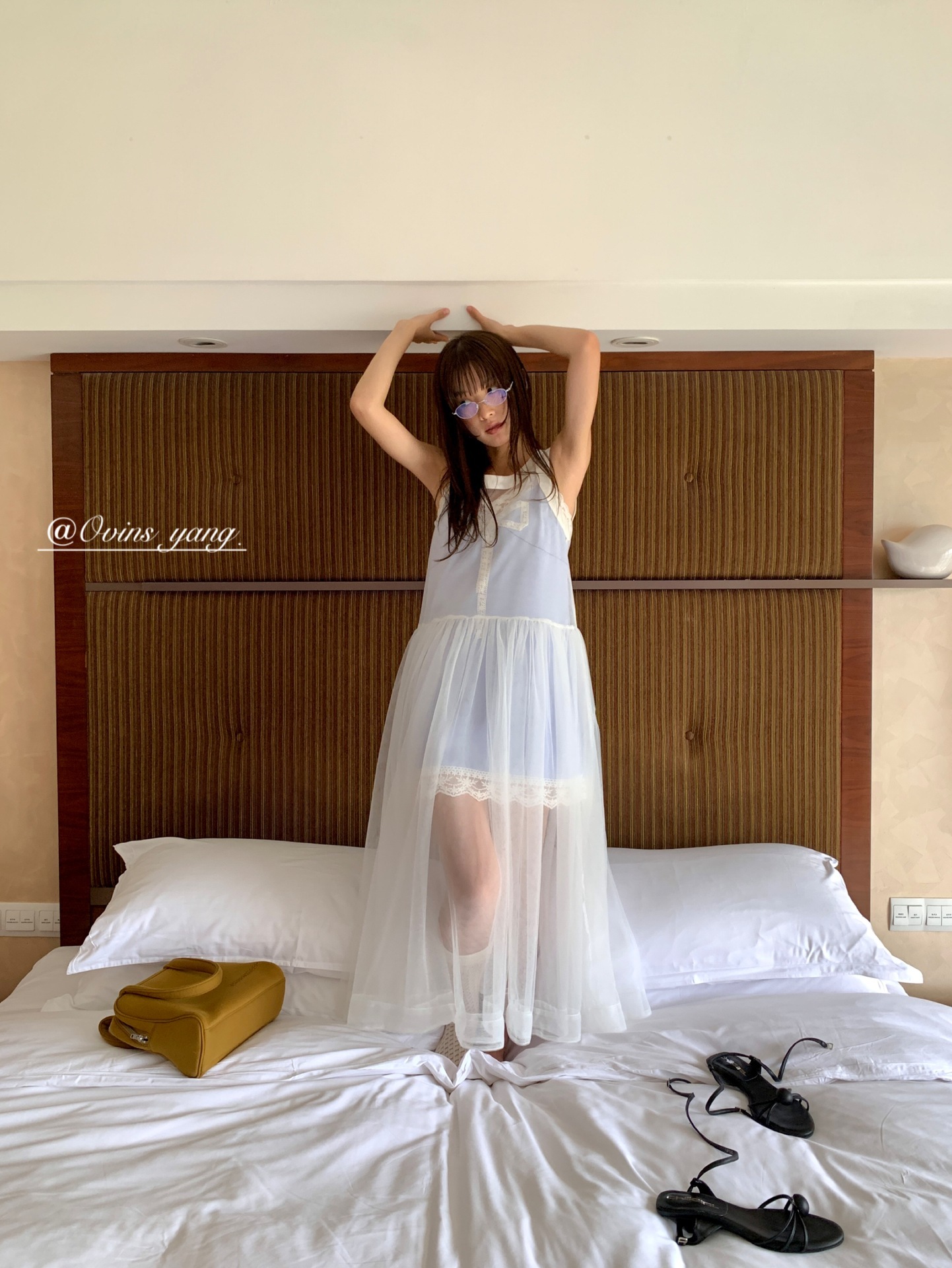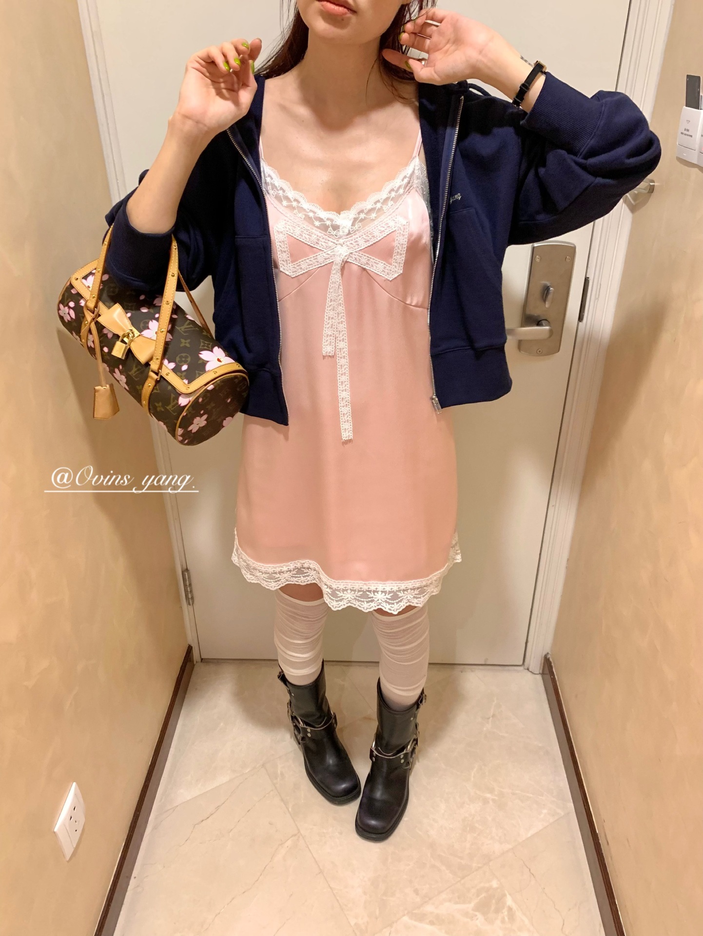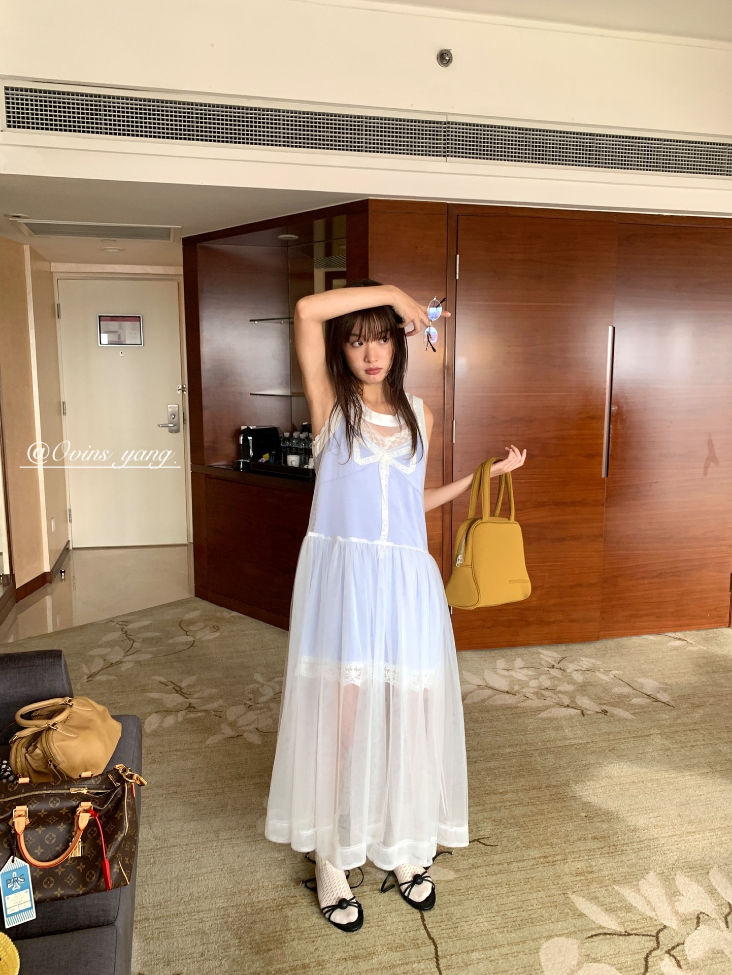 *o-ha-you*【FOY100811】蕾絲拼接蝴蝶結連衣裙2025新款氣質甜美穿搭吊帶裙洋裝-2色