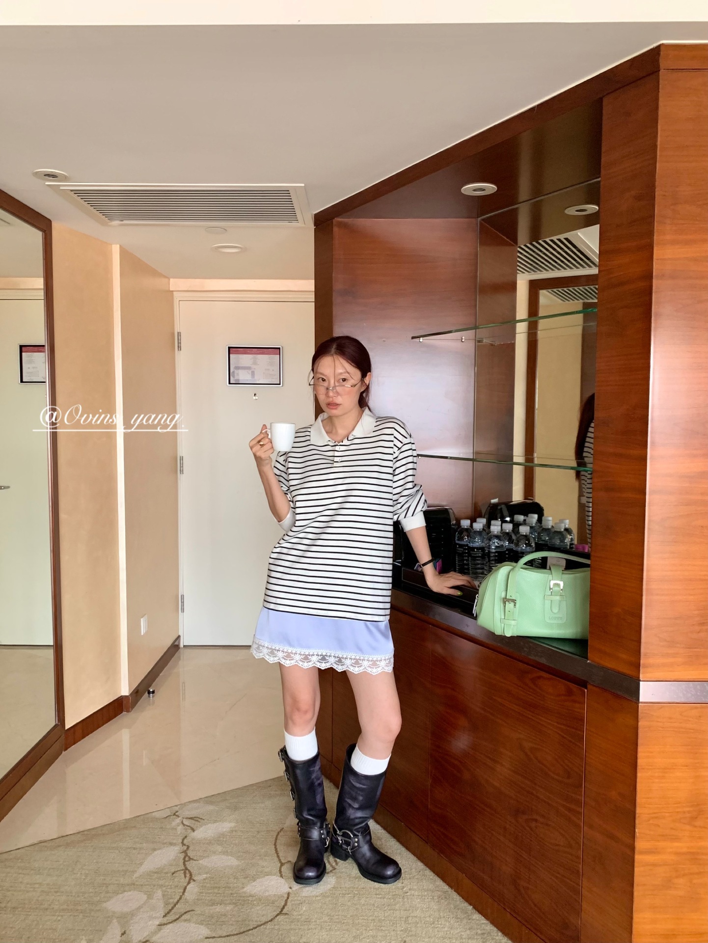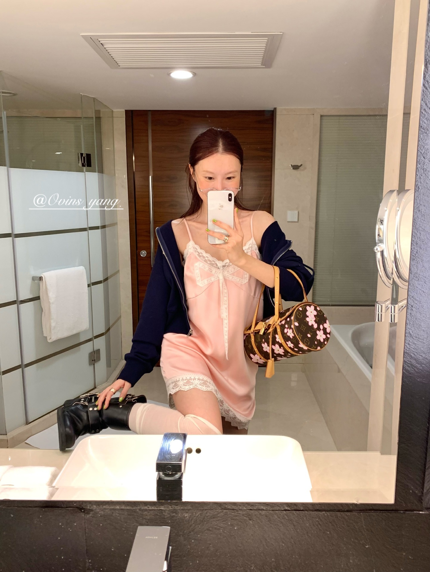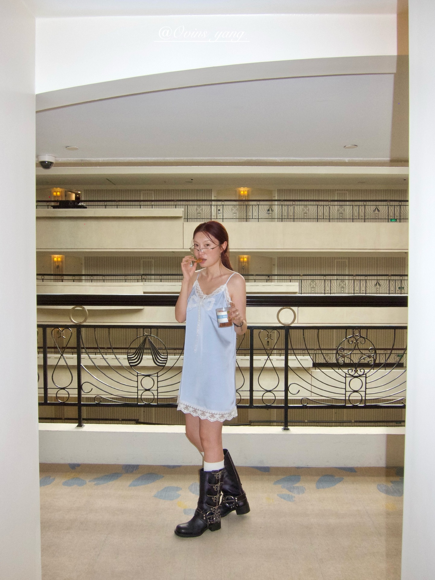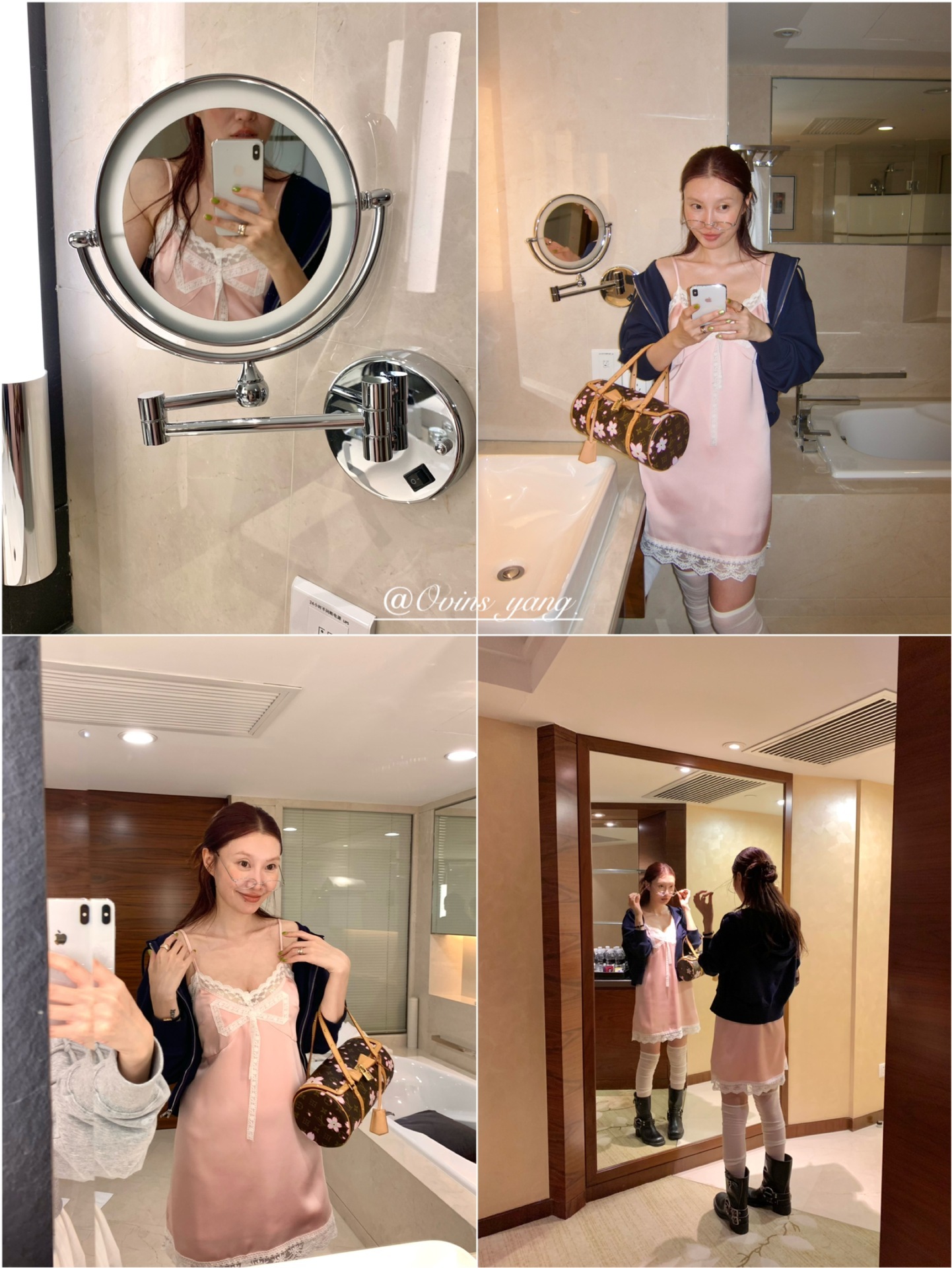 *o-ha-you*【FOY100811】蕾絲拼接蝴蝶結連衣裙2025新款氣質甜美穿搭吊帶裙洋裝-2色