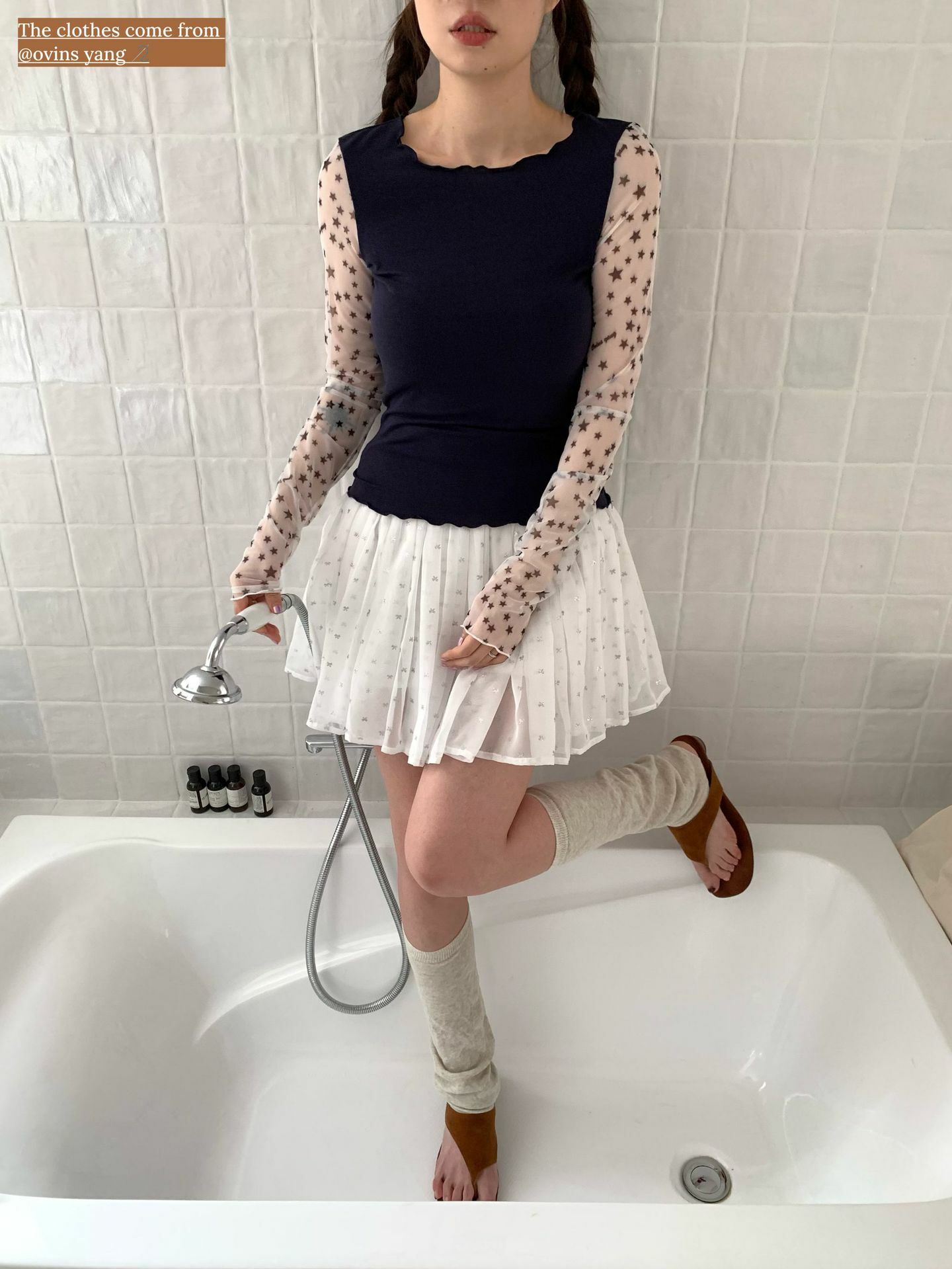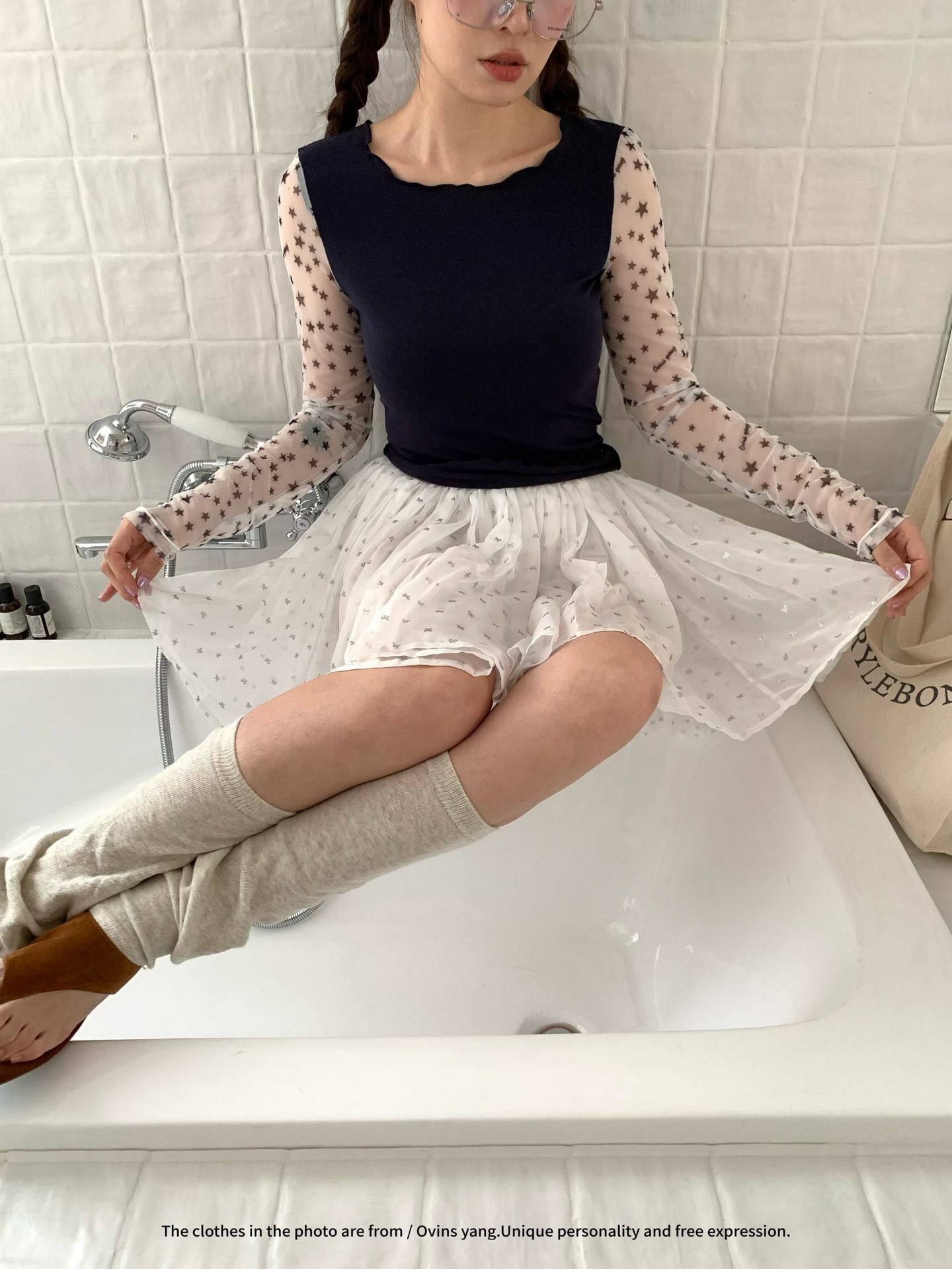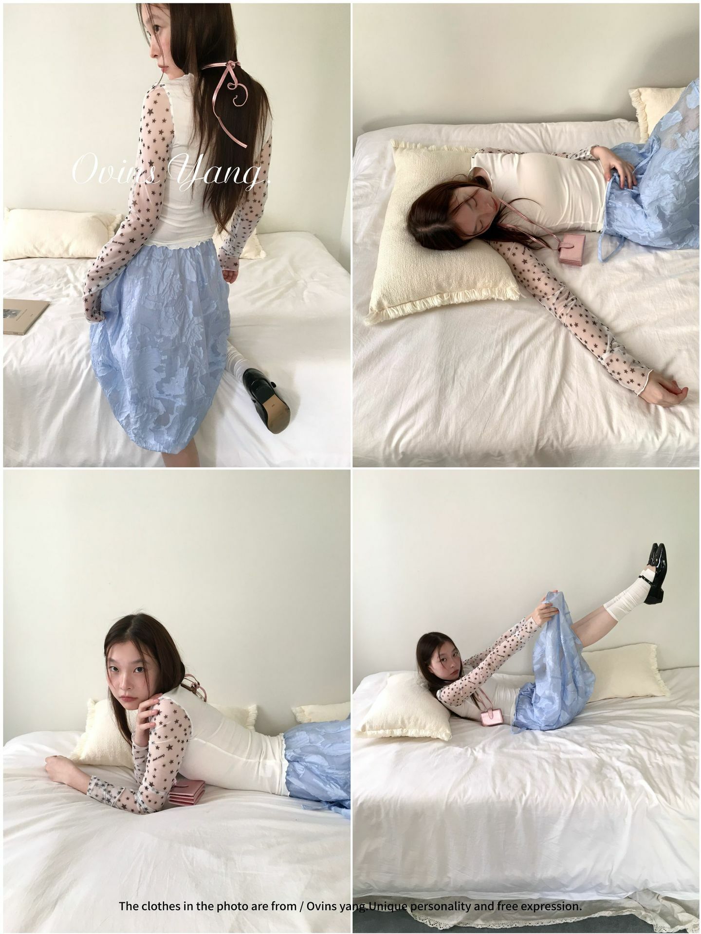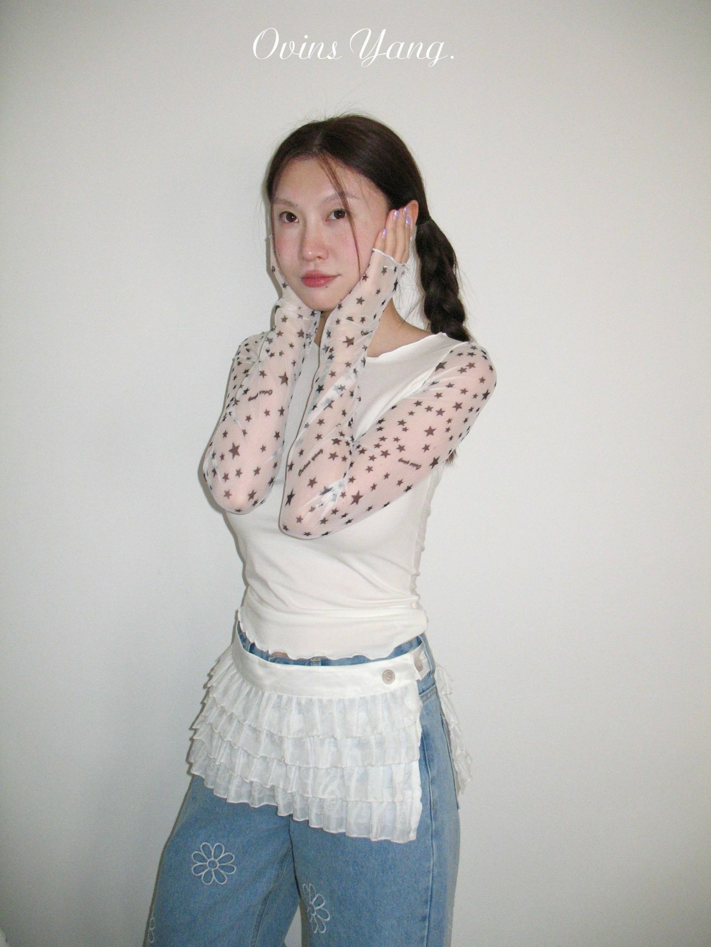*o-ha-you*【FOY100812】網紗袖子上衣內搭T恤2025新款設計感小眾別緻小衫-3色
