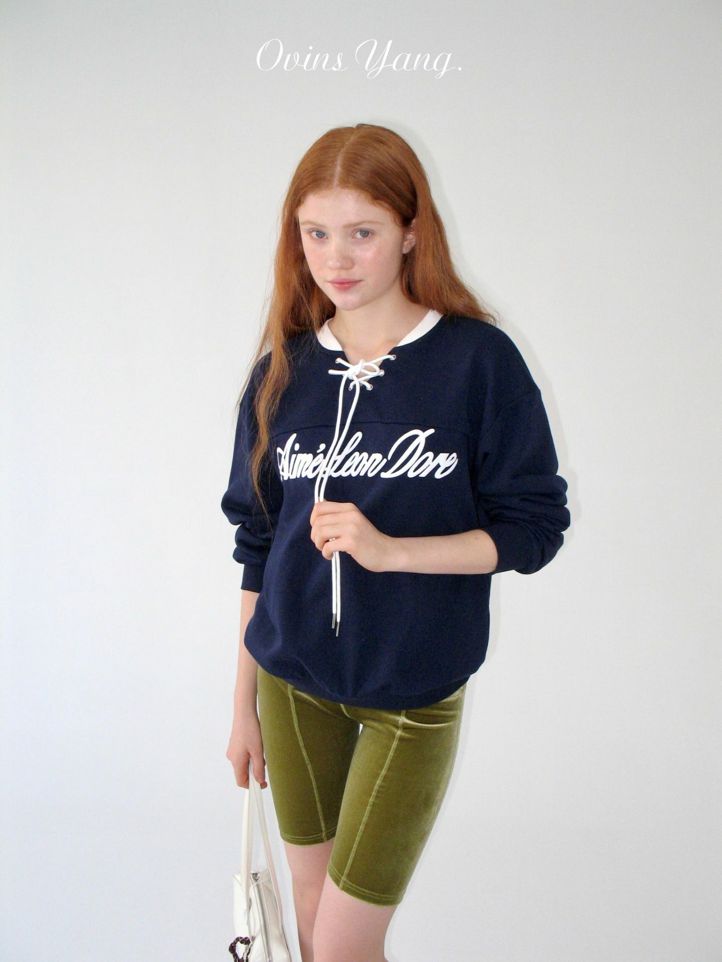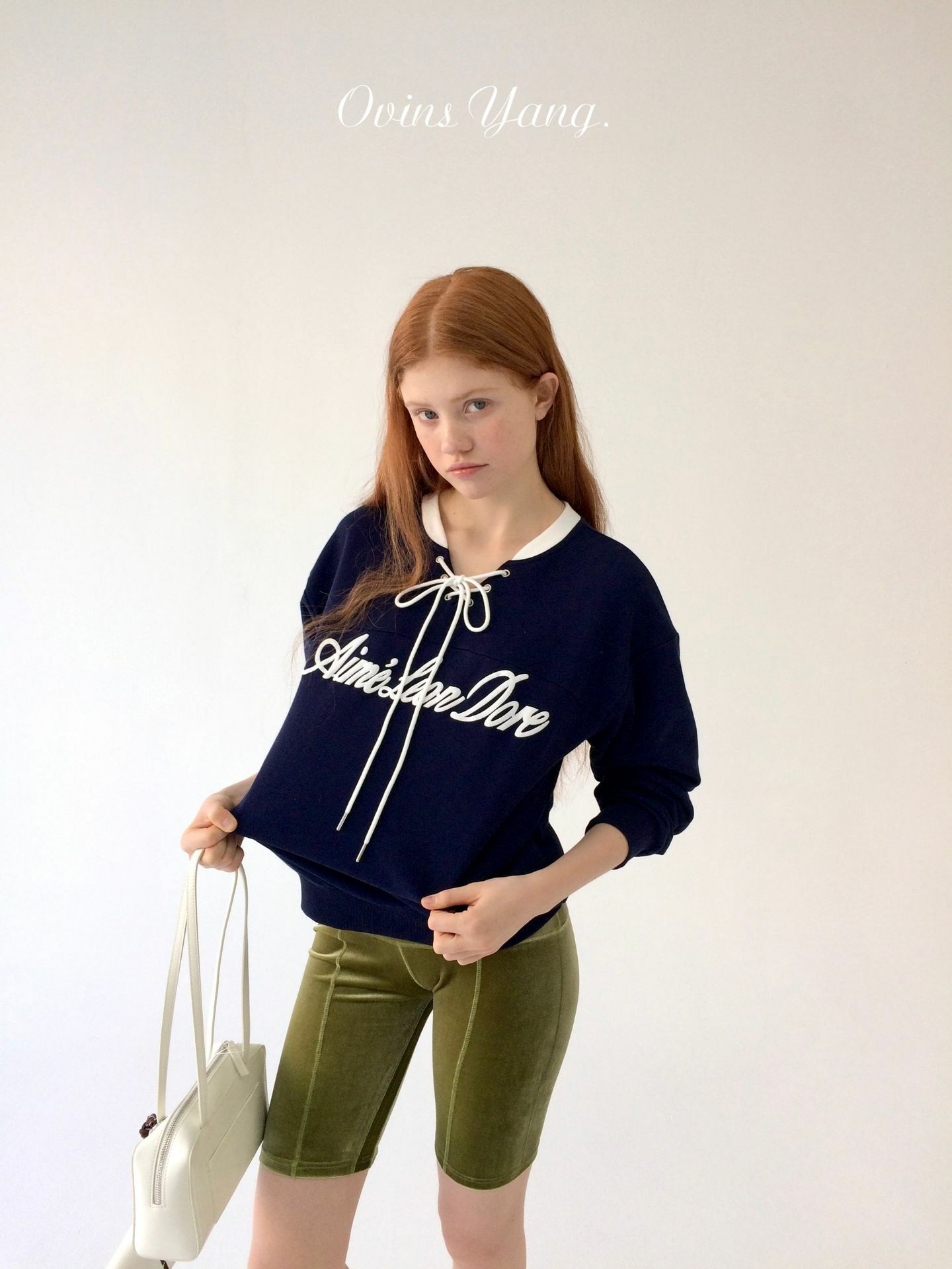 *o-ha-you*【FOY100821】繫帶V領衛衣2025新款設計感小眾韓系慵懶風休閒上衣-2色