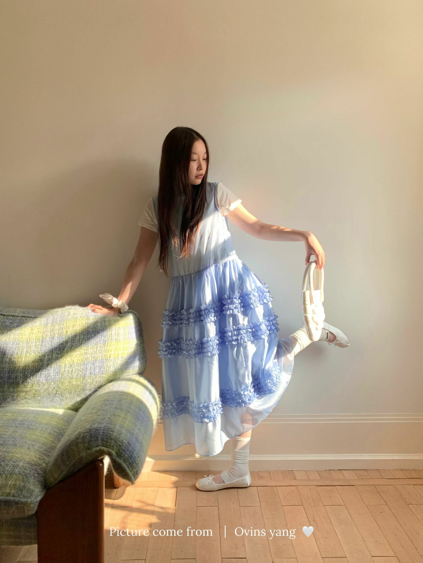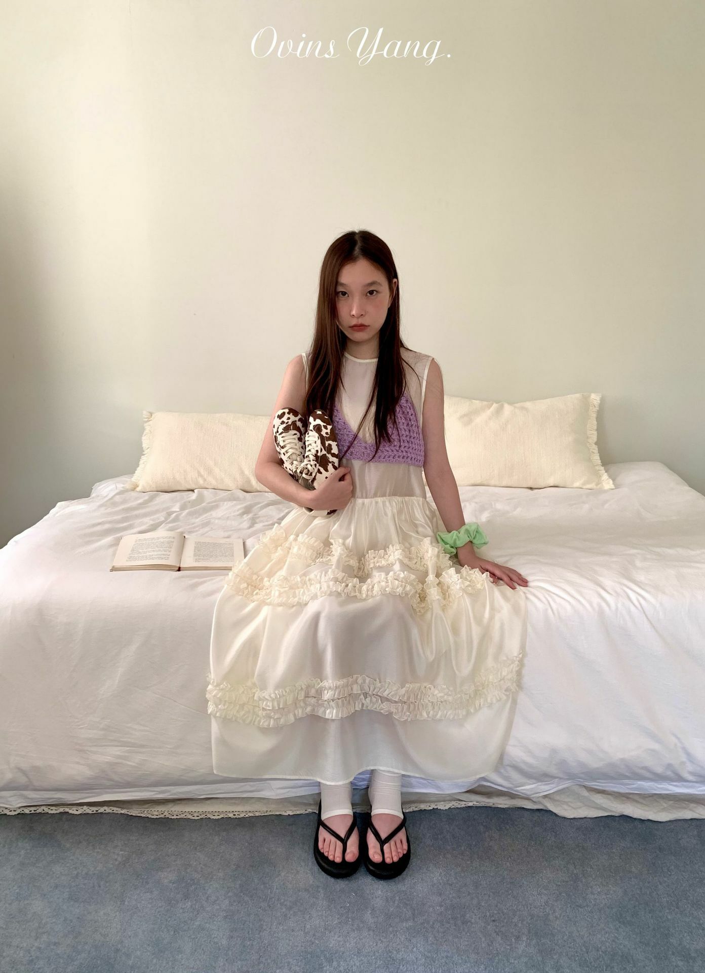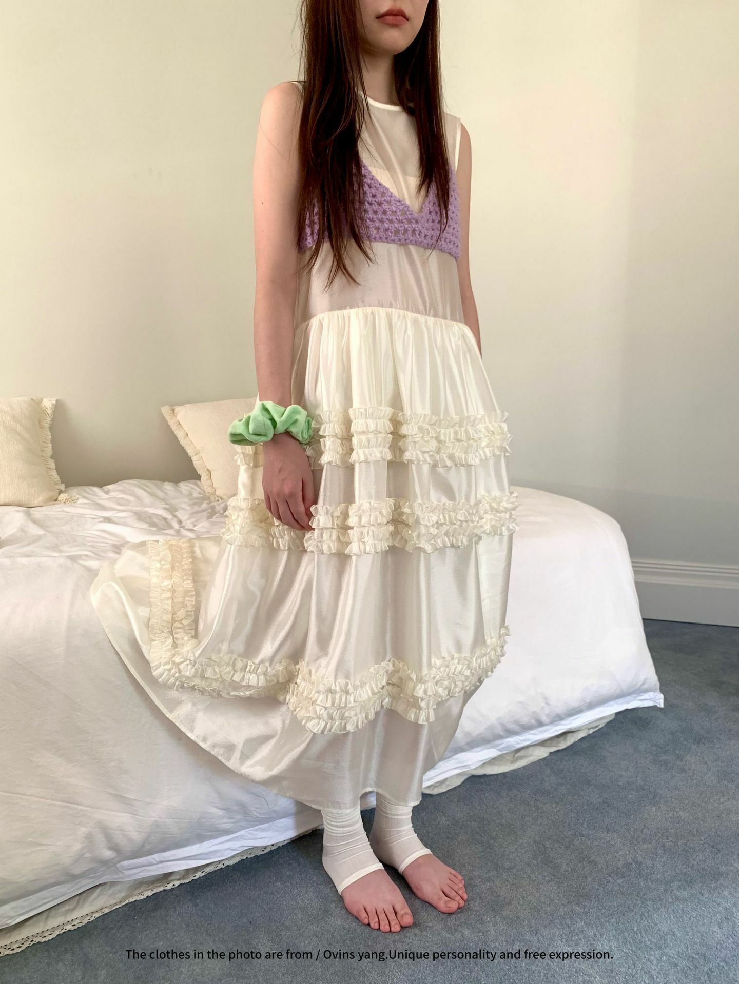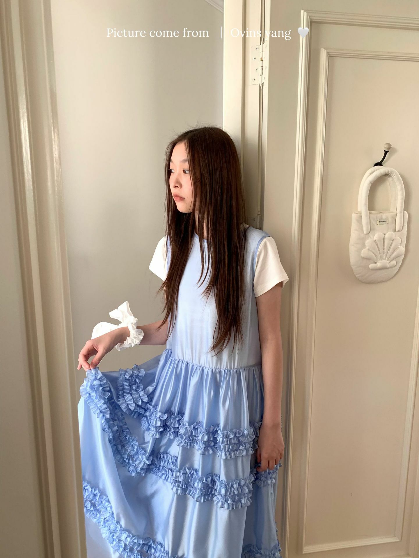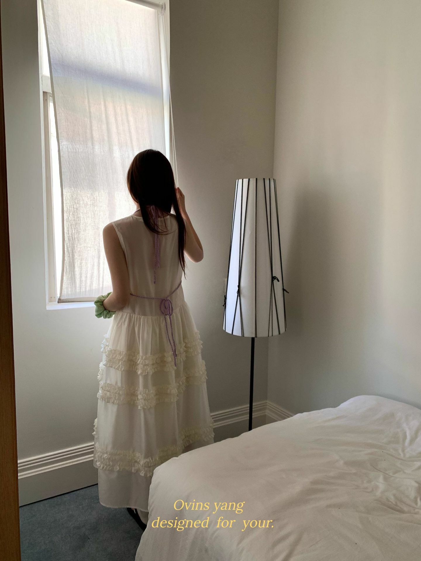 *o-ha-you*【FOY100828】花邊韓系疊穿背心裙減齡少女感穿搭無袖連衣裙蛋糕裙洋裝-2色