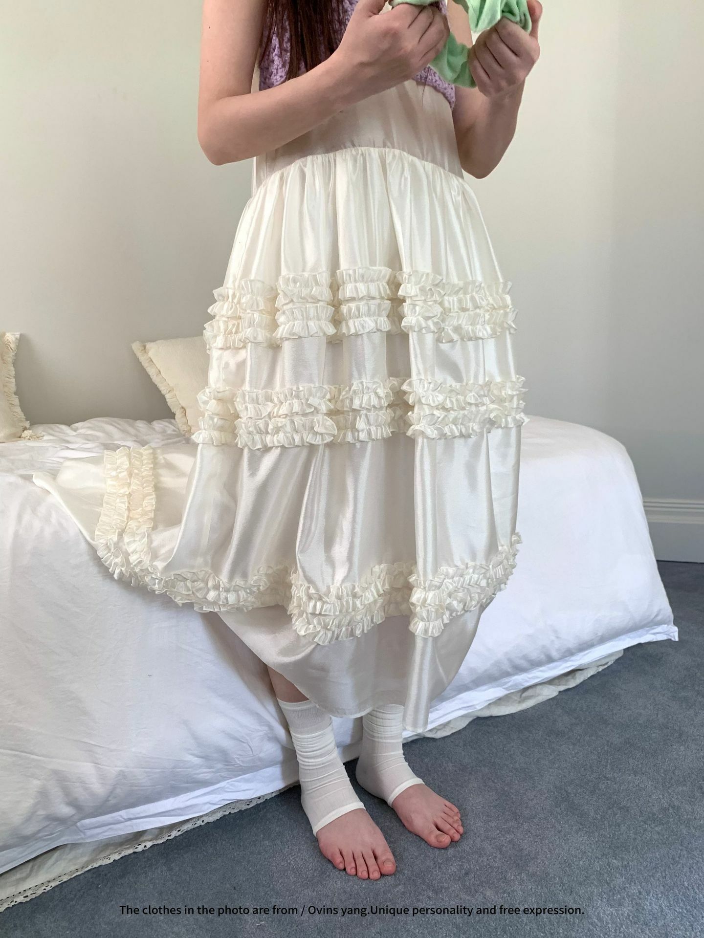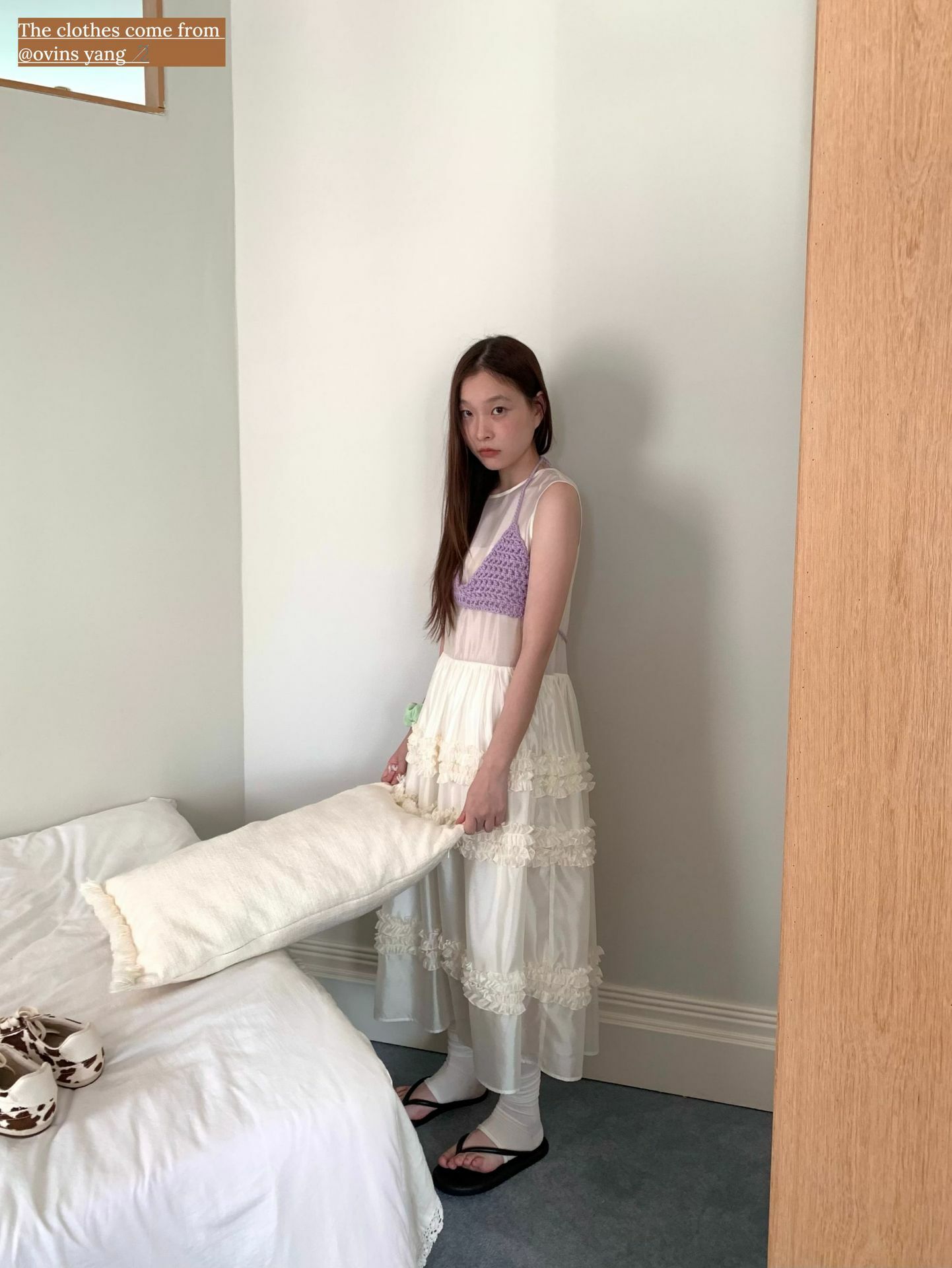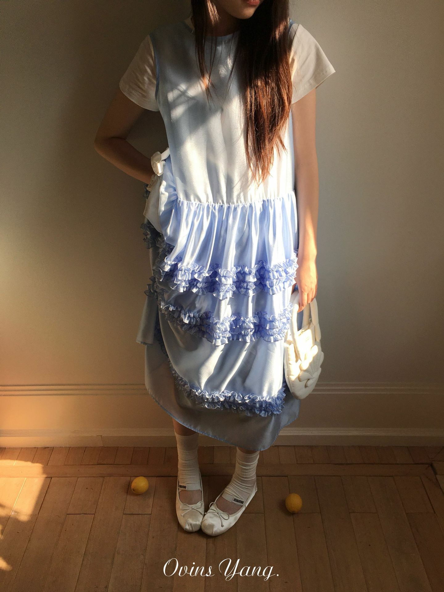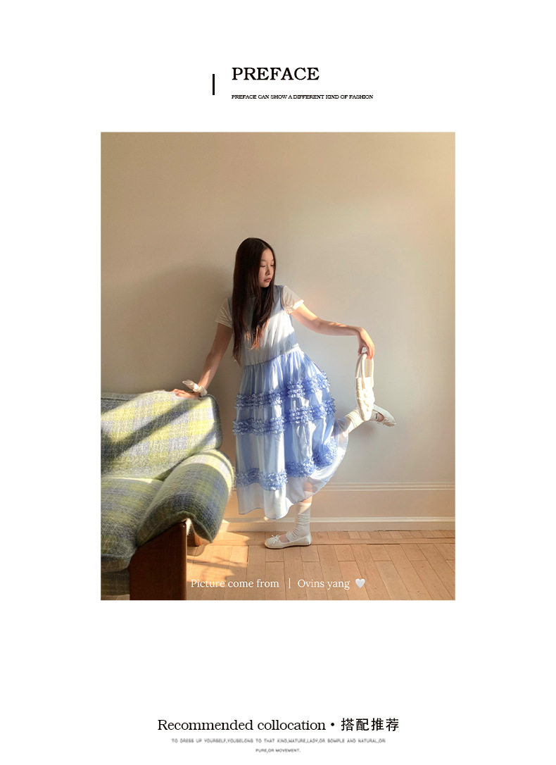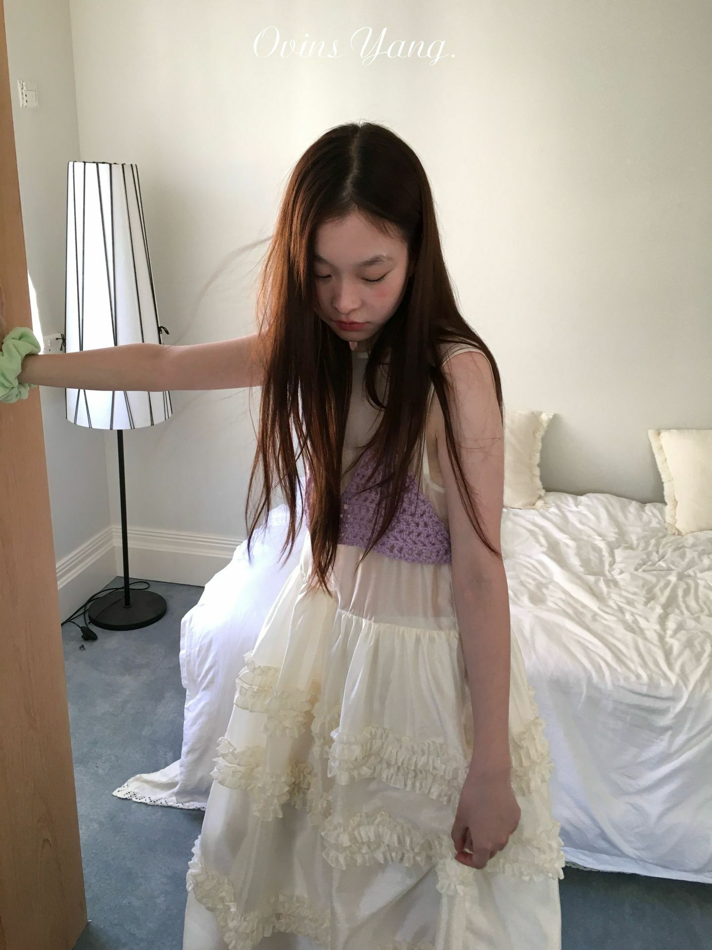 *o-ha-you*【FOY100828】花邊韓系疊穿背心裙減齡少女感穿搭無袖連衣裙蛋糕裙洋裝-2色