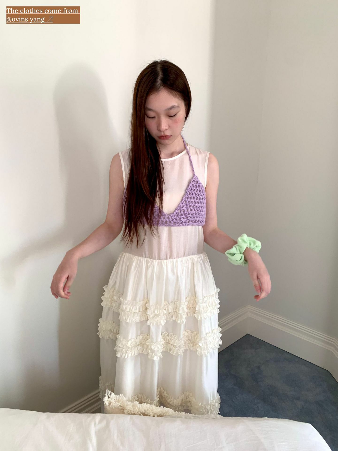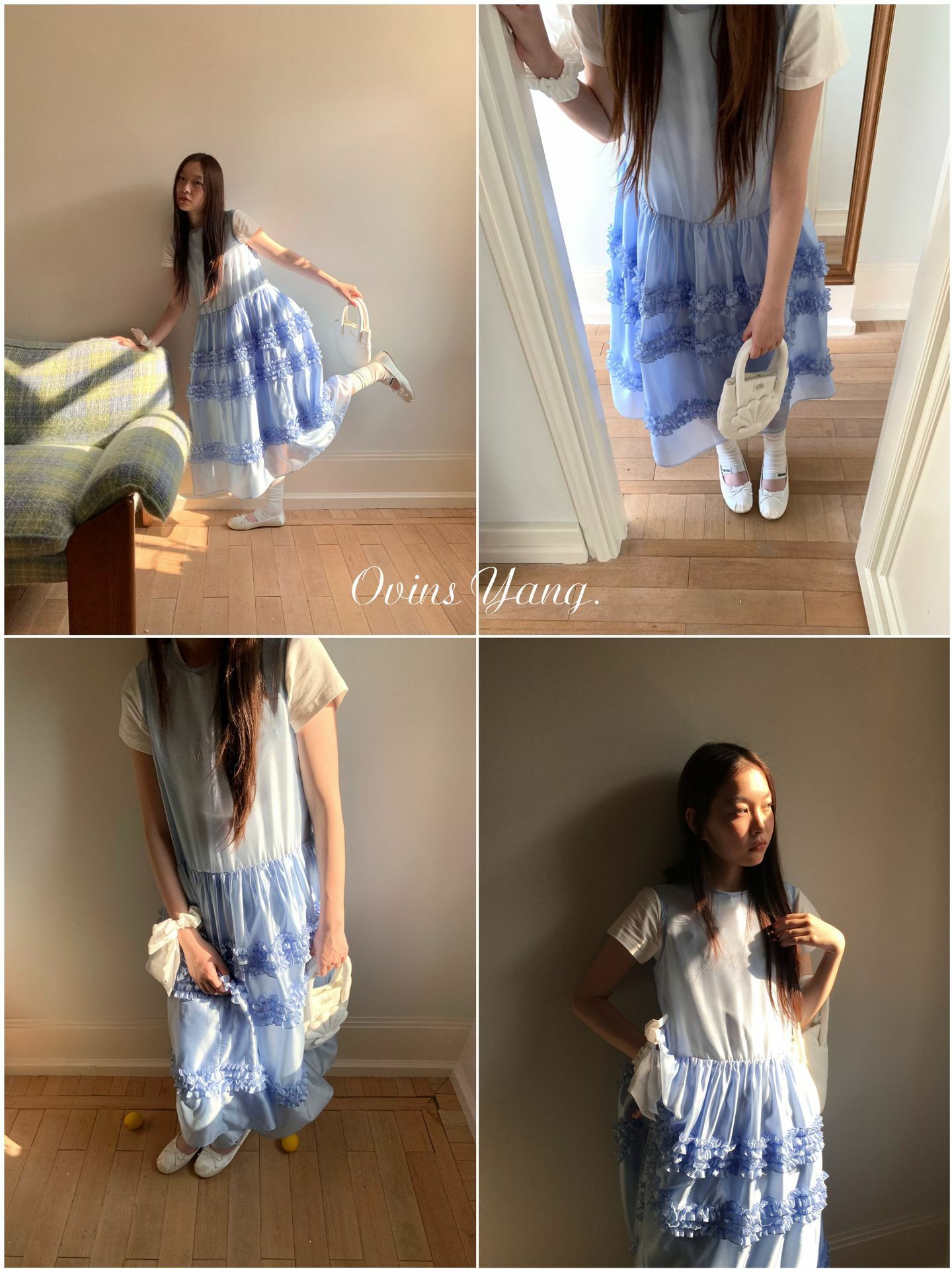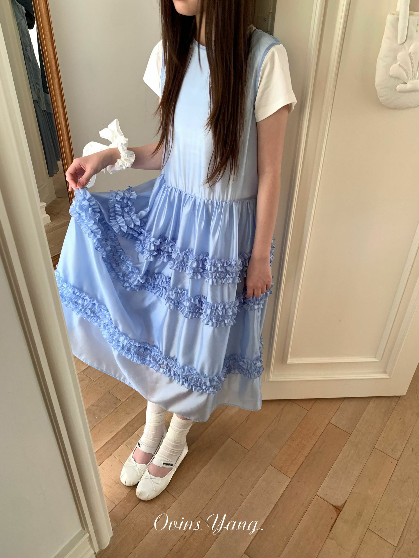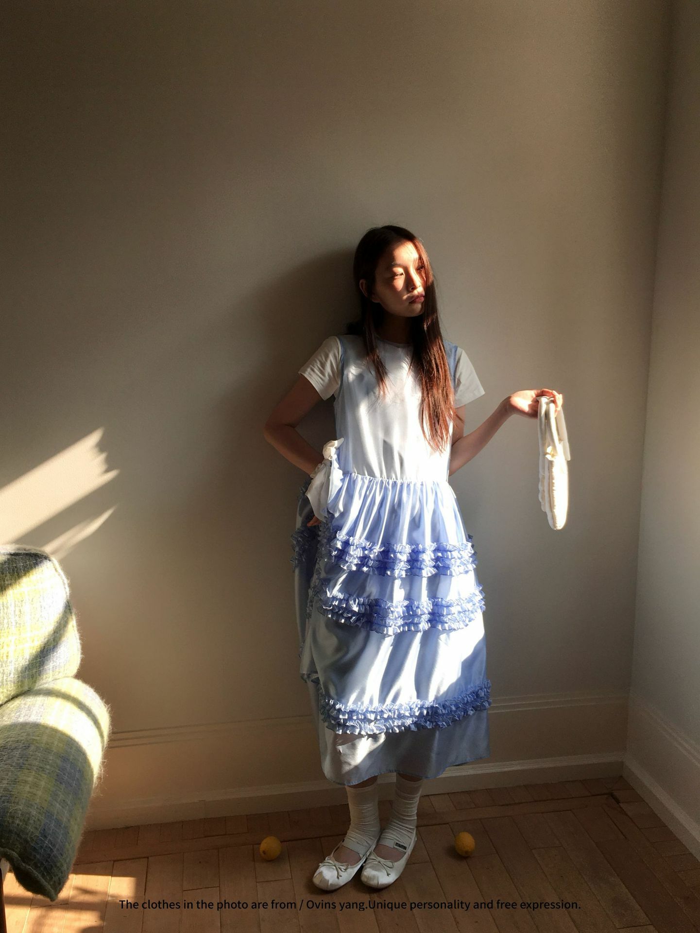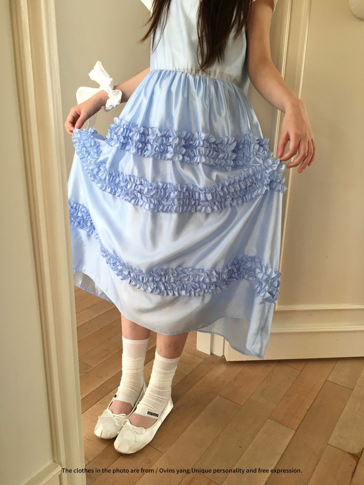 *o-ha-you*【FOY100828】花邊韓系疊穿背心裙減齡少女感穿搭無袖連衣裙蛋糕裙洋裝-2色