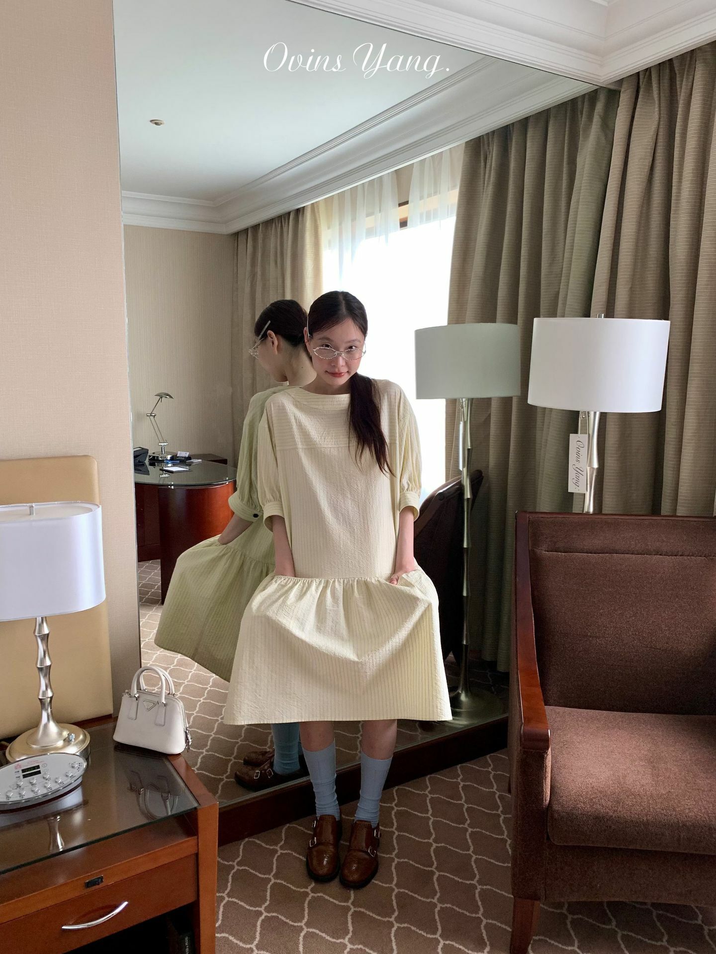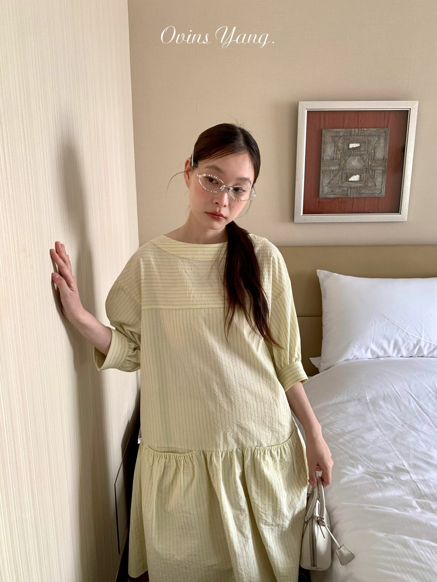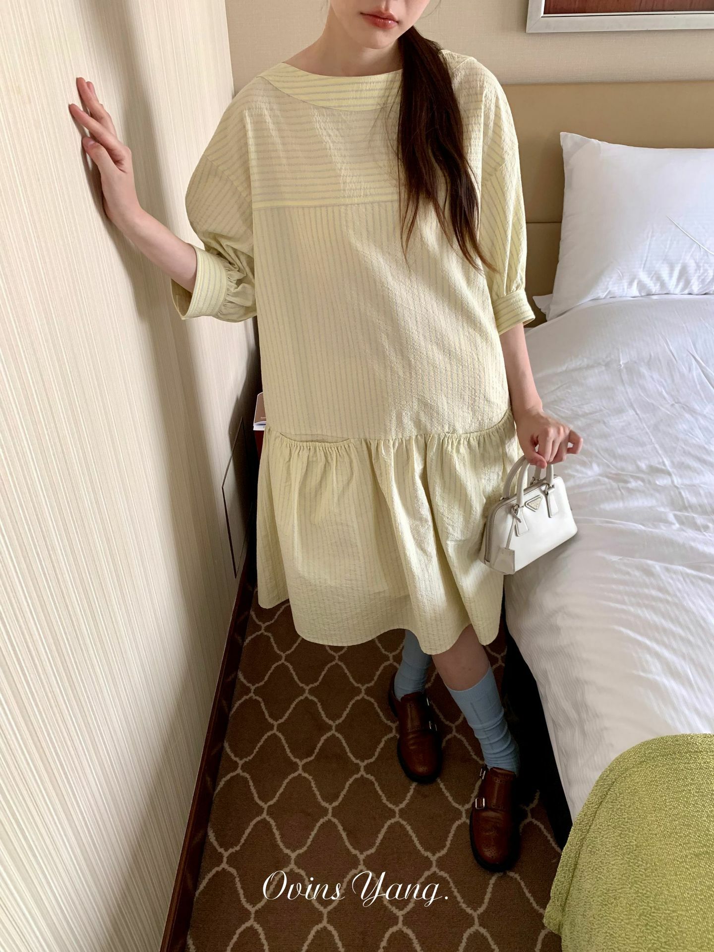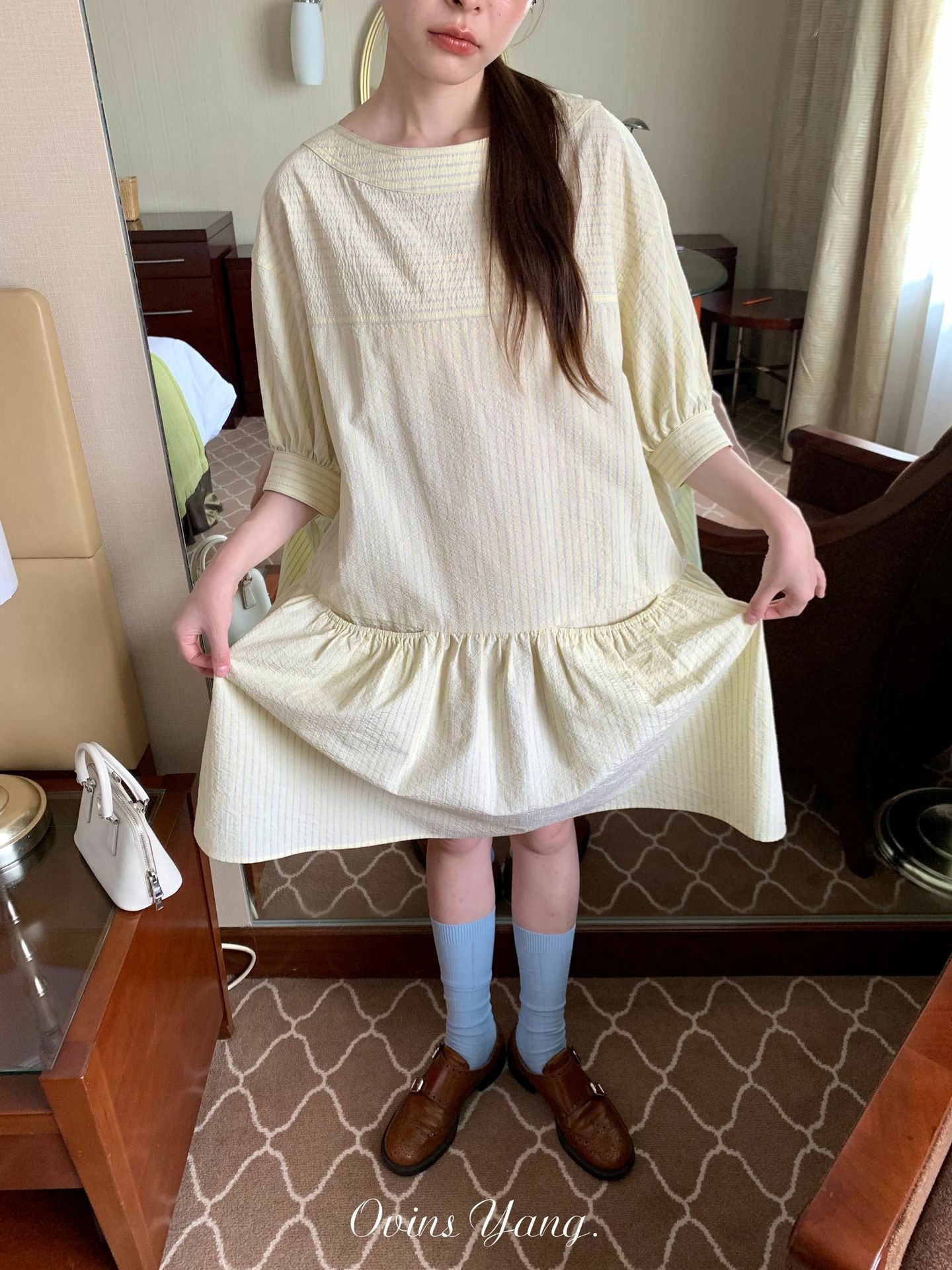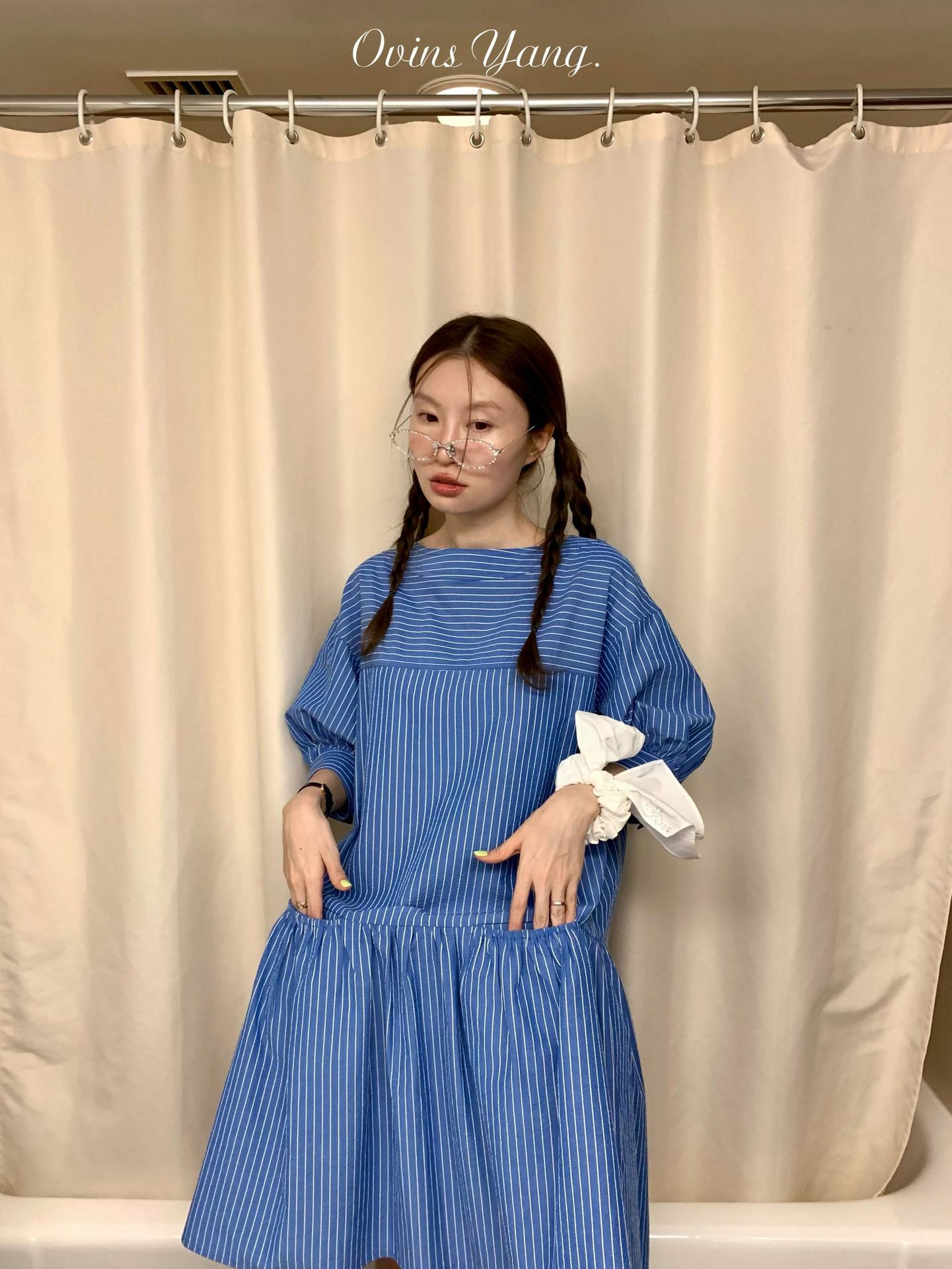 *o-ha-you*【FOY100830】條紋連衣裙設計感小眾甜美學院風穿搭寬鬆A字裙洋裝-2色