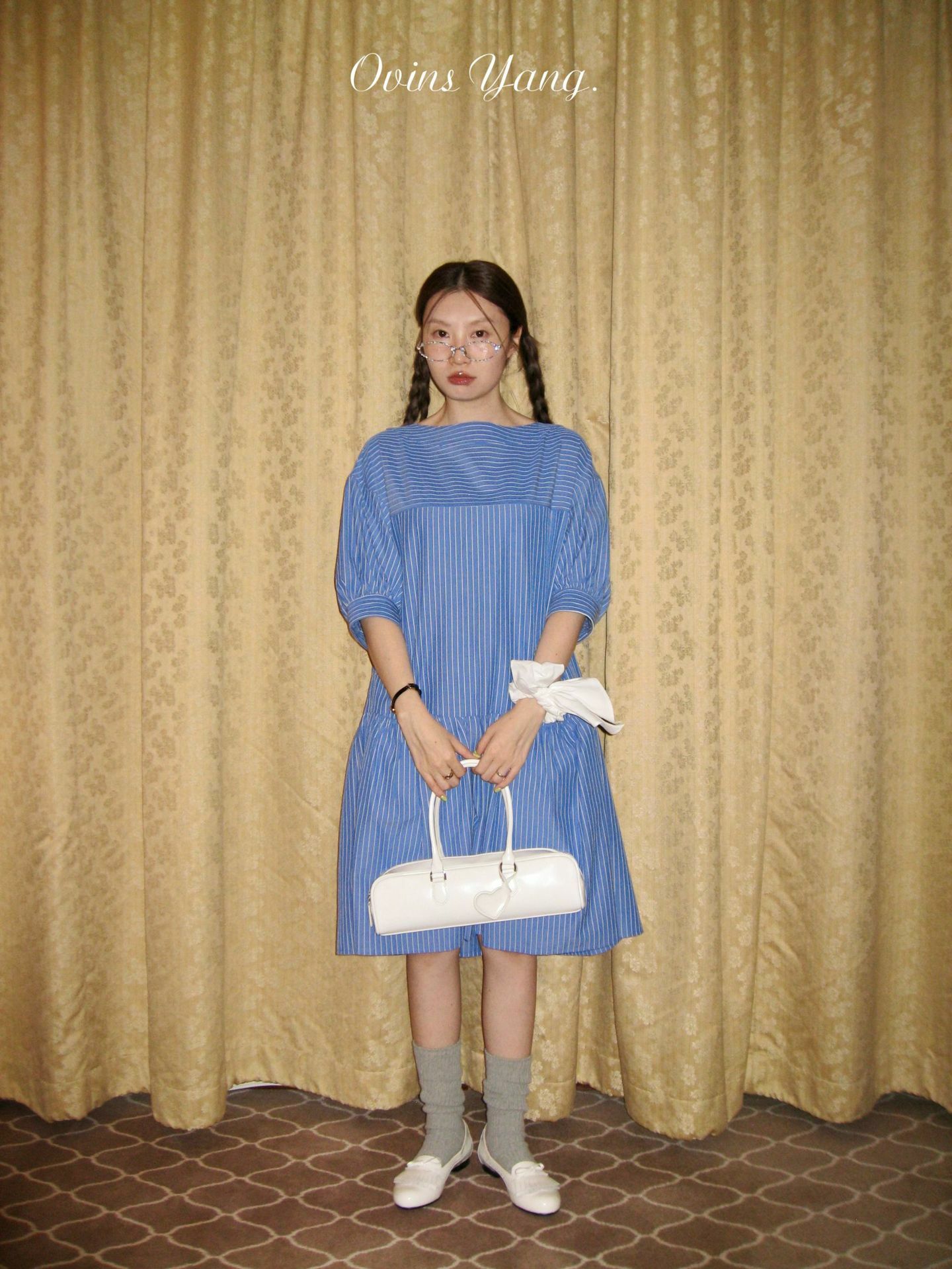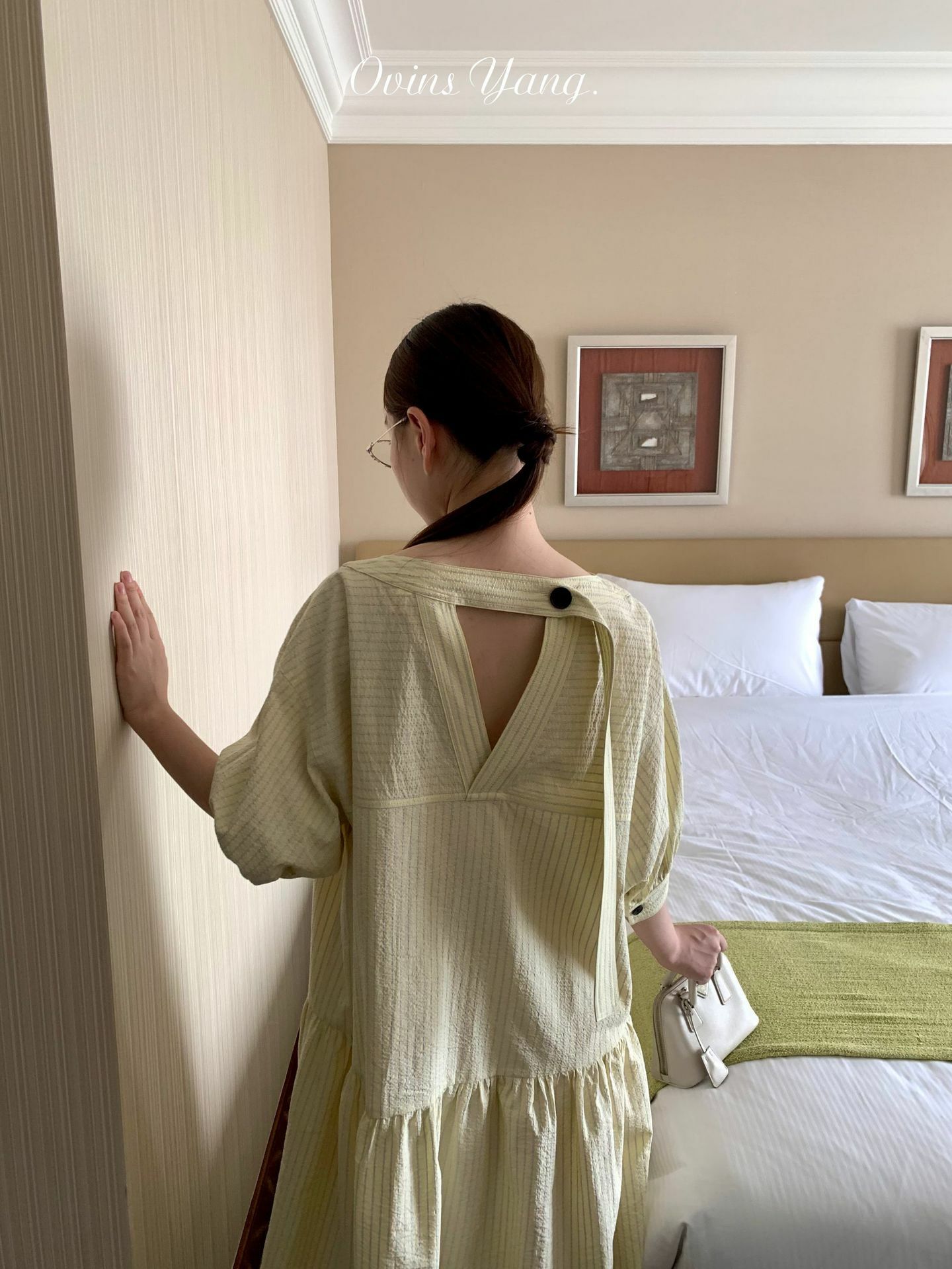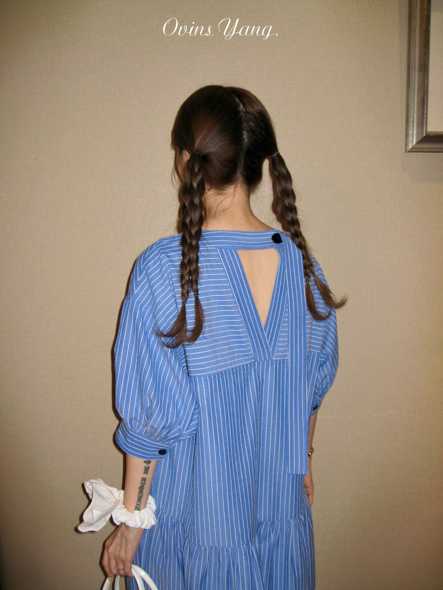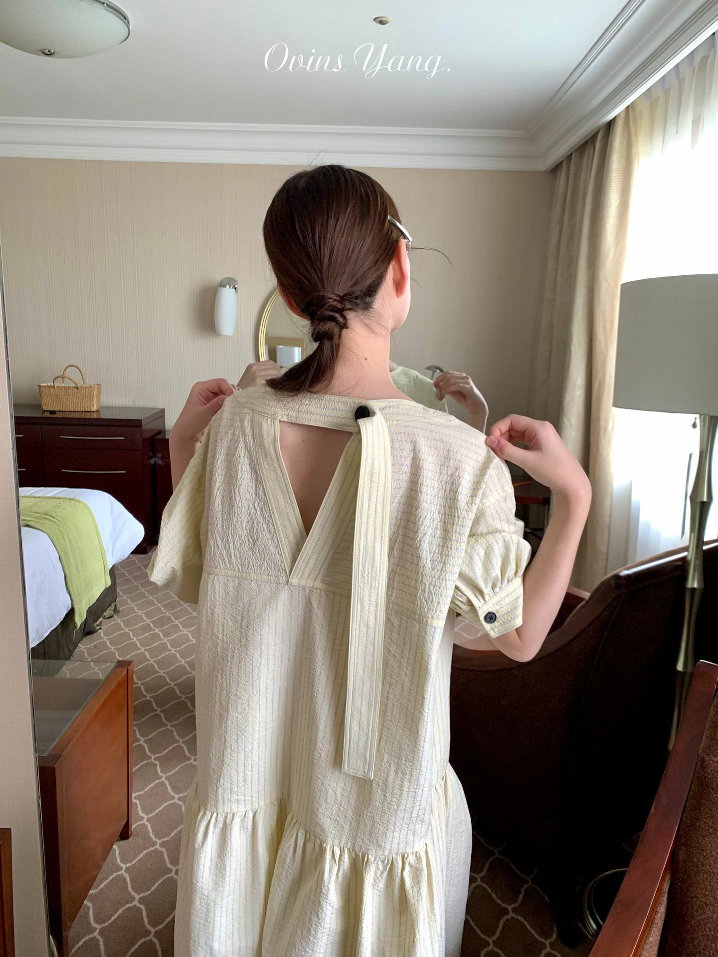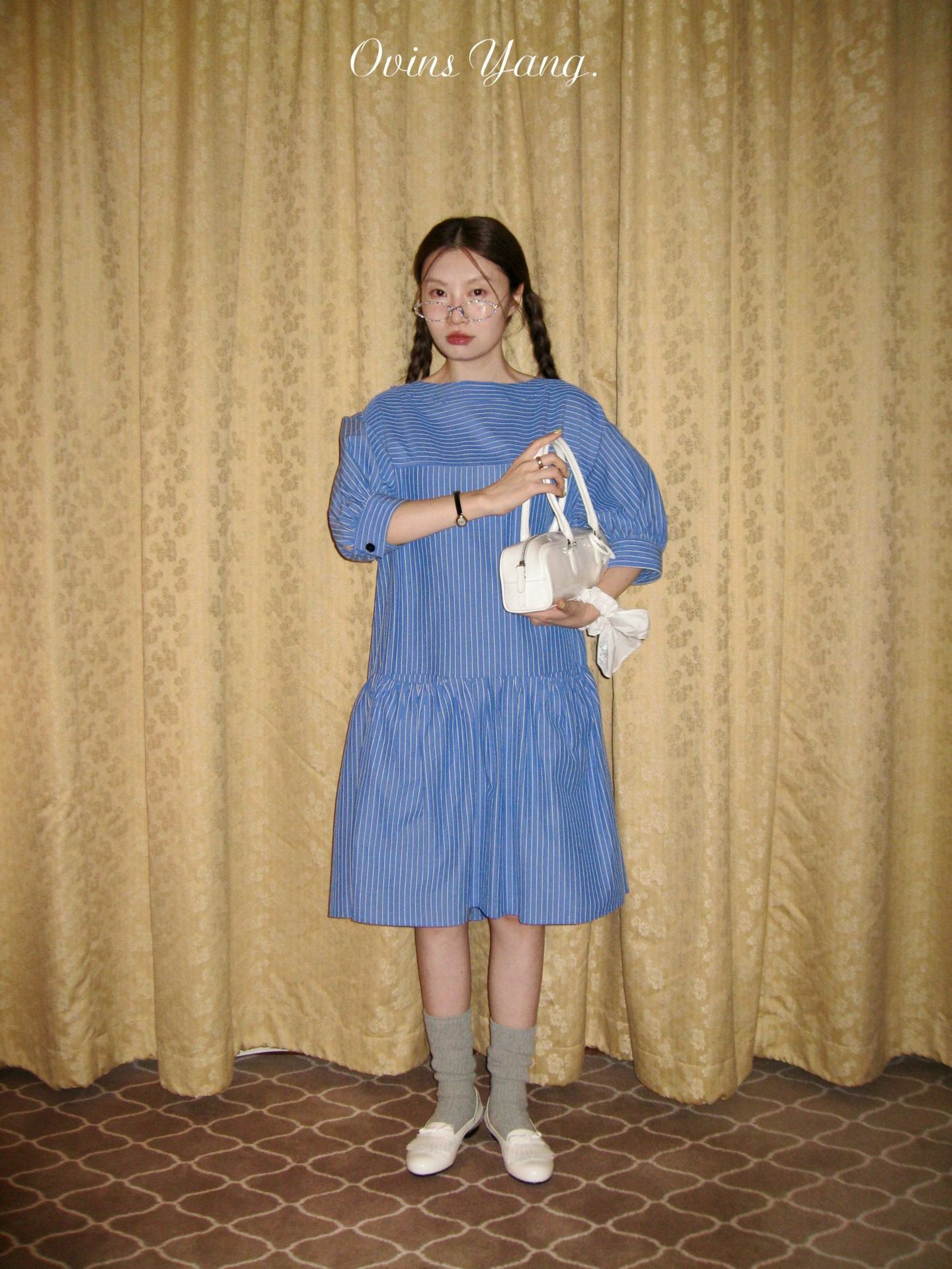 *o-ha-you*【FOY100830】條紋連衣裙設計感小眾甜美學院風穿搭寬鬆A字裙洋裝-2色