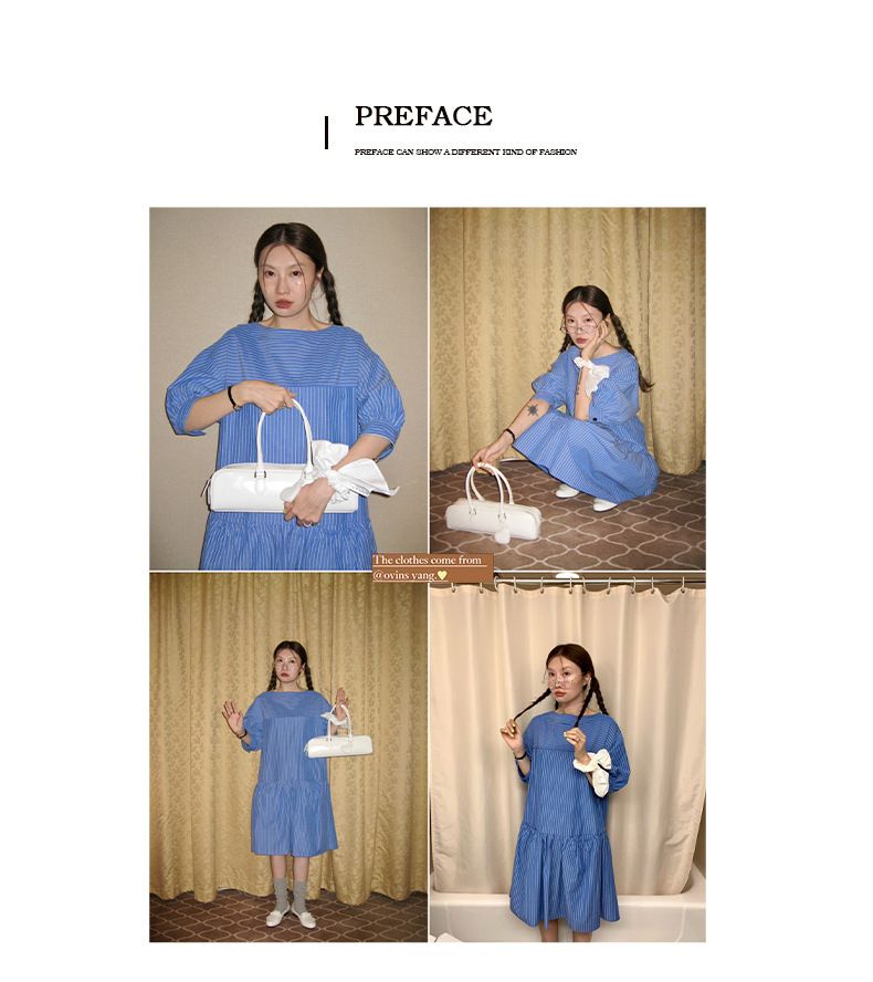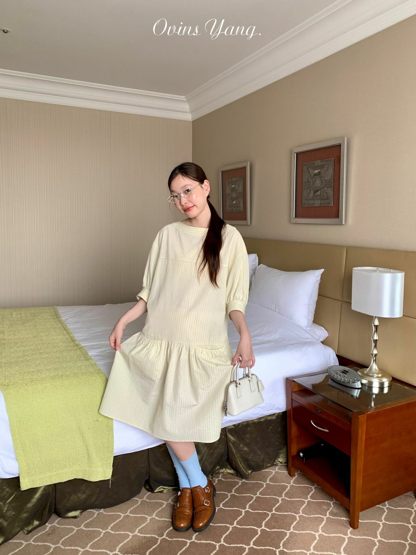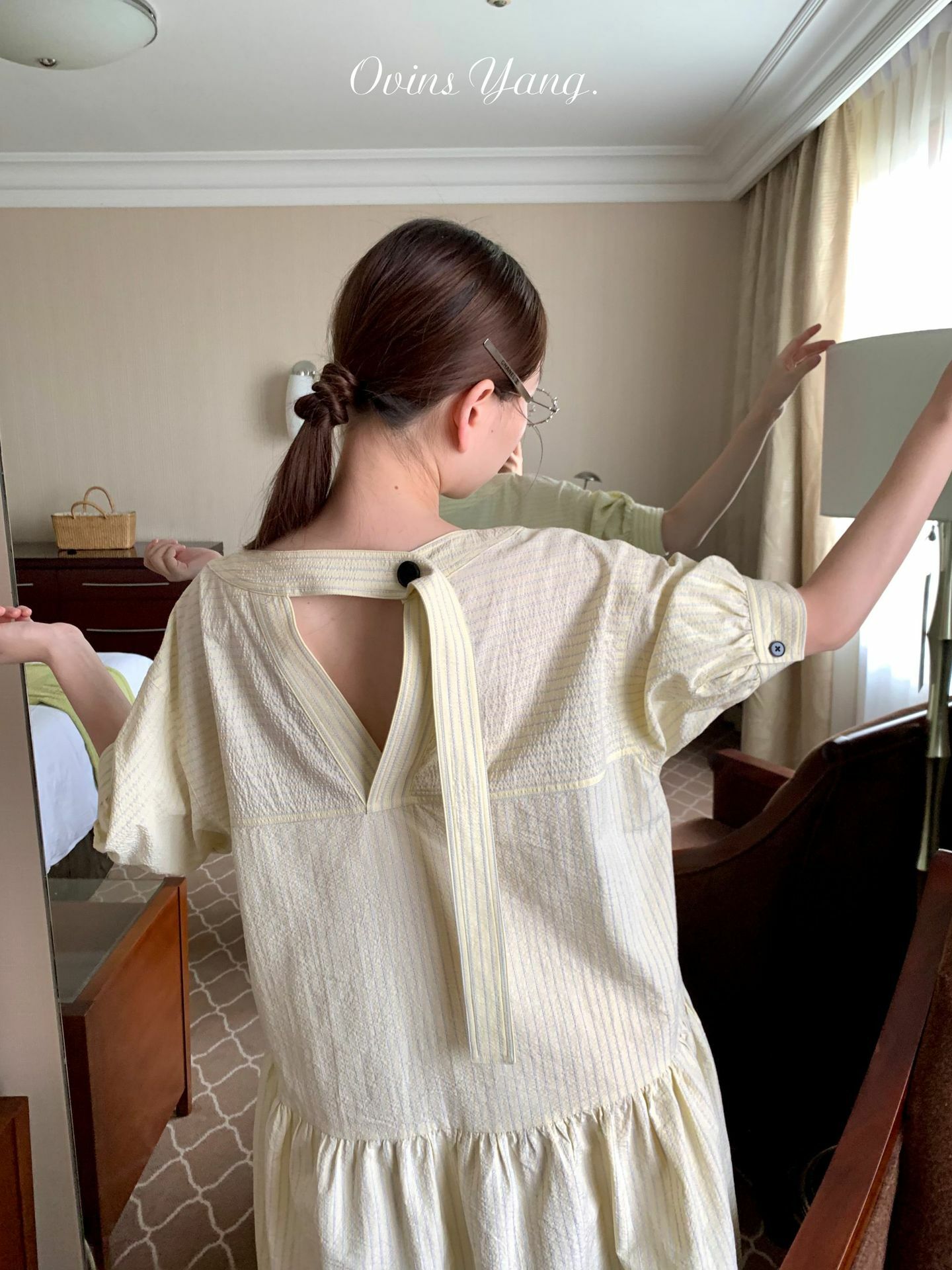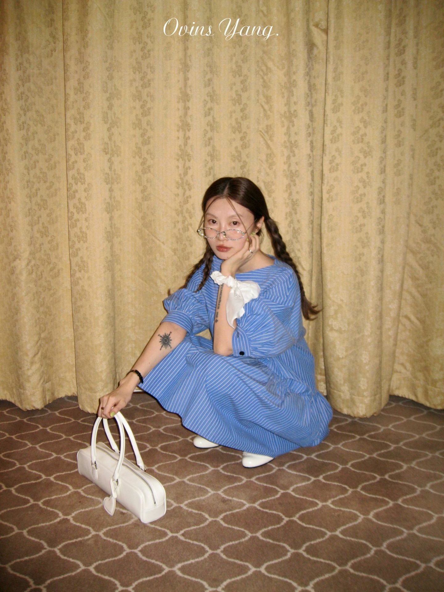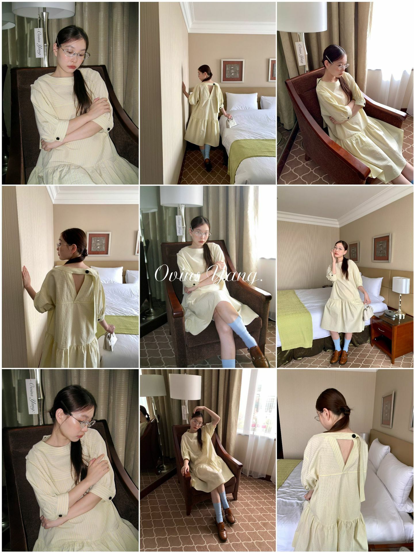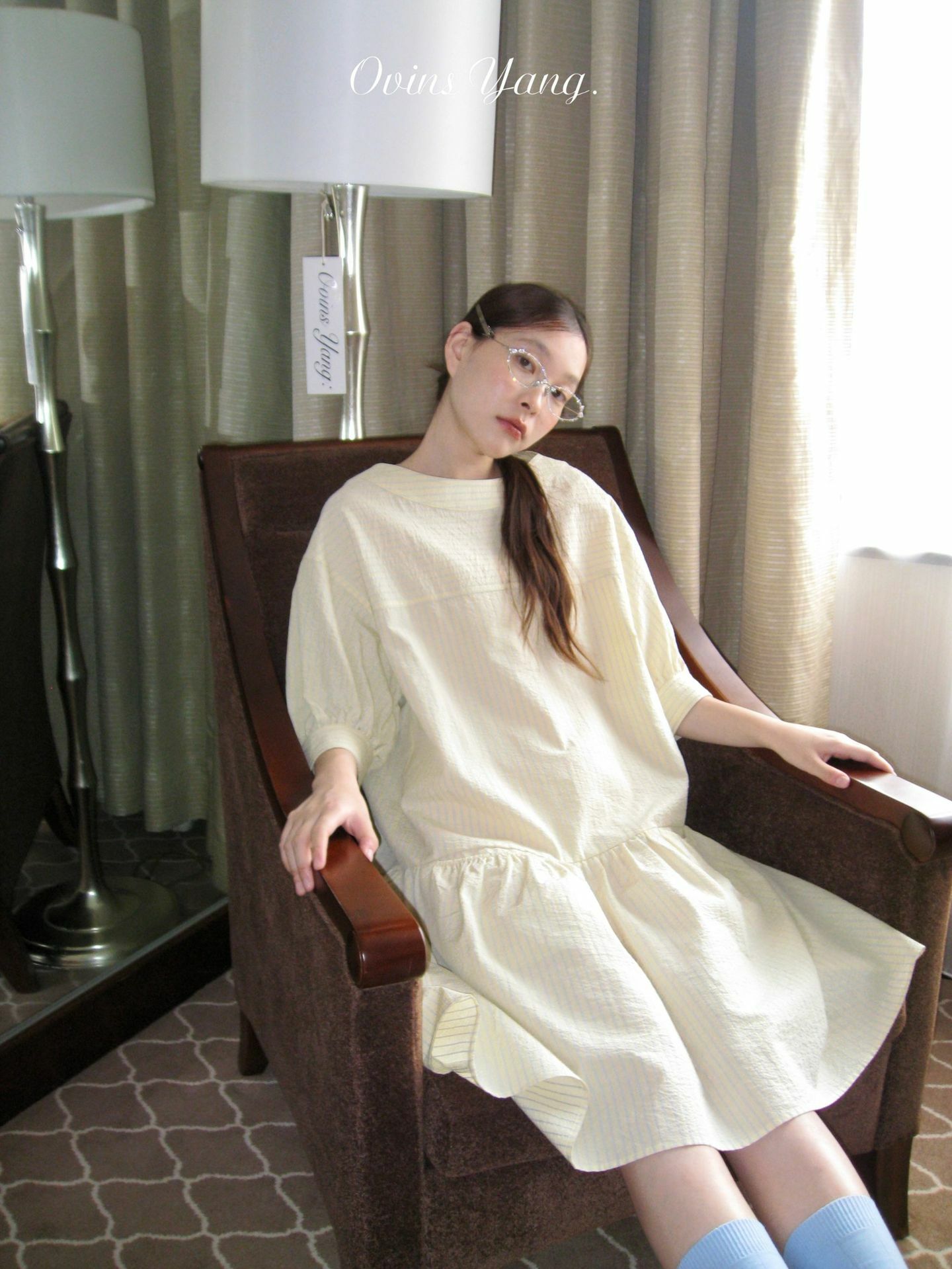*o-ha-you*【FOY100830】條紋連衣裙設計感小眾甜美學院風穿搭寬鬆A字裙洋裝-2色