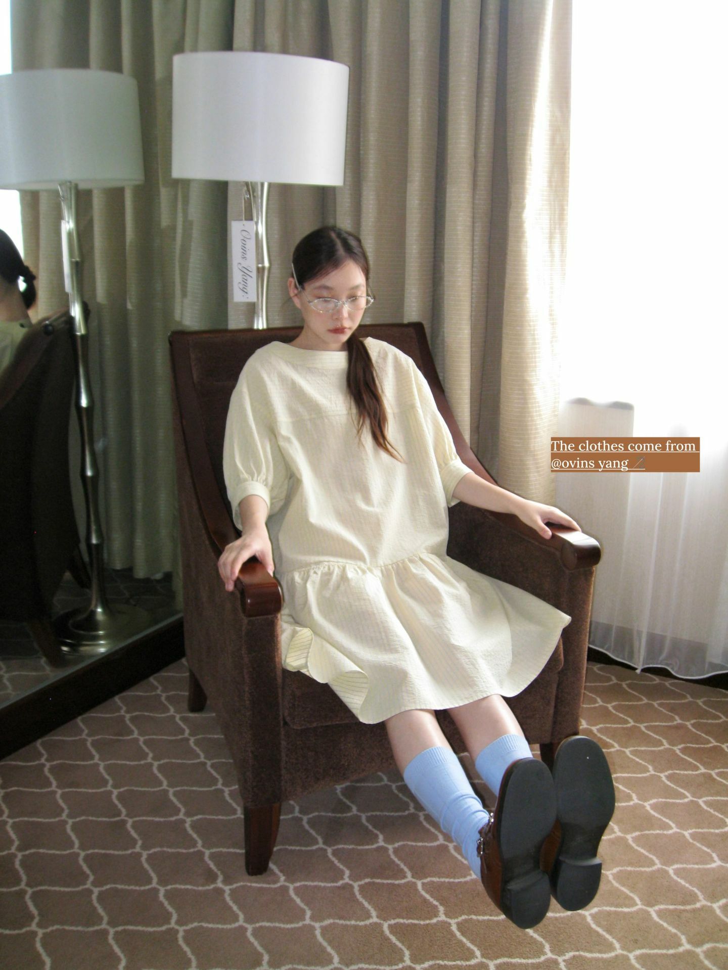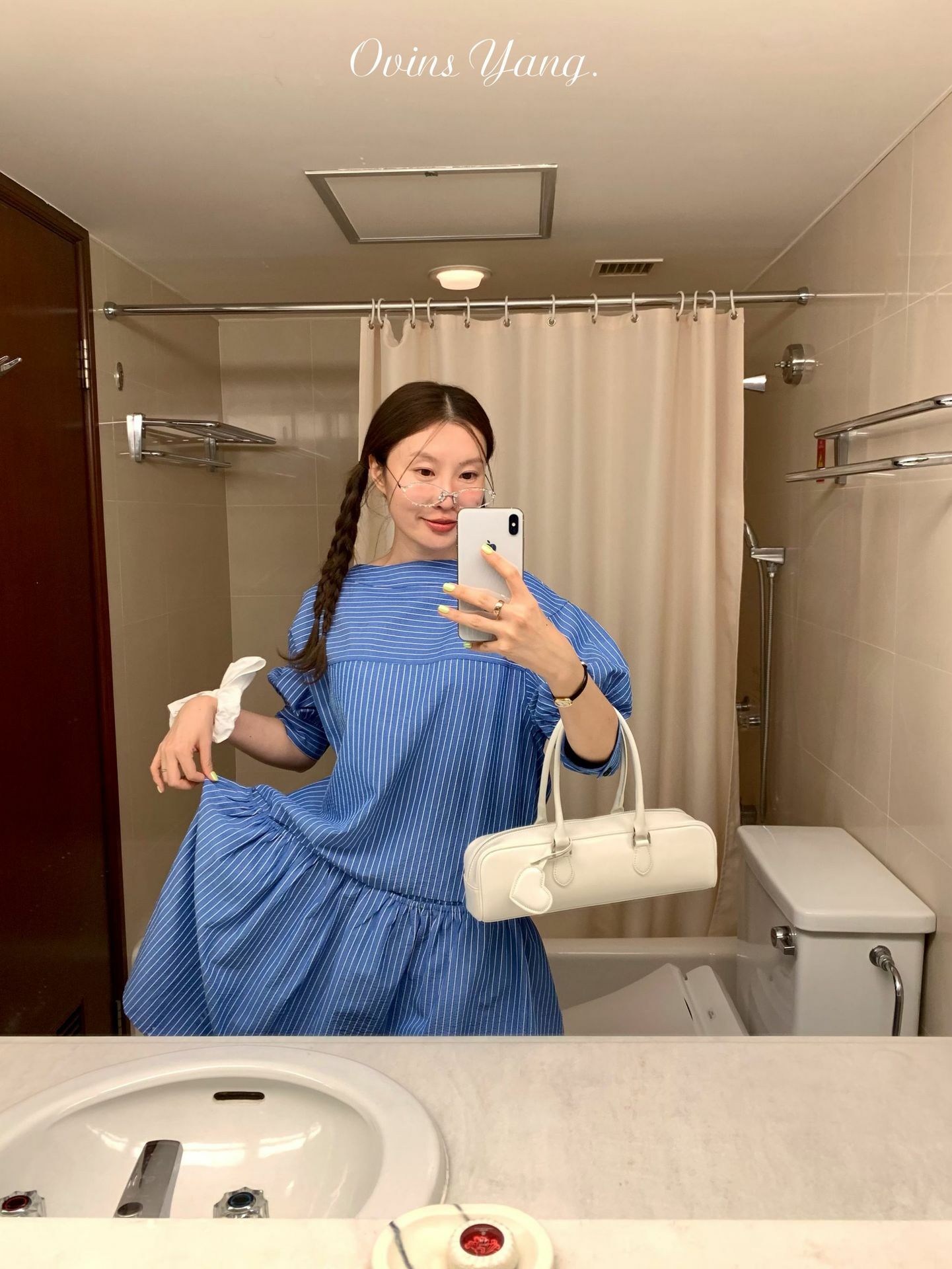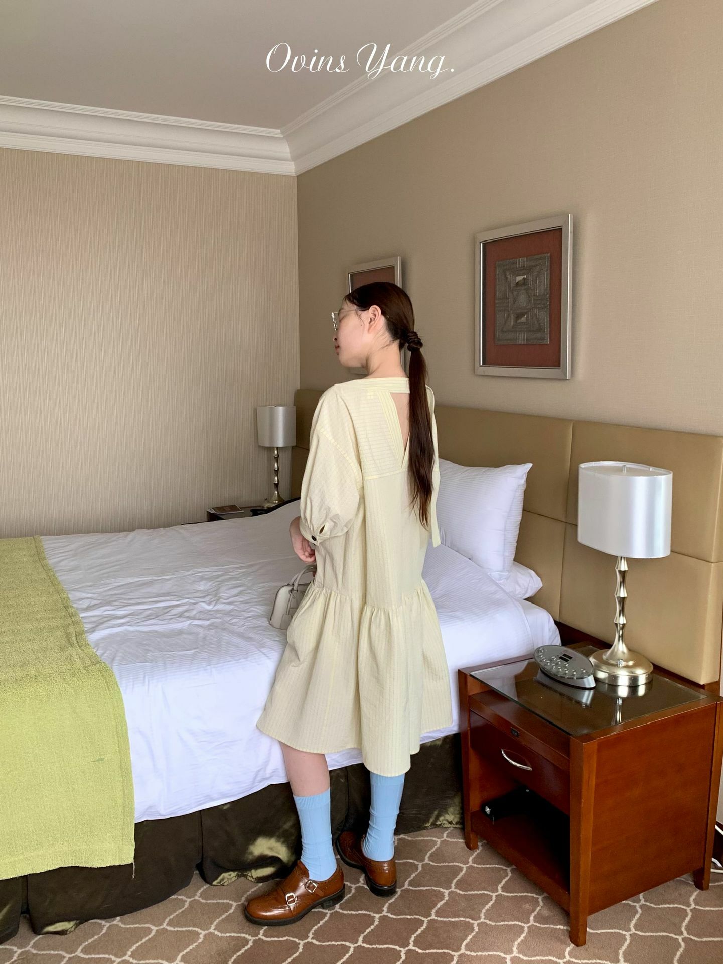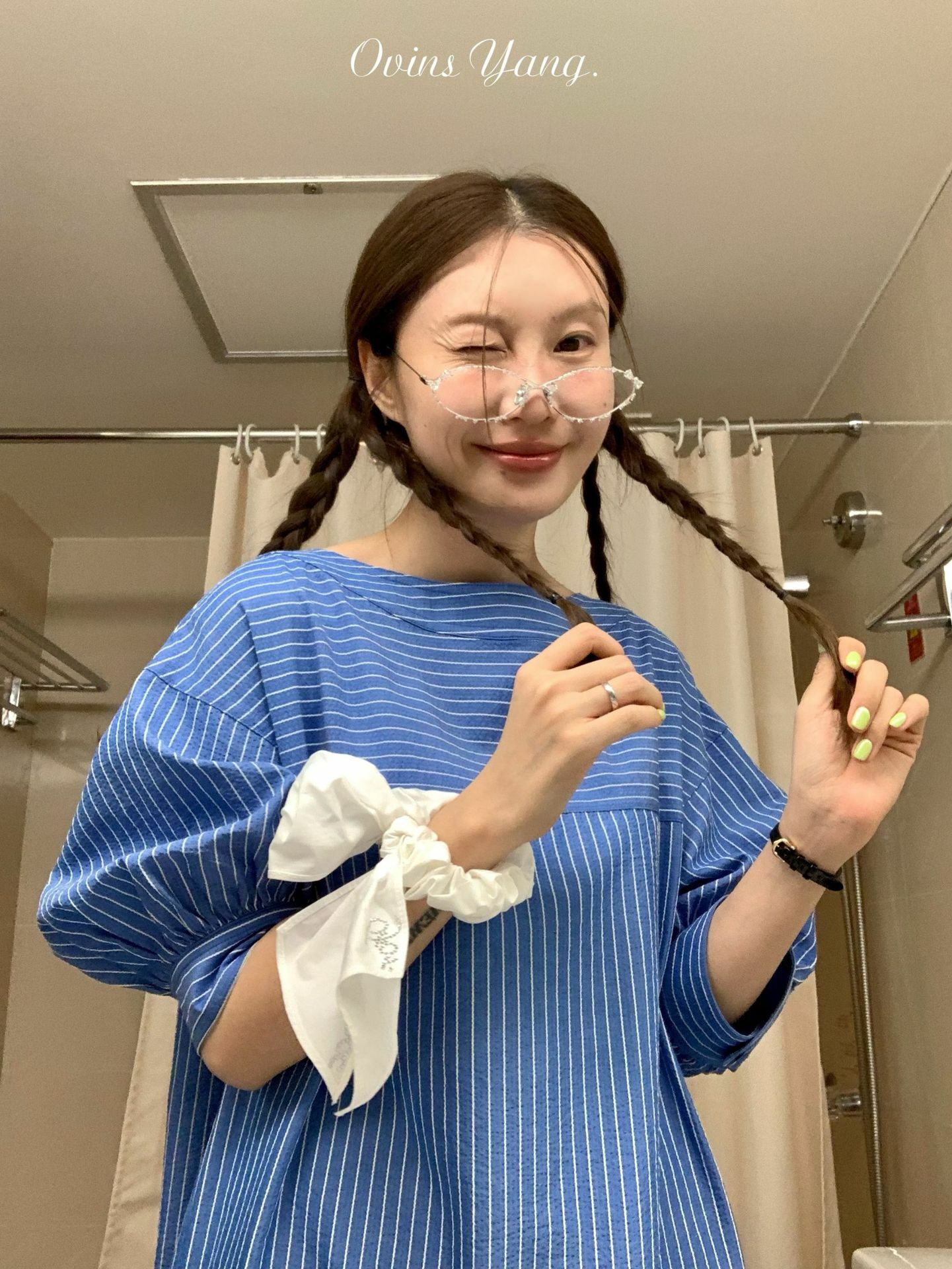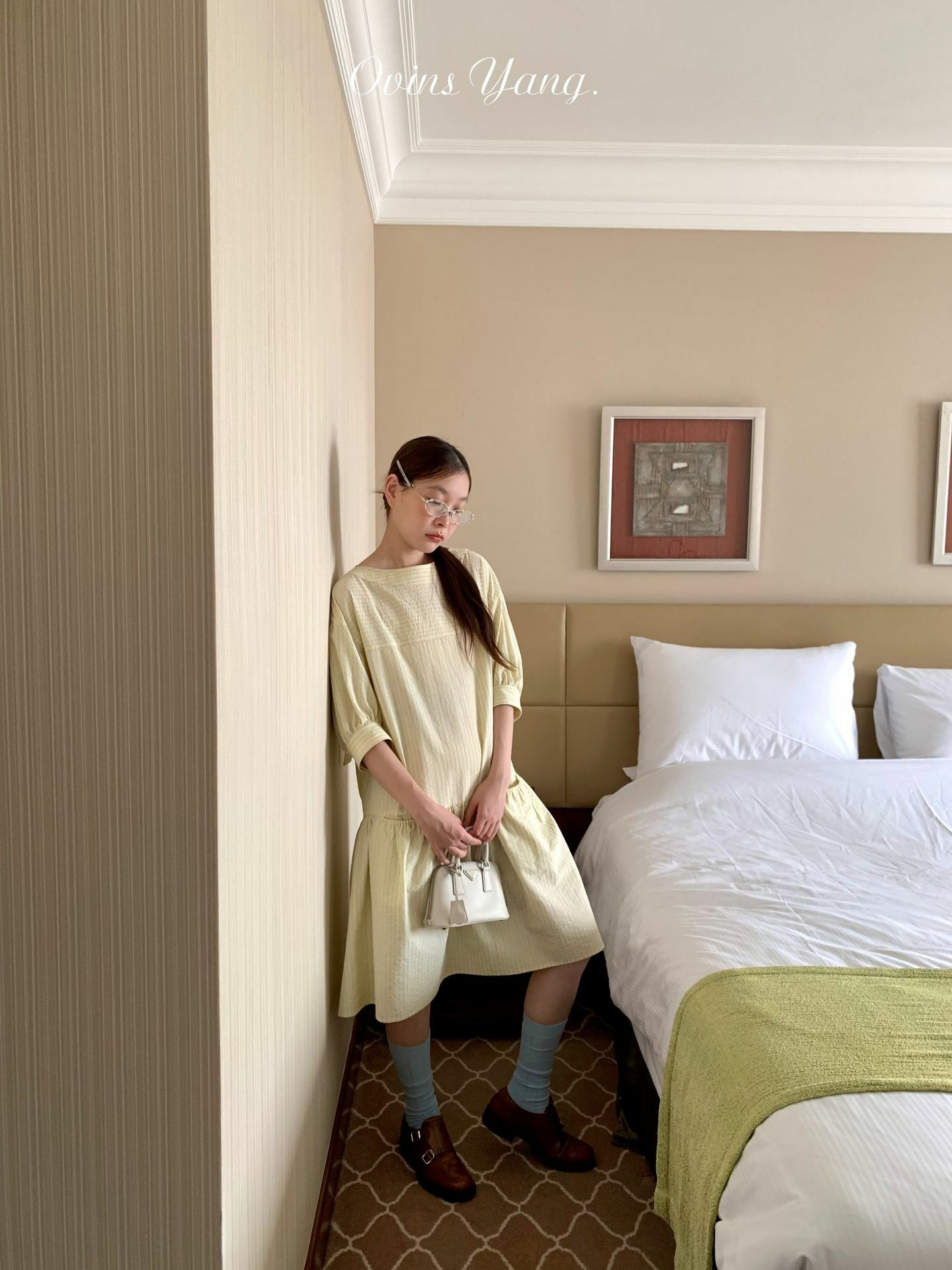 *o-ha-you*【FOY100830】條紋連衣裙設計感小眾甜美學院風穿搭寬鬆A字裙洋裝-2色