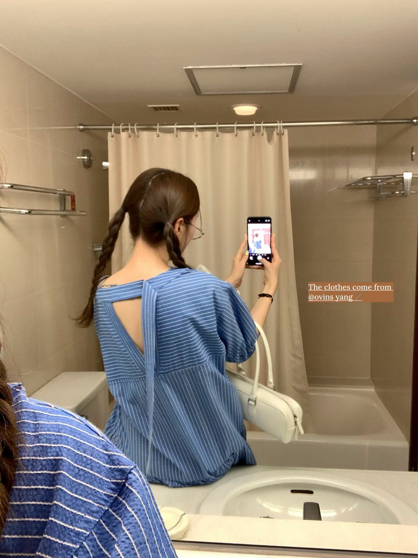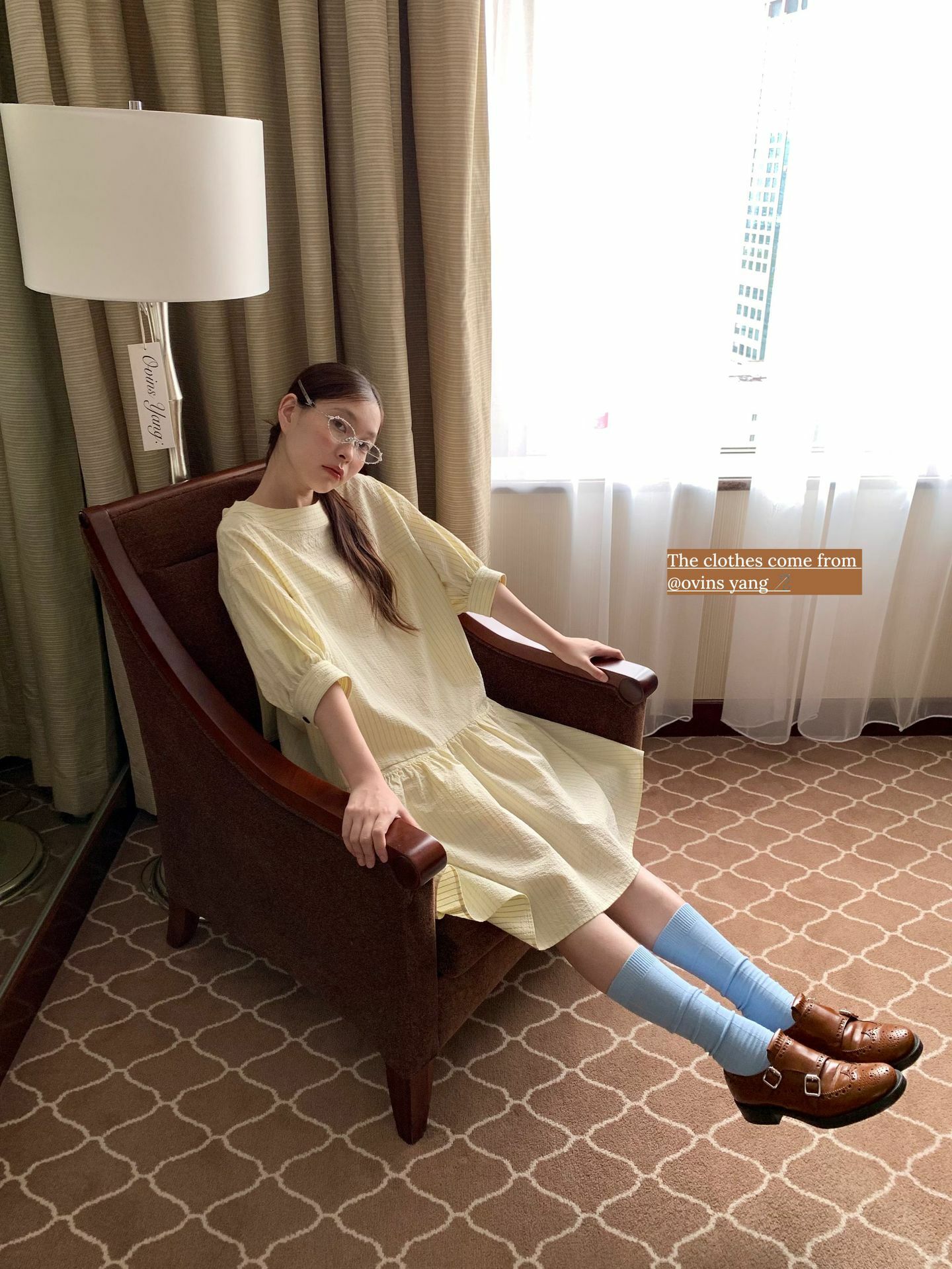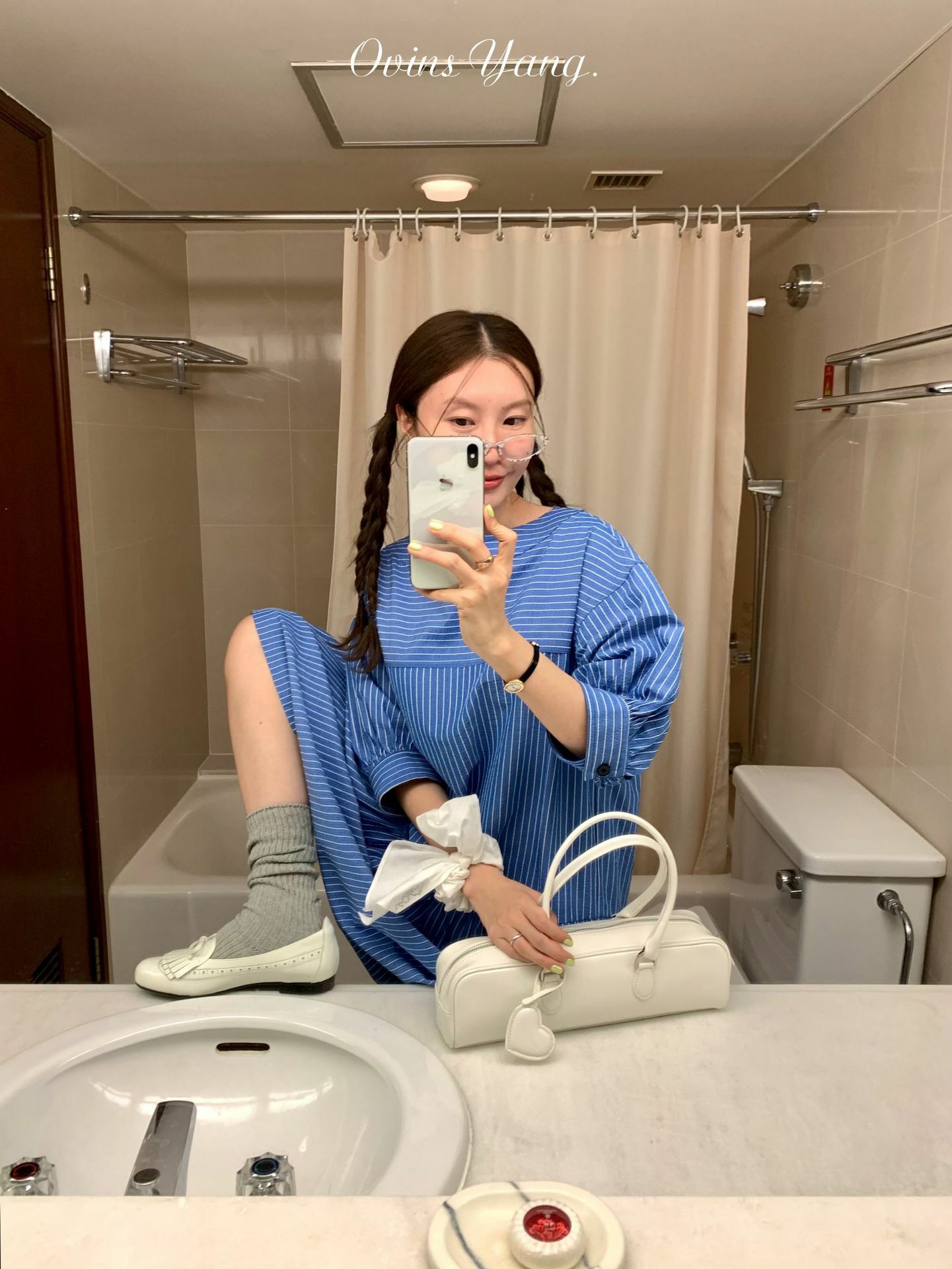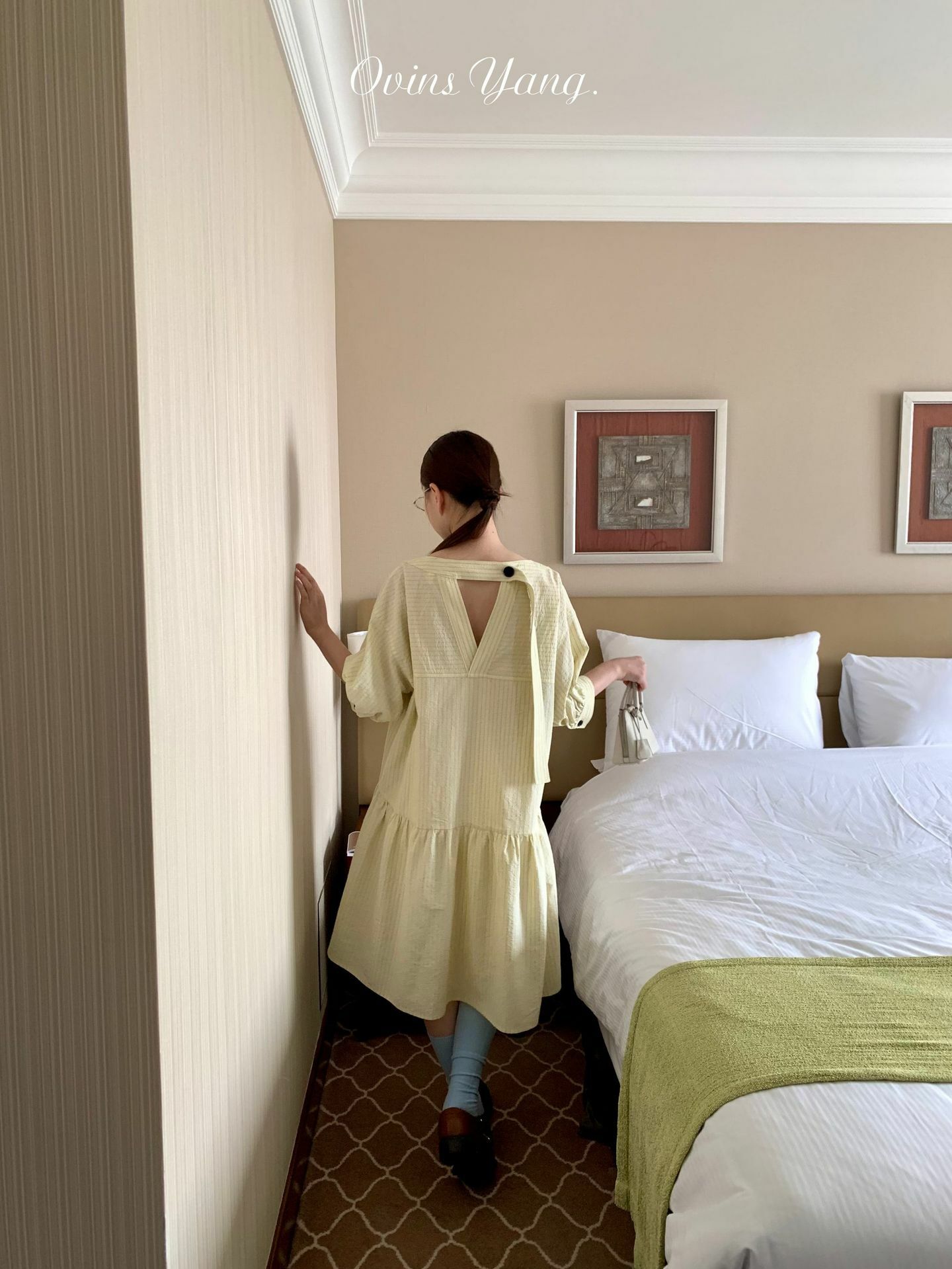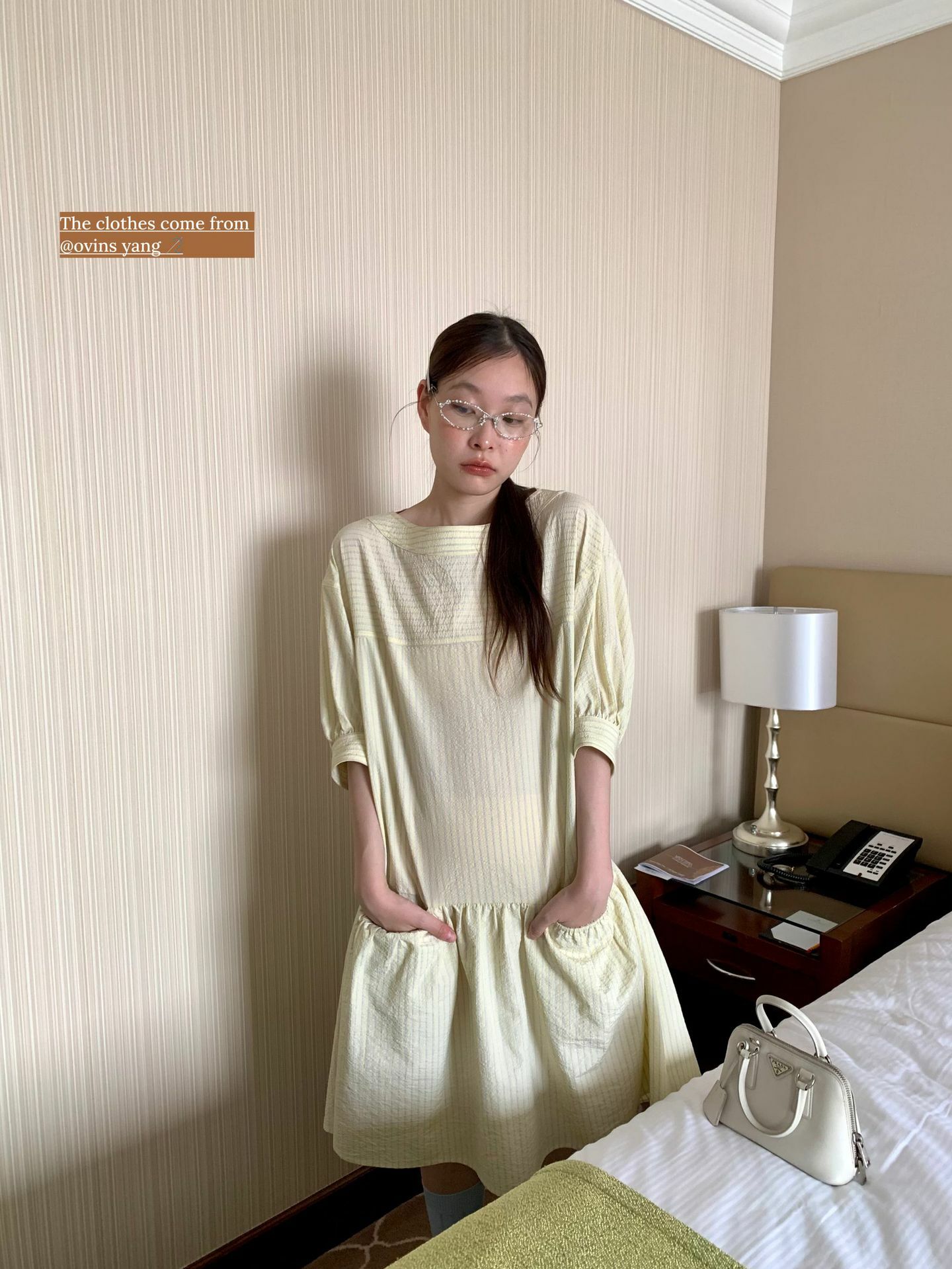 *o-ha-you*【FOY100830】條紋連衣裙設計感小眾甜美學院風穿搭寬鬆A字裙洋裝-2色