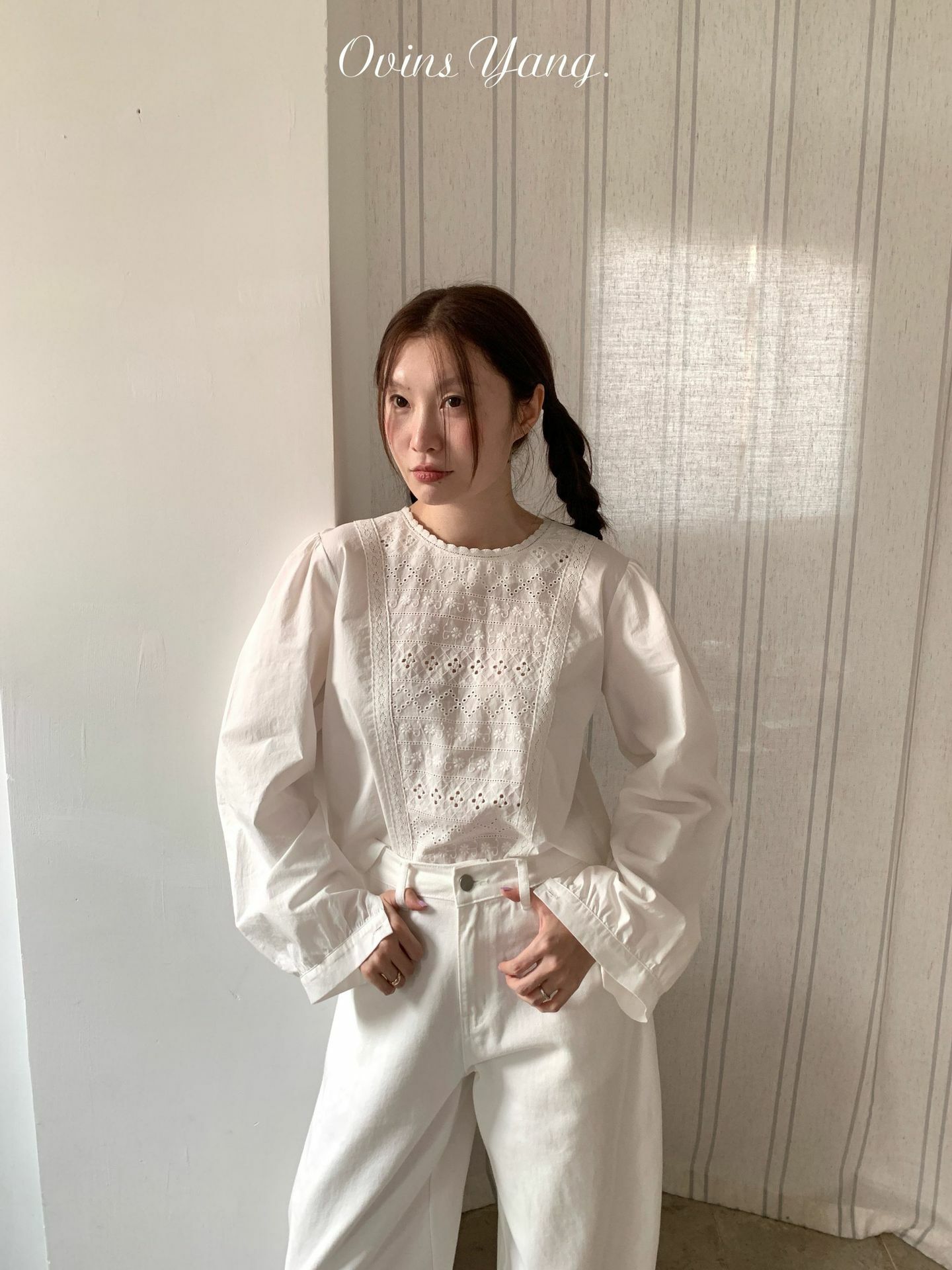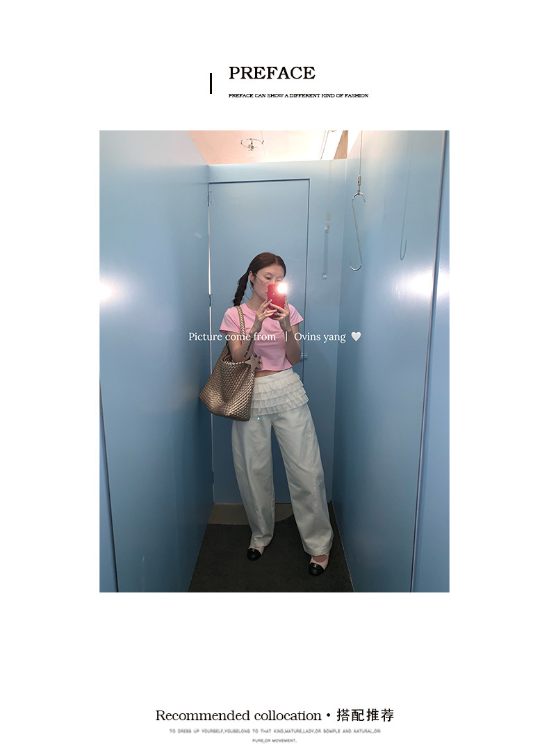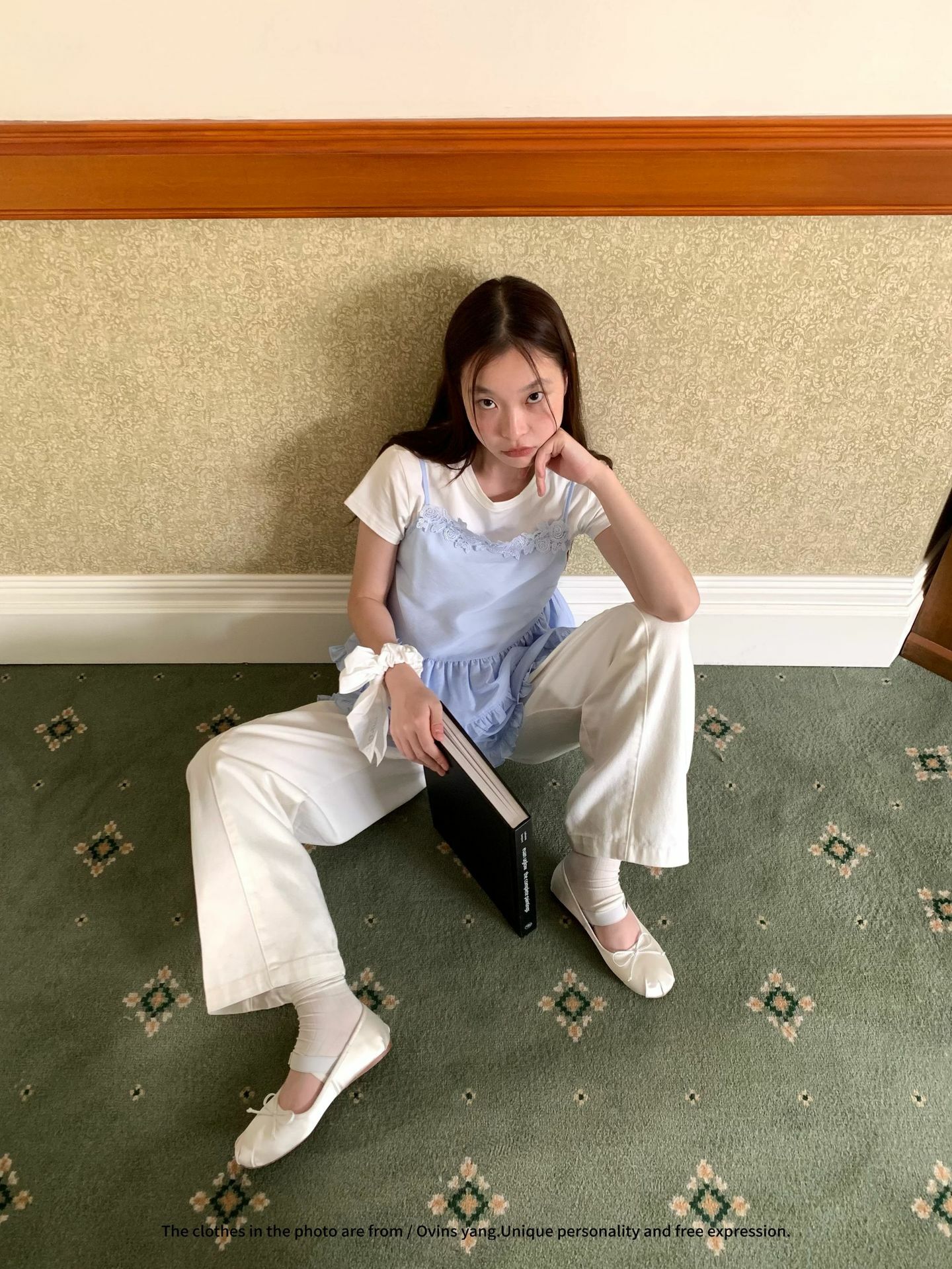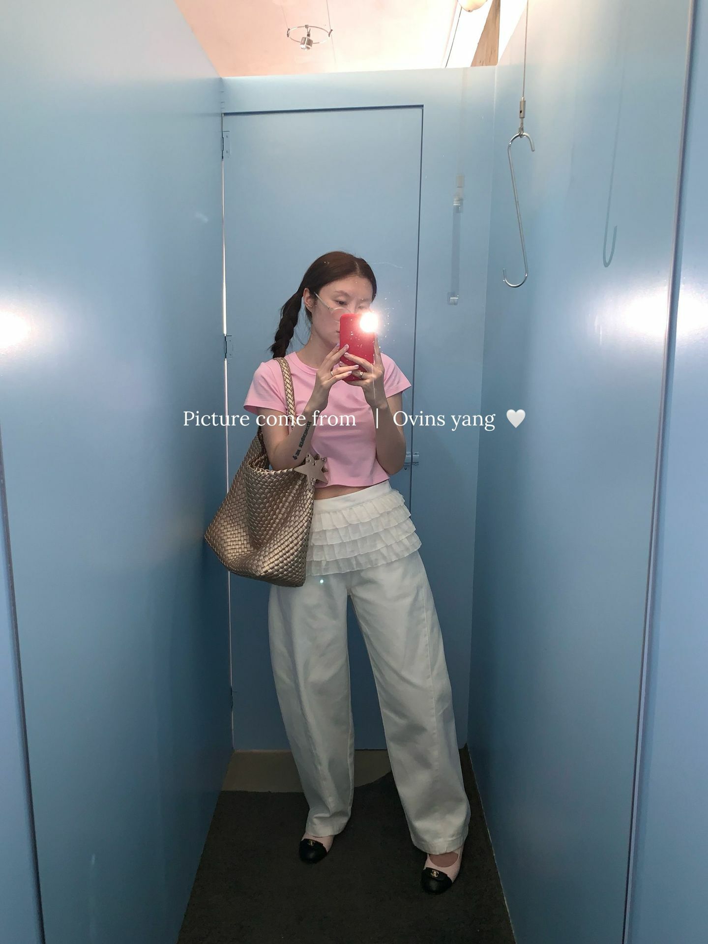 *o-ha-you*【FOY100850】白色褲子牛仔褲2025新款甜美休閒穿搭寬鬆闊腿直筒褲
