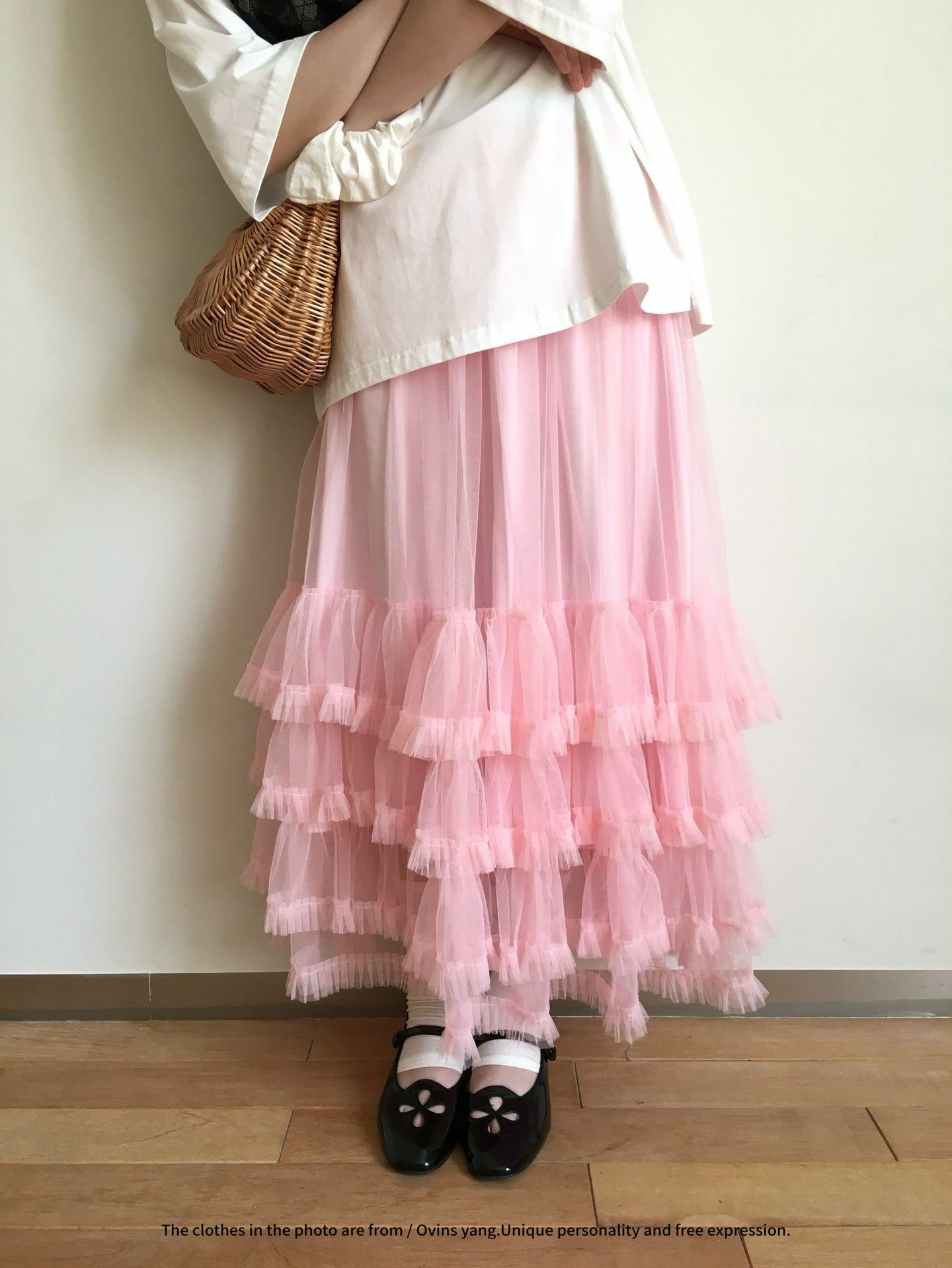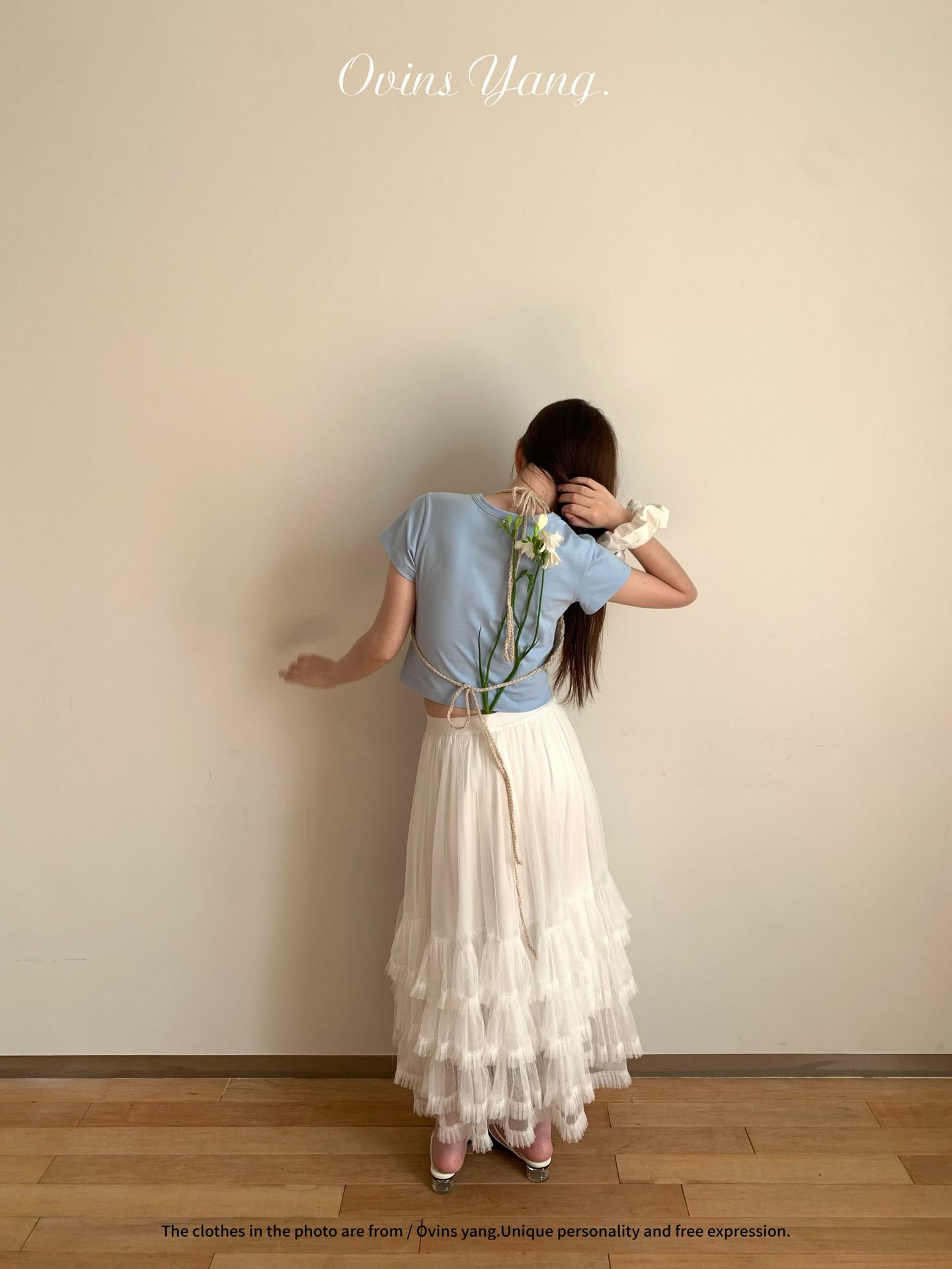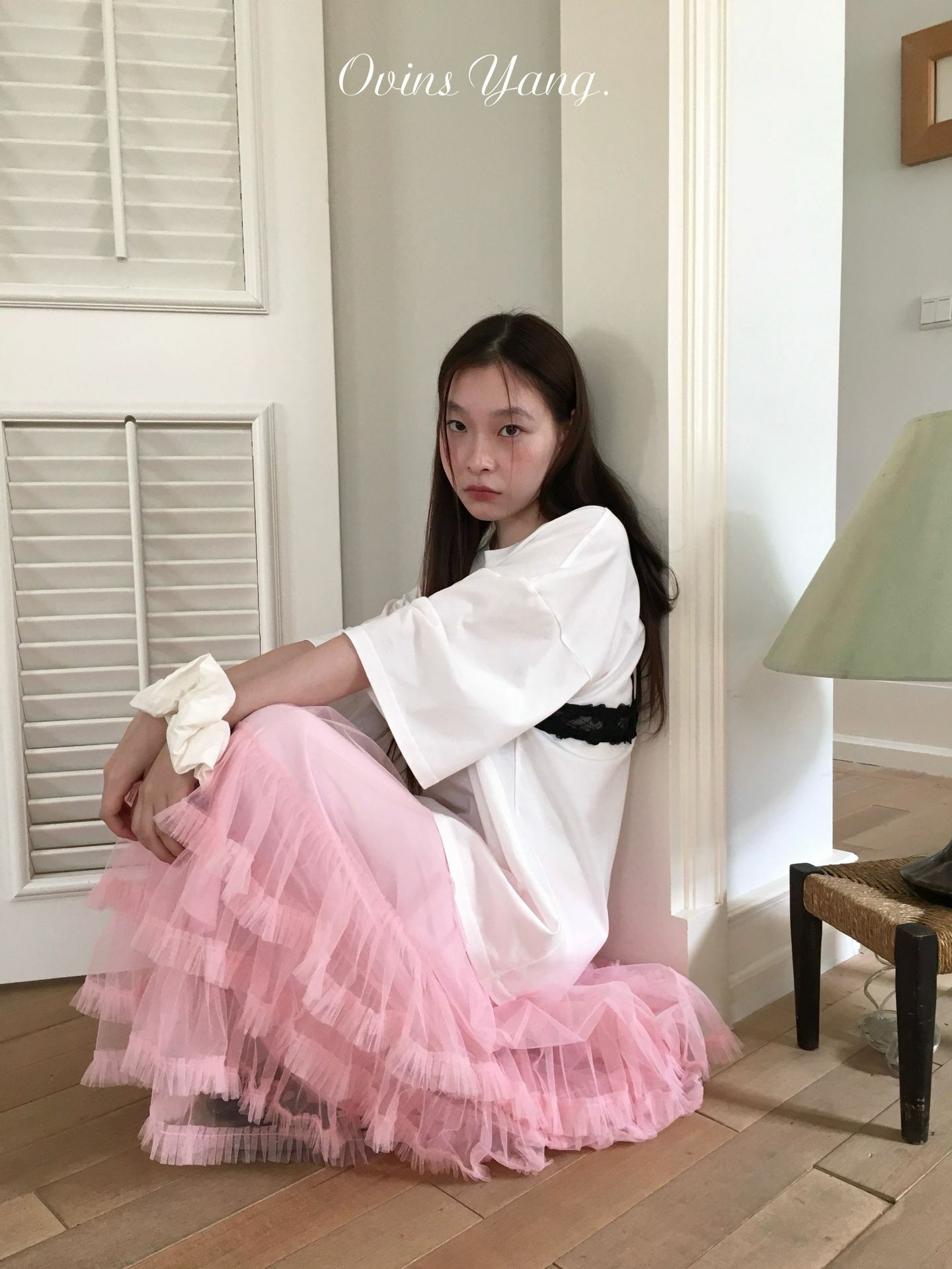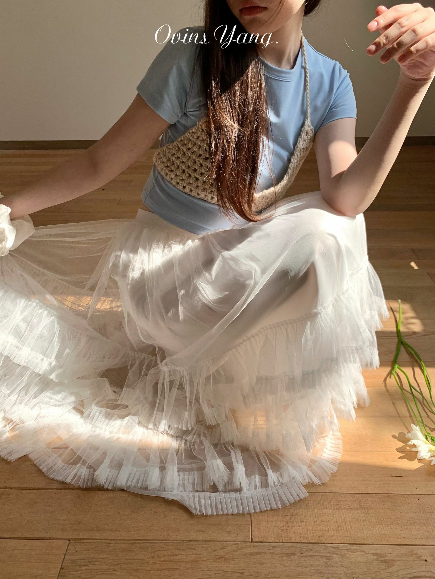 *o-ha-you*【FOY100856】網紗白色半身裙2025新款小眾設計感女孩感花邊蛋糕裙-2色