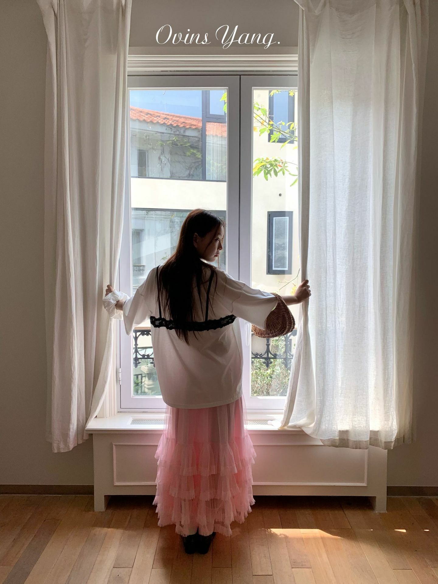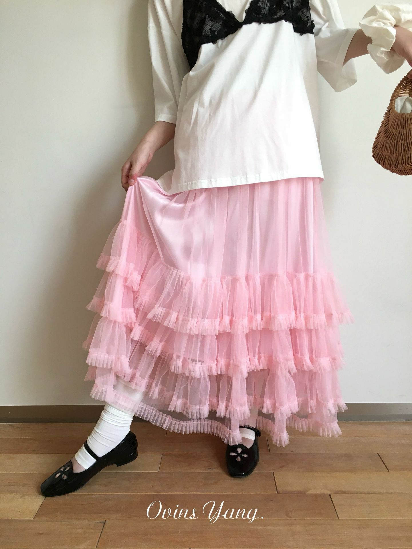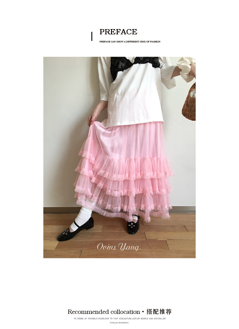 *o-ha-you*【FOY100856】網紗白色半身裙2025新款小眾設計感女孩感花邊蛋糕裙-2色