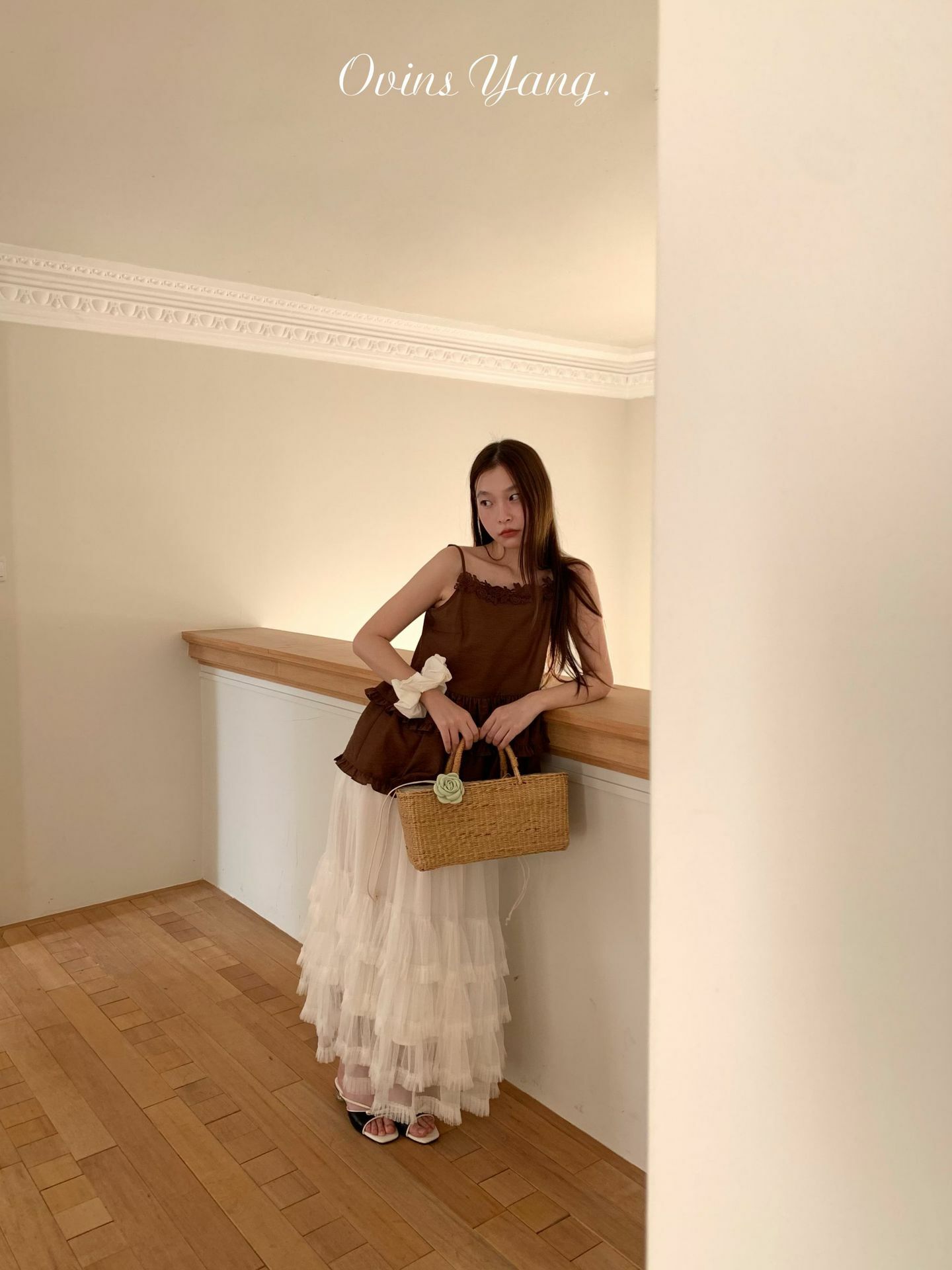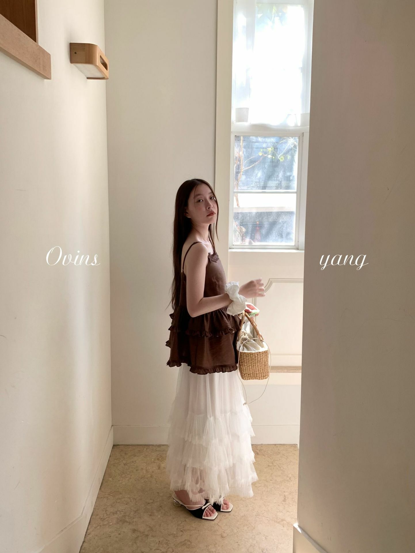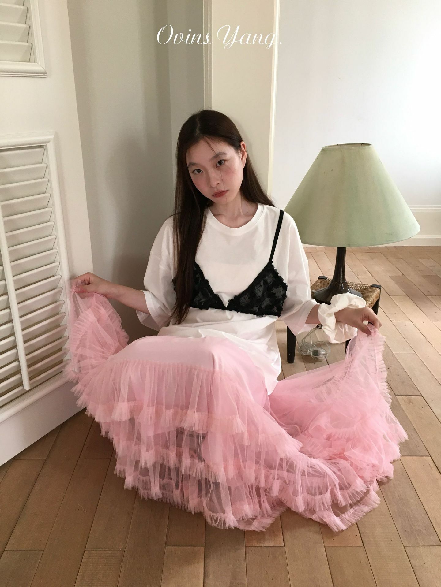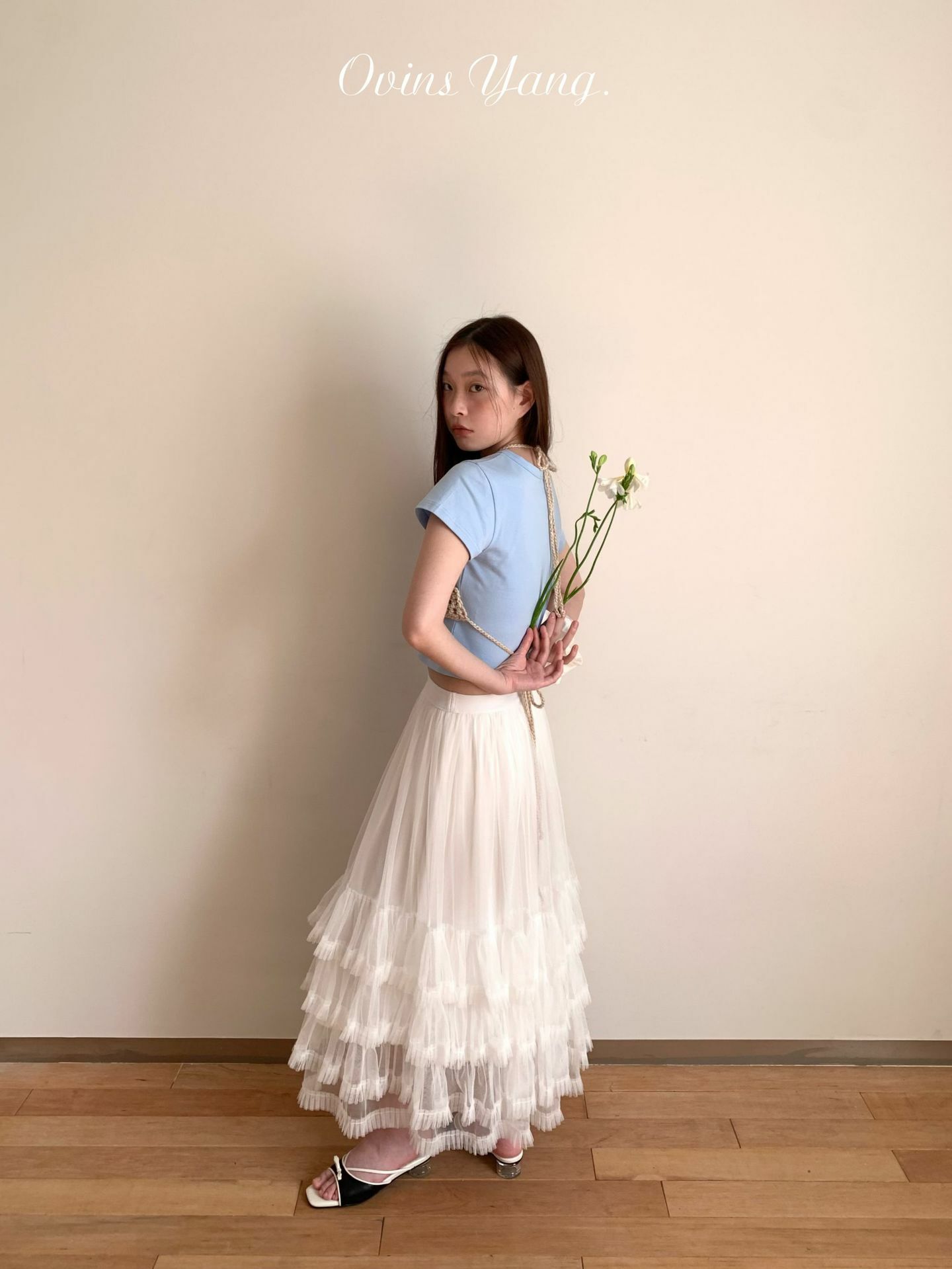 *o-ha-you*【FOY100856】網紗白色半身裙2025新款小眾設計感女孩感花邊蛋糕裙-2色