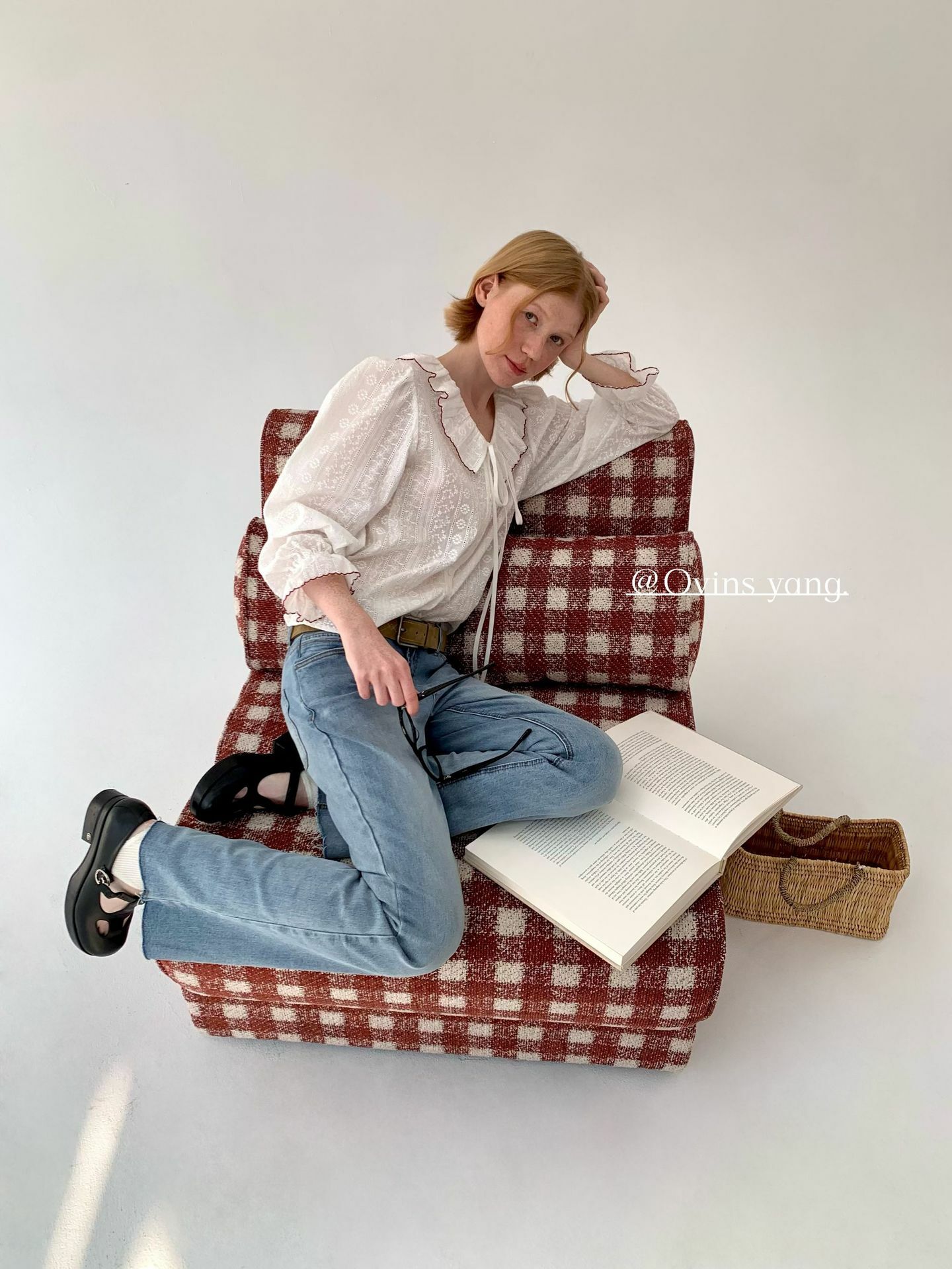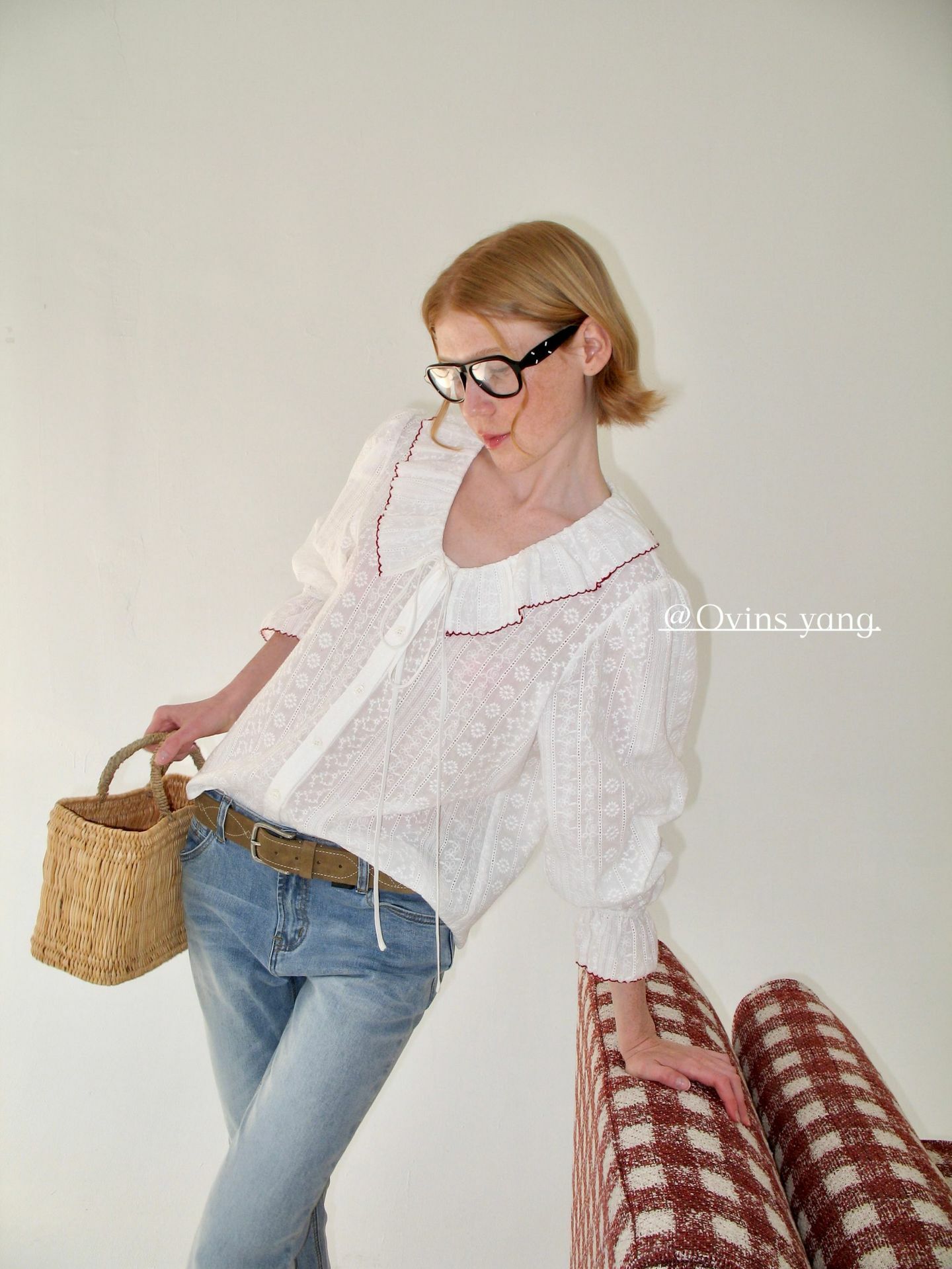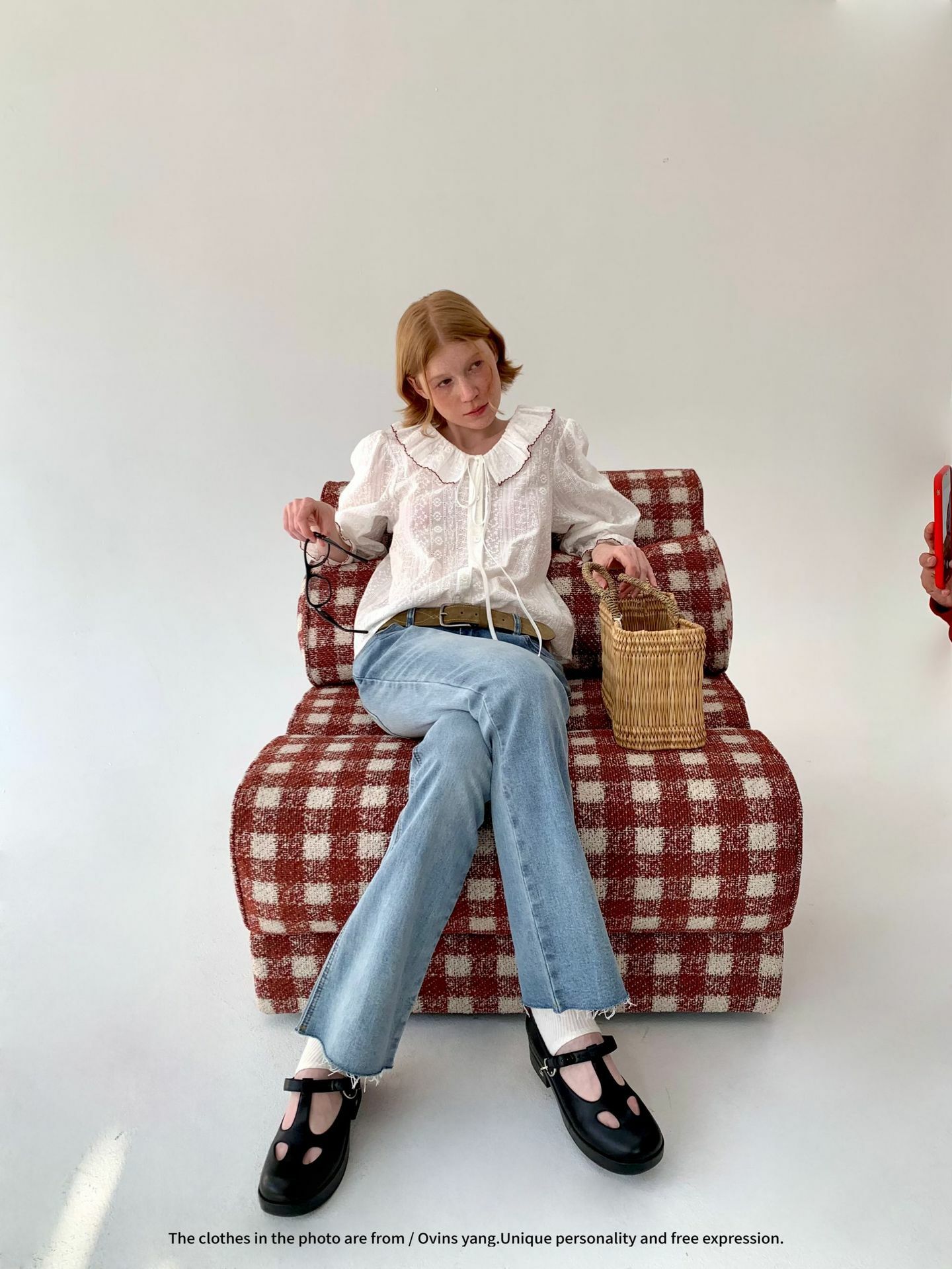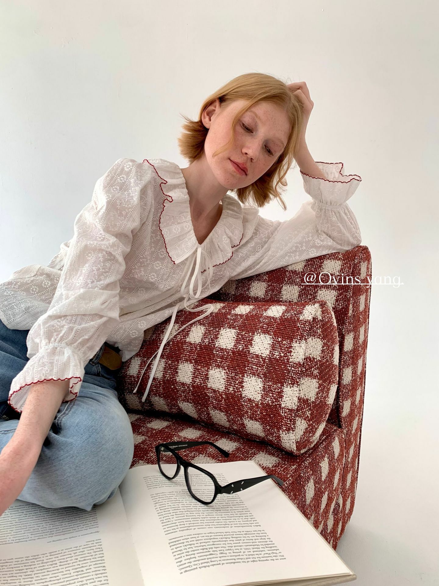 *o-ha-you*【FOY100878】荷葉領白色襯衫長袖設計感小甜美寬鬆慵懶風襯衣上衣-如有需要請先諮詢