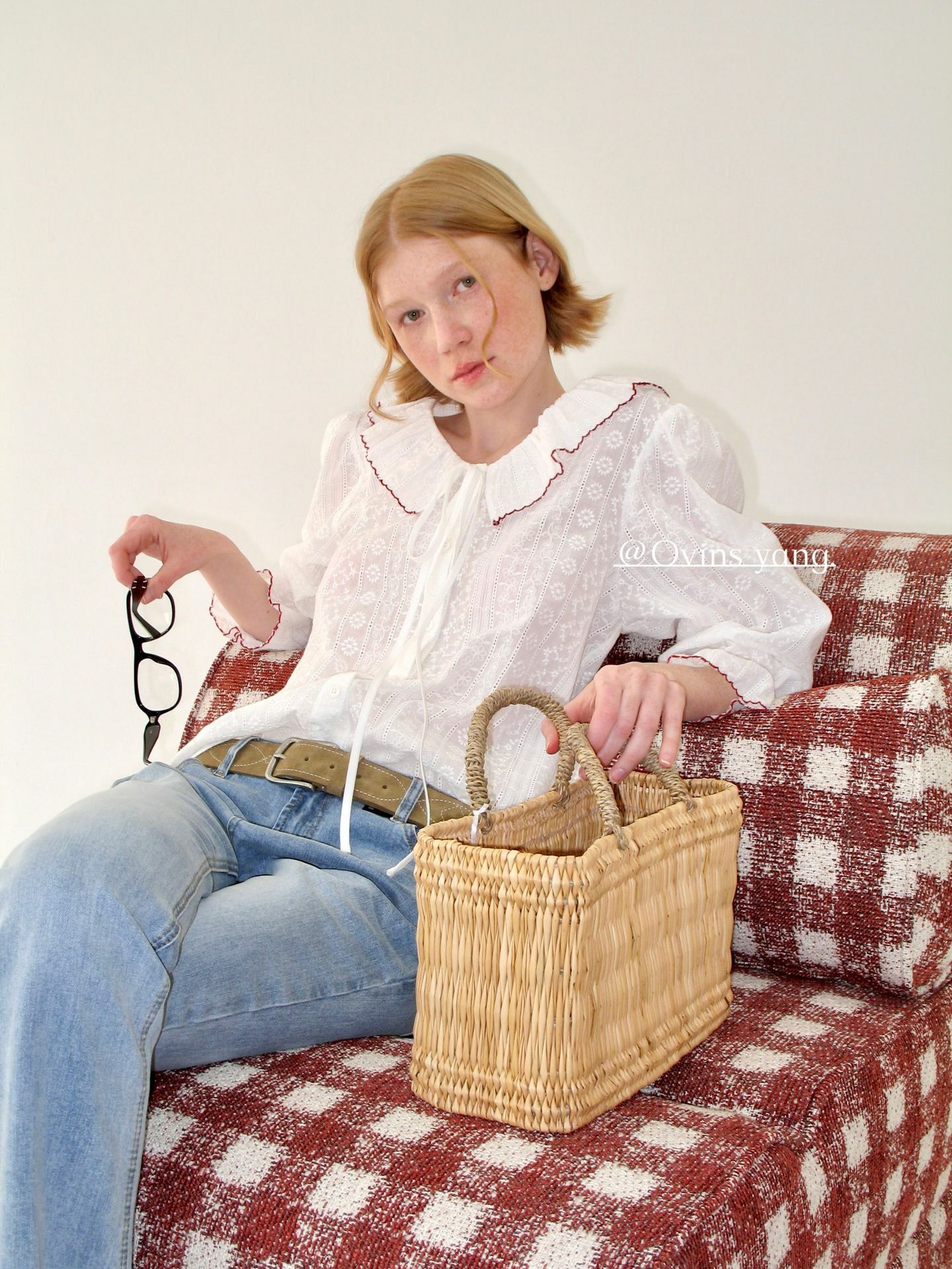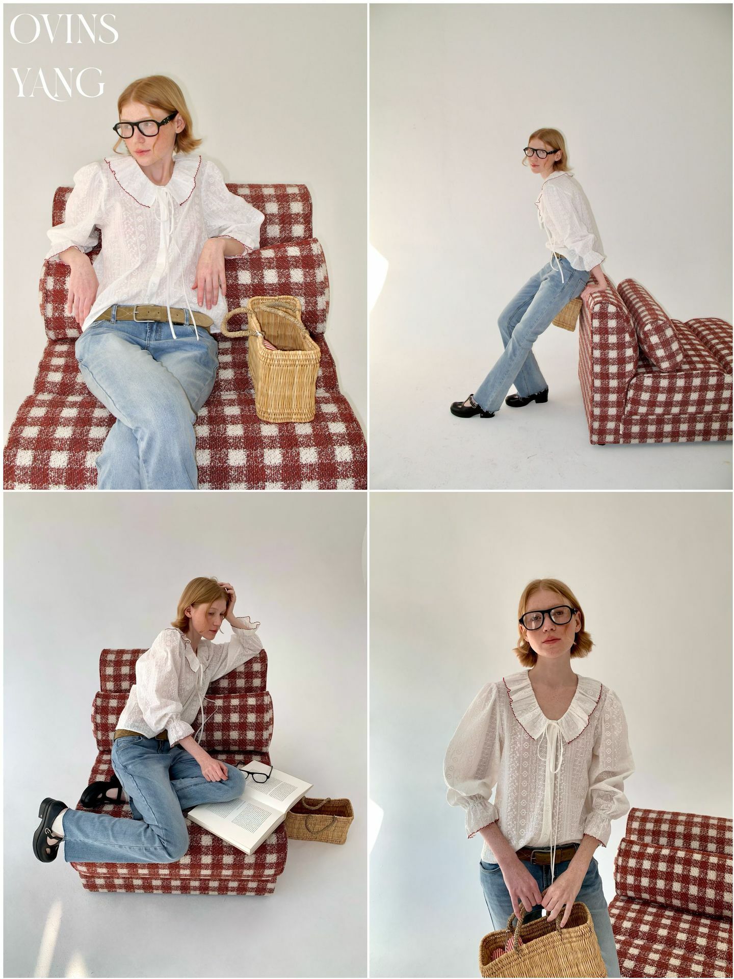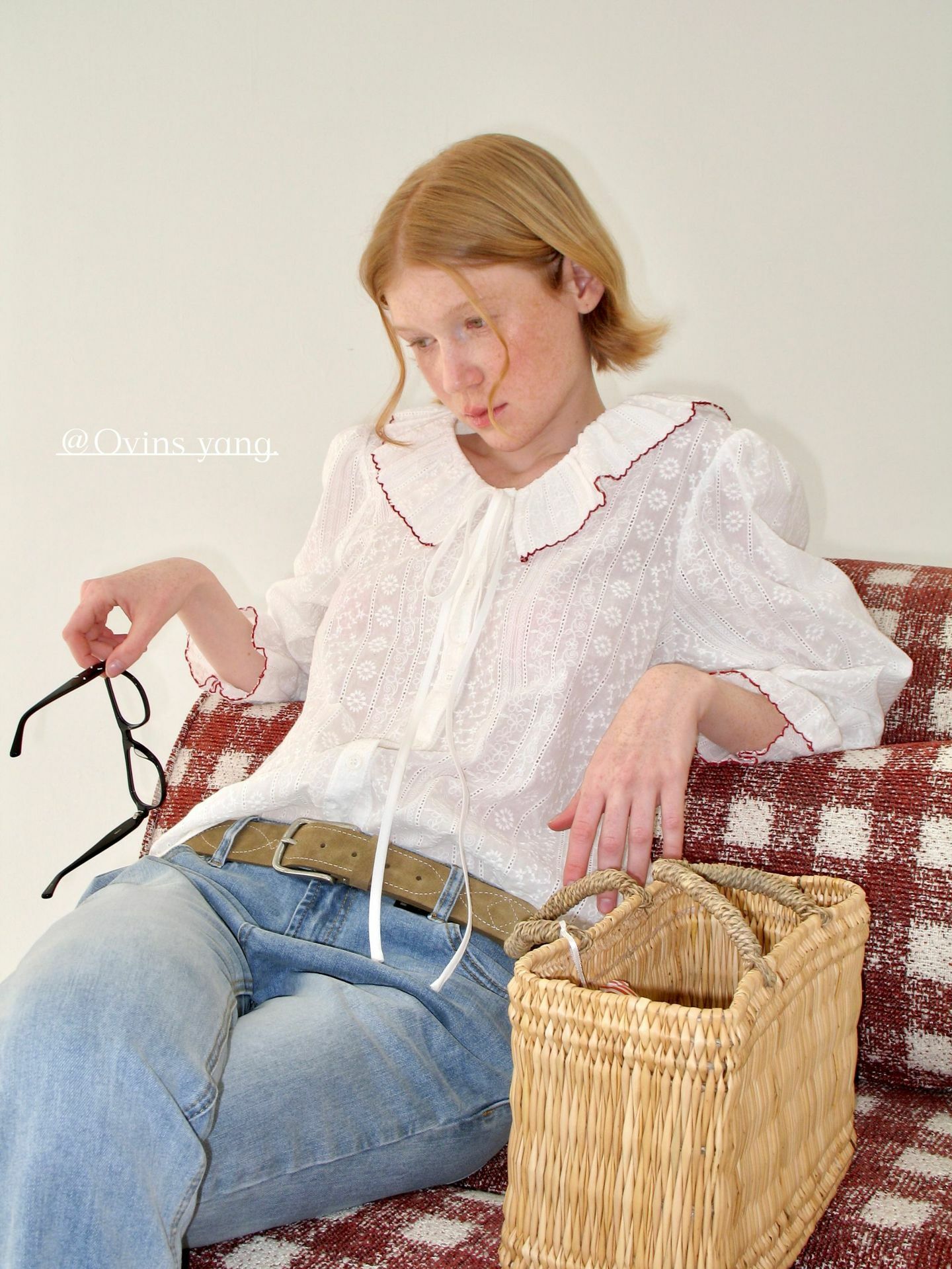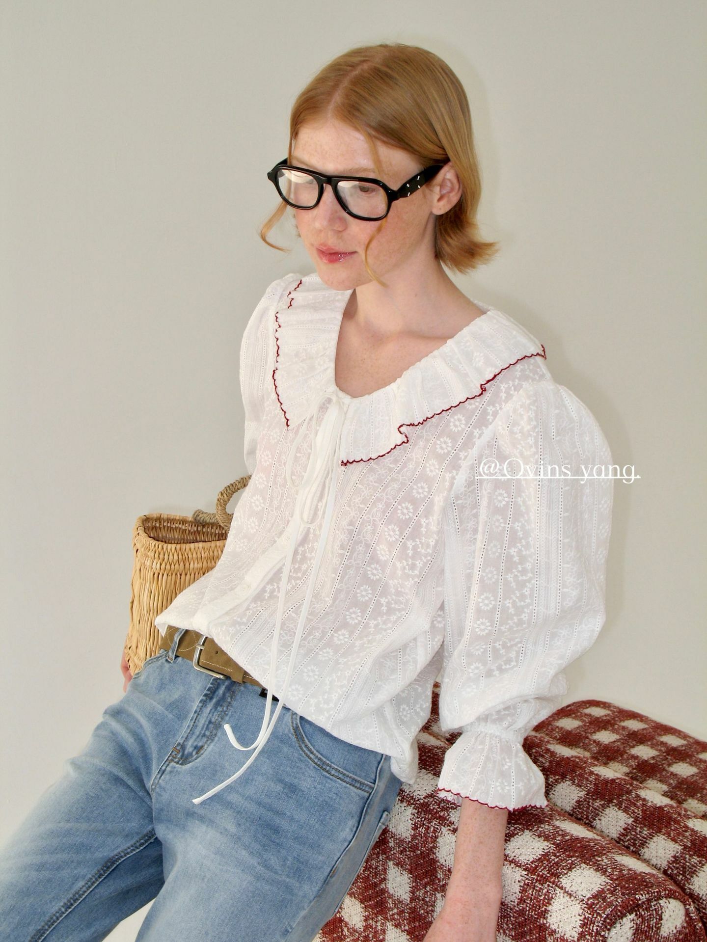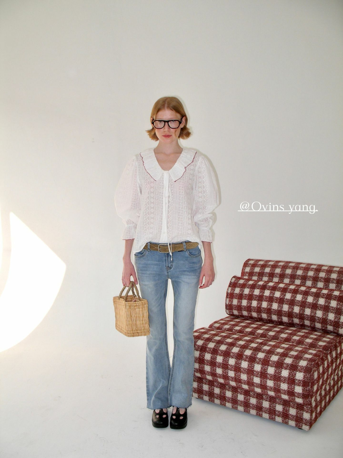 *o-ha-you*【FOY100878】荷葉領白色襯衫長袖設計感小甜美寬鬆慵懶風襯衣上衣-如有需要請先諮詢