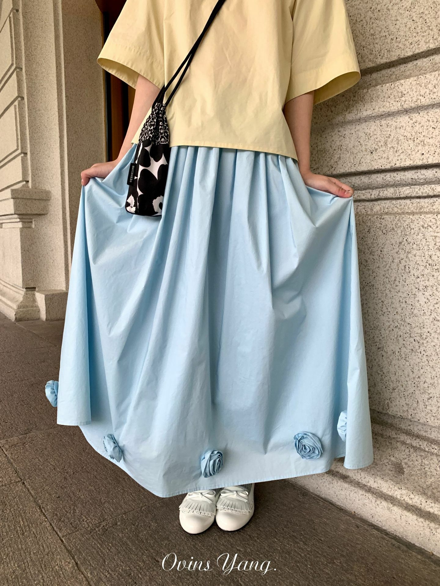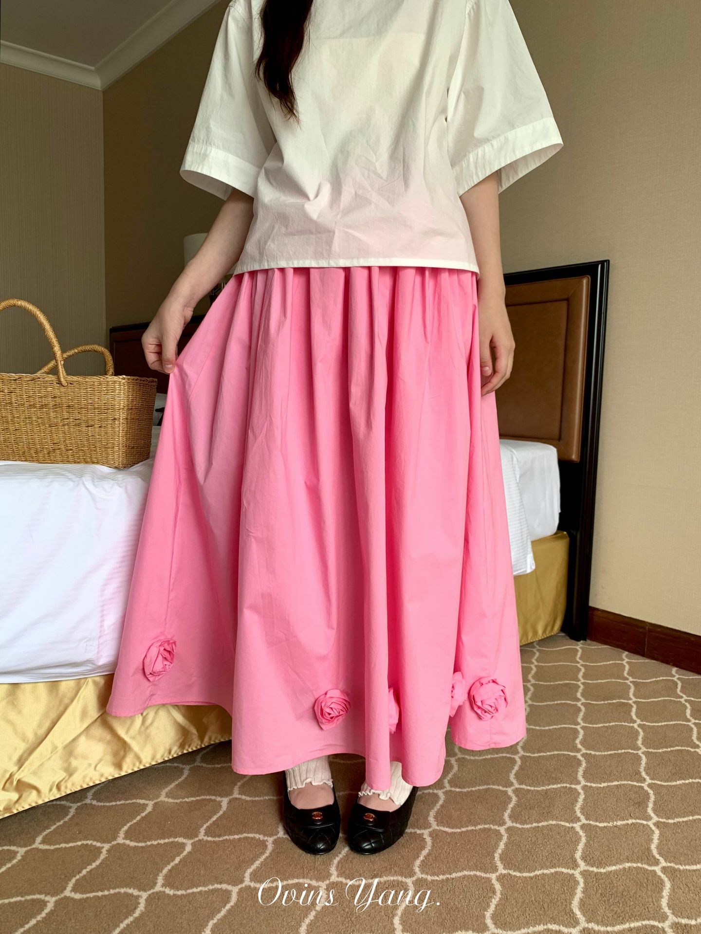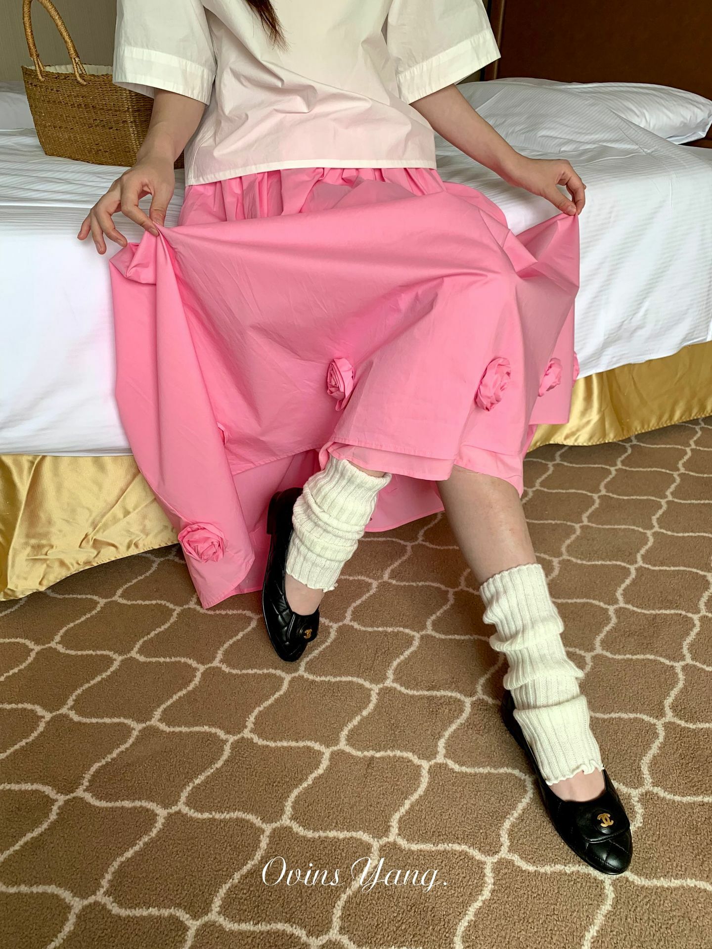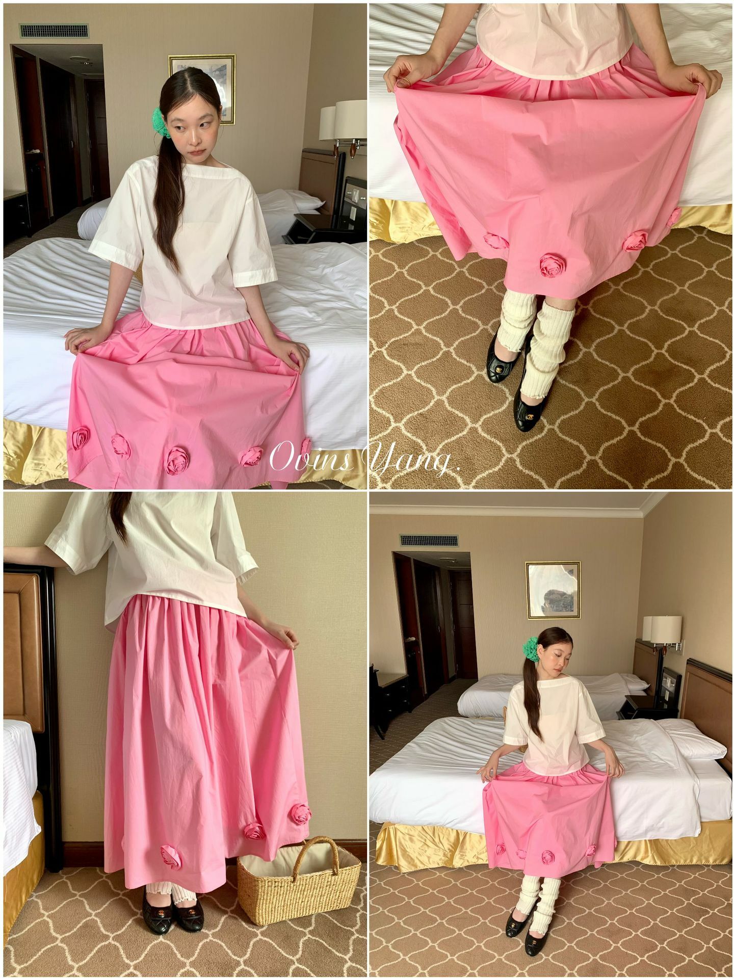 *o-ha-you*【FOY100879】玫瑰花半身裙設計感小眾甜美少女風穿搭中長百褶裙-3色