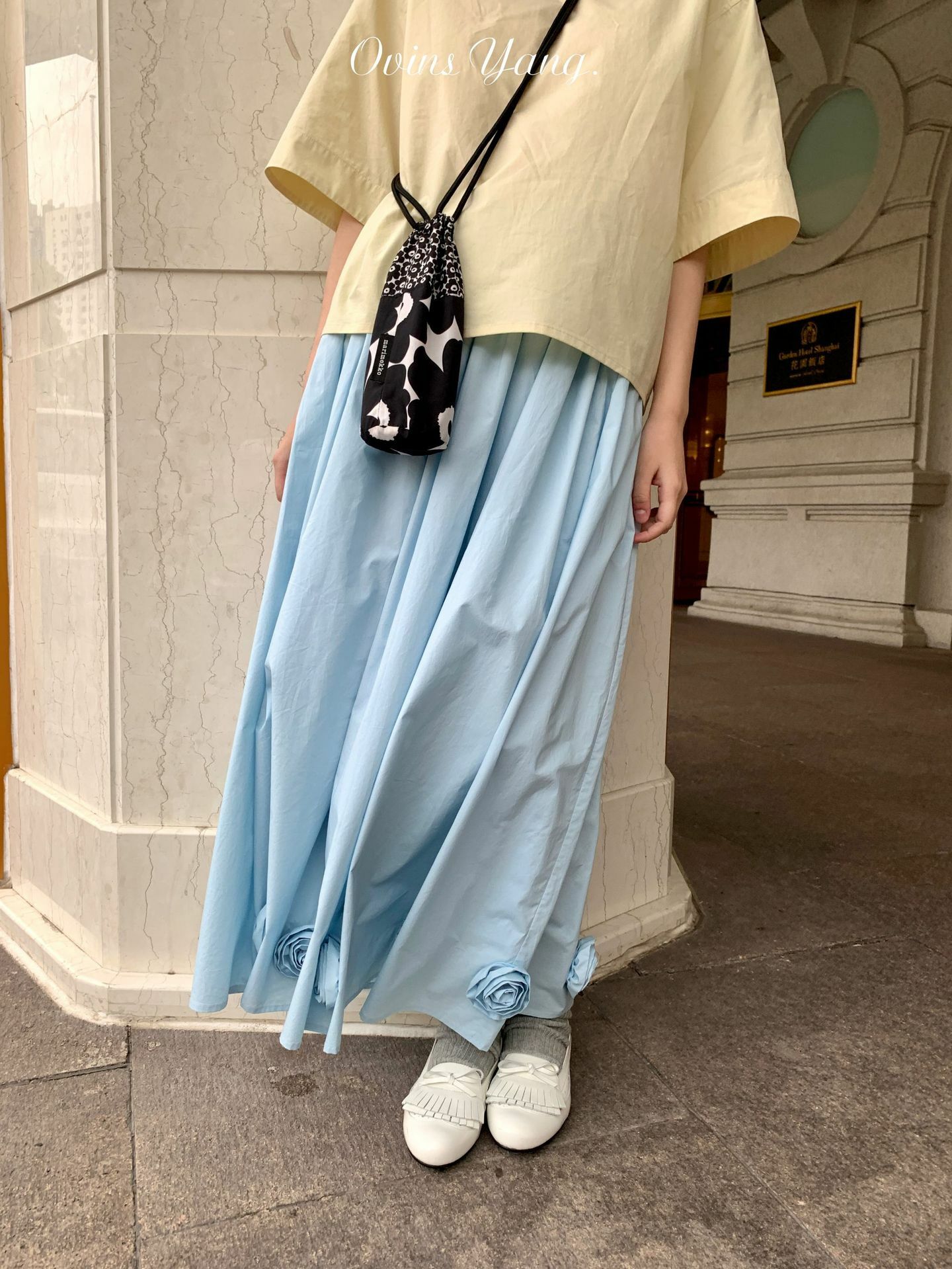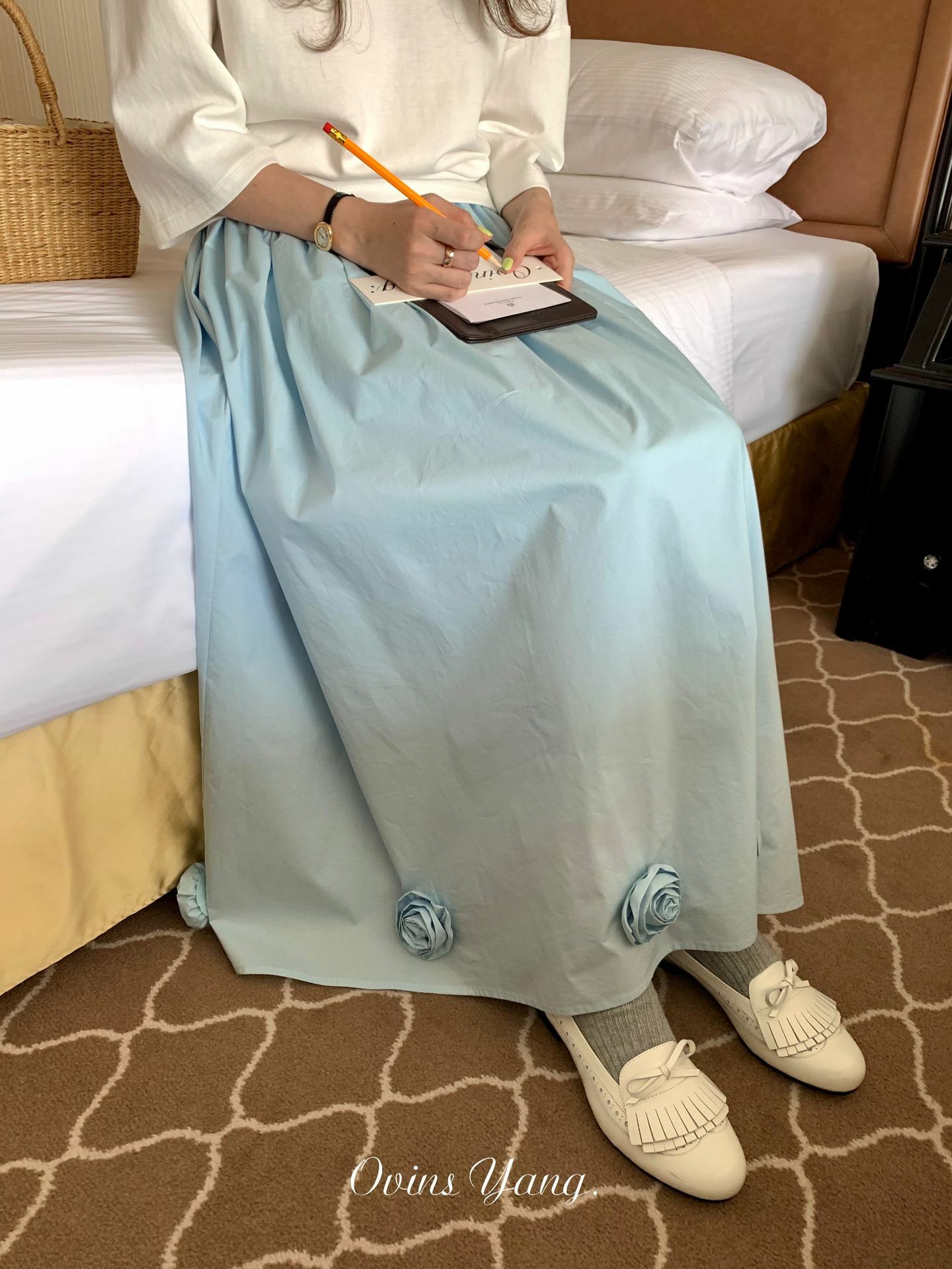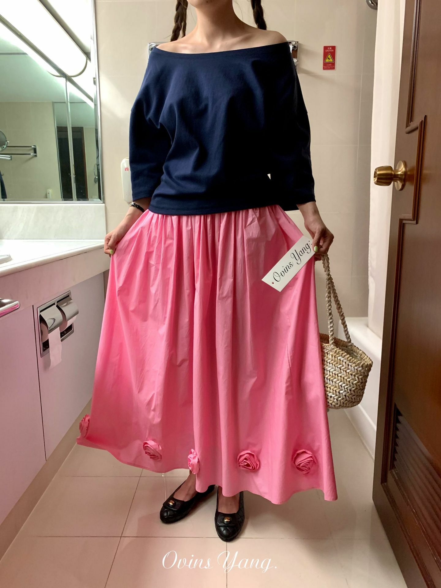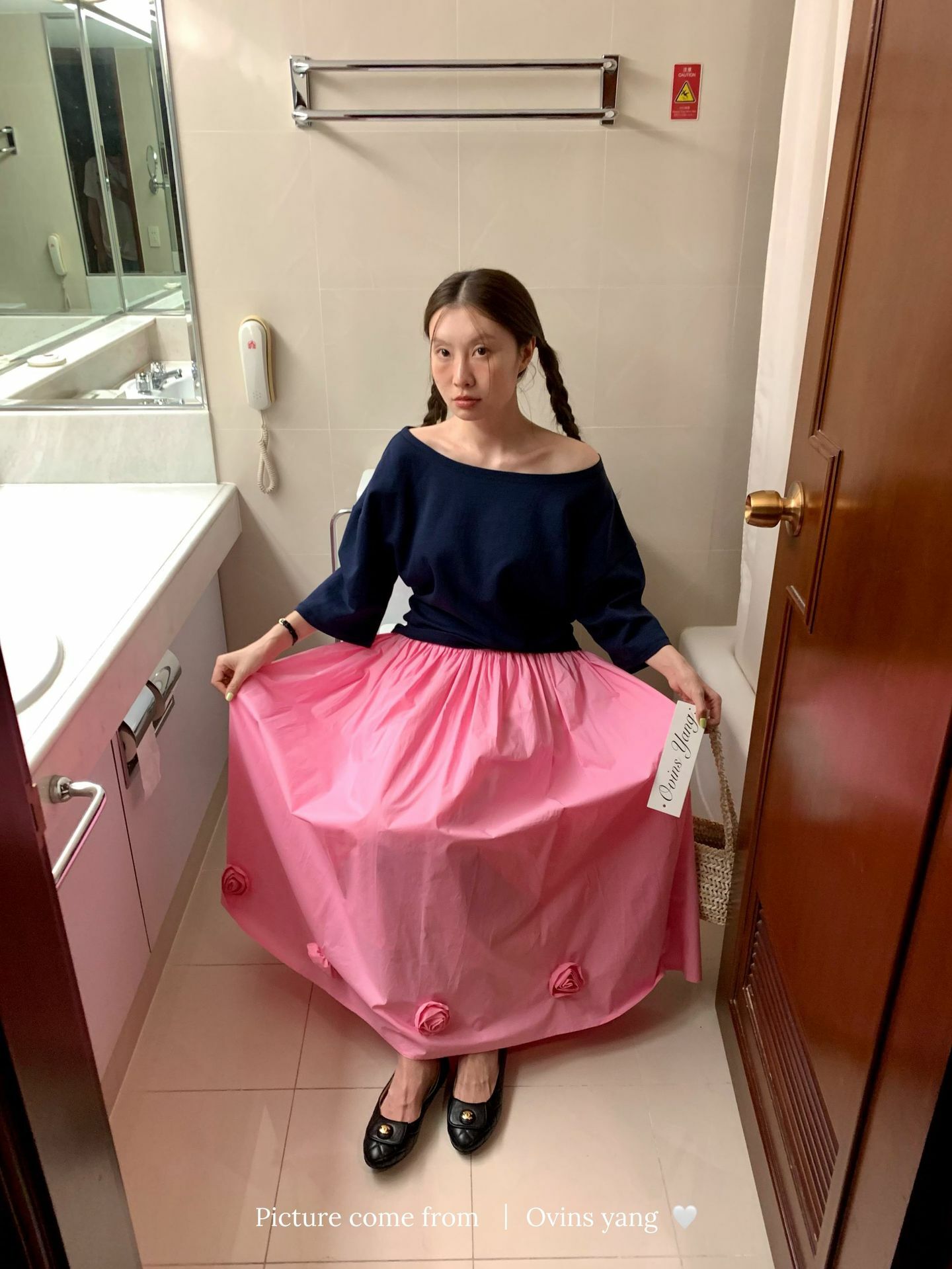 *o-ha-you*【FOY100879】玫瑰花半身裙設計感小眾甜美少女風穿搭中長百褶裙-3色